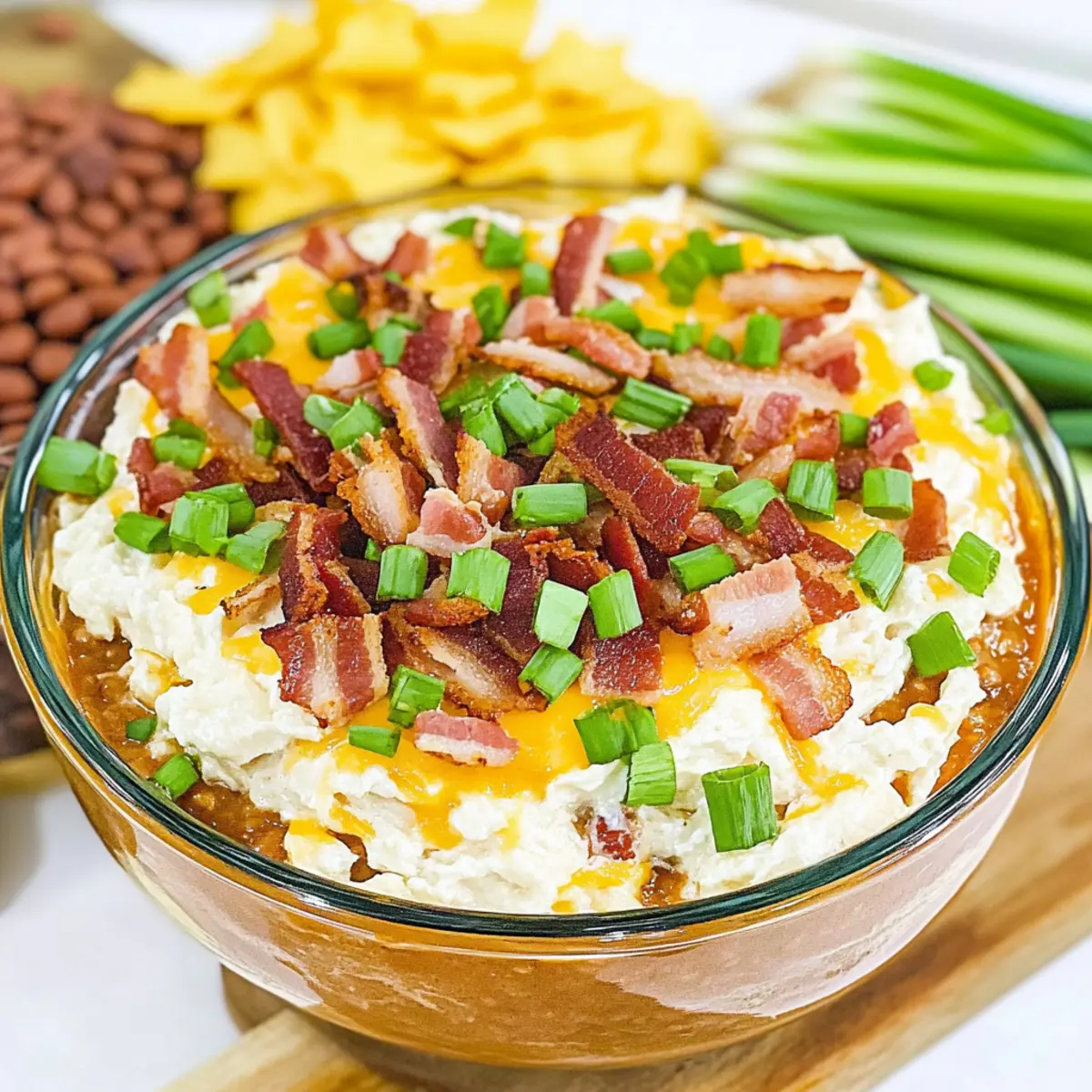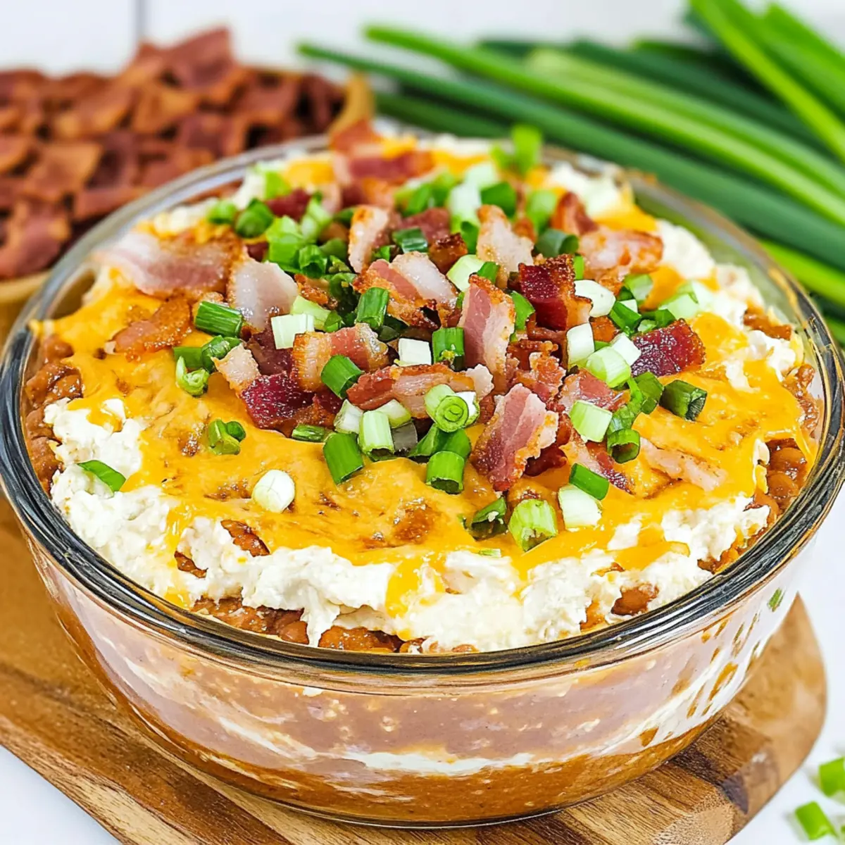 Jump to Recipe Print Recipe“Can I get a side of spicy?” my friend playfully asked as I poured the last of the buffalo sauce into my mixing bowl. While we’ve all enjoyed a classic buffalo chicken dip before, my 7-Layer Buffalo Chicken Dip takes this flavor explosion to a whole new level. It’s a vibrant combination of creamy refried beans, savory bacon, and those spicy buffalo notes, perfected in seven delightful layers. Not only is this dip an absolute showstopper, but it’s also a breeze to whip up, making it ideal for your next gathering, be it a summer barbecue or a cozy game night. Plus, it’s gluten-free-friendly if you make a simple switch with the ranch dressing. So, are you ready to elevate your party appetizer game and delight your taste buds? Let’s dive into this delicious dip! Why is this dip a must-try? Type of Crowd-Pleaser: This 7-Layer Buffalo Chicken Dip is sure to impress at any gathering, from tailgates to holiday parties. Easy to Make: With straightforward steps and minimal prep, you’ll have a delicious dip ready in no time. Layered Flavor Adventure: Each layer brings its own unique taste and texture, creating a delightful combination that’s rich and satisfying. Customizable Options: You can easily swap ingredients like cheese or protein for a version that suits your preferences. Gluten-Free Friendly: A quick change in ranch dressing opens this delicious dish to a wider audience, ensuring no one misses out on the fun! Pair it with some Huli Huli Chicken for a complete feast that will leave everyone raving! 7-Layer Buffalo Chicken Dip Ingredients For the Base Layer • Bacon – Provides savory crunch and flavor; use turkey bacon for a lighter option. • Refried Beans – Offers a creamy base, contributing great texture; vegetarian refried beans can substitute here. For the Chicken Mixture • Buffalo Hot Sauce – Adds the signature spicy kick to the dip; adjust quantity for desired heat level. • Cream Cheese – Creates a rich and creamy consistency; use full-fat for optimal creaminess. • Ranch Dressing – Enhances flavor with added creaminess; swap with homemade ranch for a fresh twist. • Dry Ranch Seasoning – Amplifies the ranch flavor; can be replaced with taco seasoning for a different twist. • Rotisserie Chicken Breast – Provides protein and savory flavor; precooked chicken or canned shredded chicken are suitable alternatives. For the Toppings • Pepperjack Cheese – Melts beautifully and adds a spicy touch; substitute with cheddar for a milder flavor. • Corn – Adds sweetness and texture; use canned or fresh corn kernels, whichever is convenient. • Blue Cheese Crumbles – Offers a tangy flavor that complements the buffalo sauce; feta cheese can be a milder substitute. • Green Onions – Introduces a fresh, slightly sharp finish; shallots can be used as a less pungent alternative. For Serving • Tortilla Chips, Celery, and Carrots – Perfect for serving; these can be swapped with crackers or pita chips. This 7-Layer Buffalo Chicken Dip is not just tasty but also a colorful centerpiece for your table! Step‑by‑Step Instructions for 7-Layer Buffalo Chicken Dip Step 1: Preheat the Oven Begin by preheating your oven to 350°F (175°C). This temperature is essential for ensuring that the layers of your 7-Layer Buffalo Chicken Dip heat evenly and the cheese melts beautifully. While the oven warms up, gather your ingredients so everything is within reach during your cooking process. Step 2: Cook the Bacon In a skillet over medium heat, cook the bacon until it turns crispy and golden brown, which should take about 8-10 minutes. As the bacon crisps, its savory aroma will fill your kitchen, fueling your excitement for this delicious dip. Once done, transfer the crispy bacon to paper towels to drain any excess grease and set aside for later. Step 3: Prepare the First Layer In a mixing bowl, combine the refried beans with ¼ cup of buffalo sauce, stirring until smooth. Spread this mixture evenly across the bottom of a 9×13 inch baking dish, creating the first colorful layer of your 7-Layer Buffalo Chicken Dip. This layer will form a flavorful base, so be sure to reach the edges for even seasoning. Step 4: Blend the Creamy Layer Next, in a separate bowl, mix together the softened cream cheese, ranch dressing, and dry ranch seasoning until well combined and creamy. Layer this rich, flavorful mixture over the refried beans in your baking dish, smoothing it with a spatula. The creamy layer is vital for balancing the spicy notes of the buffalo sauce, enhancing the dip’s overall taste. Step 5: Add the Chicken Layer In a bowl, shred the rotisserie chicken and mix it with the remaining buffalo sauce, ensuring it’s well coated. Spread this chicken mixture evenly over the cream cheese layer. Sprinkle the top with shredded pepperjack cheese for an extra kick. This step builds the heartiness of the dip, making it a satisfying party favorite. Step 6: Bake the Dip Place the assembled dip in the preheated oven and bake for about 20 minutes, or until everything is heated through and the cheese is melted and bubbly. Keep an eye on it; the golden cheese will be a visual cue that your 7-Layer Buffalo Chicken Dip is ready to impress! Step 7: Add the Final Touches Once baked, remove the dish from the oven and allow it to cool for a few minutes. Top your dip with the corn, blue cheese crumbles, and sliced green onions for a fresh crunch and burst of flavor. These toppings create a vibrant finish, adding both taste and visual appeal to your dip. Step 8: Serve with Love Serve your warm 7-Layer Buffalo Chicken Dip with a platter of tortilla chips, celery sticks, and carrot sticks. This colorful arrangement makes for a great presentation, allowing your guests to dive into this delectable, creamy creation with ease. Enjoy the compliments as it quickly disappears! Make Ahead Options These 7-Layer Buffalo Chicken Dip is perfect for meal prep enthusiasts! 