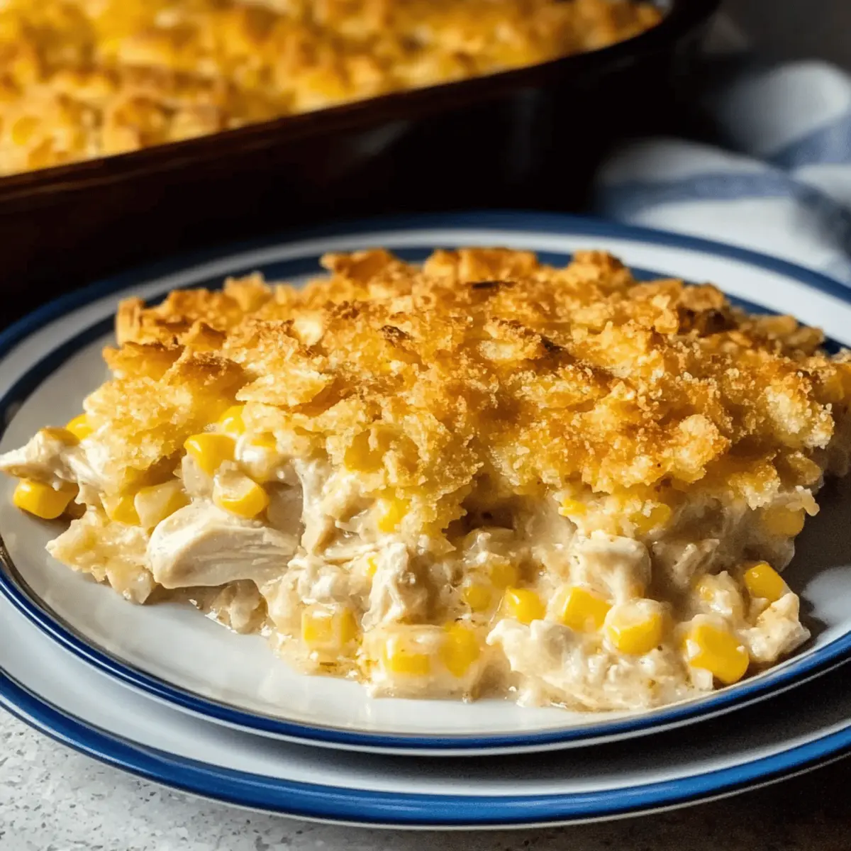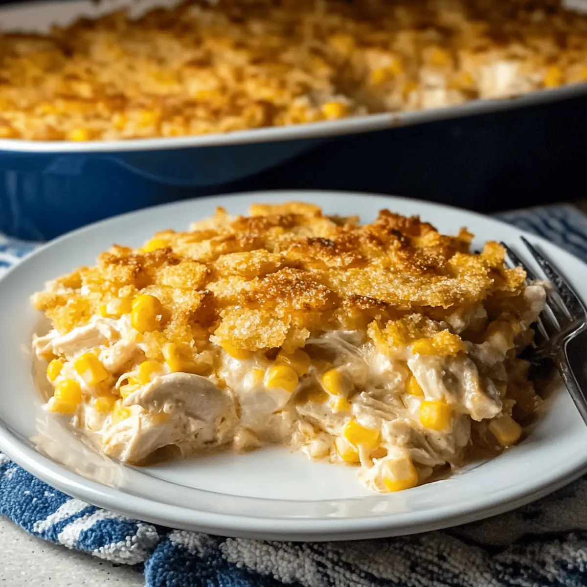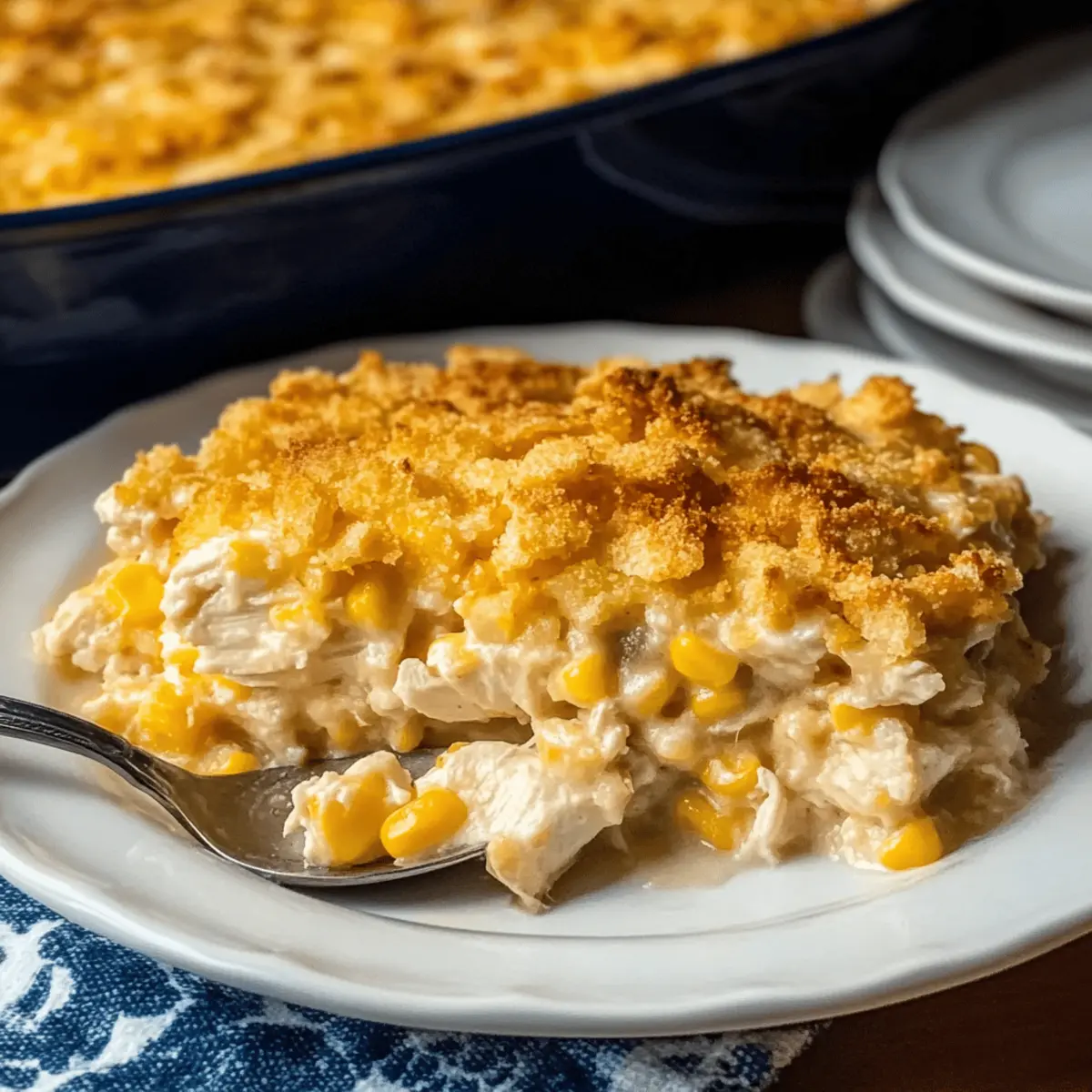 Jump to Recipe Print RecipeAs the comforting aroma of baking fills my kitchen, I can’t help but feel a wave of nostalgia wash over me. There’s something truly magical about homemade meals that bring families together, and this Homemade Amish Chicken Corn Casserole does just that. Combining tender chicken and sweet corn enveloped in a rich, creamy sauce, this dish is a celebration of simple, wholesome ingredients that truly define comfort food. What makes it stand out is its delightful Ritz cracker topping, adding that perfect crunch to each savory bite. Best of all, it’s a breeze to whip up on busy weeknights or during cozy weekends, ensuring your loved ones enjoy a heartfelt, completely homemade dinner without reaching for canned soups. Curious to bring a touch of warmth to your table? Let’s dive into this recipe that’s sure to become a favorite in your home! Why is Amish Chicken Corn Casserole special? Comforting, Like a Warm Hug: This casserole radiates coziness, making it the ultimate dish for family gatherings or chilly evenings. Easy Preparation: With straightforward steps, even novice cooks can impress their loved ones without breaking a sweat. Versatile Ingredients: Feel free to swap chicken for turkey or sneak in some veggies for added nutrition—it’s customizable to suit your family’s taste! Crowd-Pleasing Taste: The delightful combination of tender chicken, sweet corn, and crunchy Ritz cracker topping will have everyone reaching for seconds. No Canned Soups Needed: Enjoy the satisfaction of a homemade creamy sauce that will elevate your comfort food experience. If you’re in the mood for more family-friendly meals, check out our Hawaiian Chicken Salad or try adding some cheesy goodness to your next dinner with our Cheesy Chicken Enchiladas. Amish Chicken Corn Casserole Ingredients For the Casserole • Chicken – Use shredded rotisserie chicken for quick prep. • Sweet Corn – Fresh, frozen, or drained canned corn all add natural sweetness. • Butter – Essential for the roux, contributing richness; substitute with olive oil for lighter fare. • Flour – To thicken the homemade creamy sauce; whole wheat flour is a healthier alternative. • Milk – Provides the base for the creamy sauce; consider almond milk for a dairy-free option. For the Topping • Ritz Crackers – Crush them for a crunchy, golden topping; panko breadcrumbs are a great alternative for a different texture. Seasoning • Salt & Pepper – Adjust these to elevate the flavors, and consider adding garlic powder for extra depth. With these ingredients, you’re all set to create a heartwarming Amish Chicken Corn Casserole that your family will adore! Step‑by‑Step Instructions for Amish Chicken Corn Casserole Step 1: Prepare the Sauce In a medium saucepan, melt 4 tablespoons of butter over medium heat. Once melted and bubbly, whisk in 4 tablespoons of flour to create a roux, stirring constantly for about 2-3 minutes to cook out the raw flour taste. Gradually pour in 2 cups of milk, continuing to whisk until the sauce thickens, around 5-7 minutes. Remove from heat and season with salt and pepper. Step 2: Mix Casserole Ingredients In a large mixing bowl, combine 3 cups of shredded rotisserie chicken and 2 cups of sweet corn. Pour the creamy sauce from Step 1 over the chicken and corn, ensuring everything is evenly coated. Gently stir until all ingredients are well mixed, creating a rich and comforting filling for your Amish Chicken Corn Casserole. Step 3: Assemble Casserole Preheat your oven to 350°F (175°C). Grease a 9×13-inch baking dish with butter or cooking spray to prevent sticking. Pour the chicken and corn mixture into the prepared dish, spreading it out evenly to fill the corners. This step ensures that every bite is full of creamy goodness as it bakes. Step 4: Add Topping Take a sleeve of Ritz crackers and crush them into fine crumbs. Evenly sprinkle the crushed crackers over the top of the casserole, creating a deliciously crunchy layer. This topping will bake to a golden brown, providing a delightful contrast to the creamy filling of the Amish Chicken Corn Casserole. Step 5: Bake Place the assembled casserole in the preheated oven and bake for 25-30 minutes, or until the top is golden brown and the edges are bubbling. The aroma will fill your kitchen, inviting everyone to the table. Keep an eye on it towards the end to avoid over-browning the topping. Step 6: Cool and Serve Once baked, carefully remove the casserole from the oven and let it cool for about 5-10 minutes before serving. This resting period allows the sauce to thicken slightly and makes it easier to serve. Scoop generous portions onto plates and enjoy the warmth and comfort of your Homemade Amish Chicken Corn Casserole with family and friends. Make Ahead Options This Amish Chicken Corn Casserole is an ideal choice for meal prep, making busy weeknights a breeze! You can assemble the entire casserole up to 24 hours in advance by preparing the creamy sauce, mixing it with the shredded chicken and sweet corn, and placing it in a greased baking dish. Just cover it tightly with plastic wrap to maintain freshness in the refrigerator. When you’re ready to enjoy this comforting dish, sprinkle the crushed Ritz crackers on top and bake it directly from the fridge, adding an extra 5-10 minutes to the baking time to ensure it’s heated thoroughly. This way, you’ll have a delicious, homemade meal that feels just as fresh as if you made it the same day! Expert Tips for Amish Chicken Corn Casserole Perfect Roux: Ensure you cook the roux long enough to eliminate the raw flour taste, but stop before it starts to darken—this impacts the casserole’s flavor. Add Creaminess: For an even richer sauce, mix in a few ounces of cream cheese before pouring it over the chicken and corn. It makes the Amish Chicken Corn Casserole extra luscious! Proper Baking: Do not overcrowd your baking dish; if doubling the recipe, use two sepa