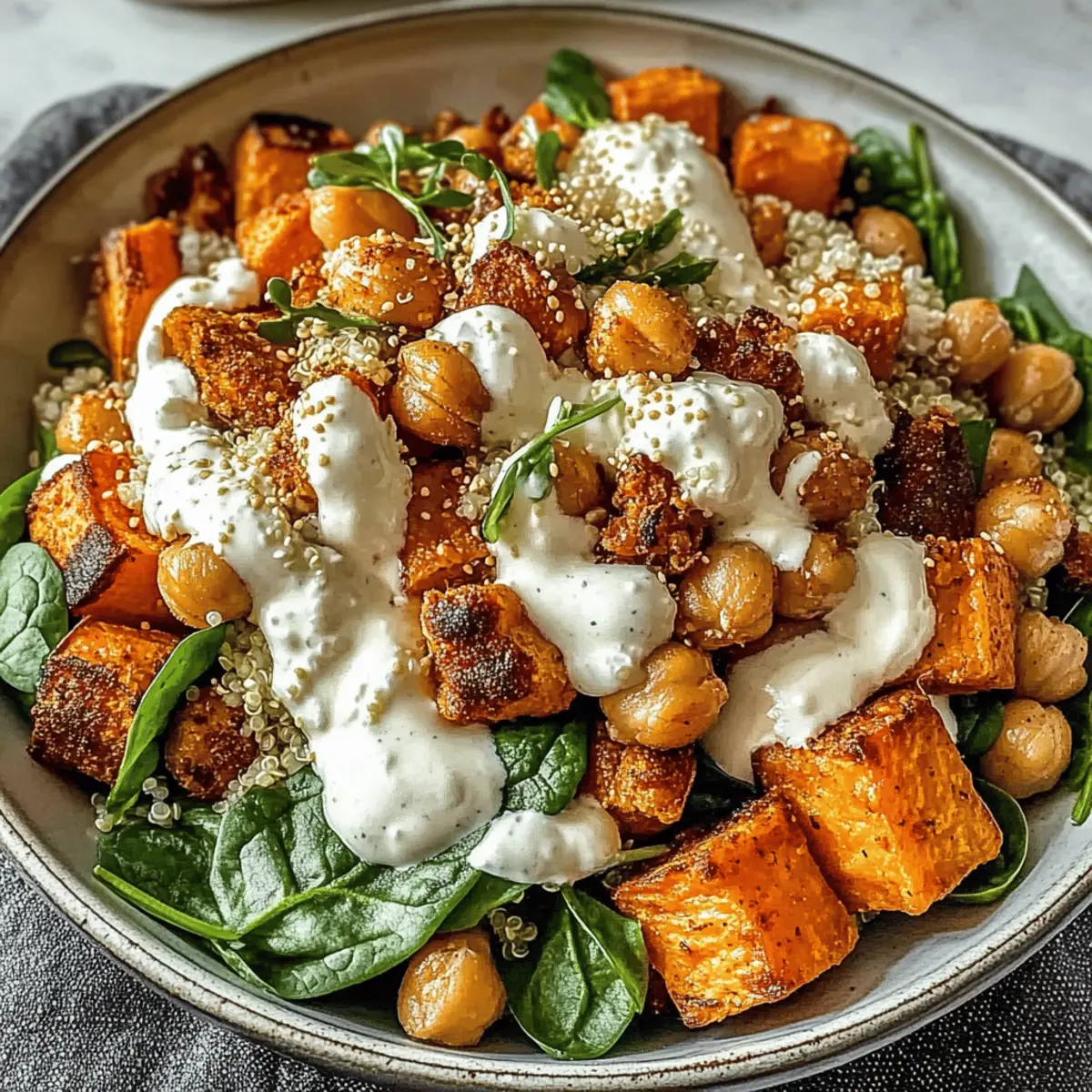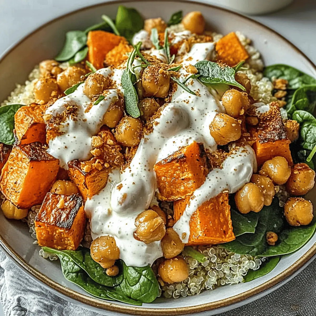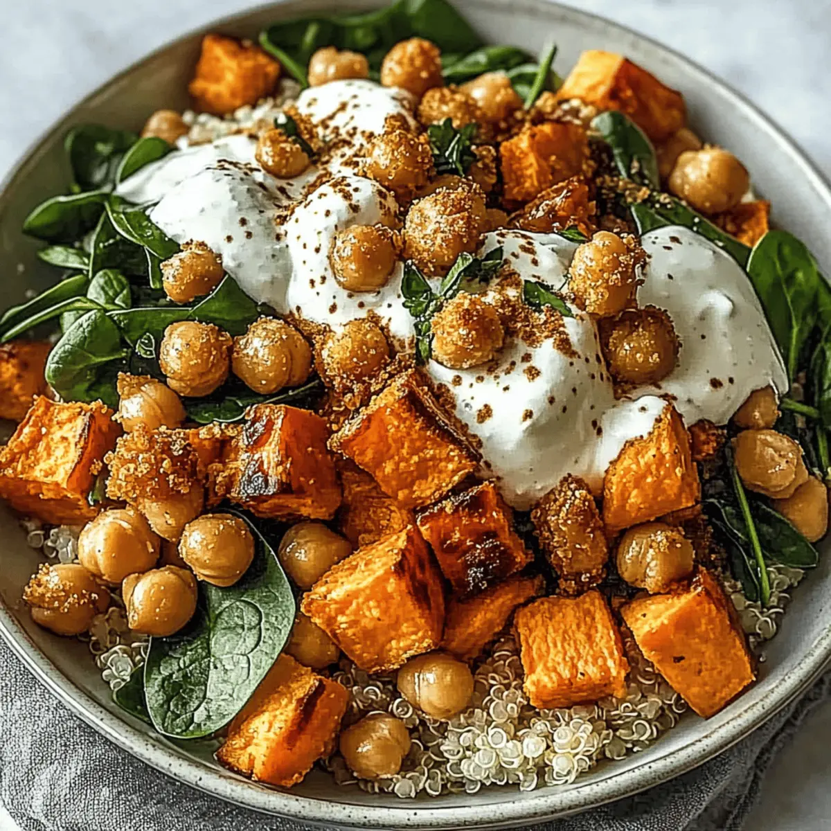 Jump to Recipe Print RecipeAs I stood in my kitchen surrounded by a kaleidoscope of fresh vegetables, I couldn’t help but feel a spark of excitement. The creation of my Anti-Inflammatory Glow Bowl was about to unfold! This vibrant dish combines nutrient-packed quinoa, sweet roasted sweet potatoes, and crispy chickpeas, all crowned with a creamy tahini yogurt sauce that brings it to life. Not only is it meal prep-friendly, making weeknight dinners a breeze, but it’s also a customizable delight that can cater to your taste buds. The best part? Each bite delivers a nourishing punch that feels as fantastic as it tastes. Curious to discover how to put this gloriously healthy bowl together? Let’s dive in! Why is This Glow Bowl a Game-Changer? Vibrant Colors: The Anti-Inflammatory Glow Bowl is a feast for the eyes, with a stunning array of colorful veggies and textures that make eating healthy a delight. Healthful Ingredients: Packed with nutrient-dense components like quinoa and chickpeas, this bowl offers a powerhouse of plant-based protein, fiber, and healthy fats. Customizable Delight: Whether you want to swap quinoa for brown rice or toss in seasonal veggies, this recipe easily adapts to your personal preferences or what you have on hand. Meal Prep-Friendly: Perfect for prepping ahead, you can enjoy this dish throughout the week, making busy evenings hassle-free without compromising on flavor. Crowd-Pleasing Appeal: Serve it up for brunch, a light dinner, or meal prep, and watch as family and friends rave about this nutritious and satisfying bowl. For more delicious and easy meal ideas, check out my Grilled Shrimp Bowl or Chicken Rice Bowls. Anti-Inflammatory Glow Bowl Ingredients For the Base • Quinoa – Provides protein and fiber; rinse before cooking for best results. • Sweet Potatoes – Adds natural sweetness and creaminess; choose firm potatoes with smooth skin. For the Toppings • Spinach – Offers mild flavor and vibrant color; wash thoroughly to remove grit. • Chickpeas – Source of plant-based protein; using canned chickpeas is convenient. • Avocado – Enhances creaminess and flavor; select ripe avocados that yield slightly when pressed. For the Tahini Yogurt Sauce • Tahini – Rich sesame paste that adds depth; stir well before measuring. • Lemon Juice – Brightens flavors; freshly squeezed is best for optimal taste. For Seasoning • Cumin – Key for anti-inflammatory benefits; use ground for ease. • Turmeric – Another important anti-inflammatory spice; integrates well into the bowl. • Olive Oil – Extra virgin adds healthy fats and enhances flavor; use generously on veggies. • Salt and Pepper – Essential seasonings for taste; adjust based on preference. Step‑by‑Step Instructions for Anti-Inflammatory Glow Bowl Step 1: Cook the Quinoa Rinse 1 cup of quinoa under cold water to remove any bitterness, then combine it with 2 cups of water in a medium saucepan. Bring the mixture to a boil over high heat, then reduce the heat to low, cover with a lid, and simmer for about 15 minutes until the water is fully absorbed. Remove from heat and fluff the quinoa with a fork, setting it aside while you prepare the other ingredients. Step 2: Roast Sweet Potatoes Preheat your oven to 425°F (220°C). While it heats, peel and dice 2 medium sweet potatoes into uniform cubes for even cooking. Toss the potato cubes in a bowl with a drizzle of olive oil, ground cumin, salt, and pepper until well coated. Spread them out on a lined baking sheet, then roast for approximately 25 minutes, turning halfway, until they are golden brown and tender. Step 3: Sauté Chickpeas In a skillet over medium heat, add 1 tablespoon of extra virgin olive oil and let it warm for a moment. Once hot, add 1 can of drained chickpeas, stirring in ground turmeric, cumin, salt, and pepper. Sauté the chickpeas for about 10 minutes until they become crispy and golden, making sure to stir frequently to prevent sticking. Remove from heat once done. Step 4: Prepare Tahini Yogurt Sauce In a medium bowl, whisk together ½ cup of tahini, ½ cup of plain yogurt, the juice of 1 freshly squeezed lemon, and a pinch of salt. Gradually add water as needed until you achieve a creamy, pourable consistency. Taste and adjust salt as desired. This creamy tahini yogurt sauce adds a deliciously rich finish to your Anti-Inflammatory Glow Bowl. Step 5: Assemble the Bowl Start arranging your Anti-Inflammatory Glow Bowl with a generous layer of the fluffy quinoa as the base. Next, add the roasted sweet potatoes and the crispy sautéed chickpeas on top for a delightful mixture of flavors and textures. Finish with a handful of fresh spinach and sliced avocado for extra creaminess. Finally, drizzle your tahini yogurt sauce generously over the top before serving. Make Ahead Options These Anti-Inflammatory Glow Bowls are perfect for meal prep, making your weeknight dinners a breeze! You can cook the quinoa and roast the sweet potatoes up to 3 days in advance. Just store them separately in airtight containers in the refrigerator to maintain their freshness. The crispy chickpeas can also be sautéed ahead of time and will stay delicious for about 2 days when kept in a sealed container. For the tahini yogurt sauce, prepare it the night before and refrigerate to allow the flavors to meld beautifully. When you’re ready to serve, simply reheat the quinoa and sweet potatoes, layer the components, and drizzle with the sauce for a vibrant, hassle-free meal that feels just as fantastic as it tastes! What to Serve with Anti-Inflammatory Glow Bowl? Looking to enhance your dining experience? Pair these delightful sides that complement the vibrant flavors of your nourishing bowl. Creamy Mashed Potatoes: Smooth and buttery, these potatoes add comfort while keeping the meal wholesome with their light texture. Grilled Chicken: Juicy and flavorful, grilled chicken packs protein to make your Glow Bowl even more satisfying. A touch of 