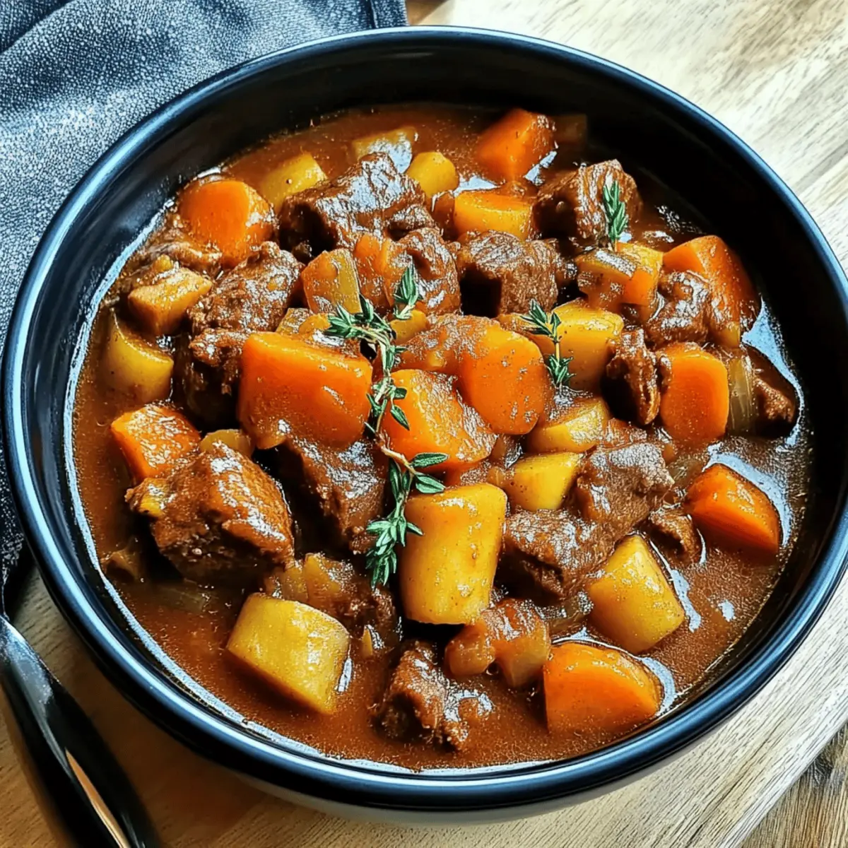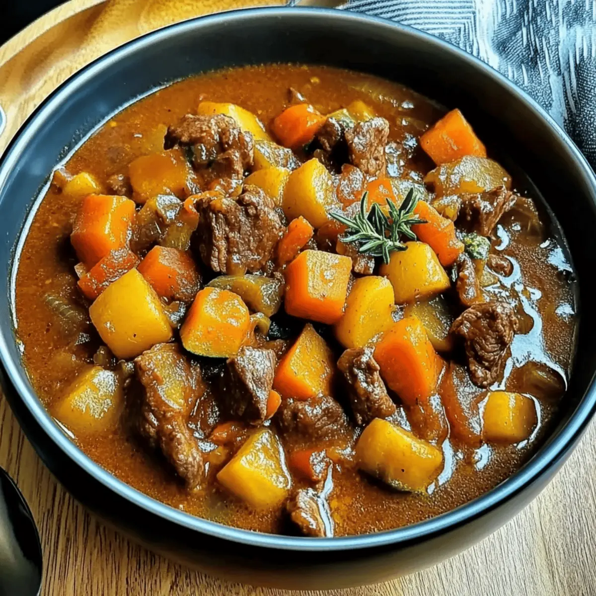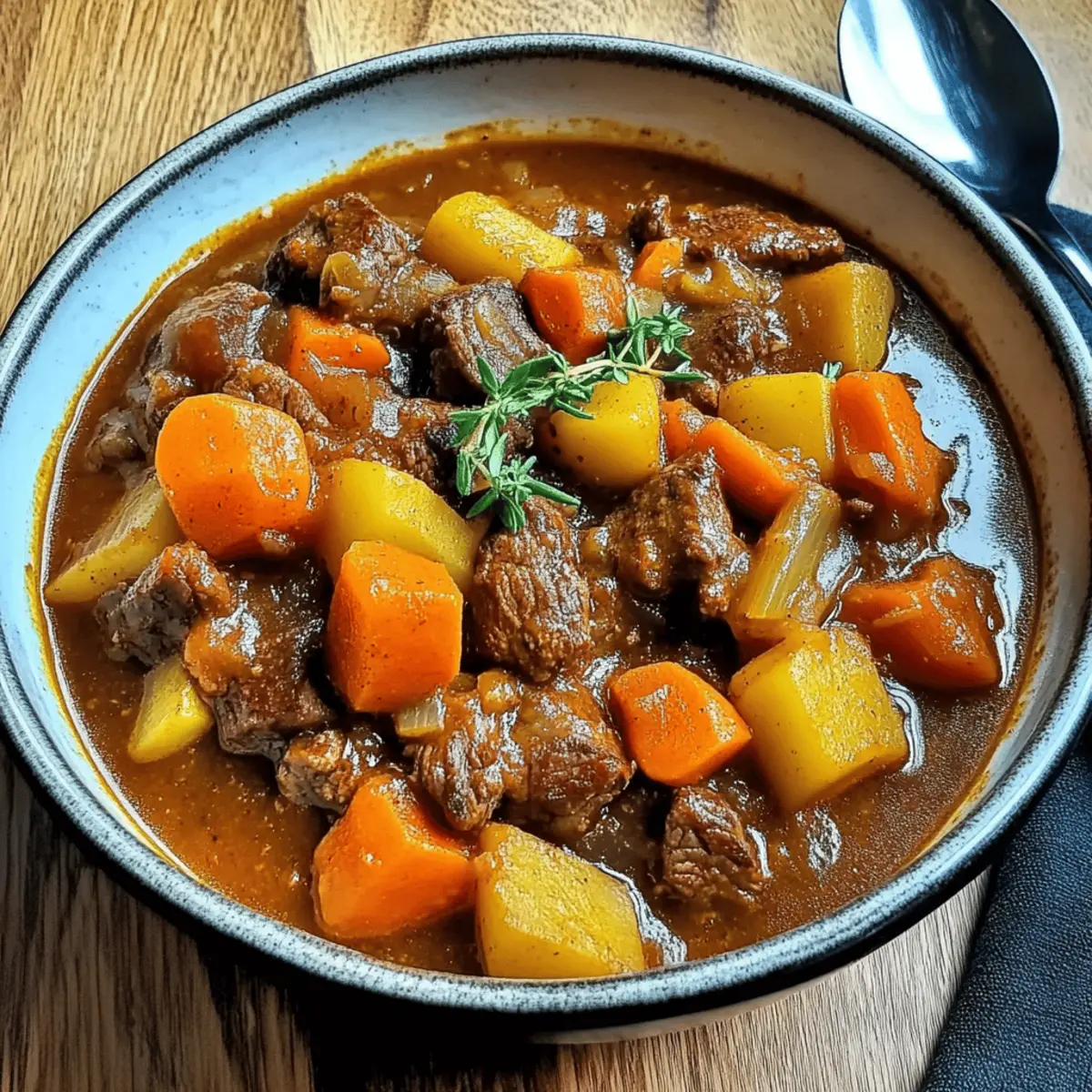 Jump to Recipe Print RecipeAs the air turns crisp and leaves drift to the ground, there’s nothing quite like the aroma of a simmering stew wafting through the kitchen. My Autumn Harvest Beef Stew is the epitome of comfort food—rich in flavors and perfect for gathering family around the table. This hearty stew combines tender beef with seasonal vegetables, creating a dish that’s not only easy to prepare but also a delightful way to bring a taste of fall into your home. Picture cozy nights, laughter, and warmth as each bowl exudes the essence of autumn’s bounty. Plus, it’s a fantastic meal-prep option, allowing you to enjoy the leftovers throughout the week. Are you ready to dive into this heartwarming recipe that’s perfect for your fall family gatherings? Why is This Stew a Fall Favorite? Comforting Warmth: This Autumn Harvest Beef Stew is a hug in a bowl, enveloping you in rich flavors and warmth that are perfect for chilly nights. Hearty Ingredients: Packed with tender beef and seasonal vegetables, each bite is a celebration of autumn’s bounty. Easy Preparation: With straightforward steps, you can whip up this comforting dish without stress, perfect for busy weeknights! Versatile Flavors: Feel free to experiment! Switch up the veggies or even swap in chicken for a lighter twist. Looking for more comfort? Check out my delicious Beef Stroganoff Cozy for another family-friendly favorite! Crowd-Pleaser: This stew is sure to impress guests or family alike, making it a go-to dish during gatherings! Autumn Harvest Beef Stew Ingredients For the Stew Beef Chuck – Ideal for slow cooking; provides a rich flavor and hearty texture that will become tender as it simmers. Olive Oil – Perfect for browning the meat and sautéing the aromatics; feel free to substitute with vegetable oil if needed. Onion – Adds sweetness and depth to the stew; yellow or white onions work equally well for this dish. Garlic – Enhances the stew’s flavor with its aromatic qualities; fresh minced garlic is always preferred. Beef Broth – The rich base that lends moisture and umami; low-sodium broth is recommended for better control over saltiness. Carrots – Contribute sweetness and a pop of color; be sure to use fresh, peeled, and sliced carrots for even cooking. Potatoes – Provide heartiness to the stew; russet or Yukon gold, diced for consistent cooking time, are the best choices. Parsnips – Offer a sweet, nutty flavor that complements the beef; can be swapped with turnips if you can’t find them. Celery – Adds crunch and a mild, fresh flavor; freshly diced celery is ideal for the best texture. Tomato Paste – Deepens the flavor of the stew; it’s optional, so you can omit it for a lighter version if desired. Dried Thyme – Gives an earthy herbal note; fresh thyme can be used, just adjust to taste for a fragrant finish. Dried Rosemary – Adds aromatic depth; it’s a perfect complement to the beefy goodness of the stew. Bay Leaf – Imparts a subtle flavor during cooking; remember to remove it before serving for a smooth finish. Salt and Pepper – Essential for seasoning; adjust to taste to achieve your desired flavor profile. Fresh Parsley – Adds a burst of color and freshness as a garnish; while optional, it’s highly recommended for that finishing touch! Embrace the essence of fall with this Autumn Harvest Beef Stew that not only satisfies the tummy but warms the heart! Step‑by‑Step Instructions for Autumn Harvest Beef Stew Step 1: Brown the Beef In a large pot, heat 2 tablespoons of olive oil over medium-high heat. Once hot, add the beef chuck cubes in a single layer, ensuring they don’t overcrowd the pan. Sear for about 4-5 minutes until browned on all sides. Remove the beef and set it aside on a plate, allowing it to rest while you prepare the next components of the Autumn Harvest Beef Stew. Step 2: Sauté Aromatics With the same pot, lower the heat to medium and add the diced onion, stirring frequently. Sauté for about 3-4 minutes until the onion is translucent and fragrant. Next, add the minced garlic, cooking for an additional minute until it becomes aromatic. This step builds a flavorful foundation for your hearty stew. Step 3: Add Tomato Paste Stir in 2 tablespoons of tomato paste to the pot with the sautéed onion and garlic. Cook for 1 minute, allowing the tomato paste to caramelize slightly, enhancing its rich flavor. This addition will deepen the overall taste of your Autumn Harvest Beef Stew and create a beautiful base for the broth. Step 4: Deglaze Pot Pour a splash of beef broth into the pot, using a wooden spoon to scrape up the delicious browned bits from the bottom. These bits are packed with flavor that will make your stew even richer. Let the broth simmer for about 2 minutes, allowing the flavors to meld together beautifully. Step 5: Combine Return the browned beef back into the pot along with the remaining beef broth (about 4 cups). Stir gently to combine all ingredients, ensuring the beef and aromatic base come together, creating a cozy blend for your stew. Bring this mixture to a gentle boil over medium-high heat. Step 6: Incorporate Vegetables Once boiling, reduce the heat to a low simmer and add 2 diced carrots, 2 diced potatoes, 2 diced parsnips, and 2 diced celery stalks to the pot. Stir well to incorporate the vegetables into the beef mixture. These ingredients will not only add texture but encapsulate the essence of autumn in your stew. Step 7: Season Sprinkle in 1 teaspoon of dried thyme, 1 teaspoon of dried rosemary, a bay leaf, and season with salt and pepper to taste. Stir the pot to ensure that every element is infused with the delicious herby goodness. This step enhances the flavors of the hearty ingredients, making your Autumn Harvest Beef Stew truly sensational. Step 8: Simmer Cover the pot and let the stew simmer on low heat for about 2 hours or until the beef is tender and the vegetables are cooked through. Stir occasionally to prevent