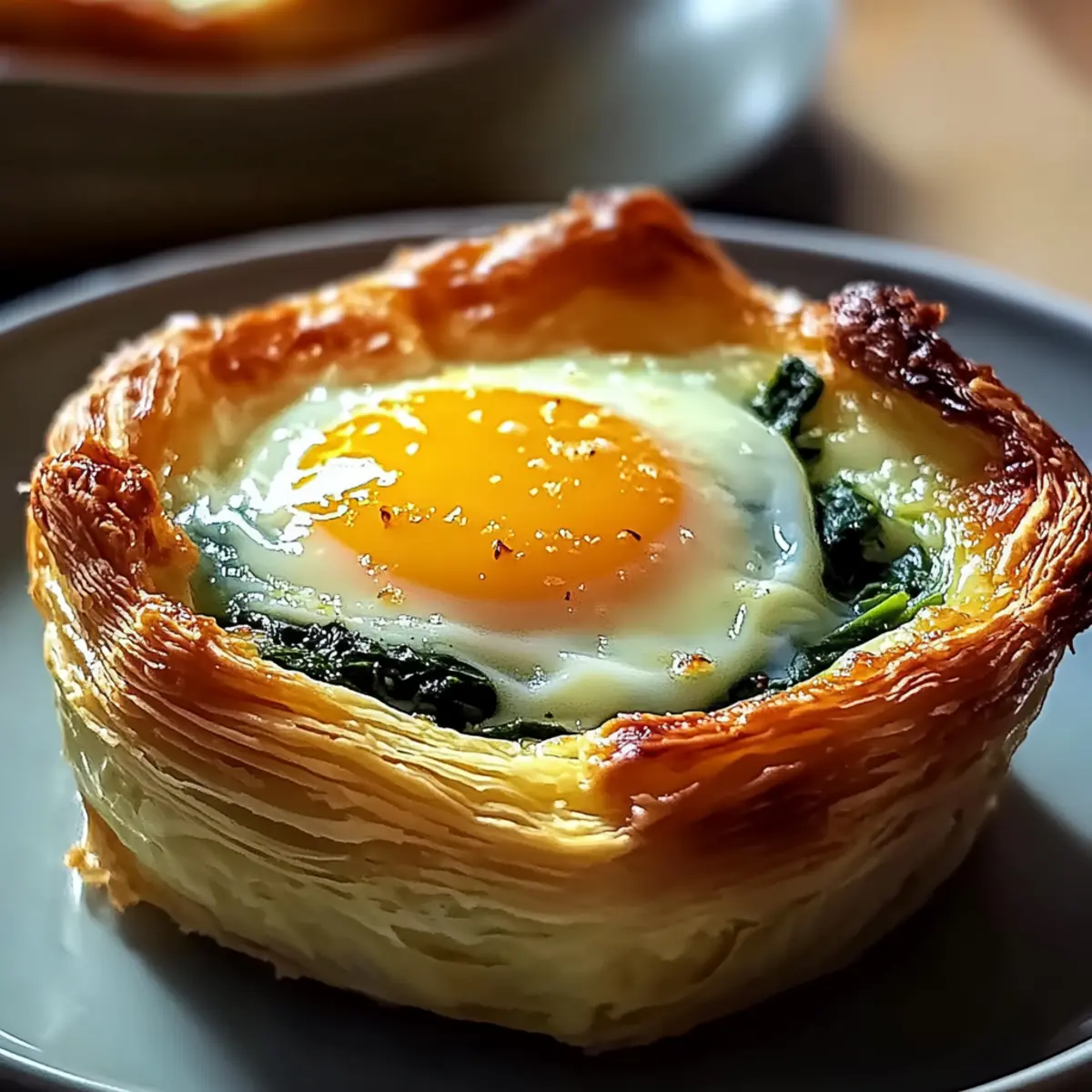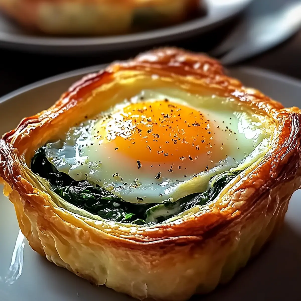 Carefully fill each pastry shell with the creamy spinach mixture until just full, leaving room for the eggs. Crack an egg on top of each filling, letting the yolk nestle beautifully in the mix. Lightly season the eggs with salt and pepper, preparing to transform your dish into the star of the brunch table.