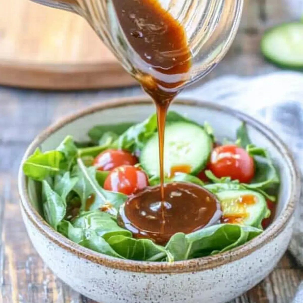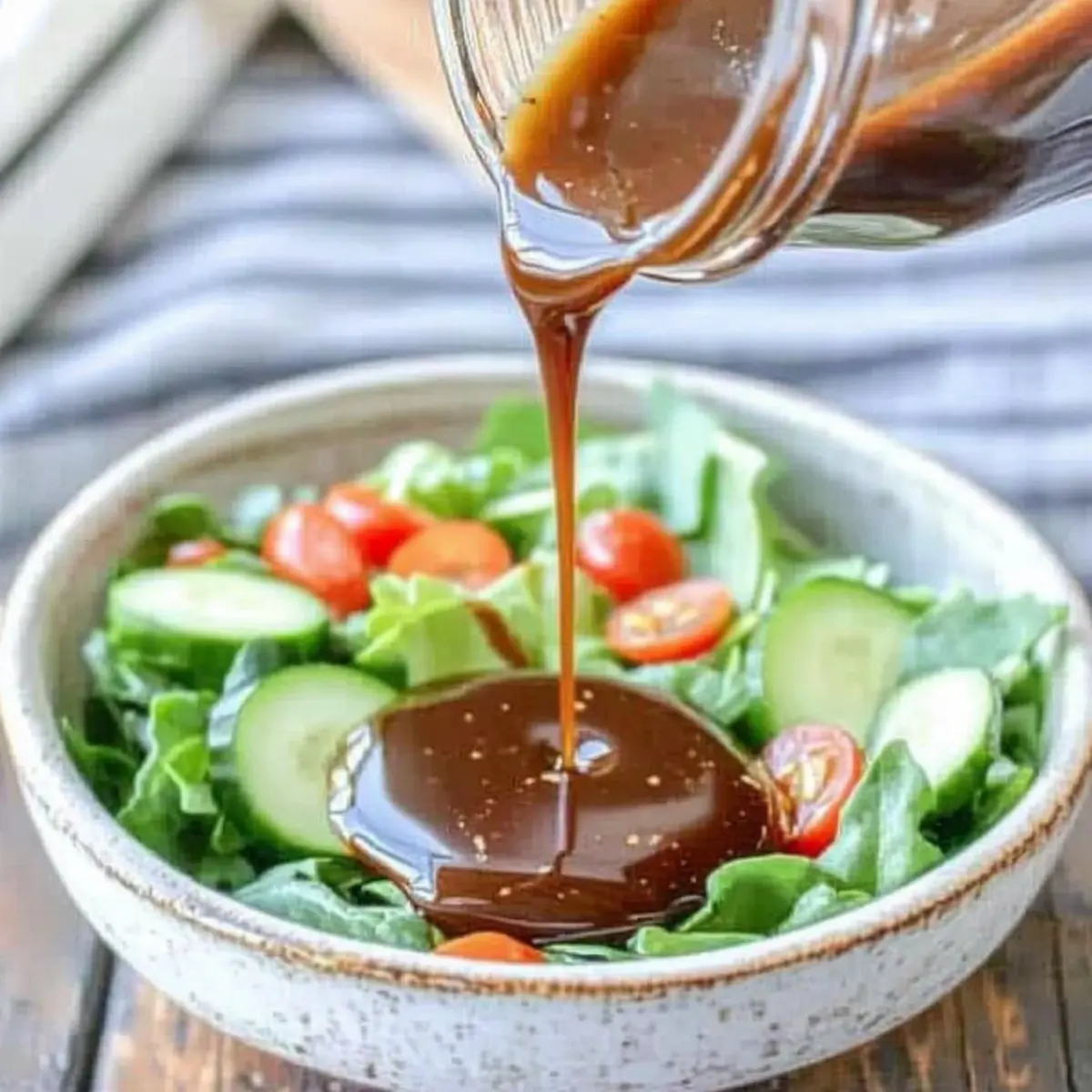 Jump to Recipe Print RecipeAs I whisk together the simple ingredients of this Balsamic Vinaigrette Recipe, I’m often transported back to sun-drenched Italian markets, where fresh produce beckons and vibrant flavors come alive. This 5-minute homemade dressing strikes the perfect balance between sweet and tangy, instantly upgrading any salad or roasted vegetable dish you bring to the table. With the ability to customize it with variations like zesty Honey Lime Jalapeño or classic White Balsamic, this versatile dressing is a go-to for quick meal prep and impressing guests alike. Say goodbye to store-bought options—your taste buds deserve better! Ready to elevate your meals with this delightful dressing? Let’s dive into making it! Why is Balsamic Vinaigrette So Special? Quick Preparation: This Balsamic Vinaigrette can be whipped up in just 5 minutes, perfect for busy weeknight dinners or spontaneous get-togethers. Customizable Love: With variations like Honey Balsamic and Honey Lime Jalapeño Vinaigrette, you can easily tailor this dressing to suit any taste or dish. Elevates Any Dish: Drizzle over fresh greens, grilled chicken, or even pasta salads for an instant flavor boost, transforming ordinary meals into something extraordinary! Healthier Choice: Ditch those store-bought options loaded with preservatives. This homemade vinaigrette is not only gluten-free but also a wholesome, fresher alternative. Crowd-Pleasing Appeal: Whether you’re hosting a gathering or just feeding the family, this dressing is sure to impress with its rich, dynamic flavor! Balsamic Vinaigrette Ingredients • Here’s what you’ll need to make a delightful Balsamic Vinaigrette! For the Dressing Balsamic Vinegar – The heart of this vinaigrette, providing that signature tangy flavor. Honey – Adds sweetness to balance the acidity; you can substitute with agave or maple syrup for a vegan version. Dijon Mustard – Helps emulsify your dressing while adding a subtle kick; replace with whole grain mustard for added depth. Fine Sea Salt – Enhances all the flavors; kosher salt works as an alternative but adjust to taste. Freshly Crushed Black Pepper – Offers a hint of spice; feel free to use white pepper for a softer touch. Garlic Clove – For a fragrant aroma; can be substituted with garlic powder if fresh isn’t on hand. Extra Virgin Olive Oil – Adds richness and a smooth texture; swap with avocado or canola oil if you prefer. Feel free to let your culinary creativity shine with this versatile Balsamic Vinaigrette Recipe! Step‑by‑Step Instructions for Balsamic Vinaigrette Recipe Step 1: Whisk the Base Ingredients In a small mixing bowl, combine 1 tablespoon of honey, 3 tablespoons of balsamic vinegar, 1 teaspoon of Dijon mustard, ½ teaspoon of fine sea salt, ¼ teaspoon of freshly crushed black pepper, and a finely minced garlic clove. Using a sturdy whisk, blend the mixture for about 30 seconds, until the ingredients are well incorporated and you can see a smooth, slightly thick paste forming. Step 2: Emulsify with Olive Oil Gradually pour in ½ cup of extra virgin olive oil while continuously whisking the mixture. Keep whisking for about 1-2 minutes until the dressing is fully emulsified, with a glossy finish indicative of a well-blended vinaigrette. The olive oil will transform the mixture, creating a delightful, rich dressing that’s full of flavor. Step 3: Taste and Adjust Seasoning Take a moment to taste your Balsamic Vinaigrette and assess the balance of flavors. If desired, add a pinch more salt, a dash of honey, or a splash of vinegar to create your perfect blend. This step allows you to customize the vinaigrette to your liking, ensuring it complements your salads or dishes wonderfully. Step 4: Store for Later Use Once the flavors are to your liking, transfer the vinaigrette into a clean jar with a tight-fitting lid. Seal it securely and refrigerate for at least 15 minutes to let the flavors meld together. This resting period enhances the overall taste, making the vinaigrette even more delightful when drizzled over fresh greens or roasted vegetables. Step 5: Shake and Serve Before serving, give your jar a good shake to recombine any ingredients that may have settled. The balsamic vinaigrette is now ready to elevate your meals! Drizzle it over crisp salads, grilled chicken, or roasted veggies for a burst of flavor that’s sure to impress your family and guests alike. Balsamic Vinaigrette Recipe Variations Feel free to let your culinary creativity shine as you explore these delightful twists on the classic balsamic vinaigrette! White Balsamic Vinaigrette: Swap in white balsamic vinegar and use a lighter olive oil for a more delicate flavor profile. This variation is perfect for those who enjoy a milder taste without sacrificing quality or freshness. Honey Balsamic Vinaigrette: Increase the honey for a sweeter dressing, making it a fantastic addition to fruit-based salads. The sweetness pairs beautifully with berries and citrus, creating a harmonious balance that’s absolutely irresistible. Garlic and Honey Variation: Add an extra clove of garlic for a punchy twist, or substitute a bit of honey with fresh lime juice for a zesty kick. This combination will have your taste buds singing, making it an intriguing choice for adventurous palates! Honey Lime Jalapeño Vinaigrette: Incorporate finely chopped jalapeños and fresh lime juice for a spicy, tangy dressing that brings heat and zest. Perfect for drizzling over grilled veggies or tacos, this version packs a flavorful punch that’s sure to impress. Maple Balsamic Variation: Replace honey with maple syrup for a unique, rich sweetness that pairs wonderfully with roasted vegetables. This variation adds an autumnal touch, making it a delightful dressing for seasonal salads and dishes. Avocado Balsamic Vinaigrette: Blend in ripe avocado for a creamy, rich texture that’s perfect for those craving a silkier dressing. The avocado brings healt