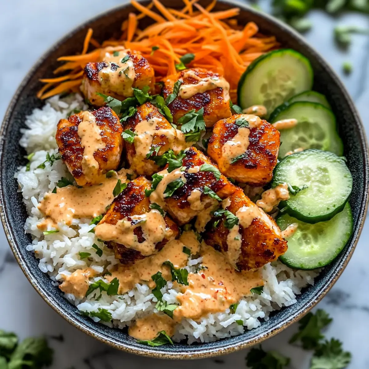 • Chicken Choice: Opt for grilled chicken instead of salmon to cater to poultry lovers; juicy, seasoned chicken pairs beautifully with the bang bang sauce.