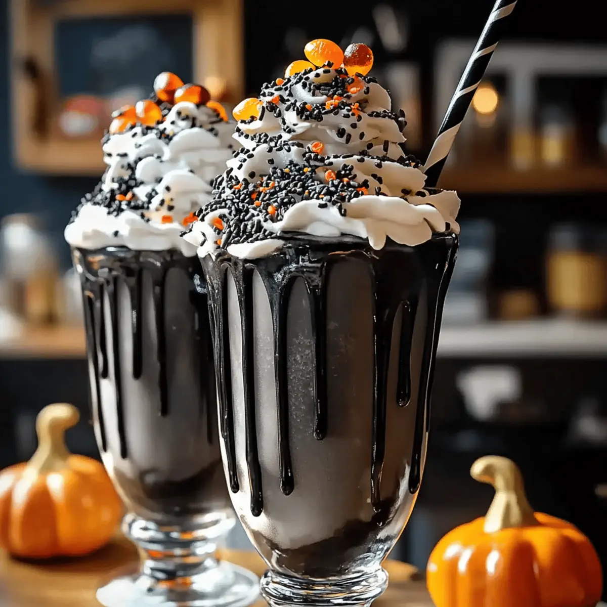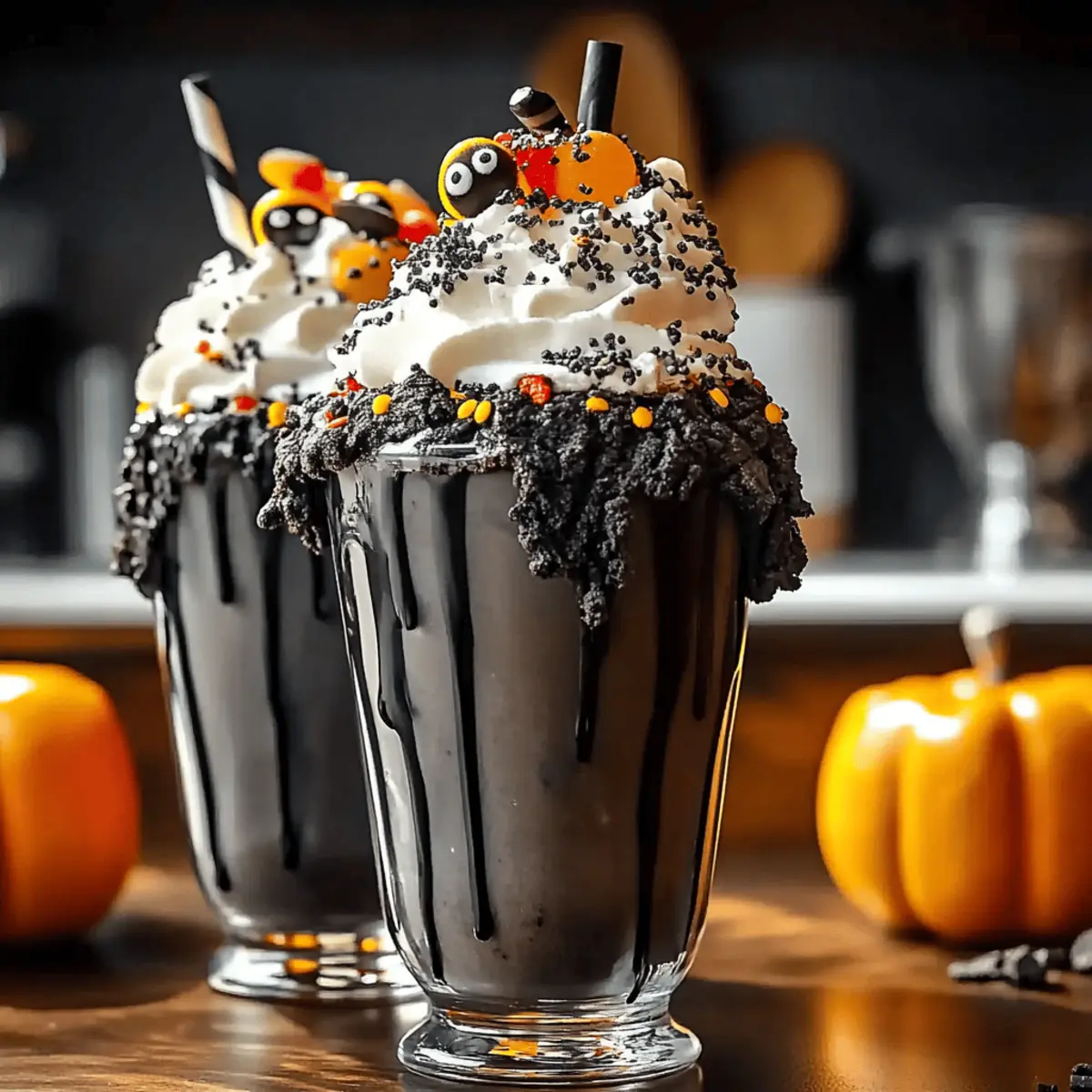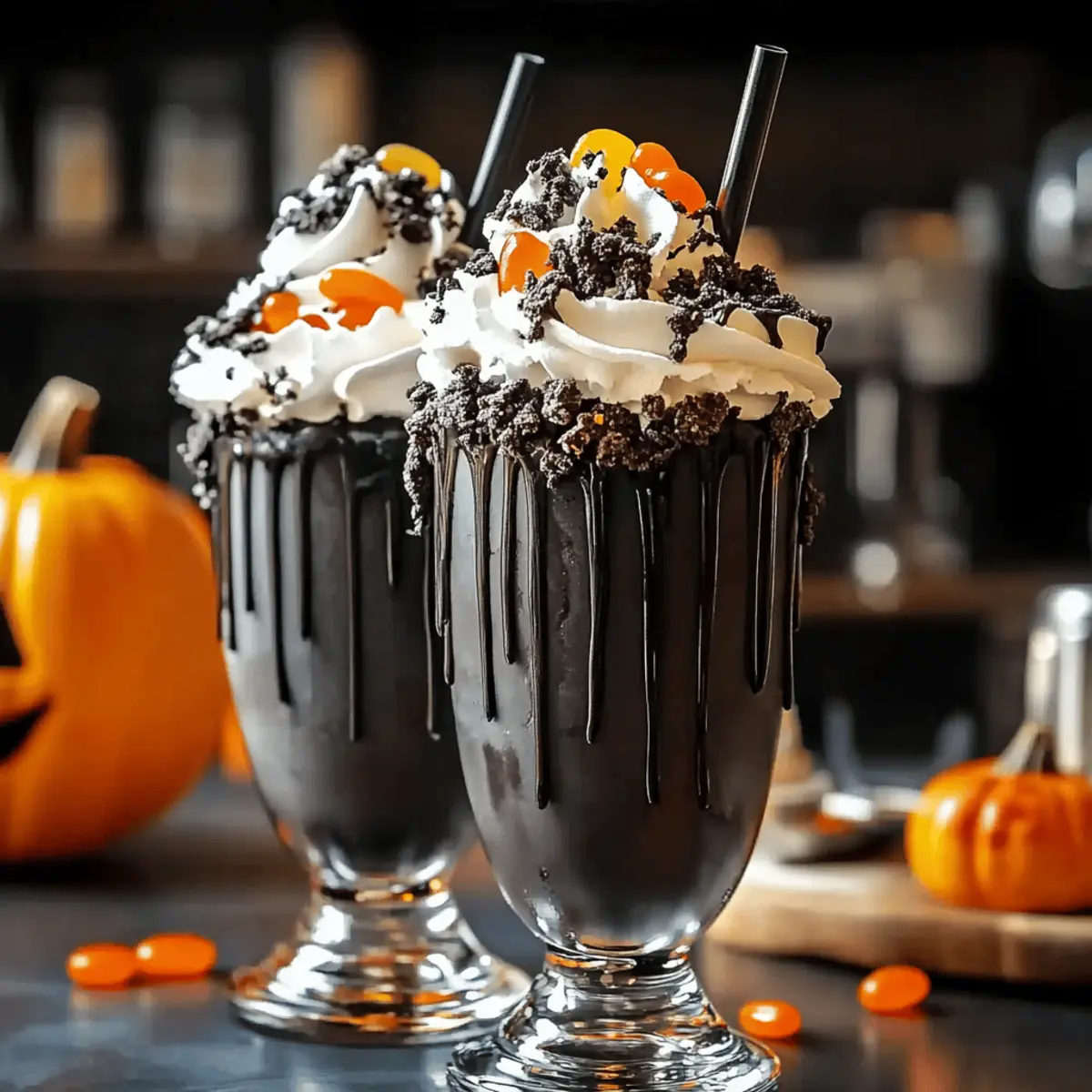 Enjoy a creamy Spooky Black Halloween Milkshake, the perfect treat for festive celebrations, capturing the essence of Halloween in each sip.