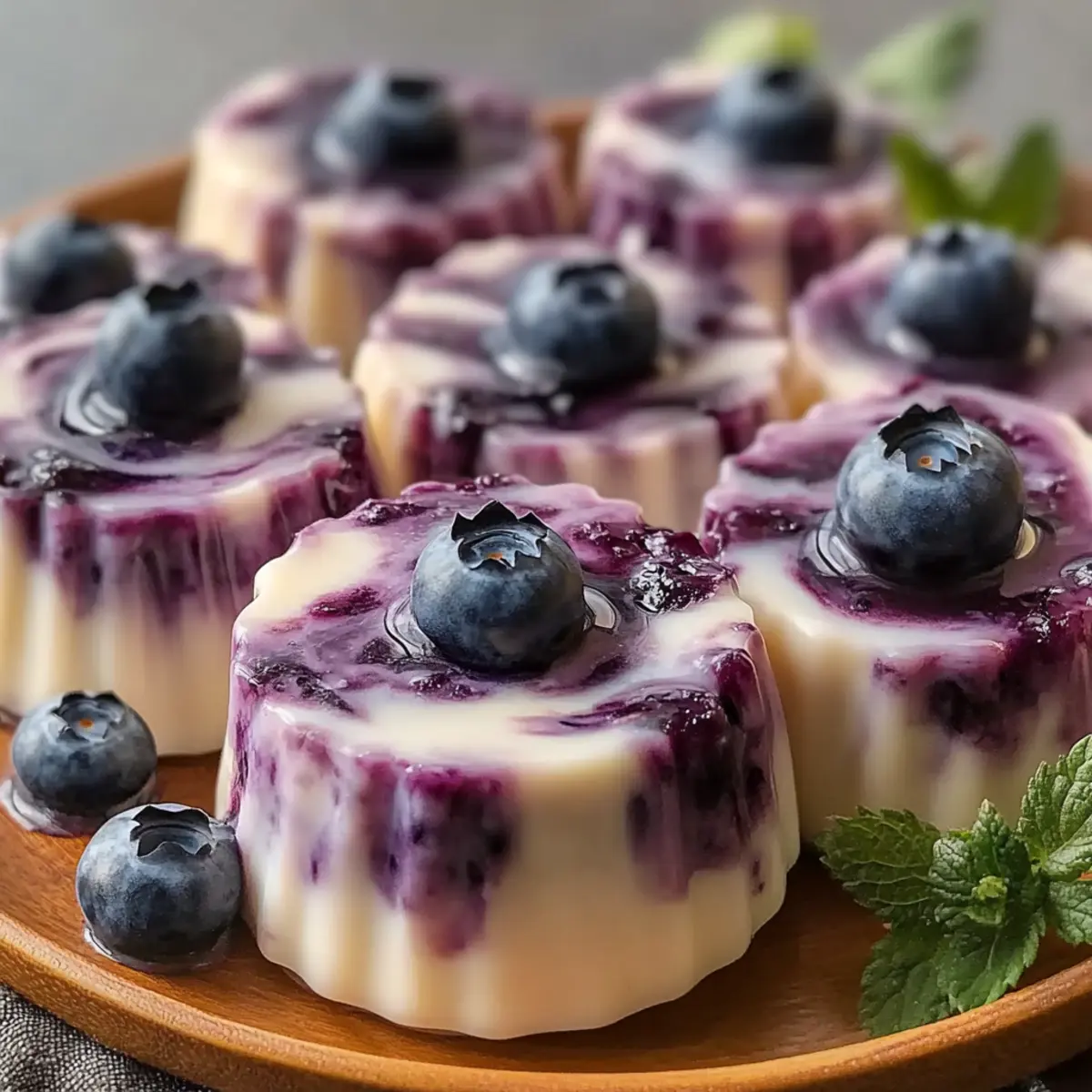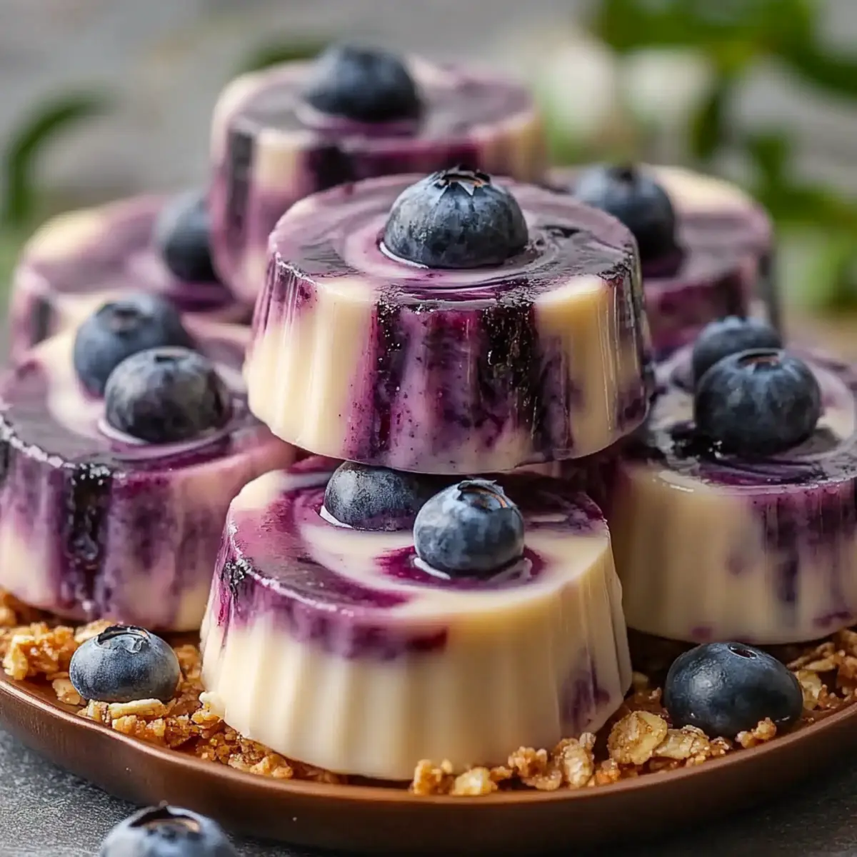 Jump to Recipe Print RecipeAs I rummaged through my kitchen one sweltering afternoon, I stumbled upon a delectable solution for satisfying my sweet tooth without the guilt. Meet my Blueberry Swirl Yogurt Bites—an irresistible frozen treat that combines the creamy goodness of Greek yogurt with a tangy blueberry compote, creating a snack that feels indulgent but is surprisingly healthy. Not only are these delightful bites gluten-free and vegetarian-friendly, but they also prep in no time, making them perfect for busy weekdays or spontaneous cravings. Imagine having a refreshing, nutritious snack on hand—ideal for late-night munchies or a quick pick-me-up on a warm day. Curious about how to make these tasty bites? Let’s dive in and whip up a batch! Why Are Blueberry Swirl Yogurt Bites So Special? Flavorful Explosion: Each bite delivers a burst of fresh blueberry goodness, perfectly mingling with the creamy yogurt, making it a treat you won’t forget. Quick Prep Time: You can whip these up in less than 30 minutes, allowing you to enjoy a delicious snack without a long wait. Versatile Treat: With easy substitutions like mango or strawberries, your flavor options are endless, ensuring every batch can be a new experience. Guilt-Free Indulgence: Packed with protein and antioxidants, these bites satisfy your sweet tooth while keeping health in check. Perfect for Any Occasion: Whether it’s a summer party or a cozy movie night at home, these Blueberry Swirl Yogurt Bites are always a hit. For more healthy snack ideas, check out Yogurt Chocolate Chip and High Protein Bites to keep your snack game strong! Blueberry Swirl Yogurt Bites Ingredients • Here’s everything you need for these delightful Blueberry Swirl Yogurt Bites! For the Compote Blueberries – Fresh berries create a vibrant, flavorful compote. Substitution: Use strawberries, raspberries, or blackberries for different flavors. Lemon Juice – Adds a zesty brightness to the sweetness of the blueberries. Freshly squeezed is preferred for optimal flavor. For the Yogurt Mixture Greek Yogurt – Creamy base packed with protein; keeps you feeling full. Substitution: Use dairy-free yogurt made from almond or coconut milk for a vegan option. Honey/Maple Syrup – Natural sweeteners that enhance the yogurt’s flavor. Adjust sweetness based on your taste preference; can omit for a tangier profile. Vanilla Extract – Infuses depth into the yogurt, enhancing its overall taste. For Topping Granola – A crunchy complement to the creamy yogurt. Opt for gluten-free granola if needed for dietary restrictions. Enjoy creating these healthy Blueberry Swirl Yogurt Bites! Step‑by‑Step Instructions for Blueberry Swirl Yogurt Bites Step 1: Make the Blueberry Compote In a small saucepan, combine your fresh blueberries and freshly squeezed lemon juice over medium heat. Cook for about 4-5 minutes, stirring occasionally until the mixture thickens to a jam-like consistency—this beautiful compote should have a rich, glossy appearance. Once done, remove it from heat and let it cool while you prepare the yogurt. Step 2: Prepare the Yogurt Mixture In a mixing bowl, whisk together the creamy Greek yogurt, honey (or maple syrup), and vanilla extract. Aim for a smooth and velvety consistency; this should take about 2-3 minutes of whisking. Taste the mixture and adjust sweetness if necessary, ensuring it’s deliciously sweet before moving on to the next step. Step 3: Line the Muffin Tin Take a mini muffin tin and line each cup with paper liners, or you can use silicone molds for easier removal. This step is essential for preventing the yogurt bites from sticking. Once ready, use a tablespoon to scoop the yogurt mixture into each cup, filling them about three-quarters full for a nice bite-sized treat. Step 4: Swirl in the Compote Add a small spoonful of your blueberry compote over the yogurt in each cup. Using a toothpick, swirl it gently through the yogurt to create a beautiful marbled effect. Be careful not to overmix—this visual swirl of blueberry goodness in your Blueberry Swirl Yogurt Bites will be delightful! Step 5: Add Granola Topping If you desire a bit of crunch, now’s the time to sprinkle granola on top of each yogurt cup. This topping not only adds texture but also enhances the flavor. Just a light layer will do—enough to complement the creaminess without overpowering the yogurt and berries below. Step 6: Freeze the Bites Carefully transfer the muffin tin to your freezer and allow the yogurt bites to freeze for at least 2 hours, or until they are completely firm. You’ll know they’re ready when you can tap the mold, and they feel solid and set—perfectly chilled and refreshing for snacking. Step 7: Serve and Enjoy Once your Blueberry Swirl Yogurt Bites are frozen, gently remove them from the molds. If you used muffin liners, peel them off carefully. Arrange your yogurt bites on a serving platter and consider garnishing with fresh blueberries or a sprinkle of lemon zest for an extra pop of flavor and color before serving. Expert Tips for Blueberry Swirl Yogurt Bites Taste Test First: Always taste the yogurt mixture before freezing to ensure it’s sweet enough for your preference; adjusting sweetness now guarantees delightful bites later. Choose the Right Molds: Silicone molds make for easy removal, while muffin tins require liners to prevent sticking; either option yields tasty Blueberry Swirl Yogurt Bites! Layer with Parchment: When freezing, separate layers of bites with parchment paper in an airtight container to keep them from sticking together. Mix It Up: Feel free to swap out blueberries for other fruits like mango or strawberries to keep your snacks exciting and customizable! Portion Sizes Matter: Fill your cups about three-quarters full; it allows room for the compote and maintains a perfect bite-sized treat. How to Store and Freeze Blueberry Swirl Yogurt Bites Fridge: Keep the Blueberry Swirl Yogurt Bites in an airtight cont