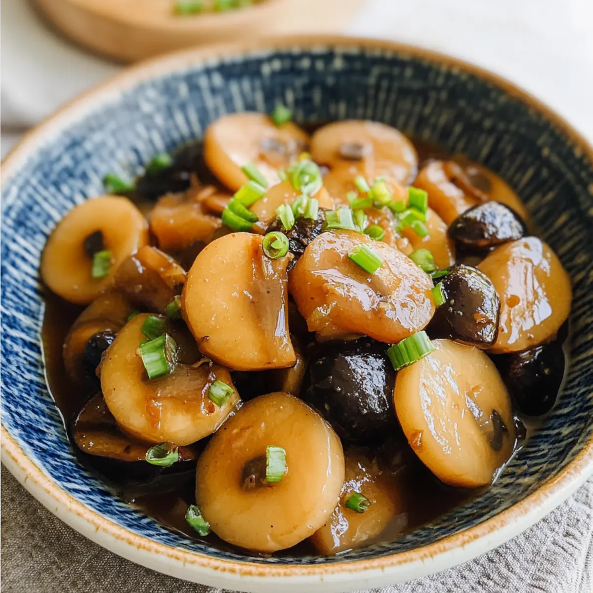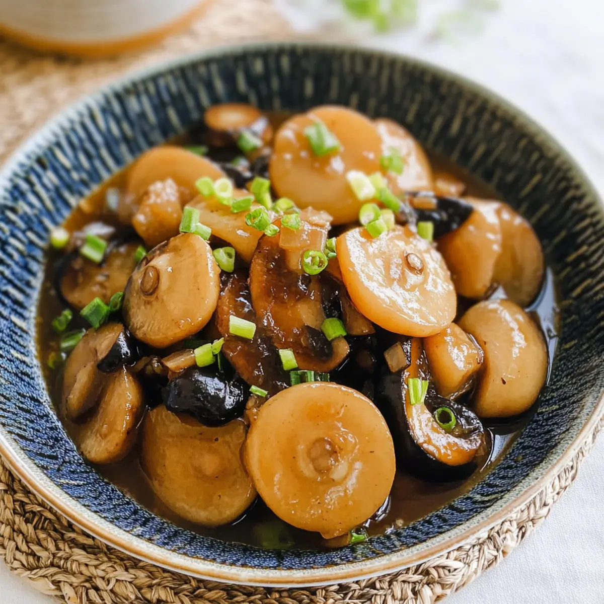 Jump to Recipe Print RecipeThe first sweet wafts of soy sauce and ginger brought me right back to my favorite Asian bistro, where the flavors danced with every bite. I knew I had to recreate that warmth in my kitchen with my recipe for Braised Daikon with Shiitake Mushrooms. This delightful dish combines the mild sweetness of tender daikon with the umami depth of shiitake mushrooms, creating an irresistible balance that perfectly complements any meal. Not only is this dish quick to prepare, making it a superb choice for busy weeknights, but it’s also a healthy, vegan-friendly side that everyone will love. Curious about how to elevate your everyday dinner into an amazing experience? Let’s dive into how to make this flavorful gem! Why Is Braised Daikon So Irresistible? Simplicity in Preparation: This dish requires minimal effort, making it perfect for both novice cooks and seasoned chefs alike. Dazzling Flavor Pairing: The mellow daikon melds beautifully with the earthy shiitake mushrooms for a unique umami explosion. Vegan and Healthy: With low calories and rich antioxidants, this recipe is a guilt-free delight that fits any dietary needs. Versatile Side Dish: Pair it with rice, noodles, or a variety of Asian-inspired meals, just like our Watermelon Berry Salad for a sun-kissed summer twist! Crowd-Pleaser: This recipe is sure to impress at dinner parties or family gatherings, offering a touch of home-cooked goodness everyone will rave about. Braised Daikon with Shiitake Mushroom Ingredients • Discover the essential components to create this delightful dish! For the Braise Small dried shiitake mushrooms – Provides a rich umami flavor; feel free to swap in fresh shiitake if you’re in a pinch. Hot water – Used to rehydrate dried mushrooms; ensure it’s hot for effective soaking. Neutral oil (vegetable, canola, avocado) – Perfect for cooking and adding flavor; sesame oil also works well for a unique twist. Large slice of ginger – Infuses warmth and spice; fresh ginger is best, but ground ginger can work in a pinch. Daikon – The star of the dish, adding sweet flavor and crunch; look for smaller daikon for extra tenderness. Star anise – Contributes a distinctive aromatic flavor; omit it if you prefer a milder taste. Bay leaf – Enhances depth of flavor; thyme is a great alternative if you don’t have bay leaves. Oyster sauce (vegetarian option available) – Lends richness; substitute with soy sauce or mushroom sauce for a vegan option. Light soy sauce – Boosts umami; opt for low-sodium soy sauce if that’s your preference. Cornstarch – Essential for thickening the sauce; arrowroot starch can be used as a substitute if needed. For Garnish Chopped scallion (optional) – Adds a fresh touch and vibrant color; feel free to skip it if desired. Step‑by‑Step Instructions for Braised Daikon with Shiitake Mushrooms Step 1: Soak Mushrooms Begin by rinsing the small dried shiitake mushrooms under running water to remove any impurities. Place them in a bowl and cover with hot water. Allow the mushrooms to soak for 2 hours, or overnight if you have time, until they are fully rehydrated and plump, ready to lend their rich umami flavor to the dish. Step 2: Prepare Mushroom Liquid Once the shiitake mushrooms have soaked, squeeze them gently to remove excess water and set them aside. Strain the soaking liquid through a fine mesh sieve into a measuring cup to discard any sediment and ensure clarity. You should have about 1 cup of this aromatic liquid; add hot water if necessary to reach the desired amount for your Braised Daikon with Shiitake Mushrooms. Step 3: Cook Aromatics In a medium pot or wok, heat 2 tablespoons of neutral oil over medium heat until shimmering. Add the chopped slice of ginger and the rehydrated shiitake mushrooms, sautéing for about 3 minutes until fragrant. This step sets the foundation for the savory flavor profile of your dish, filling your kitchen with warm, inviting aromas. Step 4: Braise Daikon Add the diced daikon to the pot along with the mushroom soaking liquid, star anise, bay leaf, oyster sauce, and light soy sauce. Stir well to combine all the ingredients, then cover with a lid. Allow the mixture to simmer for 20-25 minutes, checking occasionally. The daikon should become tender and translucent, absorbing all the delicious flavors, while ensuring the pot doesn’t dry out—add up to ¼ cup of water if needed. Step 5: Thicken Sauce After the daikon has reached tenderness, uncover the pot and prepare to thicken the sauce. Mix 1 tablespoon of cornstarch with an equal amount of cold water to create a slurry, then stir it into the braise. Cook for an additional 2-3 minutes until the sauce thickens and coats the daikon and mushrooms beautifully. Taste and adjust seasoning with salt if necessary, then garnish with chopped scallions for a fresh touch before serving. What to Serve with Braised Daikon with Shiitake Mushrooms? A delightful array of flavors awaits you as you create a complete meal to enjoy alongside your nourishing side dish. Steamed Jasmine Rice: The fluffy grains soak up the rich sauce, offering a satisfying base for the savory braise. Stir-Fried Bok Choy: A quick stir-fry with garlic and sesame oil adds vibrant greens and a crunchy texture that complements the soft daikon. Savory Tofu Skewers: Marinated and grilled tofu enhances protein while echoing the umami of the mushrooms, making your meal hearty and satisfying. Sesame Noodles: The nutty, slightly sweet sauce of cold sesame noodles balances the dish’s warmth, making for an excellent contrast. Spicy Kimchi: This fermented delight injects a punch of heat and tang, enhancing the mellow flavors of the daikon—a must-try combo! Mango Salad: A fruity salad with a zesty dressing adds freshness and sweetness, perfectly playing off the dish’s savory notes. Coconut Green Tea: Sip a refreshing beverage that brings a smooth, creamy element to the meal while adding an exotic twist. Coconu