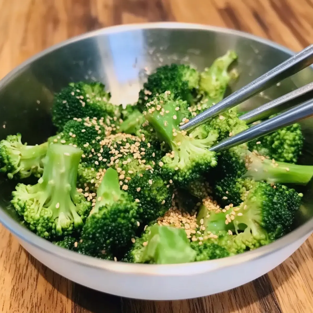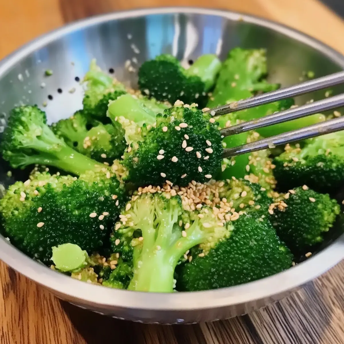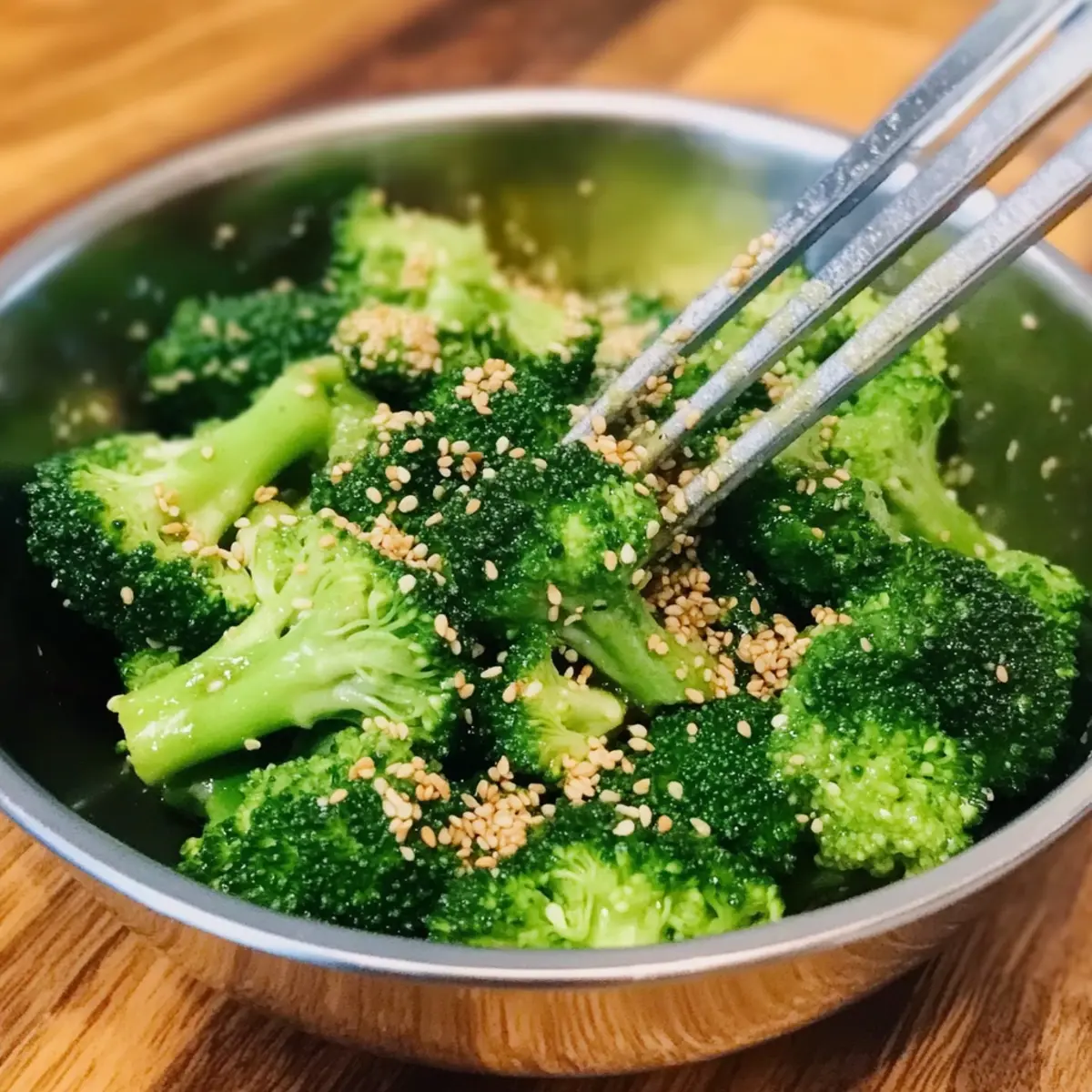 Jump to Recipe Print RecipeIn just five minutes, I discovered a delightful gem that transformed my typical dinner routine: Broccoli Namul, or Korean Sesame Garlic Broccoli. This vibrant side dish is a remarkable combination of fresh, crunchy broccoli, aromatic garlic, and a splash of nutty sesame oil. Beyond its captivating flavors, this high-fiber vegan creation is a breeze to whip up, making it perfect for those of us juggling busy schedules. Whether served as a colorful addition to your meal prep or paired alongside grilled proteins and noodles, Broccoli Namul never ceases to impress. Have you ever tasted a side dish that not only nourishes but also elevates your meal experience? Why is Broccoli Namul a must-try? Simplicity at Its Best: Prepare this vibrant dish in just five minutes, making it an easy choice for busy weeknights. Flavor Explosion: The combination of garlic and nutty sesame oil makes each bite a taste sensation that you can’t resist. Healthy and Nutritious: Packed with fiber and low in calories, Broccoli Namul is an excellent addition to your diet, especially for meal preppers. Customization Options: Feel free to add in your favorite vegetables or spices to personalize this dish, just like with a Crunchy Broccoli Salad. Crowd-Pleasing Appeal: This dish not only complements various meals but also stands out on its own as a fantastic side, perfect for impressing friends and family. Cultural Flair: Enjoy a taste of Korean cuisine in the comfort of your own home, bringing a touch of tradition and flavor to your table. Broccoli Namul Ingredients For the Broccoli • Broccoli – Provides the base of the dish with high fiber content; aim for about 400 g, cut into bite-sized florets for optimal cooking. For the Dressing • Sesame oil – A crucial ingredient that adds depth and a nutty flavor; be sure to use a quality product for the best result. • Garlic – Finely minced to enhance the flavor throughout the dish, delivering that delightful pungency. • Salt – Enhance the overall taste; adjust to your personal preference for the right balance. • Black pepper – Freshly ground offers a subtle heat that brightens the dish; a little goes a long way! For the Crunch • Toasted sesame seeds – Essential for texture and nutty flavor; consider using black sesame seeds for a beautiful presentation. Optional Enhancements • Soy sauce – An excellent way to add umami depth for those who enjoy a richer flavor. • Sugar – Use a touch to balance flavors, especially if your broccoli is particularly bitter. • Green onions – Finely chopped for garnish, adding freshness and a pop of color. Broccoli Namul is not only quick to make but also brings a wave of authentic Korean flavor to your table! Step‑by‑Step Instructions for Broccoli Namul Step 1: Blanch the Broccoli Bring a large pot of salted water to a boil over high heat. Once the water is bubbling vigorously, add about 400 g of broccoli florets, cooking them for 45–60 seconds until they turn bright green and tender-crisp. Drain the broccoli immediately and rinse it under cold water to halt the cooking process and preserve that vibrant color. Step 2: Prepare the Dressing In a mixing bowl, combine the blanched broccoli with finely minced garlic, a drizzle of sesame oil, salt, and freshly ground black pepper. Use about 1-2 tablespoons of sesame oil for an authentic flavor. Toss everything gently to ensure the broccoli is evenly coated with the aromatic mixture, bringing a delightful aroma to your kitchen. Step 3: Add the Crunch Sprinkle toasted sesame seeds over the broccoli mixture, adding about 1-2 tablespoons for a delightful crunch. Toss the broccoli namul again to distribute the seeds evenly throughout the dish. This step enhances the texture and introduces a nutty flavor that makes every bite satisfying. Step 4: Adjust Seasoning and Serve Taste your Broccoli Namul and adjust the seasoning if needed, adding more salt, sesame oil, or even a splash of soy sauce for extra umami if desired. You can serve this dish warm as a side or chilled as part of a meal prep arrangement. This vibrant side is perfect alongside grilled proteins or as a topping for noodles. Broccoli Namul Variations & Substitutions Feel free to play around with the flavors and ingredients in your Broccoli Namul for a truly customized experience! Veggie Swap: Substitute broccoli with spinach, green beans, or sautéed bok choy for exciting variations in taste and texture. Each option adds a unique flair, transforming the dish entirely. Nut-Free Option: Use sunflower oil instead of sesame oil to retain a delightful flavor without the nuts, making it perfect for those with allergies. Spicy Kick: Add a pinch of red pepper flakes or sliced fresh chili for a bit of heat that dances on your palate. This simple tweak brings a vibrant twist to the original recipe. Herb Infusion: Incorporate fresh herbs like cilantro or parsley for a garden-fresh element. These aromatic additions can uplift the overall flavor profile beautifully. Umami Boost: Add a splash of soy sauce or Tamari for an extra dose of umami depth, creating a richer, more complex flavor palette. Sweet Balance: Use a teaspoon of maple syrup or agave nectar to balance the dish’s flavors, especially if you’re using varieties of broccoli that lean toward bitterness. Crunchy Upgrades: Experiment with different toppings like chopped nuts or crispy fried onions to enhance texture and flavor. This delightful crunch will keep everyone coming back for more. Add Protein: Toss in some cooked mung beans or chickpeas for added heartiness and protein, making the dish more substantial and satisfying on its own. With these variations, your Broccoli Namul can evolve into countless delicious interpretations! For more inspiring broccoli recipes, check out our Cheesy Broccoli Casserole or try the refreshing Broccoli Crunch Salad to keep things interesting at the dinner table. Expert Tips for Broccoli Namul Perfe