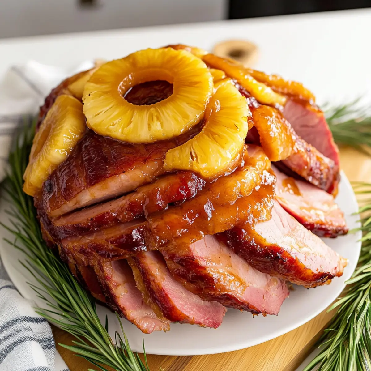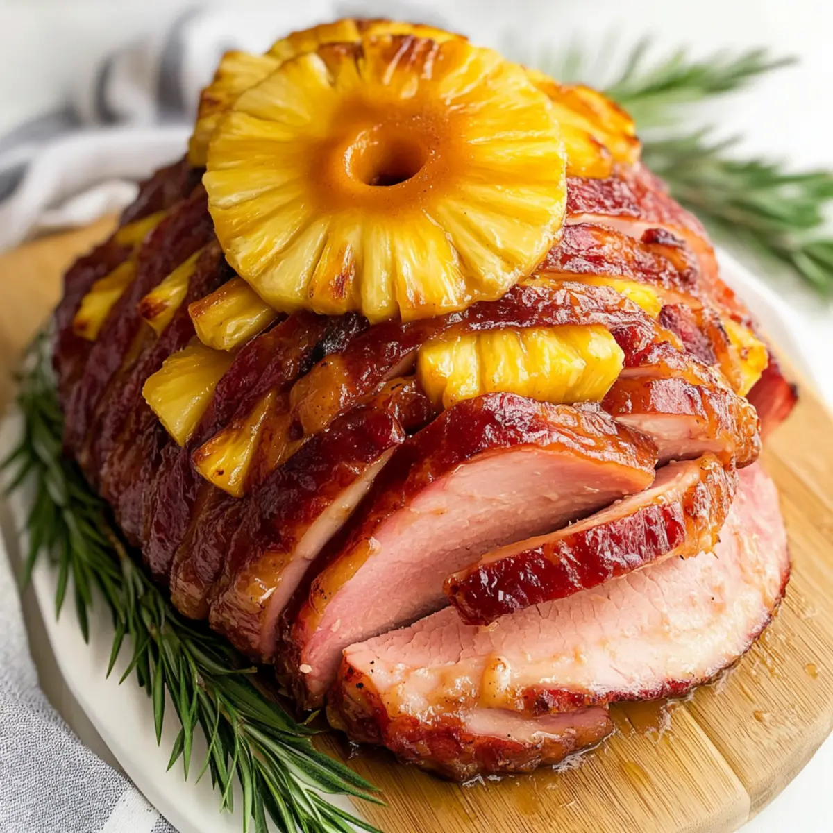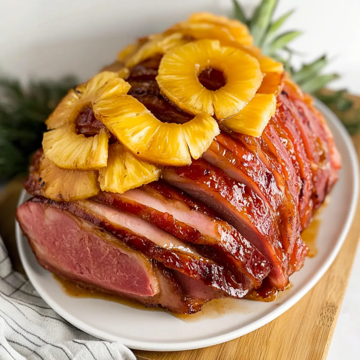 Jump to Recipe Print RecipeThe aroma wafting through your kitchen can instantly transport you to a cozy holiday gathering, filled with laughter and love. Today, I’m excited to share my Easy Brown Sugar Glazed Pineapple Ham—a recipe that marries the natural sweetness of pineapple with the rich depth of brown sugar for a truly mouthwatering main dish. This dish isn’t just quick to prepare; it allows you to spend more time with loved ones and less time in the kitchen. Its tender, juicy texture makes it a guaranteed crowd-pleaser, while the possibility of variations, like a honey glaze or spicy kick, keeps every meal fresh and exciting. Curious about how this delightful centerpiece can elevate your next feast? Let’s dive in! Why is this ham so special? Irresistible sweetness: The combination of brown sugar and juicy pineapple creates a glaze that makes every bite a delightful experience. Minimal effort: With only three ingredients, this recipe is as straightforward as it gets—perfect for both novice cooks and seasoned chefs looking to save time. Versatile options: Whether you prefer a honey glaze or a spicy twist, this dish adapts beautifully to suit any palate. Holiday centerpiece: Impress your guests with a dish that’s not only visually stunning but also a true crowd-pleaser. Tasty leftovers: You’ll love the flexibility of transforming any leftovers into exciting new meals, whether in sandwiches or salads, just like using the remaining ham from your Savory Slow Cooker dish. Enjoy your cooking adventure! Brown Sugar Glazed Pineapple Ham Ingredients For the Ham • Bone-in spiral ham – Pre-cooked for convenience; any fully cooked ham works well here. • Pineapple slices (with juice) – Adds sweetness and moisture; fresh pineapple can be used, but add extra liquid for moisture. • Brown sugar – Provides sweetness and creates a luscious caramelized glaze; consider maple syrup for a richer alternative. Optional Variations • Honey – Use in place of brown sugar for a unique sweetness that enhances the glaze. • Crushed red pepper flakes – Mix in for a spicy kick and a balancing heat to the sweet glaze. • Fresh herbs (rosemary or thyme) – Incorporate for an aromatic twist that pairs beautifully with the ham. Step‑by‑Step Instructions for Brown Sugar Glazed Pineapple Ham Step 1: Preheat the Oven Begin by preheating your oven to 350°F (175°C). This temperature is perfect to ensure your Brown Sugar Glazed Pineapple Ham cooks evenly and thoroughly. As the oven heats, you’ll create a warm and inviting kitchen atmosphere filled with anticipation for what’s to come. Step 2: Prepare the Ham Remove all packaging from the bone-in spiral ham and gently place it into a large, oven-safe casserole dish. The dish should be deep enough to catch all the delicious juices that will be released during cooking. Take a moment to admire the ham, with its beautiful spiral cuts, ready to soak up the flavors. Step 3: Add Pineapple Slices Carefully insert pineapple slices between the spiral cuts of the ham for added flavor and moisture. Pour the reserved pineapple juice over the ham, ensuring it’s well-coated. This not only enhances the taste but also keeps the ham juicy as it roasts to perfection, making your Brown Sugar Glazed Pineapple Ham truly delightful. Step 4: Apply the Brown Sugar Evenly sprinkle brown sugar over the surface of the ham and the pineapple slices. Use your hands to gently rub it into the meat and the fruit, creating a lovely glaze. As you do this, you’ll notice the sugar beginning to melt slightly, which promises a beautifully caramelized finish later on. Step 5: Cover and Bake Cover the ham with aluminum foil to retain moisture and prevent it from drying out. Place the covered dish in the preheated oven, allowing the ham to bake for about 1.5 hours. During this time, the sugars will caramelize, and you can expect a tempting aroma to fill your kitchen. Step 6: Baste Periodically About every 30 minutes, carefully remove the foil and baste your ham with the juices collected in the bottom of the dish. This step is crucial as it enhances the flavor and ensures your Brown Sugar Glazed Pineapple Ham remains juicy and succulent throughout the cooking process. Step 7: Apply a Glaze (Optional) If you have a glaze packet, now is the time to mix it with some of the retained pineapple juice. Use a brush to apply this glaze generously over the ham in the final 30 minutes of cooking. This adds an extra layer of sweetness and creates a beautiful glossy finish that your guests will appreciate. Step 8: Check for Doneness After 1.5 hours, check if the ham is hot throughout and the glaze is golden brown. The brown sugar should have formed a deliciously caramelized crust. If necessary, continue baking for additional time until it reaches the desired temperature, usually around 140°F (60°C). Step 9: Slice and Serve Once your Brown Sugar Glazed Pineapple Ham is perfectly cooked and glistening, remove it from the oven. Let it rest for about 10 minutes before slicing. This allows the juices to redistribute, ensuring each slice is tender and packed with flavor. Serve it with the pineapple slices alongside for a stunning presentation. Expert Tips for Brown Sugar Glazed Pineapple Ham Basting Regularly: Baste the ham every 30 minutes to lock in moisture and amplify the flavors, ensuring your Brown Sugar Glazed Pineapple Ham remains succulent. Foil Covering: Always cover the ham with aluminum foil during baking. This prevents drying out, leaving you with a tender and juicy main dish. Temperature Check: Use a meat thermometer to ensure your ham reaches an internal temperature of 140°F (60°C) for optimal flavor and safety. Let it Rest: After baking, allow the ham to rest for about 10 minutes before slicing. This helps the juices redistribute, resulting in tender, flavorful slices. Experiment with Variations: Feel free to try out different glazes, such as honey or spicy options. This