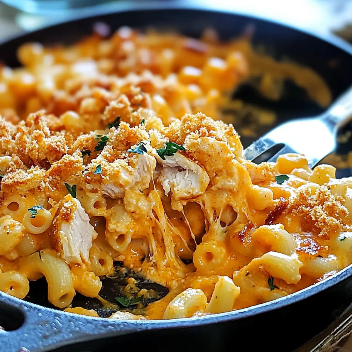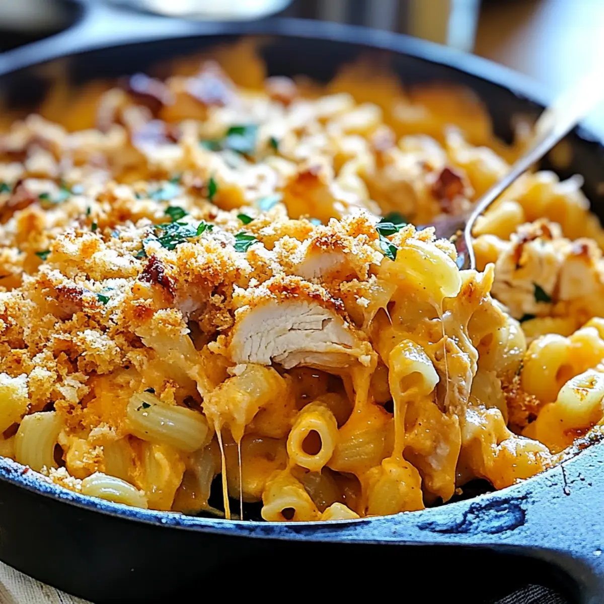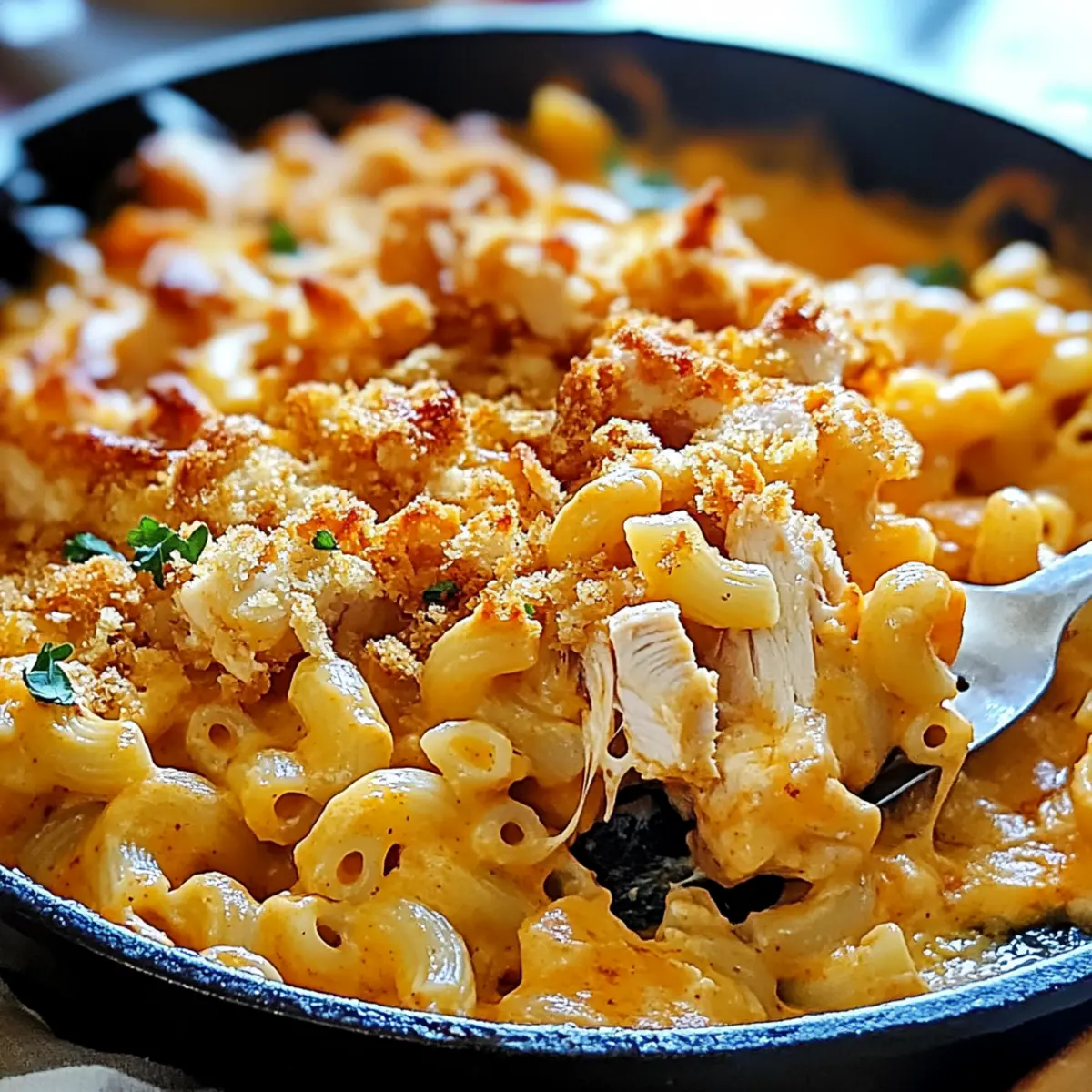 Jump to Recipe Print RecipeThe aroma of spicy buffalo sauce wafts through the kitchen, promising a comforting meal that warms more than just the belly. Enter Spicy Buffalo Chicken Macaroni and Cheese—my go-to dish for cozy evenings or lively gatherings. Not only does this satisfying comfort food come together in under an hour, making it perfect for busy weeknights, but it also offers a deliciously tangy twist on the classic mac and cheese we all love. And don’t worry; it’s fully customizable! Want a lighter version? Or maybe a vegetarian option to please all your guests? This dish has got you covered. Ready to spice up your dinner routine? Let’s dive into this cheesy delight that’s sure to impress! Why is Buffalo Chicken Macaroni Special? Elevated Comfort Food: This Spicy Buffalo Chicken Macaroni and Cheese takes a beloved classic and adds an exciting kick that’s sure to please your taste buds. Customizable Options: Whether you’re looking for a lighter variation or a veggie-packed version, this recipe adapts effortlessly to your dietary needs. Quick and Easy: With a preparation time of under an hour, you can whip this up on busy weeknights without breaking a sweat. Crowd-Pleaser: Perfect for gatherings, it’s a dish that appeals to everyone—once you serve it, everyone will come back for seconds! For a refreshing side, consider pairing it with a simple side salad or some tasty garlic bread. Enjoy the zesty flavors in every spoonful! Buffalo Chicken Macaroni and Cheese Ingredients For the Pasta • Macaroni Pasta – The hearty base of this dish; feel free to use whole wheat or gluten-free pasta for a healthier twist. For the Filling • Cooked Chicken – This essential protein absorbs the zesty buffalo flavor; swap it with chickpeas for a delightful vegetarian version. • Buffalo Sauce – The star seasoning that delivers that spicy tang; adjust the amount to dial in the heat to your preference. For the Cheese Sauce • Butter – Adds richness to your cheese sauce; try using olive oil for a lighter alternative. • Cheddar Cheese – This creamy goodness creates a luscious texture; opt for low-fat cheese if you’re aiming for a healthier meal. • Cream – Enhances the smoothness and binds the ingredients; feel free to substitute with whole milk or non-dairy milk for a dairy-free option. For the Topping • Breadcrumbs (optional) – Provide a delightful crunch on top; can be swapped with crushed crackers for a variation or omitted altogether for a softer finish. Get ready to dive into a heartwarming bowl of Buffalo Chicken Macaroni and Cheese, an unforgettable twist on a classic comfort food! Step‑by‑Step Instructions for Buffalo Chicken Macaroni and Cheese Step 1: Cook Pasta Begin by bringing a large pot of salted water to a boil. Add your macaroni pasta and cook according to package instructions, typically around 8-10 minutes, until al dente. Once done, drain the pasta in a colander and set it aside, allowing it to cool slightly while you prepare the rest of the dish. Step 2: Prepare Chicken In a medium skillet over medium heat, combine the cooked chicken with your desired amount of buffalo sauce. Stir frequently for about 5–7 minutes until the chicken is heated through and nicely coated with the spicy sauce. This step infuses the chicken with flavor, making it the star of your Buffalo Chicken Macaroni and Cheese. Step 3: Make Cheese Sauce In a large pot over medium heat, melt 4 tablespoons of butter until it bubbles gently. Gradually whisk in ½ cup of flour to form a roux, stirring continuously for about 2 minutes until golden. Slowly add 2 cups of cream, continuing to whisk until the mixture is smooth and begins to thicken, roughly 3-4 minutes. Incorporate 2 cups of shredded cheddar cheese, stirring until melted and creamy. Step 4: Combine Ingredients Once the cheese sauce is smooth, fold in the cooked macaroni and the buffalo chicken mixture. Stir gently but thoroughly, ensuring each piece of pasta is well-coated with the cheesy and spicy goodness. Allow the mixture to heat through for an additional minute, melding all the flavors together. Step 5: Bake (optional) If you prefer a baked topping, preheat your oven to 350°F (175°C) while transferring the macaroni mixture into a greased baking dish. If desired, sprinkle a layer of breadcrumbs over the top for added crunch. Bake in the preheated oven for about 20-25 minutes until the top is bubbly and golden brown, creating a delightful contrast to the creamy inside. Step 6: Serve Once baked, remove your Buffalo Chicken Macaroni and Cheese from the oven and let it sit for a few minutes to cool slightly. Serve hot, garnished with fresh parsley or additional buffalo sauce if desired. This dish is perfect for sharing, bringing warmth and comfort to any meal. Tips for the Best Buffalo Chicken Macaroni and Cheese Stir Constantly: To achieve a smooth cheese sauce, make sure to stir continuously while adding the cream and cheese. This prevents clumping and ensures a velvety consistency. Adjust Heat Levels: Taste the buffalo sauce before mixing it in. Start with a smaller amount, and add more if you like it spicier. Remember, you can always add more heat, but it’s hard to take it away! Bake for Crunch: If baking, keep an eye on the breadcrumbs. They should be golden brown while the cheese sauce remains creamy underneath. This contrast in texture is key! Make Ahead Magic: Assemble the dish in advance and refrigerate. When ready to bake, allow it to come to room temperature before placing it in the oven, adjusting cooking time as needed. Mind the Pasta: Don’t overcook the macaroni; it should be al dente before mixing it with the sauce. The pasta will continue to soften in the oven, ensuring it retains the perfect bite. Customize Wisely: Feel free to experiment with mix-ins like sautéed veggies or different types of cheese for your Buffalo Chicken Macaroni and Cheese. This dish is all about making it your own! Wh