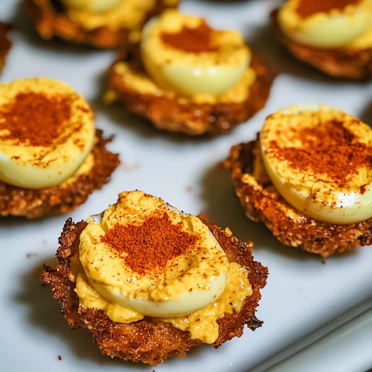 • Breadcrumb Adherence: Press the Panko crumbs firmly onto the egg whites to create a solid crust; this will enhance the crunchy texture of your Cajun Style Fried Deviled Eggs.
