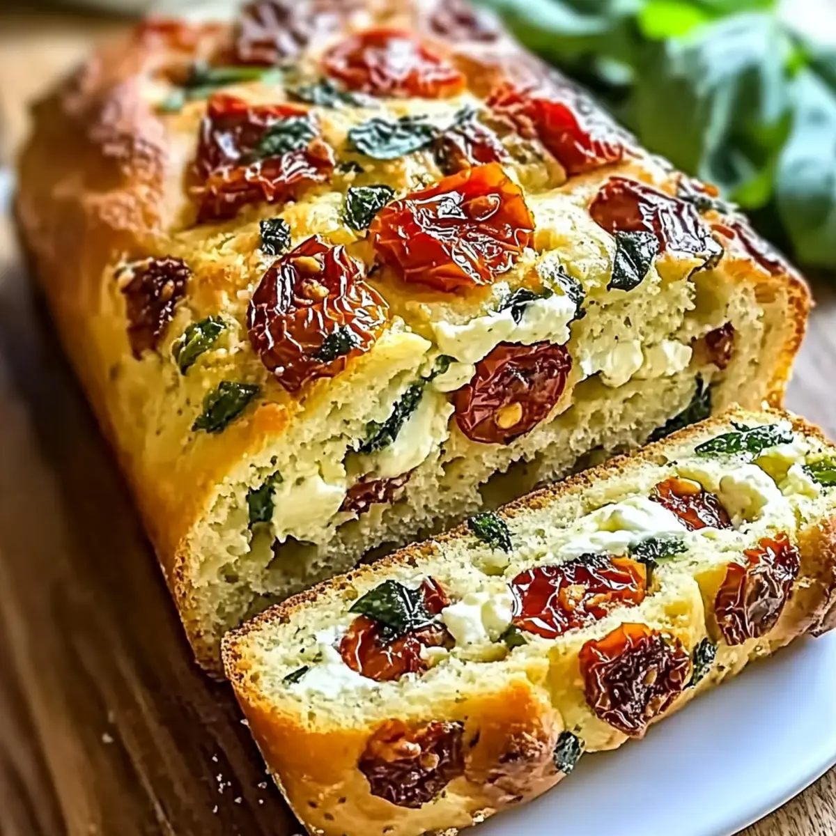 Jump to Recipe Print RecipeThe delightful scent of fresh basil and sun-dried tomatoes fills the air, instantly transporting me to a sun-soaked Italian kitchen. If you’re like me, nothing beats the satisfaction of making homemade bread—and this Savory Caprese Bread is a true gem. Perfect for those busy days, this no-yeast quick bread pairs soft mozzarella with vibrant flavors for a dish that’s as comforting as it is delicious. Whether you’re packing it for a picnic or serving it alongside your favorite soup, this gluten-free option is sure to please a crowd. Plus, with simple variations like adding olives or feta, there’s always room for creativity in the kitchen! Ready to experience an easy anthem of summer? Let’s get baking! Why Is This Caprese Bread So Special? Simplicity: This Savory Caprese Bread is incredibly easy to whip up, requiring no yeast and minimal prep time, making it perfect for busy weeknights. Flavor Explosion: Each bite combines rich mozzarella, tangy sun-dried tomatoes, and fragrant basil, crafting a slice that celebrates vibrant, summer-inspired flavors. Versatility: Customize it to your liking—consider adding olives for a Mediterranean twist or crumbled feta for a tangy touch. Crowd-Pleaser: Whether served as a standalone dish or alongside a hearty soup, this bread is sure to impress friends and family alike. Meal Prep Friendly: This gluten-free delight can be made ahead of time and stored, making it a convenient option for quick lunches or picnics. Healthy Indulgence: Each slice offers a nutritious balance, around 180 calories, making it a guilt-free addition to your meal rotation! Caprese Bread Ingredients • Create your own Caprese Bread masterpiece with this simple ingredient list! For the Batter Eggs – Provide structure and moisture; use flax eggs for a vegan option. Milk – Adds creaminess; swap with almond milk for a dairy-free alternative. Olive Oil – Enhances flavor and moisture; can be replaced with melted butter. Yogurt – Enhances moisture; choose dairy-free yogurt for a vegan version. All-Purpose Flour – Gives the bread structure; substitute with a gluten-free baking blend for a gluten-free option. Baking Powder – Acts as a leavening agent; ensure it’s fresh for the best rise. Salt – Balances flavor; essential for overall taste. Garlic Powder – Adds aromatic flavor; fresh minced garlic works for a bolder taste. For the Fillings Shredded Mozzarella Cheese – Provides creaminess and that fantastic stretch; use dairy-free cheese for a lactose-free option. Sun-Dried Tomatoes – Infuses tangy flavor; can use fresh tomatoes but watch for texture changes. Fresh Basil – Offers vibrant herbal notes; substitute with dried basil, though it’ll be less intense. Feel the warmth and richness of homemade Caprese Bread—each ingredient sings in harmony, creating a comforting, indulgent treat that you and your loved ones will adore! Step‑by‑Step Instructions for Savory Caprese Bread Step 1: Preheat the Oven Begin by preheating your oven to 350°F (175°C). While it heats, prepare your 8×4-inch loaf pan by greasing it lightly and lining the bottom with parchment paper. This will ensure your Savory Caprese Bread slides out effortlessly once baked, with a beautiful and intact loaf waiting to be sliced. Step 2: Mix the Wet Ingredients In a large mixing bowl, whisk together the eggs, milk, olive oil, and yogurt until you achieve a smooth and creamy consistency. This mixture is the heart of your Caprese Bread, binding all flavors together. Aim for a frothy texture as you incorporate these ingredients, which should take about 2–3 minutes of vigorous whisking. Step 3: Combine the Dry Ingredients In a separate bowl, sift together the all-purpose flour, baking powder, salt, and garlic powder. This step is crucial to ensure even distribution of the baking powder, preventing any unexpected lumps in your Savory Caprese Bread. Mix these dry ingredients thoroughly until they’re well combined, and set aside for the next phase. Step 4: Incorporate Dry into Wet Mixture Gently fold the sifted dry ingredients into the wet mixture using a spatula or wooden spoon. Take care not to overmix; you want the bread to stay light and airy, resulting in a delightful texture. Continue mixing just until everything is combined, with a few streaks of flour remaining for your Savory Caprese Bread. Step 5: Add Cheesy, Flavorful Ingredients Now it’s time to add the shredded mozzarella, sun-dried tomatoes, and fresh basil to your mixture. Gently fold these ingredients into the batter, ensuring they are evenly distributed throughout. The addition of these vibrant flavors elevates your Caprese Bread into a true Italian delight, packed with richness and aroma. Step 6: Transfer the Batter Pour the batter into your prepared loaf pan, smoothing the top with your spatula to create an even surface. This shaping is essential for an attractive loaf that bakes uniformly. Be sure to tap the pan gently on the countertop to eliminate any air bubbles that may have formed. Step 7: Bake to Golden Perfection Place the loaf pan in the preheated oven and bake for 40–45 minutes. You’ll know your Savory Caprese Bread is ready when the top turns a lovely golden brown, and a toothpick inserted into the center comes out clean. Keep an eye on it during the last few minutes to achieve that perfect color. Step 8: Cool the Bread Once baked, remove the loaf pan from the oven and let it cool for about 10 minutes on a wire rack. After it has cooled slightly, gently lift the bread out of the pan using the parchment paper. Let it cool completely on the rack before slicing, allowing the flavors to settle and making it easier to cut your Savory Caprese Bread into beautiful slices. Storage Tips for Caprese Bread Room Temperature: Store leftover Caprese Bread in a cool, dry place, wrapped in plastic or foil for up to 3 days to maintain its freshness. Fridge: For longer freshness, refrigerate the
