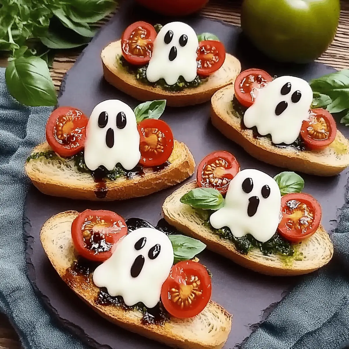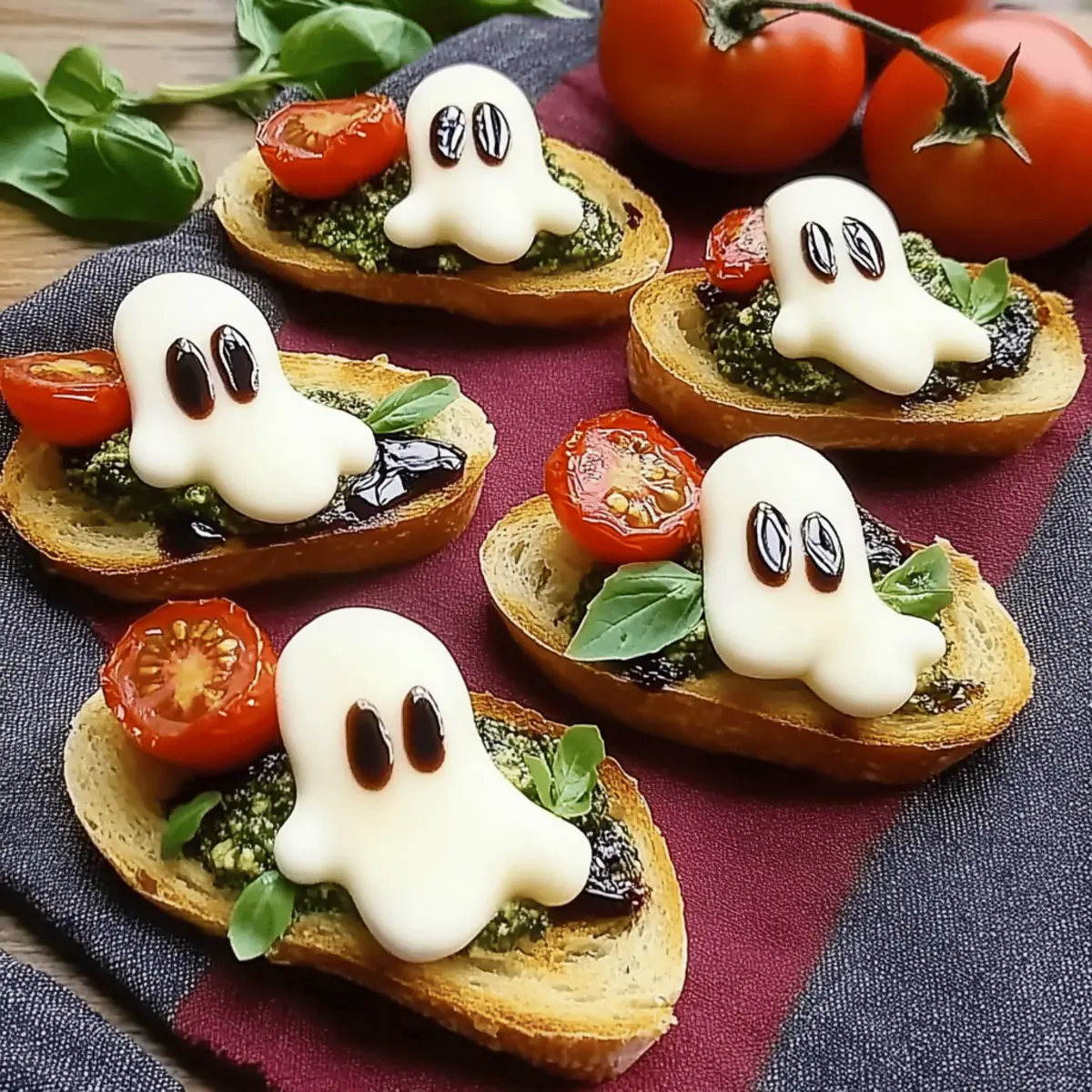 Delightful Caprese Crostini Ghosts are a fun, spooky twist on a classic appetizer perfect for Halloween gatherings.