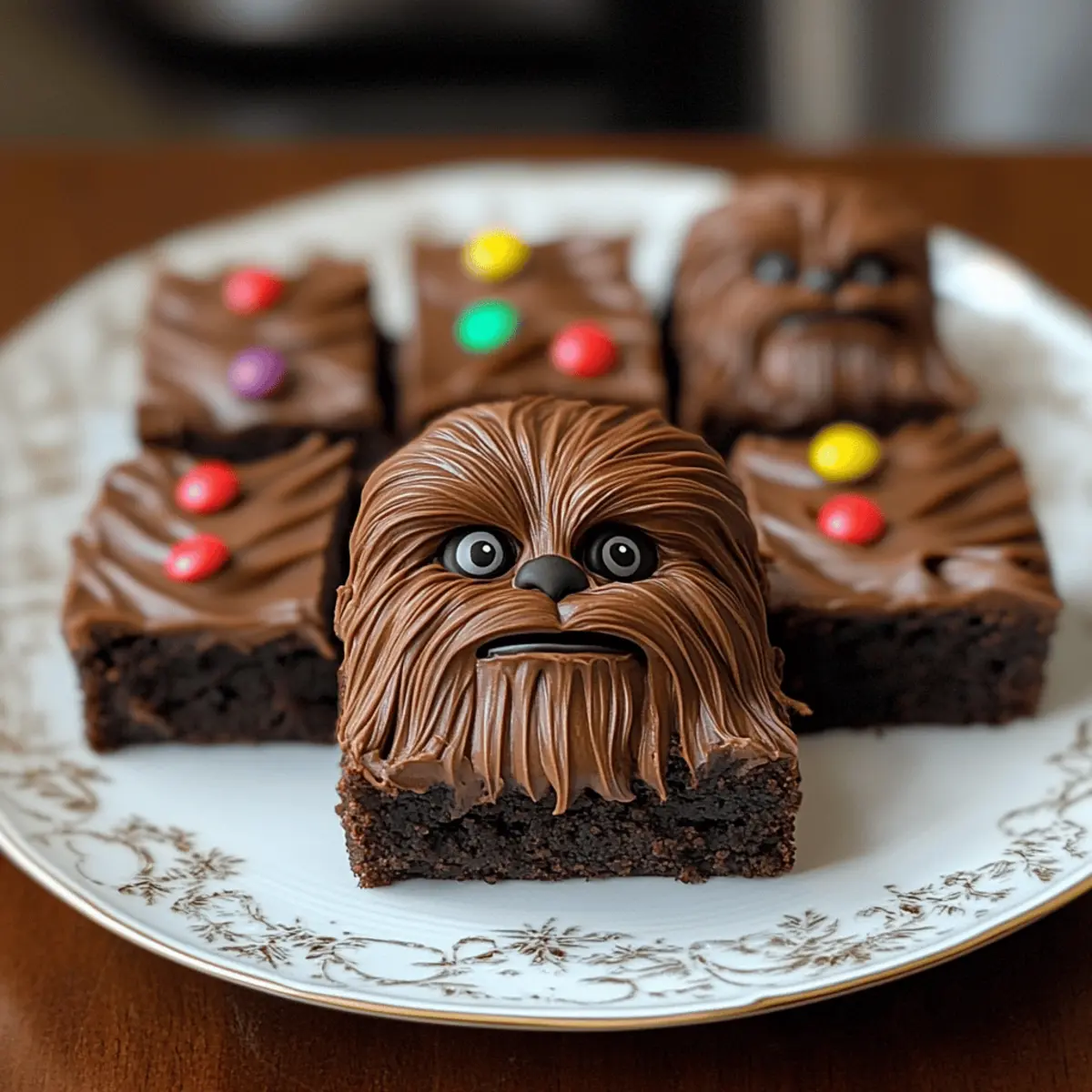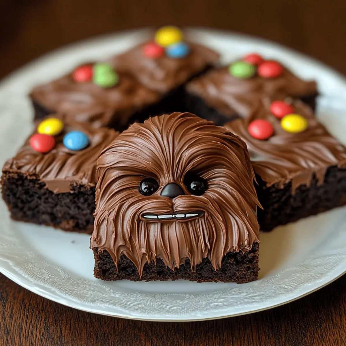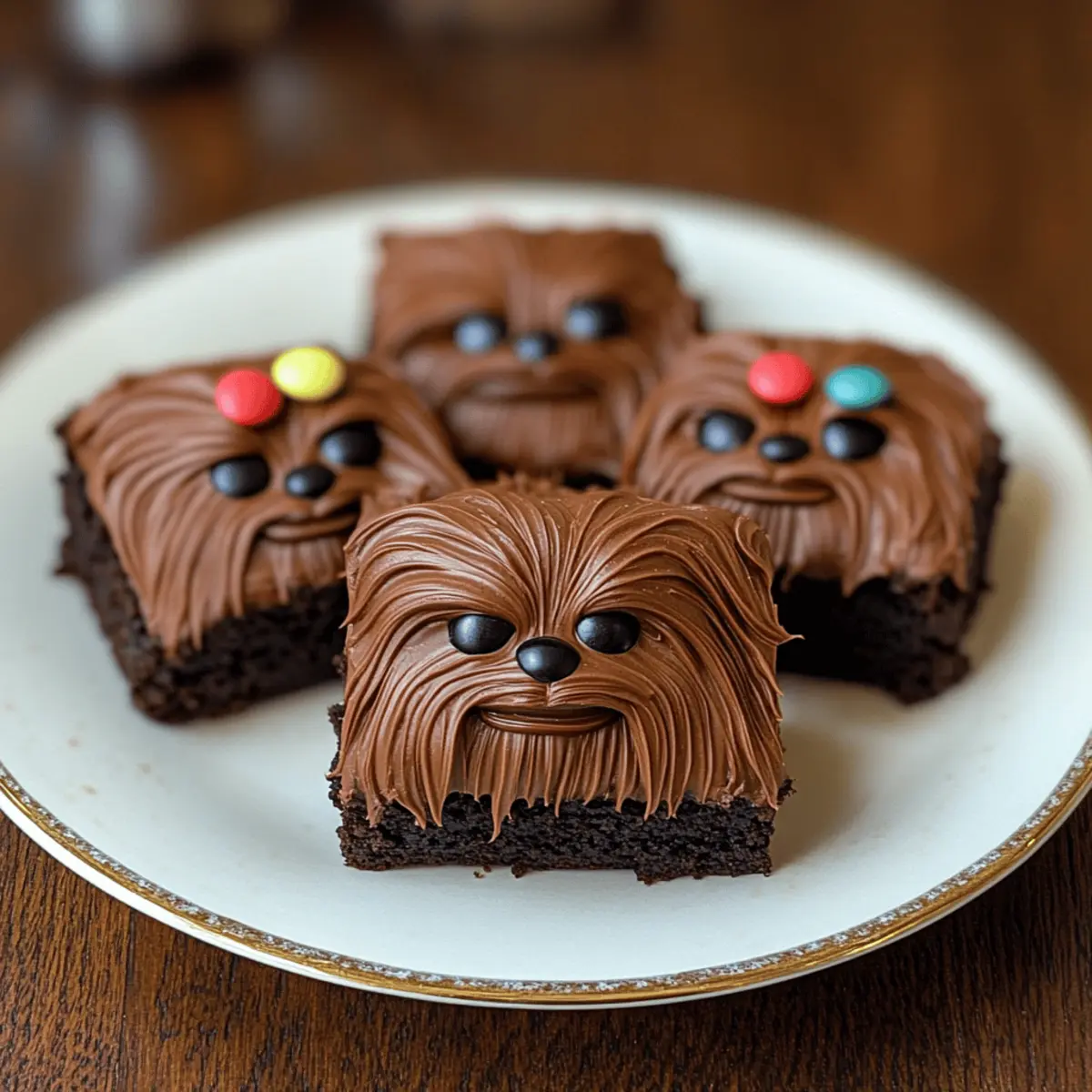 Jump to Recipe Print RecipeAs I prepared for our Star Wars movie marathon, an idea struck me like a lightsaber! Why not whip up a batch of imaginative Chewbacca brownies that not only satisfy our sweet cravings but also pay homage to the beloved Wookiee? These chewy brownies are perfect for movie nights, themed parties, or whenever you’re in the mood for a delightful chocolate treat. The combination of rich chocolate flavor with a fun, whimsical design offers a treat that’s not just tasty but also a delightful conversation starter. Plus, they’re surprisingly easy to make, meaning you can spend less time in the kitchen and more time enjoying the adventures on screen. Are you ready to take your baking skills to a galaxy far, far away? Let’s dive into the recipe! Why are Chewbacca brownies a hit? Irresistible Appeal: These Chewbacca brownies are not only deliciously chewy but also visually fun, making them the perfect treat for any Star Wars fan! Easy to Make: With straightforward steps, even beginner bakers can recreate this galactic delight effortlessly. Whimsical Design: The creative decorations mimic the iconic Wookiee, turning every brownie into a conversation piece that amps up your themed parties. Versatile Flavor: Personalize them with different chocolates or seasonal candies—get inspired by our Rhubarb Custard Bars for even more ideas! Sweet & Fudgy: Enjoy a melt-in-your-mouth texture that perfectly balances rich chocolate flavor with a chewy finish, making these brownies a sure crowd-pleaser! Chewbacca Brownie Ingredients • Gather the essentials for these Chewbacca brownies that are sure to impress! For the Brownie Batter Unsalted Butter (1/2 cup) – Adds moisture and richness; vegetable oil can be a substitute but alters texture. Semi-Sweet Chocolate Chips (1 cup) – Provides a rich chocolate flavor; try dark chocolate chips for added depth. Granulated Sugar (1 cup) – Sweetens and enhances the fudgy texture you’re craving. Eggs (2) – Bind the ingredients and contribute moisture; unsweetened applesauce or flaxseed mixture works as substitutes. Vanilla Extract (1 teaspoon) – Enhances the chocolate flavor, making each bite even more delightful. All-Purpose Flour (1 cup) – Gives structure; for gluten-free brownies, a 1:1 gluten-free flour blend is a fantastic alternative. Unsweetened Cocoa Powder (1/3 cup) – Boosts chocolatey goodness; consider dark chocolate cocoa for a richer taste. Salt (1/4 teaspoon) – Balances out the sweetness perfectly. For Decoration Chocolate Frosting – Creates a faux fur effect for Chewbacca, making your brownies look as good as they taste! Chocolate Chips and Candies – Use various candies for decorating Chewbacca’s features—get creative and have fun! Now that you’ve gathered your ingredients, you’re ready to embark on a delightful baking adventure that will surely bring a smile to any Star Wars enthusiast’s face! Step‑by‑Step Instructions for Star Wars Chewbacca Brownies Step 1: Preheat the Oven Begin your galactic baking adventure by preheating your oven to 350°F (175°C). This temperature ensures that your Chewbacca brownies bake evenly and achieve that perfect chewy texture. While the oven warms up, grease an 8×8-inch baking dish with butter or cooking spray to prevent sticking. Step 2: Melt Ingredients In a medium saucepan, combine the unsalted butter and semi-sweet chocolate chips over low heat. Stir gently until both ingredients melt together into a smooth, glossy mixture, taking about 5 minutes. Once melted, remove the pan from the heat and allow it to cool for a few minutes while you gather the next ingredients. Step 3: Mix Wet Ingredients In a large mixing bowl, pour the cooled chocolate mixture and add the granulated sugar. Whisk them together until fully combined. Next, crack in the two eggs, adding them one at a time, and pour in the vanilla extract. Continue whisking until the mixture is smooth, thick, and well blended, ensuring all sugar granules dissolve. Step 4: Combine Dry Ingredients In a separate bowl, sift together the all-purpose flour, unsweetened cocoa powder, and salt. This step aerates the dry ingredients and helps to avoid lumps in your Star Wars Chewbacca brownies. Gently mix these elements together, ensuring they are well incorporated for optimal flavor. Step 5: Combine Mixtures Slowly fold the dry ingredient mixture into the wet ingredients, using a spatula or wooden spoon. Be careful not to overmix; you want to combine them just until the flour is no longer visible and everything looks fudgy. This technique keeps your brownies delightfully chewy and rich. Step 6: Bake Carefully pour the brownie batter into your prepared baking dish, smoothing the top with a spatula. Place the dish in your preheated oven and bake for 20–25 minutes. When ready, a toothpick inserted into the center should come out with a few moist crumbs attached, signaling a perfectly baked brownie. Step 7: Cool and Decorate Once baked, remove the brownies from the oven and let them cool in the dish on a wire rack. Allow them to cool completely before frosting. After cooling, spread a layer of chocolate frosting over the top, creating a textured look to mimic Chewbacca’s fur. Decorate with chocolate chips and assorted candies for eyes and other features, transforming your Chewbacca brownies into an adorable dessert masterpiece. Expert Tips for Chewbacca Brownies Perfect Timing: Watch the bake time closely; overbaking will lead to dry brownies. Aim for a chewy center by testing doneness around 20 minutes. Cooling for Texture: Allow the brownies to cool completely before frosting. This helps the chocolate frosting set nicely without sliding off. Decorating Fun: Use a grass piping tip for frosting to mimic Chewbacca’s fur texture—this adds a whimsical touch and engages kids in decorating! Ingredient Tweaks: For an extra chocolate kick, consider adding chocolate chunks to the batter; just ensure they’re folde