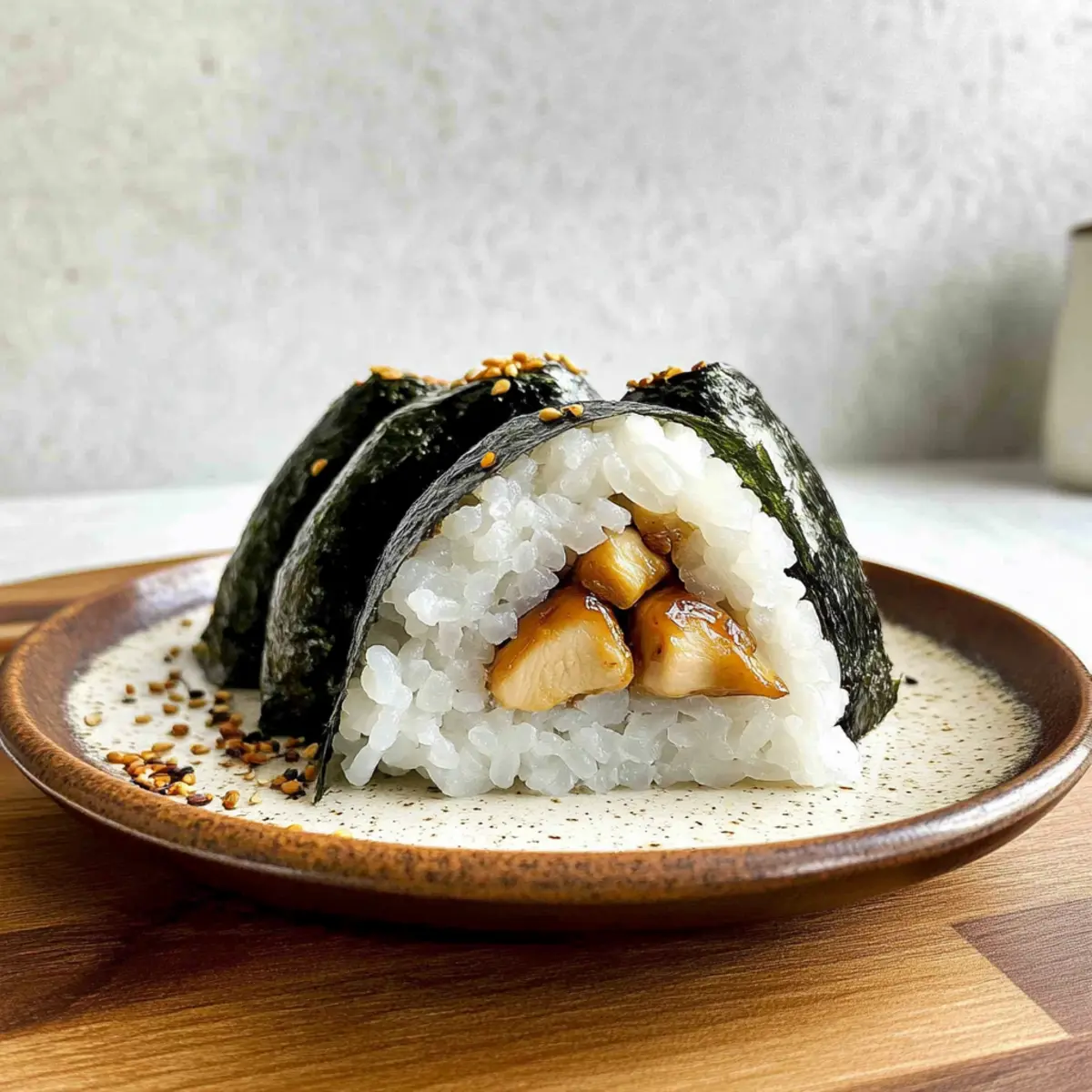 Jump to Recipe Print RecipeAs I strolled through the bustling streets of Tokyo, the savory scent of grilled chicken wafted through the air, beckoning me to try the delightful treat known as Chicken Onigiri. This quick Japanese snack combines tender teriyaki-marinated chicken with perfectly sticky sushi rice, wrapped in a delicate sheet of nori. Not only is it a totally portable option for busy days, but it also makes for an easy appetizer that’s sure to impress at gatherings. Whether you’re looking to elevate your meal prep or simply crave a delicious homemade snack, Chicken Onigiri ticks all the boxes. So, are you ready to Discover how to bring this feast of flavors from Japan right into your kitchen? Why Will You Love Chicken Onigiri? Unmatched Convenience: These Chicken Onigiri are incredibly easy to prepare, making them a perfect choice for busy individuals seeking a delicious homemade snack. Savory Teriyaki Goodness: Each bite is packed with the rich flavors of teriyaki chicken, complemented by the subtle umami of nori. Customizable Options: Tailor this recipe to your taste by using different types of chicken or experimenting with fillings like avocado, or even try a vegetarian twist! Impressive Presentation: Shaped into delightful triangles, these onigiri not only taste amazing but also make for an eye-catching dish at any gathering—just like our Huli Huli Chicken. Perfect for Meal Prep: Store them in an airtight container for up to two days—ideal for quick lunches or hearty snacks on the go! Bring the taste of Japan home; these Chicken Onigiri will transform your everyday meals into a vibrant culinary adventure. Chicken Onigiri Ingredients For the Rice • Cooked Sushi Rice – Sticky base; ensures your Chicken Onigiri holds shape perfectly. • Salt – Enhances flavor of the rice; fine salt helps for even distribution. • Furikake (optional) – Provides extra umami and texture; feel free to omit if you prefer a simpler taste. For the Chicken Filling • Boneless Skinless Chicken Meat – Main protein; versatile to substitute for drumsticks, thighs, or ground chicken. • Soy Sauce – Adds umami and saltiness; use low-sodium versions for a lighter Chicken Onigiri. • Sake (or Water) – Tenderizes chicken during marination; sake infuses an authentic flavor. • Baking Soda – Essential for tenderizing the chicken, giving it a wonderful texture. • Cornstarch – Coats the chicken for a crisp, delightful texture when cooked. • Mirin – Sweet rice wine that balances the saltiness of soy sauce beautifully. • Brown Sugar – Adds sweetness to the teriyaki sauce; coconut sugar can be a healthier alternative. • Oil – For stir-frying chicken; any neutral oil will do just fine. • Minced Garlic – Boosts the flavor profile of the chicken; fresh is always best! For Assembly • Nori – Wrap for your Chicken Onigiri; adds a crunchy texture and delightful sea flavor—cut into small rectangles for easy wrapping. Embrace the joy of homemade Chicken Onigiri in your kitchen and enjoy the burst of flavors with every bite! Step‑by‑Step Instructions for Chicken Onigiri Step 1: Prep the Sushi Rice Begin by rinsing 1 cup of short-grain sushi rice under cold water until it runs clear, removing excess starch. Cook the rinsed rice in a rice cooker with the appropriate amount of water according to your rice cooker instructions. Once cooked, let it steam for an additional 10 minutes. Gently mix in a pinch of salt and optional furikake for added flavor, ensuring the rice remains sticky and manageable for shaping into Chicken Onigiri. Step 2: Marinate the Chicken While the rice is cooking, cut 1 pound of boneless skinless chicken into small, uniform pieces for even cooking. In a medium bowl, combine the chicken with soy sauce, sake, baking soda, and cornstarch, ensuring each piece is well-coated. Cover and refrigerate the marinated chicken for at least 30 minutes; this allows the flavors to meld and tenderizes the meat, making it juicy. Step 3: Prepare the Teriyaki Sauce In a small bowl, whisk together 3 tablespoons of soy sauce, 1 tablespoon of mirin, and 1 tablespoon of brown sugar until well combined. This homemade teriyaki sauce will add a rich, sweet-savory element to your Chicken Onigiri. Set the sauce aside while you move on to cooking the chicken, allowing the flavors to marry and deepen. Step 4: Stir-Fry the Chicken Heat 1 tablespoon of oil in a nonstick pan over medium-high heat until shimmering. Add the marinated chicken pieces and cook for about 2–3 minutes, stirring occasionally until golden brown and fully cooked. Add 1 clove of minced garlic for the last 30 seconds, cooking until fragrant. Pour in the teriyaki sauce, stirring to coat the chicken, and cook for an additional minute until the sauce thickens slightly, creating a delicious filling. Step 5: Shape the Onigiri Once your sushi rice is ready and the chicken is cooked, it’s time to assemble your Chicken Onigiri! Wet your hands with water to prevent sticking. Scoop about ⅓ cup of the warm rice into your palm, creating a small well in the center. Place 1 tablespoon of the teriyaki chicken filling into the well, cover it with more rice, and gently mold it into a triangular shape. Press firmly to ensure it holds its form. Step 6: Wrap with Nori Finally, cut sheets of nori into small rectangles, and wrap one around each shaped Onigiri for added texture and flavor. The nori should cling well to the rice, providing a delightful crunch when you bite into your Chicken Onigiri. Arrange the onigiri on a plate, and they are now ready to serve as a delicious snack or appetizer! Helpful Tricks for Chicken Onigiri Uniform Chicken Cuts: Ensure your chicken pieces are evenly cut for consistent cooking and tenderness throughout the Chicken Onigiri. Sushi Rice Tip: Add a bit more water (about 15%) than usual when cooking sushi rice to enhance stickiness, crucial for shaping your onigiri. Wet Hands: Always wet your han
