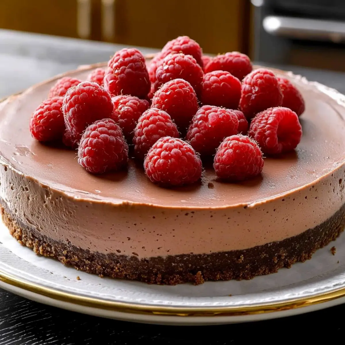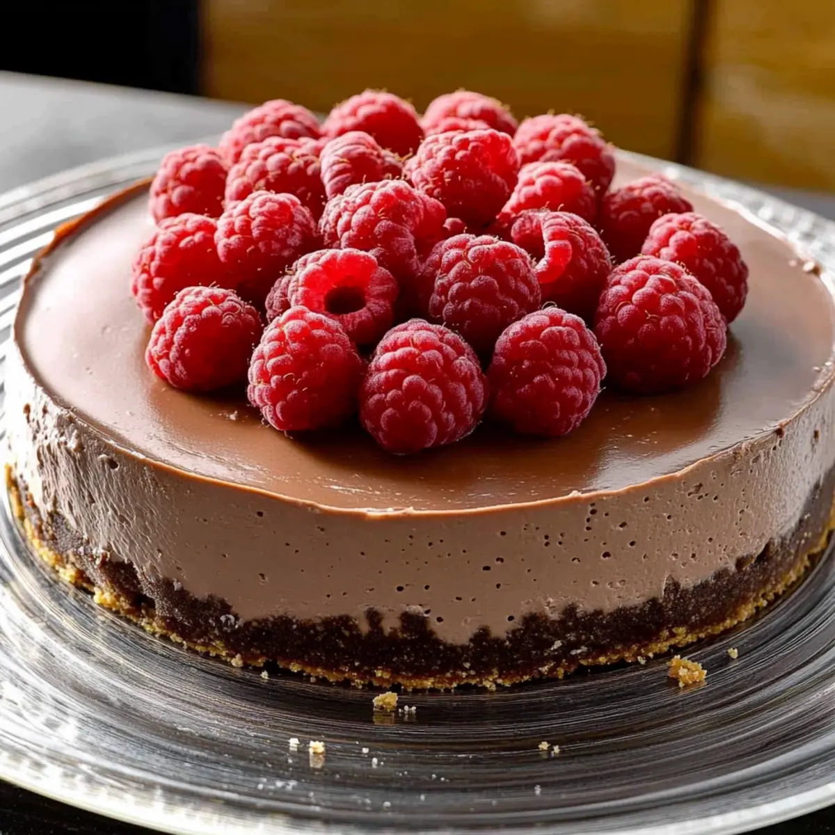 Jump to Recipe Print RecipeWalking into a kitchen filled with the sweet aroma of melted chocolate and tangy raspberries is like stepping into a world of indulgence. I love crafting desserts that give you the pleasure of a rich treat while keeping your health goals in mind, and this Diabetic-Friendly Chocolate Raspberry Cheesecake does just that. With its no-bake simplicity, the silky texture of the cheesecake paired with the fresh burst of raspberries makes it a delightful choice for anyone craving a satisfying dessert without the guilt. Plus, it’s a crowd-pleaser that takes minimal time to prepare. Curious about how simple it is to whip up this decadent yet mindful treat? Let’s dive into the recipe! Why Choose Chocolate Raspberry Cheesecake? Decadent flavors come together in a luscious blend of smooth chocolate and tart raspberries, making this dessert irresistible. Health-conscious? This cheesecake is diabetic-friendly and low-calorie, allowing you to indulge without worry. No-bake convenience means minimal effort—just a little stirring and chilling! Versatile enough for family gatherings or dinner parties, it’s sure to impress every sweet tooth. Pair with a dollop of whipped cream or a refreshing fruit salad for an elegant touch! If you’re looking for another delightful dessert, try my Yogurt Chocolate Chip Cookies or a slice of Raspberry Pie Discover. Chocolate Raspberry Cheesecake Ingredients • Curious about the flavors? Graham Cracker Crumbs – A satisfying base crust that adds a melt-in-your-mouth texture. Substitution: Use gluten-free crumbs for a gluten-free version. Butter – Richly binds crust ingredients together for a deeper flavor. Substitution: Coconut oil for a dairy-free option. Unflavored Gelatin – Works as a stabilizer to ensure the cheesecake sets perfectly. Note: Make sure it’s fully dissolved before mixing for best results. Cold Water – Activates gelatin, helping the cheesecake achieve its dreamy texture. Semisweet Chocolate – Provides that deep chocolaty flavor that enriches the filling. Substitution: Dark chocolate for an even richer taste. Fat-free Cream Cheese – Creates the creamy body and a tangy flavor for the cheesecake. Note: Low-fat cream cheese can also be used for a better taste. Sugar Substitute – Sweetens without the calories of sugar, making this dessert suitable for diabetics. Choose your favorite brand for best results. Sugar – Balances flavors beautifully, making your cheesecake taste just right. Note: Adjust or omit according to your taste preference. Baking Cocoa – Elevates the chocolate flavor in the filling. Substitution: Dutch-processed cocoa for a smoother chocolate taste. Vanilla Extract – Adds a lovely aromatic quality and depth of flavor. Substitution: Use vanilla bean for a more intense aroma. Fresh Raspberries – Topping brimming with freshness and tartness that pairs perfectly with the richness of chocolate. Substitution: Frozen raspberries if fresh ones aren’t available. Step‑by‑Step Instructions for Chocolate Raspberry Cheesecake Step 1: Prepare the Crust Preheat your oven to 375°F (190°C). In a mixing bowl, combine graham cracker crumbs with melted butter until well-coated. Press this mixture firmly into the bottom of a greased 9-inch springform pan, ensuring an even layer. Bake for 8-10 minutes until lightly browned and fragrant. Once done, remove from the oven and allow the crust to cool completely before adding the filling. Step 2: Make the Filling In a small saucepan, combine unflavored gelatin with cold water and let it sit for 1 minute to bloom. Gently heat the mixture over low heat, stirring until the gelatin fully dissolves. Once dissolved, remove from heat, then stir in semisweet chocolate until completely melted and smooth. Set this chocolate mixture aside to cool slightly while you prepare the cream cheese mixture. Step 3: Blend Mixture In a large mixing bowl, beat together fat-free cream cheese, your chosen sugar substitute, and sugar until smooth and creamy. Gradually pour in the cooled chocolate-gelatin mixture, stirring continuously to combine. Then, add the baking cocoa and vanilla extract, mixing until the entire filling is well incorporated and silky. The smooth texture is crucial for achieving that perfectly decadent Chocolate Raspberry Cheesecake. Step 4: Combine and Chill Carefully pour the chocolate filling into the cooled crust, spreading it evenly to ensure a smooth surface. Once filled, place the cheesecake in the refrigerator to set for about 2-3 hours. Be patient—it’s vital that the cheesecake firms up adequately for perfect slicing later on! Step 5: Garnish Once the cheesecake has set, remove it from the refrigerator. Use a knife to gently loosen the edges of the cheesecake from the pan before unlocking and removing the springform. Top with fresh raspberries, arranging them beautifully on the surface to add a pop of color and a burst of tangy freshness to your Chocolate Raspberry Cheesecake. Make Ahead Options If you’re busy but still want to impress your guests, this Chocolate Raspberry Cheesecake can be prepped ahead with ease! You can prepare the crust and the filling up to 24 hours in advance. Simply bake the crust and allow it to cool completely before adding the filling. Once the filling is mixed and poured over the chilled crust, cover it tightly and refrigerate for up to 3 days. This not only saves you time but ensures the flavors meld beautifully. Just remember to garnish with fresh raspberries right before serving to keep them vibrant and fresh, offering a delightful contrast to the rich cheesecake! How to Store and Freeze Chocolate Raspberry Cheesecake Fridge: Keep your cheesecake covered with plastic wrap or aluminum foil in the refrigerator for up to 1 week. This ensures it stays fresh without absorbing other odors. Freezer: If you want to save some for later, wrap individual slices of the Chocolate Raspberry Cheesecake securely in plastic wrap and
