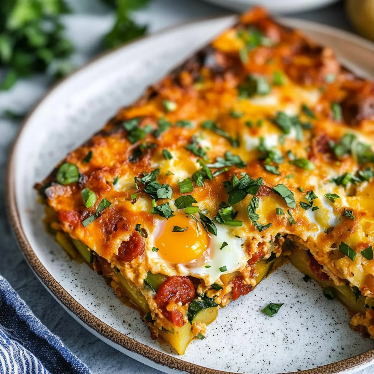 Bold flavors: The Spicy Chorizo & Potato Egg Casserole brings together robust chorizo, fluffy eggs, and vibrant veggies for a taste explosion that will have your taste buds dancing.