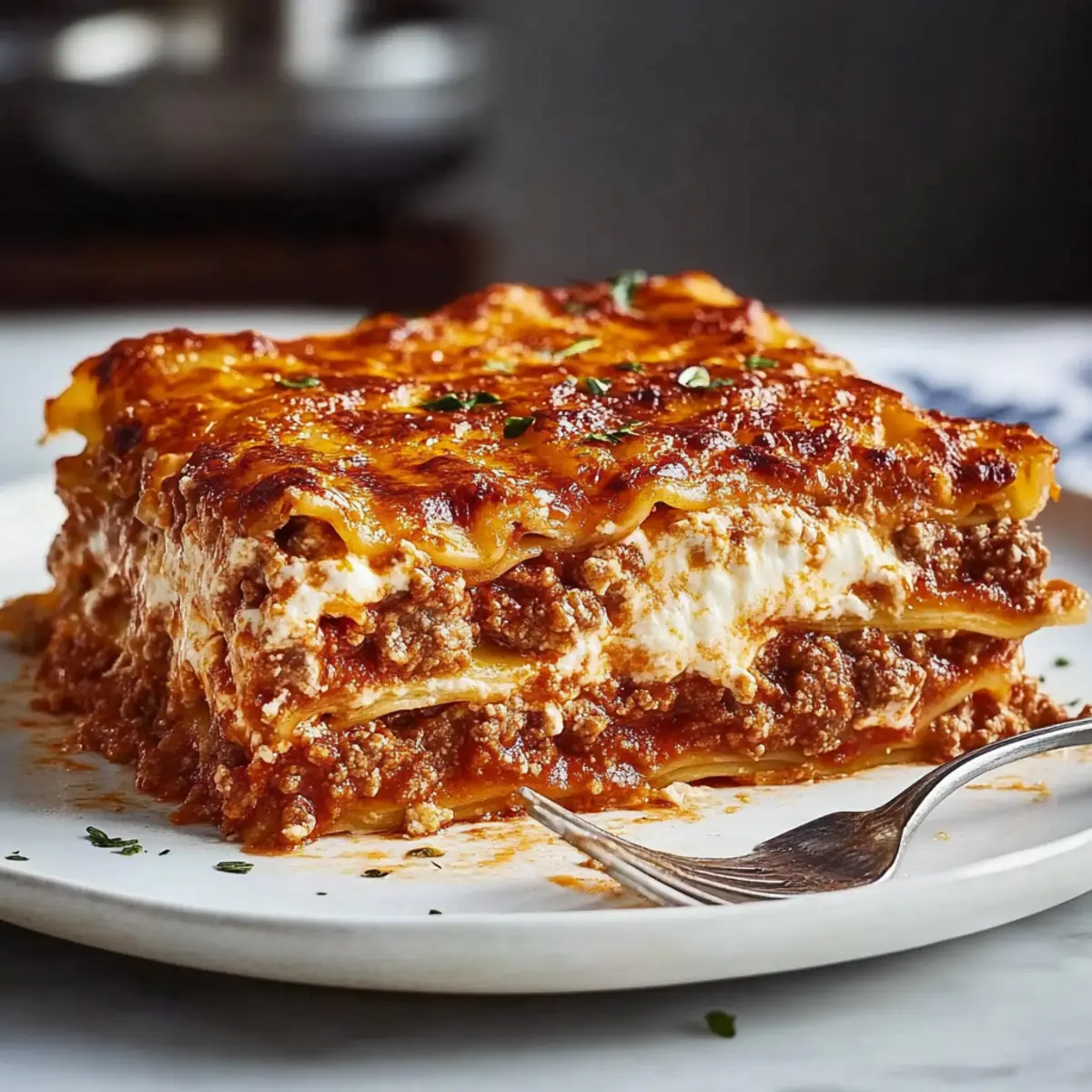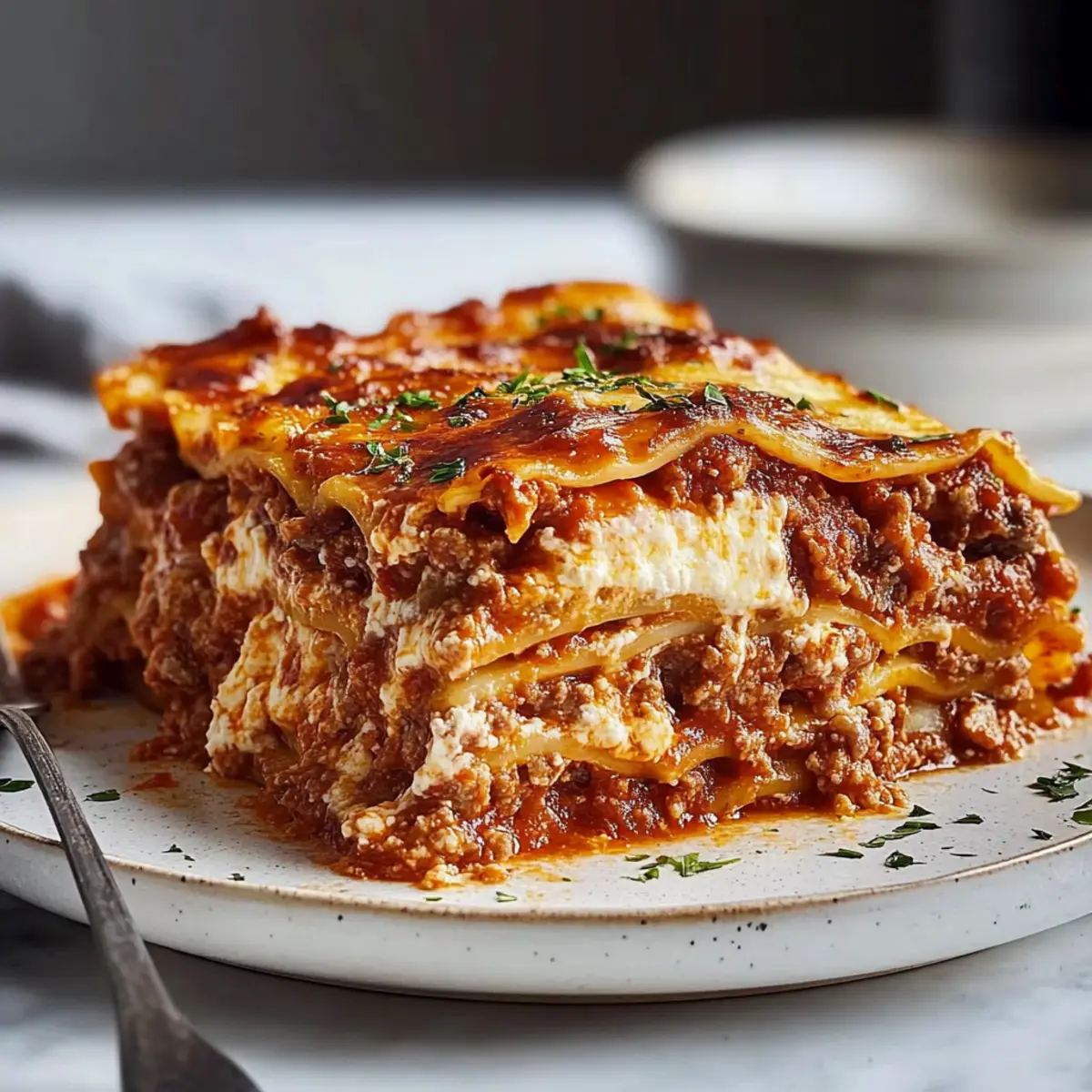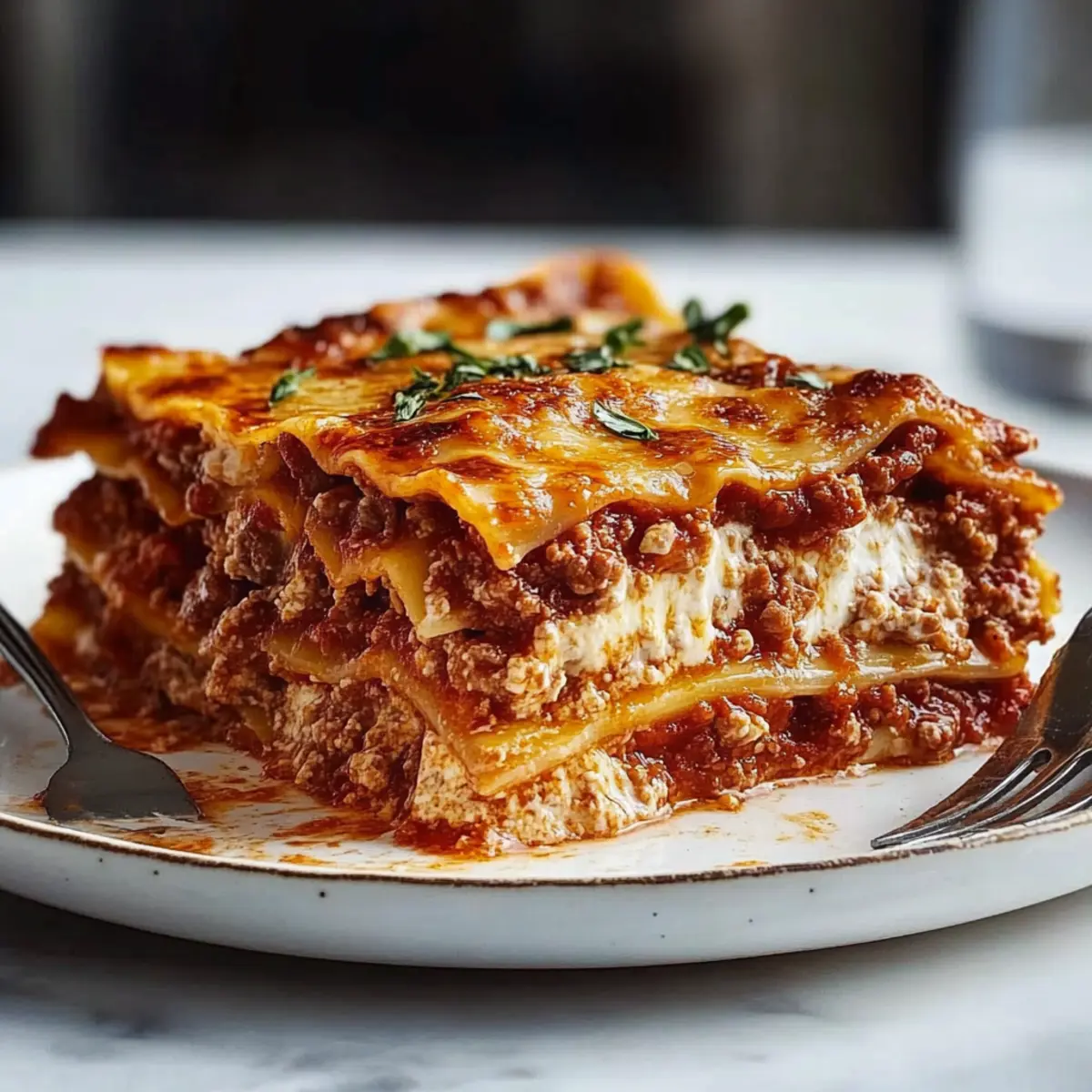 Jump to Recipe Print RecipeAs I stood in my kitchen, the inviting scent of simmering garlic and herbs whipped me back to my childhood, where every family gathering centered around a bubbling dish of classic meat lasagna. This recipe is my go-to for a fulfilling meal that wraps everyone in a warm, comforting embrace. With layers of rich meat sauce, creamy cheese, and tender pasta, it’s a dish that brings people together, whether for a cozy weeknight dinner or a festive weekend gathering. The beauty of this classic meat lasagna lies not only in its heartwarming flavors but also in its quick prep time, making it an approachable choice even for busy weeknights. Ready to create your own masterpiece in the kitchen? Let’s dive into this delicious journey together! Why is Lasagna Everyone’s Favorite Comfort Food? Nostalgic Flavors: Each bite of this classic meat lasagna not only delights your taste buds but also transports you back to family gatherings filled with laughter and love. Easy Prep: With straightforward steps, even novice cooks can whip up this comforting dish without stress. Endless Customization: Feel free to mix in vegetables like spinach or zucchini, or even experiment with cheeses to suit your family’s taste buds. Crowd-Pleasing Delight: Whether it’s a cozy dinner or a party, this lasagna never fails to impress. Serve with a crisp salad or garlic bread for a perfect meal combo. Time-Saving Wonder: The prep is quick, allowing you to focus on what truly matters—enjoying a delicious meal with your loved ones. Dive into this recipe and discover the joy of comfort food at its best! For more delightful pasta dishes, don’t miss our Pasta Salad Discover for a change of pace! Classic Meat Lasagna Ingredients • Get ready to savor the layers of comfort! For the Meat Sauce Ground Beef – Provides protein and richness; substitute with ground turkey for a lighter option. Italian Sausage – Enhances flavor with spices; opt for mild or hot based on your heat preference. Olive Oil – Used for sautéing vegetables; any cooking oil can be substituted. Onion – Adds sweetness and depth to the meat sauce; can replace with shallots for a more delicate flavor. Garlic – Imparts aromatics to the dish; fresh minced or granulated garlic works well. Crushed Tomatoes – Base for the sauce that provides acidity; consider using fresh tomatoes in season for a vibrant taste. Tomato Paste – Concentrates the flavor in the sauce; can substitute with extra crushed tomatoes if necessary. Tomato Sauce – Adds moisture to the meat sauce; homemade or store-bought sauces both do the job beautifully. For the Cheese Mixture Ricotta Cheese – Provides a creamy texture for the cheese layer; cottage cheese can be a suitable lower-fat substitute. Egg – Acts as a binder in the cheese mixture; a flax egg can be used for a vegan alternative. Parmesan Cheese – Introduces a salty, nutty flavor; nutritional yeast is a great replacement for a vegan version. For the Pasta Layer Lasagna Noodles – Structure the dish perfectly; use no-boil or gluten-free noodles if you prefer. For the Topping Mozzarella Cheese – Melts beautifully for a gooey topping; substitute with provolone or a vegan cheese for a dairy-free option. Ready to whip up your very own classic meat lasagna? Let’s layer up the comfort! Step‑by‑Step Instructions for Classic Meat Lasagna Step 1: Prepare Meat Sauce In a large skillet, heat 2 tablespoons of olive oil over medium heat. Sauté one chopped onion and three minced garlic cloves until softened, about 3-4 minutes. Add 1 pound of ground beef and 1 pound of Italian sausage, breaking it apart as it browns. Stir in 28 ounces of crushed tomatoes, 2 tablespoons of tomato paste, and 15 ounces of tomato sauce. Simmer for 30 minutes until the sauce thickens and flavors meld together. Step 2: Make Cheese Mixture While the meat sauce simmers, combine 15 ounces of ricotta cheese, 1 beaten egg, ½ cup of grated Parmesan cheese, and a pinch of salt and pepper in a mixing bowl. Stir until smooth and creamy, ensuring all ingredients are well incorporated. Set this cheese mixture aside as we prepare the noodles and layer the ingredients for the classic meat lasagna. Step 3: Cook Noodles Bring a large pot of salted water to a boil, then add 12 lasagna noodles. Cook for about 8-10 minutes until al dente, stirring occasionally to prevent sticking. Once cooked, drain the noodles in a colander and rinse them briefly with cold water to halt the cooking process. Lay them flat on a clean kitchen towel while preparing to layer the lasagna. Step 4: Layer Lasagna In a 9×13 inch baking dish, start with a generous layer of meat sauce on the bottom, spreading it evenly. Next, place three lasagna noodles on top, followed by one-third of the ricotta cheese mixture. Sprinkle a layer of 1 cup shredded mozzarella cheese over the ricotta. Repeat this layering process two more times, finishing with remaining meat sauce and topped with the final layer of mozzarella. Step 5: Bake Preheat your oven to 375°F (190°C). Cover the assembled lasagna with aluminum foil and bake for 25 minutes to allow all the flavors to meld and the cheese to begin melting. After 25 minutes, carefully remove the foil and bake for another 25 minutes, or until the top is bubbly and golden brown, indicating a perfectly cooked classic meat lasagna. Step 6: Rest Once baked, remove the lasagna from the oven and let it rest for 15 minutes before slicing. This resting time is crucial as it allows the layers to set properly, making it easier to serve. Your classic meat lasagna will be beautifully layered and ready for a delightful serving, filled with rich flavors and creamy textures. What to Serve with Classic Meat Lasagna? Pairing classic meat lasagna with the right sides enhances its comforting flavors and creates a memorable meal experience. Garlic Bread: The warm, buttery crunch of garlic bread complements the creamy layers perfectly, making ev