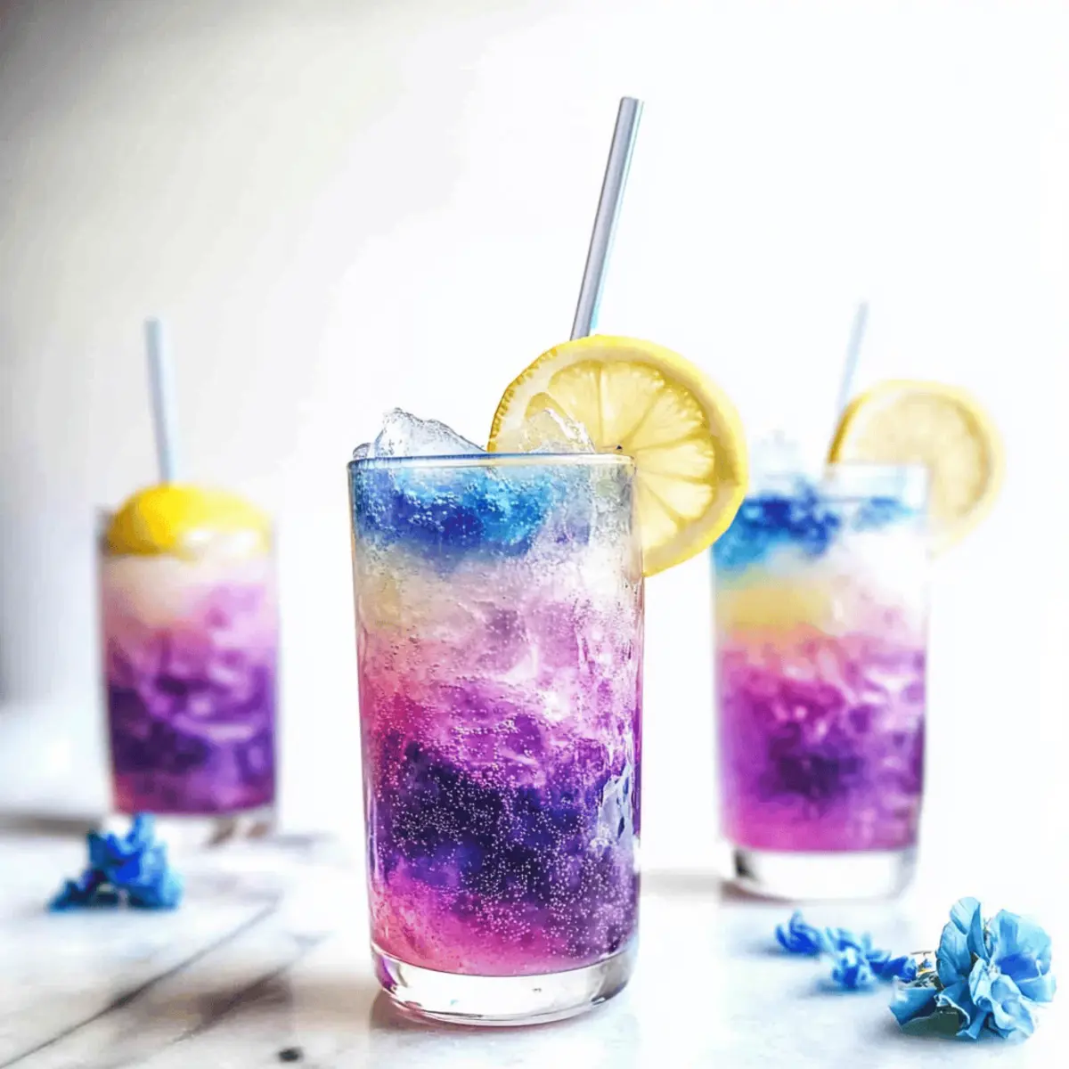 For an adult twist, consider adding a shot of vodka, gin, or tequila to your Color Changing Galaxy Lemonade. For an eye-catching touch, sprinkle more crushed butterfly pea ice on top before serving. Use colorful straws to showcase the mesmerizing layers, and delight in the visual magic as your drink transforms with each sip.
