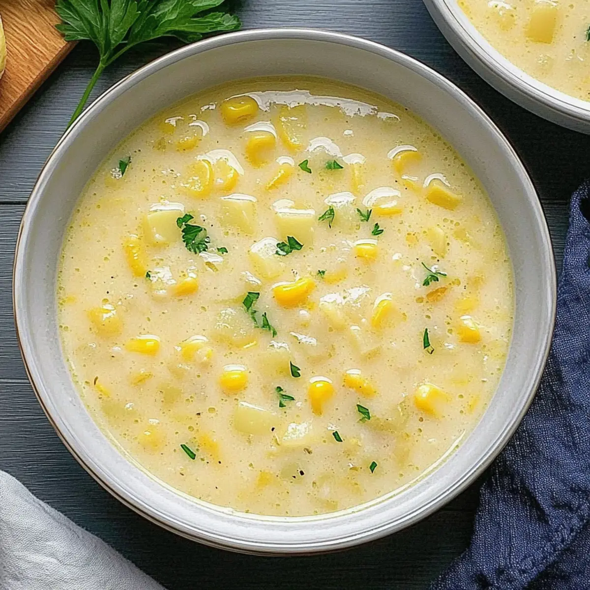 Jump to Recipe Print RecipeAs the chilly breeze whispers through open windows, I find myself yearning for something warm and nourishing. That’s when I turn to my Classic Corn Chowder—a dish that wraps you in a cozy hug with its rich, creamy texture and the natural sweetness of corn. In just 35 minutes, this recipe transforms simple ingredients into a comforting bowl of goodness, making it perfect for both chilly evenings and summer afternoons. With its quick prep time and ability to satisfy any crowd, it’s a go-to meal that keeps fast food at bay. Whether you’re enjoying it solo or sharing it with loved ones, this corn chowder guarantees a heartwarming experience that will leave you craving more. What’s your favorite way to enjoy corn in the kitchen? Why Is Corn Chowder So Comforting? Creamy Delight: This Classic Corn Chowder is not just a recipe; it’s a warm hug in a bowl! The rich, creamy texture is incredibly comforting, making it perfect for any time of the year. Quick and Easy: With just 35 minutes of prep, you can whip up this delicious dish without sacrificing taste—ideal for busy weeknights or spontaneous summer gatherings. Versatile Variations: Want to customize? Easily transform this chowder into a Sausage Corn Chowder or even a Vegetarian option by adding your favorite ingredients for a unique twist. Crowd-Pleasing Goodness: Whether served at a family dinner or a cozy get-together, this dish is sure to impress everyone at the table. Pair it with Cornbread or some crusty bread for a complete meal! Nutrient-Rich: Made with wholesome ingredients, this chowder not only tastes great but also provides essential nutrients, ensuring a satisfying, guilt-free meal. Enjoy a bowl today! Corn Chowder Ingredients • Keep every ingredient fresh and ready for a delicious experience! For the Chowder Large Onion – Adds savory depth; substitute with shallots for a milder flavor. Butter – Provides richness and buttery flavor; use olive oil for a dairy-free option. Water – Acts as the soup base; replace with chicken or vegetable broth for enhanced flavor. Cream-Style Corn (2 cans) – Brings in sweetness and creaminess; consider using fresh corn in season for a fresher taste. Potatoes (4 medium, cubed) – Adds heartiness; waxy potatoes like Yukon Gold are best for holding their shape. Milk (2 cups) – Thickens the chowder and gives it a rich mouthfeel; use almond milk for a lighter version. Salt (1.5 tsp) & Pepper (¾ tsp) – Essential seasonings for enhancing flavors; adjust according to your taste. Minced Fresh Parsley – A flavorful garnish; chives or cilantro can be great alternatives for a twist. Experience the warmth of corn chowder today! Step‑by‑Step Instructions for Corn Chowder Step 1: Sauté the Onion In a large Dutch oven, melt 2 tablespoons of butter over medium heat. Add one chopped large onion and sauté for about 5 minutes, stirring occasionally, until it becomes translucent and tender. This base layer of flavor is essential to creating a rich Corn Chowder, so take your time to cook the onion thoroughly before moving on. Step 2: Combine Ingredients Once the onion is ready, pour in 4 cups of water (or your choice of broth) along with 2 cans of cream-style corn and 4 medium cubed potatoes. Increase the heat to high and bring this mixture to a vigorous boil, stirring occasionally. The corn and potatoes will start to blend, and you’ll see the chowder coming together beautifully. Step 3: Simmer the Chowder As soon as it reaches a boil, reduce the heat to low, cover the pot, and let it simmer for 16 to 20 minutes. This allows the flavors to meld while the potatoes become tender. You’ll know it’s ready when the potatoes can easily be pierced with a fork, ensuring each bite of your Corn Chowder is delightful. Step 4: Incorporate Milk and Season After the potatoes are tender, lower the heat further and stir in 2 cups of milk, along with 1.5 teaspoons of salt and ¾ teaspoon of pepper. Let the mixture simmer on low for an additional 5 to 10 minutes, stirring occasionally until heated through. This step adds that creamy texture we all love in a classic Corn Chowder. Step 5: Garnish and Serve Once heated through, your Corn Chowder is ready to serve. Ladle it into bowls and garnish with freshly minced parsley for a touch of color and flavor. This final step not only enhances the presentation but also adds a fresh note to your comforting bowl of chowder. Expert Tips for Corn Chowder Thickening Technique: For a thicker chowder, create a slurry with flour by whisking it with a bit of hot broth before adding it to the soup, ensuring a creamy texture. Avoid Freezing: If you plan to savor leftovers, remember that chowder isn’t freezer-friendly due to the texture of dairy when thawed. Enjoy it fresh! Hand Blender Magic: To achieve that creamy consistency while maintaining some chunkiness, use a hand blender to puree part of the chowder directly in the pot. Fresh vs. Canned: While cream-style corn is convenient, using fresh corn when in season enhances flavor and sweetness—consider it a delightful upgrade! Customize Wisely: Experiment with herbs like thyme or spices such as paprika for a unique spin on your classic corn chowder; just start with small amounts to balance flavors. How to Store and Freeze Corn Chowder Fridge: Store leftover Corn Chowder in an airtight container for up to 4 days. Reheat gently on the stove over low heat for the best texture. Reheating: When reheating, add a splash of milk to restore creaminess and stir occasionally to prevent sticking. Avoid Freezing: Freezing is not recommended due to the milk and potatoes, as they may develop an undesirable texture upon thawing. Making Ahead: For convenience, prepare the chowder in advance and store it in the fridge. Just reheat when you’re ready to enjoy! Corn Chowder Variations & Substitutions Feel free to make this delightful chowder your own with these fun twists and swaps! Dairy-Free: Substitu