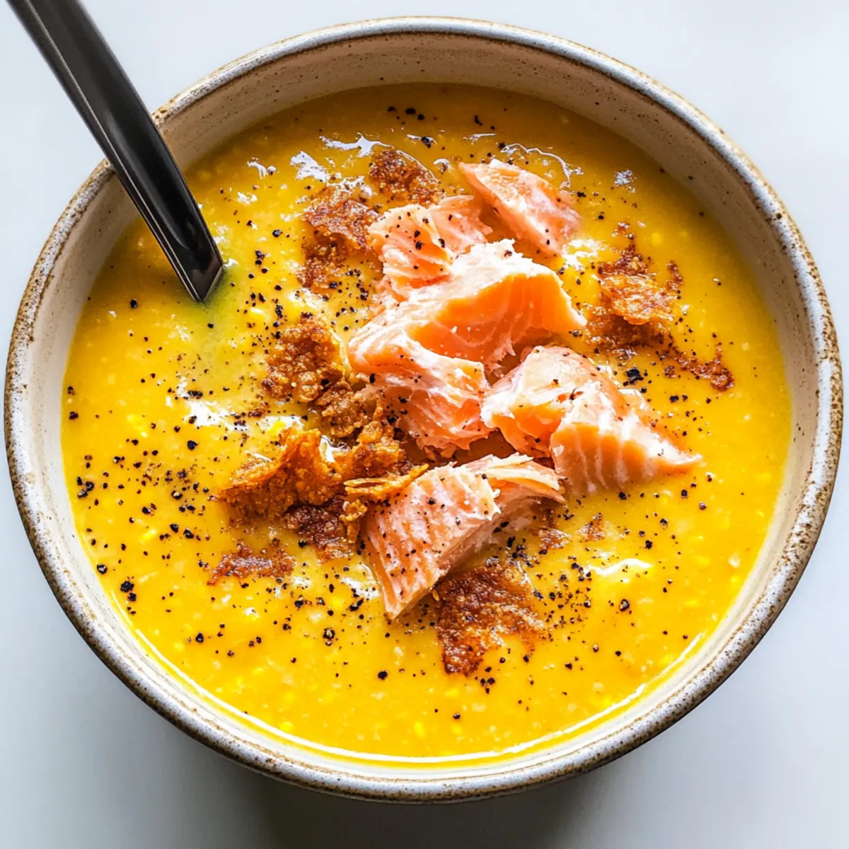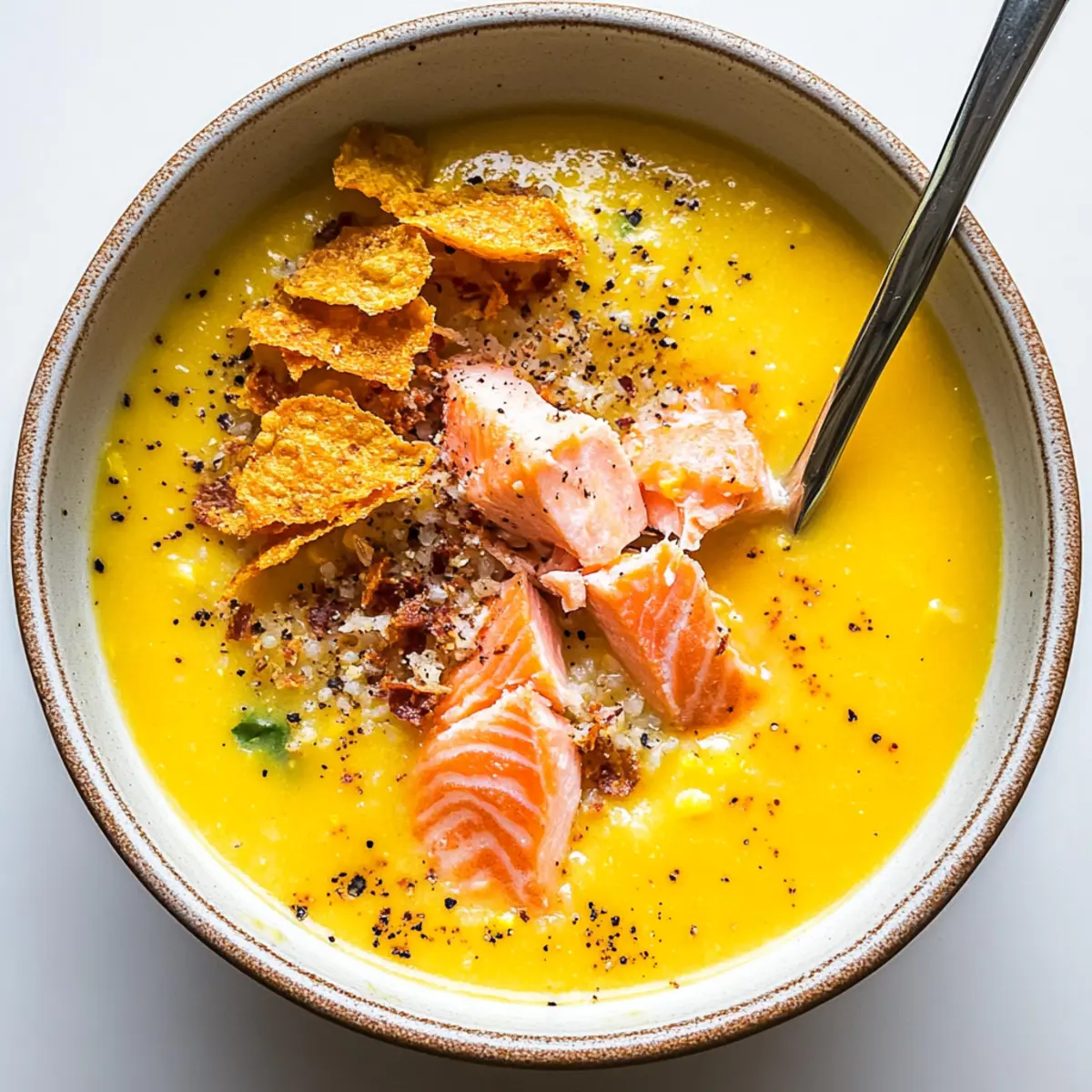 Jump to Recipe Print RecipeAs the sun rises higher in the summer sky, the need for something refreshingly cool becomes undeniable. Enter my Creamy Corn Gazpacho with Roasted Salmon & Crispy Rice, a delightful twist on a classic that’s sure to elevate your warm-weather dining experience. This vibrant cold soup showcases the natural sweetness of corn and heirloom tomatoes with just a hint of spice from jalapeño, making it a crowd-pleaser that everyone will love. What’s more, this recipe is not only dairy-free and gluten-free but also a breeze to make, perfect for those evenings when you crave something healthy without the fuss. The contrast of smooth gazpacho, tender roasted salmon, and addictive crispy rice disks creates a dish that’s both visually stunning and deliciously satisfying. Are you ready to impress your family and friends while keeping your kitchen cool? Let’s dive into this summery delight! Why is Corn Gazpacho a Must-Try? Cooling comfort: This Corn Gazpacho is the ultimate refreshing dish for hot summer days, combining vibrant flavors that invigorate. Flavor explosion: The sweet corn pairs seamlessly with heirloom tomatoes and a zesty kick from jalapeño, ensuring every spoonful is a delight. Quick and easy: With simple prep and cooking steps, you’ll spend less time in the kitchen—perfect for busy evenings. Serve chilled: Best enjoyed cold, this dish can be made ahead of time, making it a great option for gatherings or picnics. Crowd-pleaser: With flavors that cater to both seafood lovers and those avoiding dairy and gluten, it’s a versatile recipe for everyone to enjoy. Check out my Grilled Shrimp Salsa for more delicious summer bites! Corn Gazpacho Ingredients • Here’s everything you need for the best corn gazpacho! For the Gazpacho Golden Heirloom Tomatoes – Sweetness and creaminess; any ripe tomatoes can work in place of heirlooms. Ear of Corn – Freshness and sweetness; frozen corn kernels can be used if fresh is unavailable. Yellow Pepper – Contributes sweetness and texture; substitute with any bell pepper color as per preference. Jalapeño – Adds heat; deseed for milder flavor or substitute with bell pepper for no spice. Lime – Brightens flavors; can use lemon juice as an alternative. White Wine Vinegar – Enhances acidity; can be swapped with apple cider vinegar. Olive Oil – Adds richness to the soup; can use avocado oil for a similar effect. Salt and Black Pepper – Seasoning to taste. For the Rice Short-Grain White Sushi Rice – Provides structure and a crispy texture when fried; can substitute with any short-grain rice. Rice Vinegar – Adds acidity to the rice; optional for flavor, apple cider vinegar can be a substitute. For the Salmon Salmon – Main protein that offers richness; can substitute with other fish or even tofu for a vegetarian version. Sunflower Oil – Used for frying; any neutral oil can substitute. Step‑by‑Step Instructions for Creamy Corn Gazpacho with Roasted Salmon & Crispy Rice Step 1: Prepare Rice Start by cooking the short-grain white sushi rice according to the package instructions. Once cooked, transfer the rice to a mixing bowl and stir in a splash of rice vinegar for flavor. Next, using wet hands, mold the rice into 1-inch high disks and place them on a parchment-lined tray. Freeze the rice disks for about 15 minutes until solid. Step 2: Make Gazpacho In a high-speed blender, combine the golden heirloom tomatoes, yellow pepper, corn, jalapeño, lime juice, white wine vinegar, and olive oil. Blend until the mixture is completely smooth, showcasing the vibrant colors. If the gazpacho appears too thick, gradually add ice water while blending until you achieve your desired consistency. Step 3: Chill Gazpacho Once blended, pour the gazpacho into a large mixing bowl and season generously with salt and black pepper to taste. Cover the bowl with plastic wrap and refrigerate the gazpacho for at least 30 minutes, allowing the flavors to meld and ensuring it is well-chilled before serving, which is essential for this refreshing corn gazpacho. Step 4: Roast Salmon Preheat your oven to 325°F (160°C). While the oven heats, season the salmon fillets with salt and pepper to enhance their natural flavors. Place the salmon on a parchment-lined baking sheet, and roast in the oven for 14-15 minutes. The salmon should be opaque and flaky when done, infusing the dish with its rich essence. Step 5: Fry Rice Disks In a cast iron skillet, heat a generous amount of sunflower oil over medium heat. Once hot, carefully add the frozen rice disks, frying them for about 2-3 minutes on each side until they turn golden brown and crispy. Remove the disks and place them on paper towels to drain excess oil, ensuring they maintain their delightful crunch. Step 6: Plate To serve, flake the roasted salmon into bite-size pieces. In individual bowls, ladle the chilled corn gazpacho, then elegantly top it with the crispy rice disks and flaked salmon. For an extra touch, drizzle with a bit of olive oil and sprinkle cracked black pepper over the top, enhancing both the flavor and presentation of the dish. Corn Gazpacho Variations & Substitutions Feel free to get creative and tailor this corn gazpacho to your taste buds and dietary preferences! Dairy-Free: Make sure to omit any dairy ingredients, such as cream, if you choose to add it. This recipe is already tailored for you! Smoky Flavor: Substitute the roasted salmon with smoked salmon for an added depth of flavor that complements the sweetness of the corn. Vegan Option: Swap the salmon for marinated tofu or tempeh to keep the dish plant-based and still packed with protein. Crunchy Twist: Instead of the crispy rice, why not use tortilla chips for a different kind of crunch that adds to the summer vibe? Heat Level: Adjust the spice by adding more jalapeño or switch it out for a milder pepper option if you prefer a gentle kick. Herb Infusion: Elevate the flavor by throwing in fresh herbs like