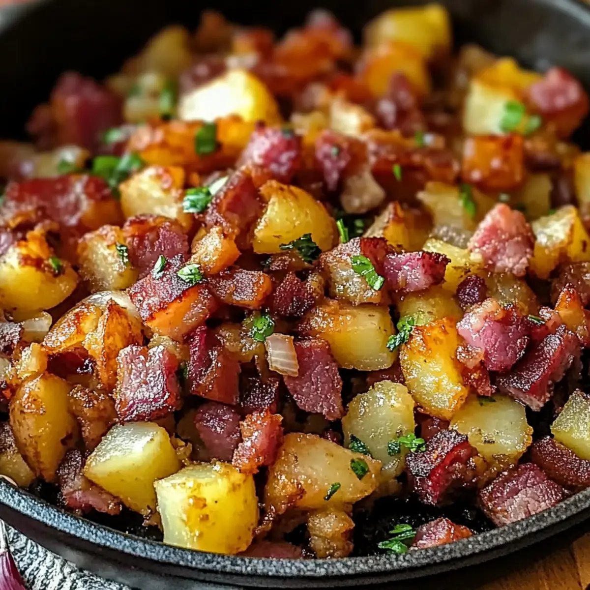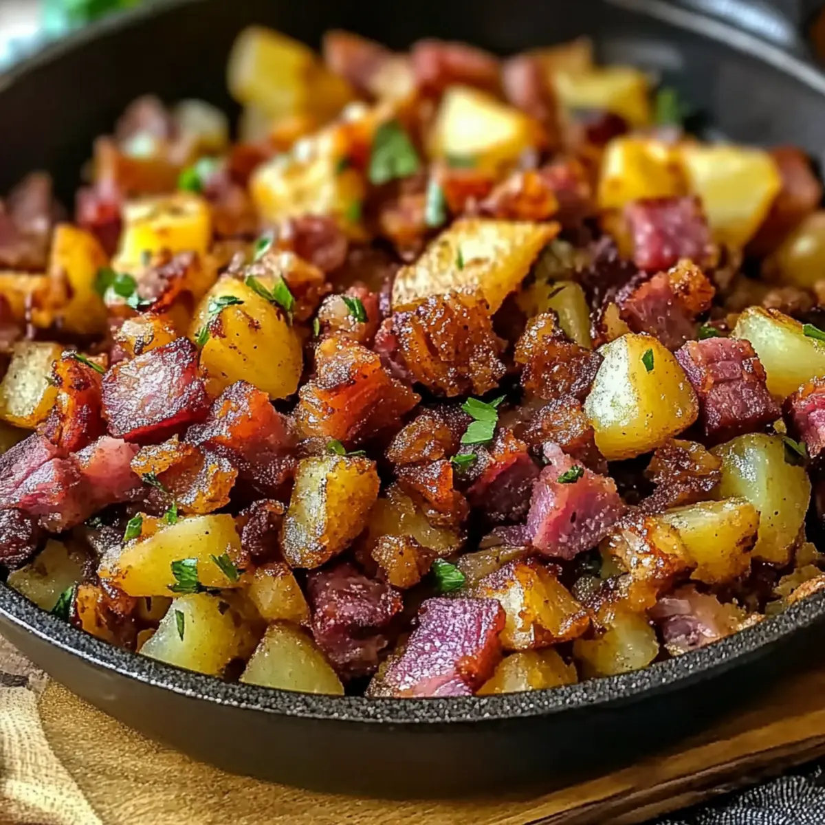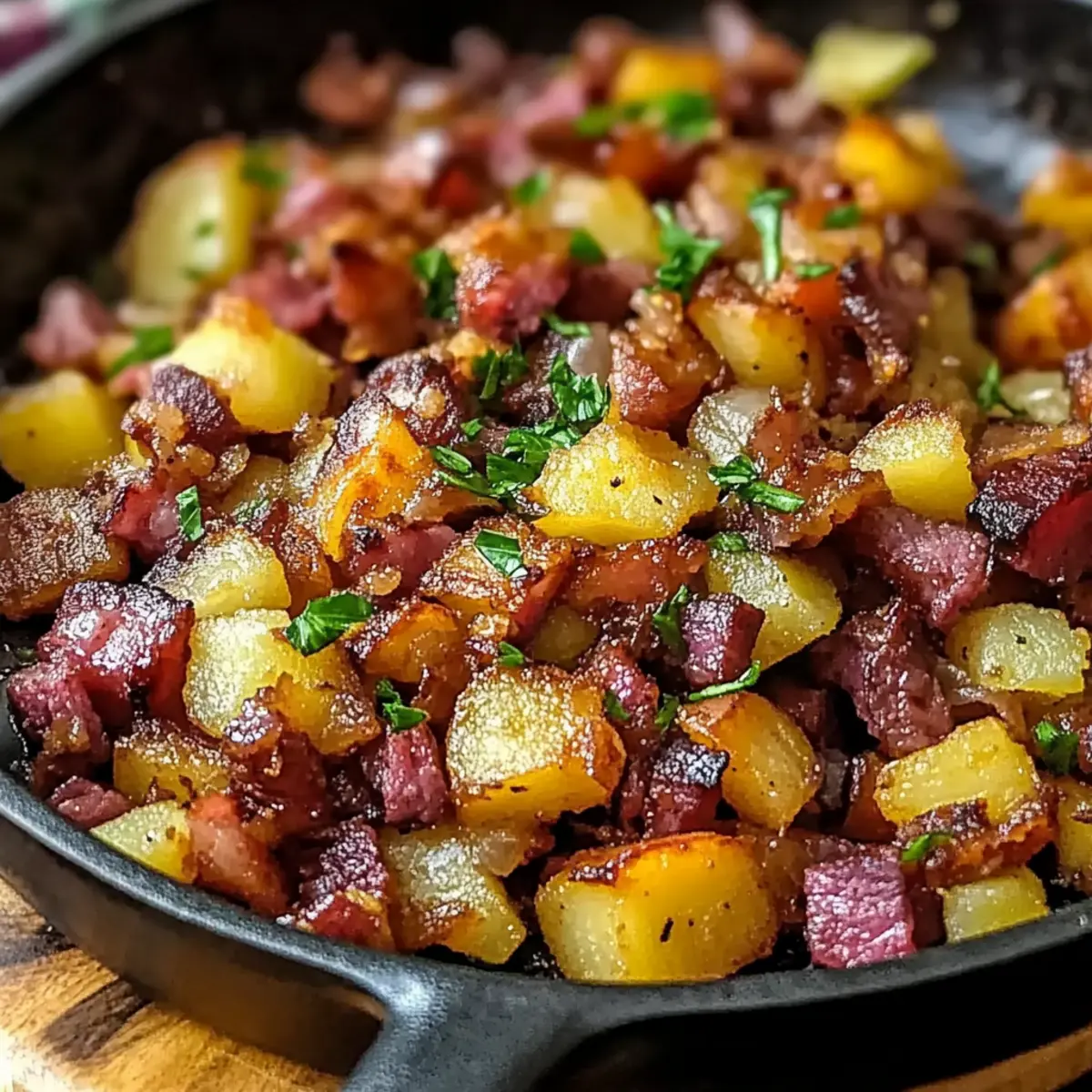Jump to Recipe Print RecipeThe aroma of sizzling onions and crispy potatoes wafts through the air, transporting me straight to my favorite diner booth. Corned Beef Hash has always been the ultimate comfort food at breakfast or brunch, effortlessly blending the savory goodness of corned beef with tender, caramelized potatoes. This amazing recipe is not only easy to whip up but also a fantastic way to turn leftovers into a hearty meal that warms the soul. Each bite offers that delightful mix of crunchy edges and soft interiors that keeps me coming back for more. It’s a quick meal that says “I care,” perfect for those busy mornings or leisurely weekends. Curious how to create this nostalgic dish yourself? Let’s dive into the recipe and bring that diner magic home! Why is Corned Beef Hash a Must-Try? Nostalgic Flavors: This dish brings back fond memories of hearty breakfasts and cozy diners, making every bite a walk down memory lane. Simple Steps: With just a few ingredients and straightforward instructions, you’ll have a delicious meal ready in no time. Versatile Delight: Enjoy it for breakfast, brunch, or even dinner — it’s the perfect dish for any occasion! Easy Meal Prep: Use leftovers to craft a satisfying meal, reducing food waste while maximizing flavor. For an extra twist, check out Pasta Salad Discover. Crowd-Pleasing: Everyone loves a good Corned Beef Hash, making it an excellent choice for family gatherings or lazy weekends. Try serving it with a side of fried eggs or a dollop of sour cream for a truly delightful experience! Corned Beef Hash Ingredients For the Hash Corned Beef – The star of the dish, offering rich flavor; canned corned beef can be a time-saver. Potatoes – Provides substance and absorbs flavor well; choose a waxy variety for the best texture. Onions – Adds a sweet and savory depth; caramelize them for an enhanced flavor profile. Cooking Oil – Essential for frying to achieve those iconic crispy edges; opt for vegetable or olive oil. Seasoning (Salt, Pepper) – Use these to elevate the overall taste; adjust to personal preference. Optional Toppings Eggs – For a satisfying pairing, top with fried or poached eggs to create a complete meal. Sour Cream – A dollop adds a creamy richness that pairs beautifully with the crispy hash. Avocado – Sliced avocado brings a delightful creaminess and freshness to the dish. Dive into the amazing culinary world of Corned Beef Hash, and let this ultimate recipe warm your heart! Step‑by‑Step Instructions for Corned Beef Hash: An Amazing Ultimate Recipe You Must Try Step 1: Prepare the Potatoes Begin by dicing your potatoes into small, uniform cubes for even cooking. Place them in a pot of salted water and bring it to a boil over high heat. Once boiling, reduce the heat to medium and simmer until the potatoes are tender, around 10 minutes. Drain the potatoes well, allowing them to rest briefly to eliminate excess moisture that could lead to sogginess. Step 2: Sauté the Onions In a large skillet, heat a generous splash of cooking oil over medium heat. Once shimmering, add finely chopped onions and sauté them until they turn translucent, about 4 minutes. The onions should become soft and fragrant, enhancing the overall flavor of your Corned Beef Hash. Stir occasionally to prevent sticking, achieving a lovely golden color on the edges. Step 3: Combine Potatoes and Onions Gently add the drained potatoes into the skillet with the sautéed onions. Stir well to combine, allowing the potatoes to soak up the savory onion aroma. Spread the mixture evenly across the skillet surface for even cooking. Let it sit undisturbed for about 2 minutes, so it begins to brown slightly on the bottom, creating that crispy texture you crave in your Corned Beef Hash. Step 4: Add the Corned Beef Next, fold in the diced corned beef, ensuring it’s evenly distributed throughout the mixture. Press the mixture into a single layer in the skillet, which helps in crisping the edges. Cook for approximately 5-7 minutes without stirring, allowing it to develop a golden, crispy crust on the bottom. Keep a close eye on it to prevent burning while enhancing that delightful crunchy texture. Step 5: Flip and Crisp After the corn beef hash has achieved a beautiful golden-brown color on one side, it’s time to flip sections carefully with a spatula to crisp the other side. Continue to cook for another 5 minutes, adjusting the heat if necessary to achieve an even golden finish. The goal is to have every bite of your Corned Beef Hash perfectly crispy and delicious! Step 6: Season and Serve Once the Corned Beef Hash is nicely crispy on both sides, season it to taste with salt and black pepper, mixing well to ensure even distribution. Remove it from the heat and transfer to plates. Consider garnishing with fried or poached eggs on top for added richness and color, or serve alongside a dollop of sour cream for delicious creaminess that perfectly complements every bite! Make Ahead Options Preparing Corned Beef Hash in advance is a game-changer for busy mornings! You can boil and dice your potatoes up to 24 hours ahead, ensuring they’re ready to soak up all those delicious flavors. Also, you can sauté the onions beforehand, letting them cool before storing in an airtight container in the fridge for up to 3 days. To keep the quality intact, refrigerate your prepped components separately and combine them only when you’re ready to cook. When it’s time to serve, simply add the crumbled corned beef to your cooked potatoes and onions in a skillet, crisping everything up as per the original recipe, and enjoy restaurant-quality results with minimal effort! What to Serve with Classic Corned Beef Hash Imagine pairing the crispy goodness of corned beef hash with delightful sides that elevate your meal to new heights. Fried Eggs: A classic companion, they add a rich, runny yolk that melds beautifully with the savory hash. Sliced Avocado: Its creamy texture