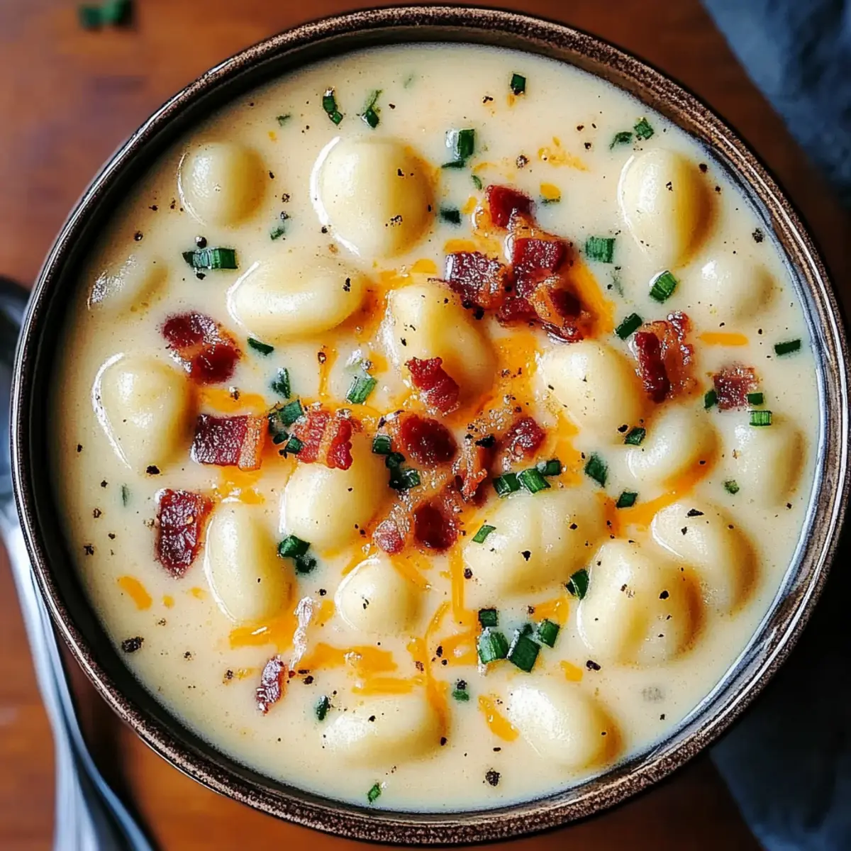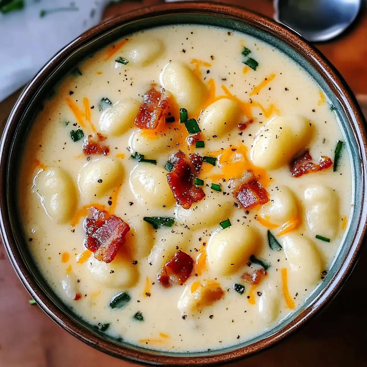 The chilly evening air wrapped around me like a cozy blanket as I sipped my favorite soup, the rich aroma of bacon mingling with sharp cheddar wafting from the pot. That’s when I knew: a bowl of Creamy Bacon Cheddar Gnocchi Soup would be the highlight of my week. This quick recipe not only comes together in just 38 minutes, but it also delivers on the comfort front—perfect for those nights when you want something heartwarming yet easy to whip up. Plus, with the ability to customize it according to your taste, whether swapping in turkey bacon for a leaner option or mixing in your favorite cheeses, this soup becomes a versatile go-to for any occasion. Ready to embrace the warmth of this delightful dish? Let’s dive in and create a comforting masterpiece together!