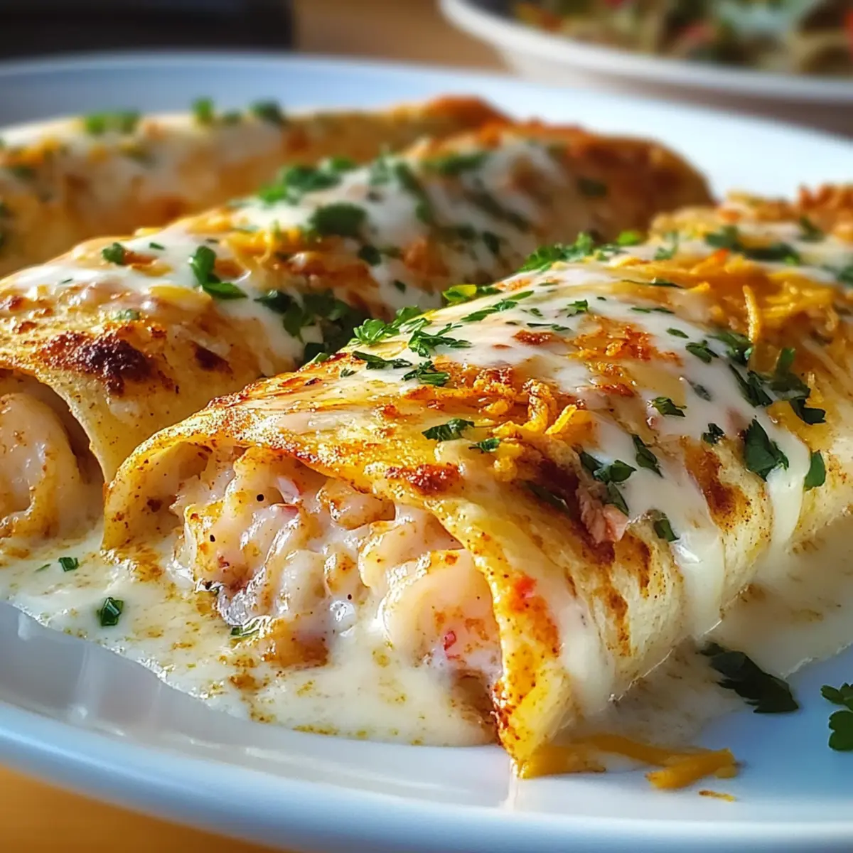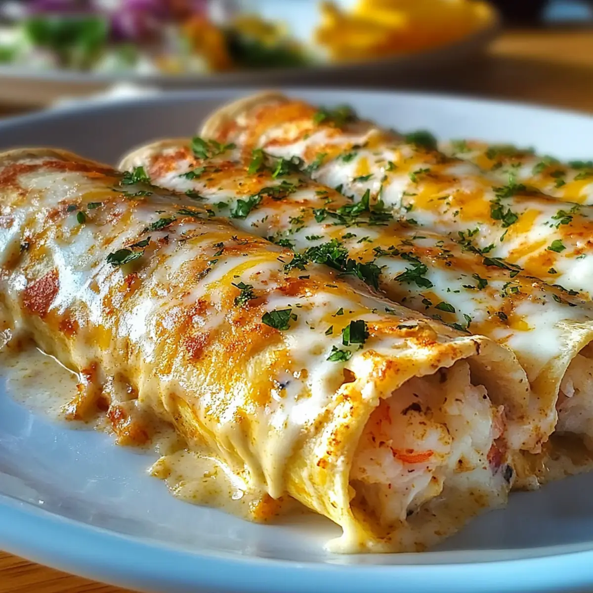 Jump to Recipe Print RecipeAs I stood by the stove, the aroma of sautéed shrimp and onions filled the air, instantly transporting me to a cozy coastal restaurant. This experience inspired my recipe for Creamy Shrimp & Crab Seafood Enchiladas, a delightful twist on classic Tex-Mex comfort food. With tender fillings nestled in soft tortillas and draped in a velvety white sauce, these enchiladas are perfect for turning any meal into a festive occasion. Not only are they easy to prepare, but they also elevate your weekday dinners with an air of indulgence. Whether you’re impressing guests or simply treating yourself, these enchiladas are sure to become a favorite. Curious about how to recreate this seaside delight in your own kitchen? Let’s dive in! Why Make Seafood Enchiladas? Comforting Charm: These enchiladas blend the cozy feel of classic Tex-Mex with the luxurious taste of fresh seafood. Easy to Make: A simple recipe that even novice chefs can master, bringing homemade goodness to your table effortlessly. Rich, Creamy Sauce: The velvety white sauce adds a delightful richness, perfectly complementing the shrimp and crab filling. Versatile Options: Feel free to customize with your favorite seafood or spices to match your taste, making this dish your own. Crowd-Pleasing Delight: Perfect for family dinners or gatherings; serve with cilantro lime rice or a fresh salad for a complete meal! Feast for All: Whether you’re treating yourself or hosting friends, these enchiladas elevate any occasion into a special event. Seafood Enchilada Ingredients For the Filling Shrimp – Provides a tender, juicy seafood flavor; ensure they are peeled and chopped for easy filling. Lump Crab Meat – Adds sweetness and a delicate texture; fresh is best, but canned can be substituted if necessary. Onion – Adds aroma and depth of flavor to the filling; can be sautéed before mixing into the seafood. For the Sauce Butter – Used for the sauce base; it adds richness and flavor that complements the seafood. All-Purpose Flour – Thickens the creamy sauce; gluten-free flour can be used as an alternative. Broth – Adds liquid and flavor; chicken or vegetable broth works well for the base of your sauce. Sour Cream – Provides creaminess and tang to the sauce; Greek yogurt can be a lighter substitute. Cream Cheese – Gives the sauce a rich texture; can be omitted for a lighter sauce if desired. For the Enchiladas Flour Tortillas – Wraps the filling; ensure they are warmed for easier rolling, or opt for corn tortillas for a gluten-free option. Monterey Jack Cheese – Melts beautifully on top, adding creaminess; can be replaced with cheddar or a dairy-free cheese. Step‑by‑Step Instructions for Creamy Shrimp & Crab Seafood Enchiladas Step 1: Sauté the Seafood In a large skillet over medium heat, melt a tablespoon of butter. Add the chopped onion and sauté for about 3-4 minutes until they become translucent and fragrant. Then, stir in the peeled and chopped shrimp, cooking for another 3-5 minutes until they turn pink and opaque. Gently fold in the lump crab meat, ensuring it’s well mixed, then remove the skillet from heat and set aside. Step 2: Prepare the Creamy Sauce In a medium saucepan, melt 4 tablespoons of butter over medium heat. Whisk in 1/4 cup of all-purpose flour and cook for about 2 minutes until it turns a light golden color. Gradually pour in 2 cups of broth while stirring continuously to prevent lumps, cooking until the mixture thickens and bubbles—about 5-7 minutes—creating a luscious sauce for your seafood enchiladas. Step 3: Incorporate Creamy Elements Reduce the heat to low and add 1/2 cup of sour cream and 4 ounces of cream cheese to the thickened sauce. Stir well until the mixture is creamy and smooth, ensuring everything is fully blended. Taste and season with salt and pepper as desired. This rich sauce is the perfect complement to the shrimp and crab filling. Step 4: Assemble the Enchiladas Warm the flour tortillas in a dry skillet for about 30 seconds per side to make them pliable. Take a tortilla, place a generous spoonful of the seafood mixture down the center, and then roll it tightly. Repeat this process until all filling is used, placing the rolled enchiladas seam-side down in a greased baking dish. Step 5: Add Sauce and Cheese Preheat your oven to 350°F (175°C). Pour the creamy sauce evenly over the rolled enchiladas in the baking dish, ensuring they are well coated. Sprinkle 1 cup of shredded Monterey Jack cheese generously over the top. The cheese will melt beautifully as the enchiladas bake, creating a golden, bubbly topping. Step 6: Bake to Perfection Place the baking dish in the preheated oven and bake for 25-30 minutes, or until the cheese is melted, bubbly, and slightly golden. You’ll know it’s ready when the edges of the enchiladas begin to crisp and the aroma fills your kitchen. Let them cool for a few minutes before serving to enhance the flavors. Step 7: Serve with Sides Serve the creamy shrimp & crab seafood enchiladas warm, garnished with fresh cilantro if desired. Pair with sides like cilantro lime rice or a crisp green salad to balance the richness of the dish. Enjoy a comforting culinary experience that brings coastal flavors straight to your dinner table! Variations & Substitutions for Seafood Enchiladas Discover your own delicious twist on these seafood enchiladas; the options are almost endless! Dairy-Free: Substitute all dairy with coconut milk and dairy-free cream cheese to create a creamy yet light sauce. Dairy alternatives easily elevate this dish without losing flavor, offering a rich and satisfying experience. Spicy Kick: Add diced jalapeños or serrano peppers to the shrimp mixture for a fiery touch. Spice lovers will appreciate the heat, balancing the creamy sauce with a zesty bite that awakens the senses. Lively Lemon: Squeeze fresh lemon juice over the filling before rolling for a vibrant flavor boost. This simple addition brightens