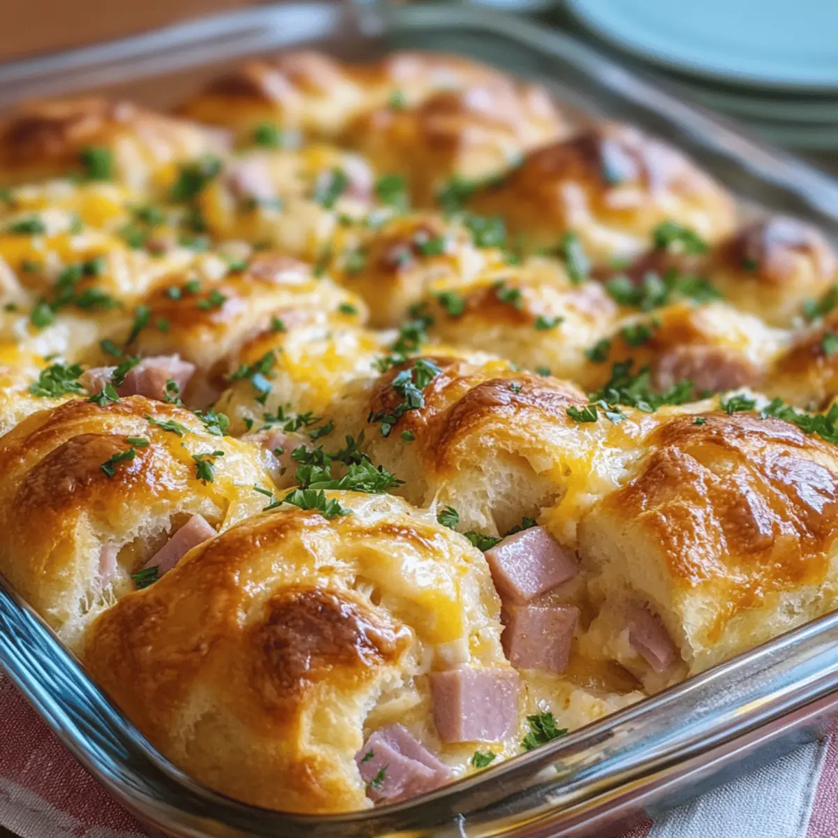 Jump to Recipe Print Recipe“What’s for breakfast?” I can almost hear my family asking as the weekend approaches. With a busy schedule and the desire for something delicious, I often find myself scrambling for ideas. Enter the Easy Crescent Roll Breakfast Casserole—this dish has become my go-to solution! Bursting with soft, buttery crescents filled with creamy cheese and a delightful mix of flavors like ham and a hint of jalapeño, it’s a dish that pleases everyone at the table. Not only is this casserole incredibly easy to whip up, but it also serves as the perfect crowd-pleaser for brunches or family gatherings. Plus, it’s reheatable, so I can enjoy those cozy leftovers throughout the week. Curious about how to make this scrumptious breakfast staple? Let’s dive into the recipe! Why Choose Crescent Roll Breakfast Casserole? Simplicity: This casserole is incredibly easy to prepare, making it perfect for busy mornings or last-minute brunches. Crowd-Pleasing: With its soft crescents and savory filling, it’s sure to impress family and friends alike—everyone will be coming back for seconds! Versatility: You can easily swap out ingredients; try bacon instead of ham or add your favorite veggies for a personalized touch. Reheatable: Enjoy warm and comforting slices throughout the week—simply pop them in the microwave for a quick breakfast fix! Flavor Explosion: The combination of creamy cheese, savory ham, and a pinch of jalapeño packs a delicious punch that will wake up your taste buds. For those who love breakfast delights, this casserole stands out like a warm hug on a plate. If you enjoy more easy breakfast ideas, check out our Skillet Breakfast Hash or maybe the Bagel Breakfast Sliders for added options! Crescent Roll Breakfast Casserole Ingredients For the Casserole Crescent Dough – provides a buttery base; choose refrigerated dough for ease. Cream Cheese – adds a creamy texture; Neufchâtel can be used for a lighter version. Eggs – essential for binding; opt for large eggs to ensure the perfect rise. Milk – contributes moisture; whole milk is best, but any milk works. Shredded Cheese – brings gooeyness; combine cheddar and Monterey Jack for delightful flavor. Diced Ham – adds protein and heartiness; feel free to substitute with cooked bacon or sausage. Jalapeño – introduces a mild heat; omit if you prefer a milder casserole or swap for sweet bell peppers. Fresh Parsley – adds a pop of color; it’s optional if you don’t have it on hand. Salt and Pepper – essential seasonings; adjust according to your taste preference. This Crescent Roll Breakfast Casserole is truly a delightful dish for any occasion. Ready to whip it up? Let’s go! Step‑by‑Step Instructions for Crescent Roll Breakfast Casserole Step 1: Preheat and Prepare Begin by preheating your oven to 375°F (190°C) while you grease a 9×13-inch casserole dish with non-stick cooking spray or butter. This will ensure that your Crescent Roll Breakfast Casserole easily comes out after baking. As the oven warms, gather your ingredients to streamline the preparation process. Step 2: Prepare the Crescent Dough Unroll the refrigerated crescent dough onto a clean surface. Gently separate the triangles and spread a thin layer of cream cheese on each triangle. Carefully roll them up from the wide end to the point, forming little crescents. Place these rolled crescents snugly in the greased casserole dish, ensuring they are evenly distributed for consistent baking. Step 3: Whisk the Egg Mixture In a mixing bowl, crack the large eggs and pour in the milk. Whisk them together until fully combined and frothy, about 1-2 minutes. Then, stir in the shredded cheese, diced ham, jalapeño, fresh parsley, salt, and pepper. This flavorful egg mixture will bind all your ingredients together, creating a delicious filling for your casserole. Step 4: Combine and Pour Once your egg mixture is ready, pour it evenly over the arranged crescent rolls in the casserole dish. Make sure to cover all the crescents generously, allowing the egg mixture to seep in. This step is crucial for ensuring that every bite of your Crescent Roll Breakfast Casserole is full of cheesy goodness and flavor. Step 5: Bake to Perfection Place the casserole in the preheated oven and bake for 30–40 minutes. Keep an eye on it as it bakes; the top should become puffed and golden brown. If the top starts to brown too quickly, cover it loosely with aluminum foil to prevent over-baking. Your kitchen will start to fill with mouthwatering aromas! Step 6: Cool and Serve After baking, remove the casserole from the oven and let it rest for about 5 minutes. This resting time allows the flavors to meld together and makes it easier to slice. Cut the casserole into squares, serve warm, and enjoy your delicious and hearty Crescent Roll Breakfast Casserole with family or friends! Expert Tips for Crescent Roll Breakfast Casserole Egg Mixture Consistency: Ensure the egg mixture is thick but pourable for even distribution. This helps every bite of the Crescent Roll Breakfast Casserole be flavorful. Crescent Shape Matters: Roll the crescent dough tightly but not too loose; this ensures that the cheese and egg mixture doesn’t leak out during baking. Baking Time: Monitor the baking closely. The casserole is ready when puffed and golden. If it browns too fast, cover with foil. Reheating Tips: Slice individual portions before reheating; this makes it easier to warm up in the microwave or oven without overcooking. Ingredient Substitutions: Don’t hesitate to swap ingredients! Use bacon or veggies instead of ham for a delightful twist to the recipe. Make Ahead Options This Crescent Roll Breakfast Casserole is perfect for busy mornings and can be easily prepared in advance! You can assemble the entire casserole up to 24 hours ahead of time. Simply follow all the preparation steps, but instead of baking, cover the dish tightly with plastic wrap and refrigerate. This n