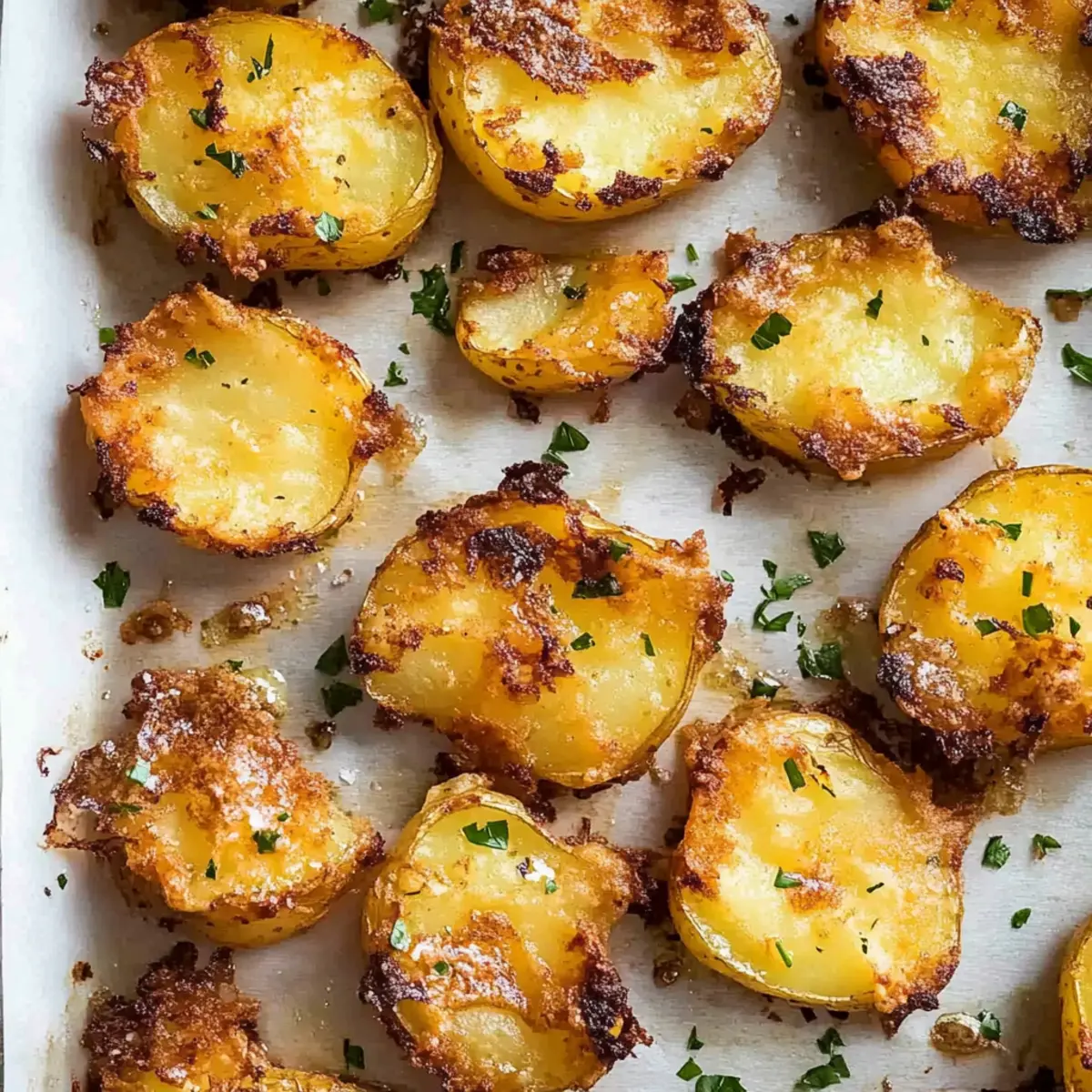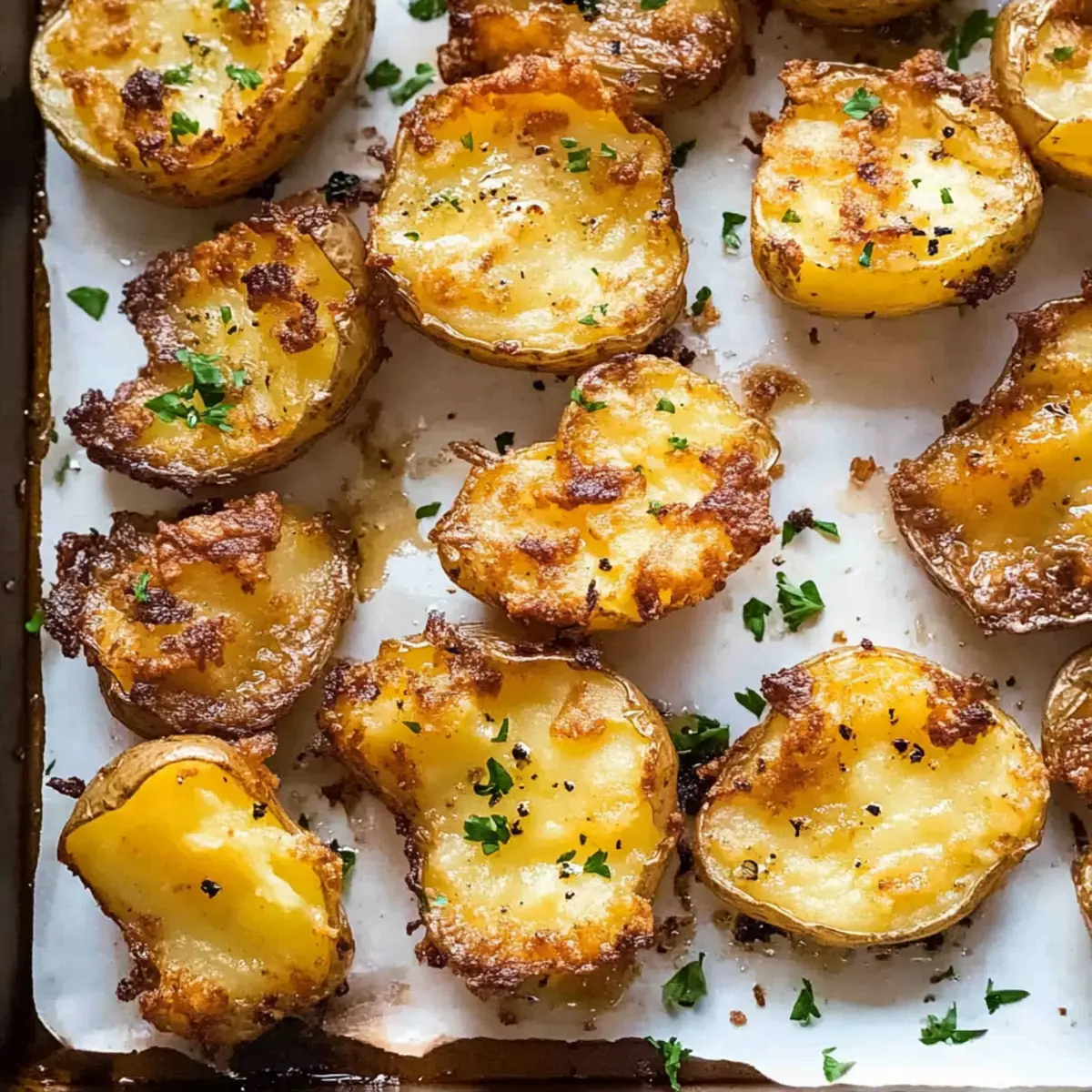 Jump to Recipe Print RecipeAs I reached for a simple bag of potatoes, I never imagined I’d transform them into a side dish that could steal the show. These Ultra Crispy Smashed Potatoes are not just another way to serve spuds; they boast a buttery, crunchy exterior that perfectly contrasts with their fluffy interior, making them the ideal comfort food. With just a handful of ingredients and minimal prep time, you can create a dish that rivals even the most tempting fast-food fries while keeping it vegetarian-friendly. Whether you’re serving them as an irresistible snack or alongside your favorite protein, they’re bound to be a hit at your table. Curious how to achieve that perfect crunch? Let’s dive into this delicious recipe! How do you achieve ultra crispy potatoes? Irresistible Crunch: The secret to achieving a wonderfully crunchy exterior lies in the steaming and smashing technique, ensuring they get that coveted texture. Buttery Richness: Each potato is brushed with melted butter and olive oil, creating a deliciously rich flavor that enhances the dish. Simplicity: With just a few ingredients and steps, you’ll have a gourmet side ready in no time, perfect for any weeknight meal or special occasion! Crowd-Pleasing: These crispy smashed potatoes make for an excellent accompaniment to tender pork chops or even a delightful standalone snack, just like Hot Honey Fried Shrimp for your gatherings. Versatile Topping Options: Feel free to sprinkle some herbs or spices to add your personal touch; they adapt wonderfully to various flavor profiles! Crispy Smashed Potatoes Ingredients For the Potatoes • Small Potatoes – Use 700g (about 12-14) for a hearty bite; they are crucial for the dish’s texture. • Salt (for boiling) – 1 tbsp to enhance the flavor while boiling; this step is essential for taste. For the Flavor • Unsalted Butter – 30g (2 tbsp) melted adds a rich, buttery flavor that elevates the dish. • Olive Oil – 1 tbsp to help achieve a beautifully golden, crispy exterior without burning the butter. For the Seasoning • Salt (for sprinkling) – 3/4 tsp to finish the dish with a perfect burst of flavor. • Black Pepper – 1/4 tsp to lend a subtle kick and depth to the potatoes. For Garnishing • Finely Chopped Parsley – Optional, adds a pop of freshness and color to your crispy smashed potatoes. Step‑by‑Step Instructions for Ultra Crispy Buttery Smashed Potatoes Step 1: Cook Potatoes Begin by bringing a large pot of salted water to a rolling boil. Carefully add your small potatoes and cook for 20-30 minutes until they are tender when pierced with a fork. You want them soft enough to smash but not breaking apart. Drain the potatoes and allow them to steam in a colander for about 5 minutes, which helps remove excess moisture for crispy smashed potatoes. Step 2: Steam Dry After draining, let the potatoes sit in the colander for a further 5 minutes so they can dry out fully. This crucial step reduces moisture, ensuring a deliciously crispy texture once baked. As the water evaporates, preheat your oven to 200°C (390°F) so it reaches the perfect temperature for baking when you’re ready. Step 3: Smash Line a baking tray with parchment paper for easy cleanup. Transfer the dried potatoes to the tray, spacing them out evenly. Using a fork or potato masher, gently smash each potato to create a nubbly surface. Aim for a thickness of about 1 to 1.5 inches; this allows for greater crunch while keeping the fluffy interior intact, making your crispy smashed potatoes irresistible. Step 4: Steam Dry Again Let the smashed potatoes rest for another 5 minutes on the baking tray. This time allows the surface to dry out further, enhancing their crispiness while baking. As you wait, prep your melted butter and olive oil mixture for drizzling, adding an extra layer of flavor and crunch to your potatoes. Step 5: Drizzle Brush each smashed potato generously with your melted butter and olive oil mixture using a pastry brush. Be sure to coat them well to achieve that rich, buttery flavor. Next, sprinkle them with salt and black pepper to taste. This seasoning will enhance the natural flavors of the crispy smashed potatoes and contribute to their golden color during baking. Step 6: Bake Place the baking tray in your preheated oven and bake for 45-55 minutes. Watch for a beautiful golden hue developing on the potatoes; they should be crispy on the edges and lightly browned. Avoid flipping them during baking to maintain their shape and ensure maximum crunch on one side. Step 7: Serve Once your ultra crispy buttery smashed potatoes are golden and crispy, remove them from the oven. Serve them hot, optionally garnished with finely chopped parsley for a fresh touch. These mouthwatering potatoes make a delightful side dish or stand-alone snack, ideal for any meal or gathering! Storage Tips for Crispy Smashed Potatoes Fridge: Store leftover crispy smashed potatoes in an airtight container for up to 3 days. This keeps them fresh while preventing sogginess from excess moisture. Freezer: If you want to freeze them, place cooled smashed potatoes in a single layer on a baking sheet and freeze for about 1-2 hours. Transfer the frozen potatoes to a freezer-safe bag for up to 2 months. Reheating: To reheat, place the potatoes on a baking tray and bake at 200°C (390°F) for 15-20 minutes until they are heated through and regain some crispiness. Enjoy your delicious crispy smashed potatoes anytime! Variations & Substitutions for Crispy Smashed Potatoes Feel free to get creative with your crispy smashed potatoes, transforming them into a customized delight that reflects your tastes! Herbed Infusion: Add a few sprigs of rosemary or thyme to the boiling water for a fragrant touch that sings with flavor. It wonderfully complements the buttery notes. Cheesy Delight: Sprinkle Parmesan or cheddar cheese on top before baking for an irresistible cheesy crust. The melty goodness makes these potatoes trul