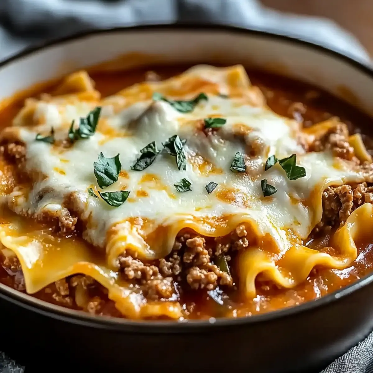 Jump to Recipe Print RecipeThe kitchen buzzed with excitement as I prepped a bubbling pot of goodness—it was time for my favorite weeknight hero, the Crock Pot Lasagna Soup. As the aroma of seasoned meat and melting cheese wafted through my home, it brought a comforting sense of nostalgia, reminding me of family gatherings and cozy evenings. What I love about this recipe is not just its ease—perfect for busy schedules—but also how it invites creativity with customizable ingredients. Whether you prefer hearty ground beef or a veggie-packed twist, each bowl is a testament to the joys of homemade cooking. This gluten-free dish delivers warmth and satisfaction that rivals any classic lasagna, yet it’s easier than you might think. Are you ready to turn your slow cooker into a portal for deliciousness? Why is Crock Pot Lasagna Soup a Must-Try? Convenience: This recipe requires minimal prep, letting your slow cooker do all the work while you relax or tackle other tasks. Perfect for family dinners with busy schedules. Flavorful Layers: Each hearty spoonful combines rich seasonings, tender meat, and creamy cheese, delivering that familiar lasagna taste you crave without the fuss. Customization: Choose your protein and veggies! Switch up ingredients to suit your preferences, whether you’re using ground turkey, sautéed mushrooms, or seasonal veggies. Crowd-Pleaser: With its cozy appeal, this dish brings everyone to the table. Serve with crusty bread or a fresh salad, and you’ll be the star of the night! Health-Conscious Option: The recipe offers gluten-free variations, making it a perfect fit for anyone with dietary needs. For more hearty, comforting recipes, check out our Cheesy Hamburger Potato casserole! Crock Pot Lasagna Soup Ingredients For the Soup Ground Beef – The main protein source; switch with ground turkey, chicken, or plant-based alternatives for a healthier option. Diced Tomatoes – Adds depth and acidity; opt for canned or fresh based on availability and preference. Beef Broth – Provides a rich soup base; chicken or vegetable broth can serve as flavorful alternatives. Pasta – Acts as the filler; add during the last 30 minutes of cooking to prevent mushiness. For the Creamy Finish Ricotta Cheese – Offers a creamy texture; substitute with cream cheese or increase mozzarella for a different depth. Mozzarella Cheese – Melts beautifully on top; choose low-fat mozzarella for a lighter version without sacrificing flavor. For Flavor Italian Seasoning – A blend of herbs for the essential lasagna flavor; fresh herbs can enhance the freshness and vibrancy of your dish. This Crock Pot Lasagna Soup is not only delicious but also invites you to make it your own with various customizable ingredients! Step-by-Step Instructions for Crock Pot Lasagna Soup Step 1: Prep Meat In a large skillet over medium heat, brown 1 pound of ground beef, cooking it thoroughly for about 6–8 minutes until no longer pink. Drain any excess fat, then set aside the cooked beef. This step ensures your Crock Pot Lasagna Soup has a rich, meaty flavor that’s essential for the heartiness of this dish. Step 2: Combine Ingredients In your crock pot, combine the browned ground beef with 1 can of diced tomatoes (including juices), 3 cups of beef broth, and 1 tablespoon of Italian seasoning. Stir everything well, allowing the spices to infuse into the meat and liquid. This mixture will be the flavorful base of your delectable Crock Pot Lasagna Soup as it simmers throughout the day. Step 3: Set Cooking Time Cover your slow cooker and set it to low heat, allowing the soup to cook for 4–6 hours. This slow cooking process will meld the flavors together, creating a rich aroma that fills your home with warmth. You want the mixture to gently bubble, indicating that it’s brewing the comforting layers of flavor reminiscent of traditional lasagna. Step 4: Add Pasta About 30 minutes before you’re ready to serve, stir in your choice of pasta, such as broken lasagna noodles or rotini. This time ensures the pasta becomes tender without turning mushy. Cover the crock pot again and let the soup continue to cook until the pasta is al dente, soaking up delicious flavors from the broth and meat. Step 5: Creamy Finish Once the pasta is cooked, it’s time to add the creamy elements. Stir in 1 cup of ricotta cheese and 1 cup of shredded mozzarella cheese into the soup. Allow it to melt and blend for about 5 minutes, stirring until you achieve that luscious, creamy consistency that makes this Crock Pot Lasagna Soup so comforting and irresistible. Step 6: Serve Ladle your warm and inviting Crock Pot Lasagna Soup into bowls, garnishing with additional mozzarella or fresh herbs as desired. This hearty dish pairs perfectly with crusty bread or a light salad for a complete and satisfying meal. Feel free to customize your toppings to add a personal touch to your comforting creation! Expert Tips for Crock Pot Lasagna Soup Perfectly Tender Pasta: Add pasta during the last 30 minutes of cooking to avoid it becoming mushy. This ensures a delicious texture in your Crock Pot Lasagna Soup. Ingredient Swaps: Don’t hesitate to swap ground beef for leaner proteins like turkey or chicken. This keeps your dish healthier without compromising flavor. Broth Choices: Use beef broth for a rich base, but chicken or vegetable broth can work wonders too. Just make sure they align with your flavor preferences and dietary needs. Customize Your Cheese: Try mixing ricotta and cream cheese for added creaminess. You can also experiment with different types of mozzarella for flavor diversity. Store Wisely: Refrigerate leftovers promptly and reheat gently to maintain the creamy texture of your soup. You can enjoy this comforting dish for several days! What to Serve with Crock Pot Lasagna Soup? A cozy bowl of comfort deserves delightful companions that elevate the flavors and textures of your meal. Crusty Garlic Bread: This warm bread perfectly comple