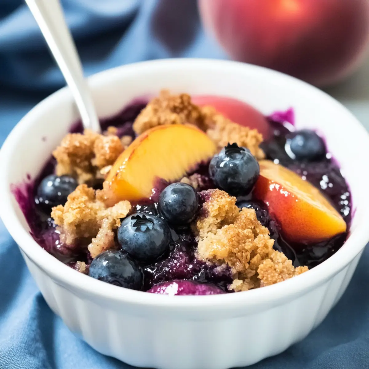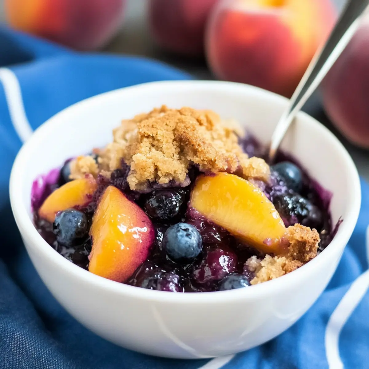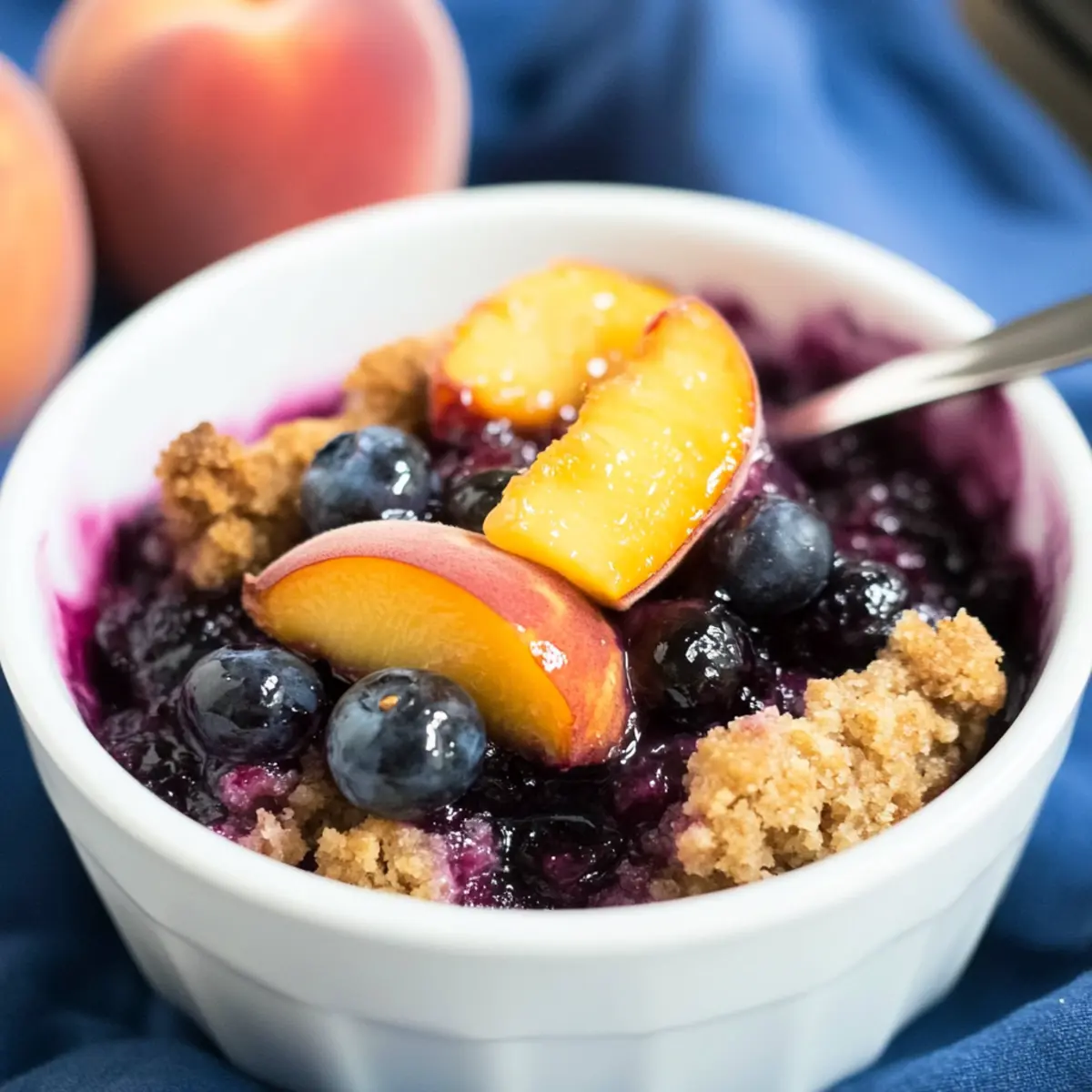 • Zesty Lemon: Add a tablespoon of lemon juice or zest to the fruit mixture for a refreshing zing that complements the sweetness of the blueberries and peaches beautifully.