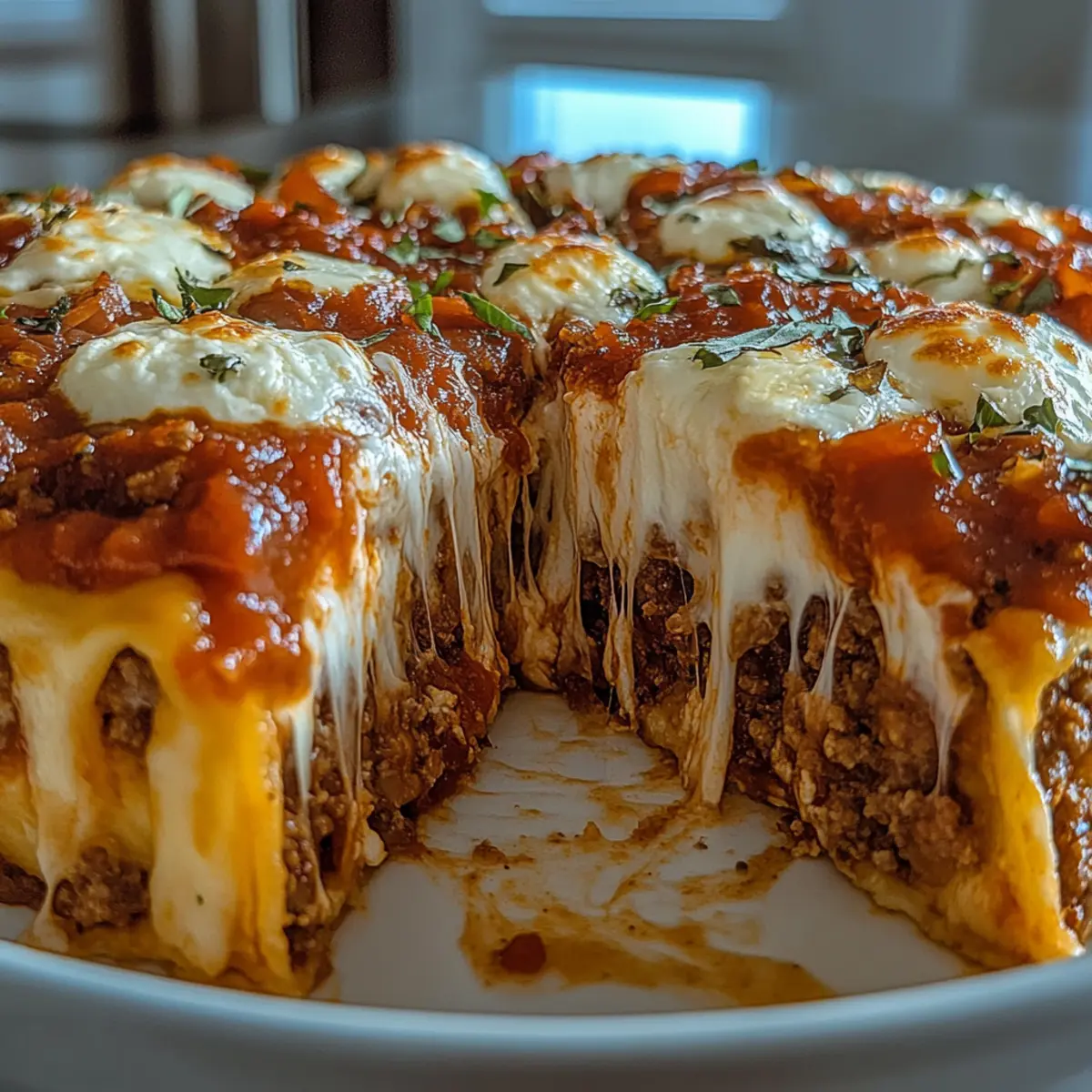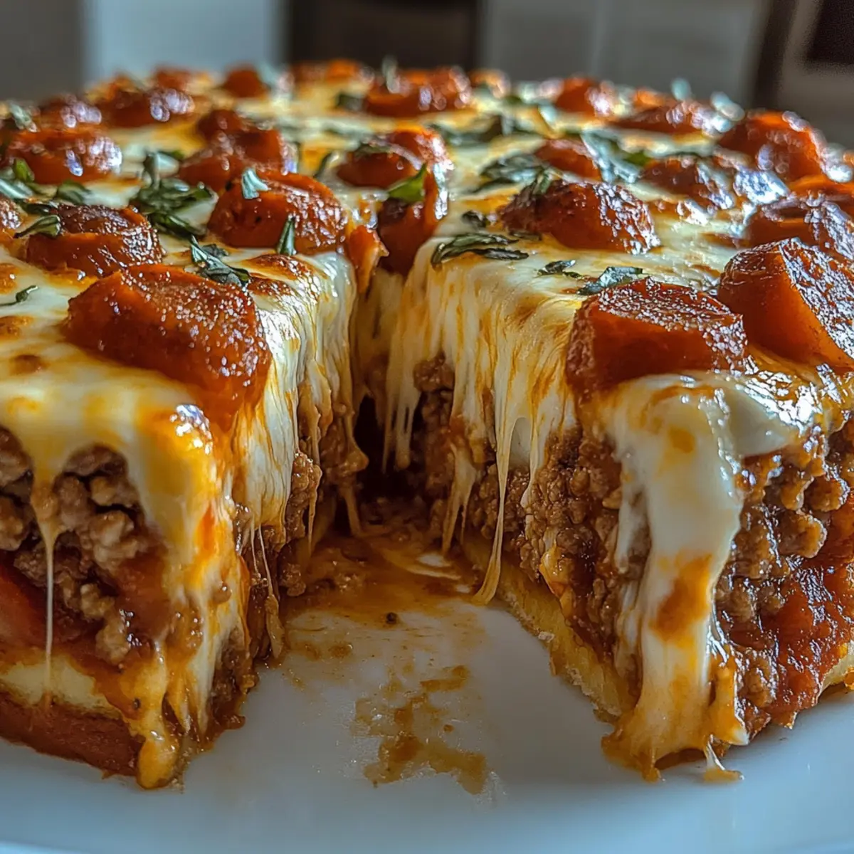 Jump to Recipe Print RecipeAs I prepped dinner one night, a sudden craving for pizza hit me hard. But instead of turning to greasy takeout, I decided to whip up a nutritious twist: a 53g Protein Crustless Pizza Pie that promises all the comforting flavors of traditional pizza without the carbs. It’s not just a healthier choice; it’s a high-protein, low-carb delight packed with satisfying ingredients that make it perfect for muscle gain and weight loss. Plus, it’s versatile—load it up with your favorite toppings like zesty pepperoni or colorful veggies, allowing you to customize each bite. Intrigued? Let’s dive into this hearty recipe that will redefine your pizza night! Why Choose Crustless Pizza Pie? Deliciously Guilt-Free: Indulging in pizza doesn’t have to derail your diet. This crustless pizza pie offers an amazing 53g of protein while keeping carbs at bay. Endless Variations: Customize with your favorite toppings—be it vibrant veggies or classic pepperoni—making it a dish that satisfies every palate. Quick & Easy: Whipping up this pizza takes minimal time and effort, perfect for busy weeknights or spontaneous pizza cravings. Comfort Food Redefined: Experience the nostalgic taste of pizza without the heaviness, giving you a satisfying meal that fits into your healthy lifestyle. Meal Prep Friendly: Make ahead and enjoy leftovers throughout the week! Simply store in the fridge or freeze for later enjoyment. To explore more versatile dessert options, check out this tasty Rhubarb Cinnamon Pie for a delightful treat after dinner. Crustless Pizza Pie Ingredients Discover all you need for this delicious crustless pizza pie bursting with flavor! For the Base • Ground Chicken or Turkey – Provides lean protein; opt for lean cuts to keep it light. • Eggs – Acts as a binding agent; use large eggs for a fluffier texture. • Cottage Cheese – Adds creaminess and protein; drain well for a firmer pie. For the Cheese Layer • Shredded Mozzarella – Elevates the cheesiness; choose low-fat for a healthier option. • Grated Parmesan – Brings a nutty flavor that enhances the overall dish. For the Sauce & Seasoning • Pizza Sauce (sugar-free) – Adds moisture and classic pizza flavor; homemade is great too. • Italian Seasoning – Suggests a traditional herb profile; fresh herbs can brighten the taste. • Garlic Powder – Enhances aroma and depth; feel free to substitute with fresh garlic. • Salt & Pepper – Essential for flavor; adjust to taste based on your preference. For Optional Toppings • Pepperoni (optional) – Adds a savory kick; use turkey pepperoni for a leaner choice. • Optional Veggies – Mushrooms, olives, onions, or jalapeños add flavor and nutrition; customize as you like! Step‑by‑Step Instructions for 53g Protein Crustless Pizza Pie Step 1: Preheat the Oven Begin by preheating your oven to 400°F (200°C). While the oven warms up, lightly grease a 9-inch pie dish with cooking spray or olive oil to ensure your crustless pizza pie doesn’t stick. This preparation will make the baking process smoother and make clean-up easier later on. Step 2: Cook the Protein Base In a skillet over medium heat, add your ground chicken or turkey. Sauté until browned, about 5–7 minutes, breaking apart the meat as it cooks. Season it generously with salt, pepper, and garlic powder for flavor. Once cooked through, drain any excess liquid to avoid a soggy pie and set the skillet aside to cool slightly. Step 3: Prepare the Egg Mixture In a large bowl, whisk together 4 eggs, cottage cheese, grated Parmesan, and Italian seasoning until smooth. This mixture should be creamy with no lumps. Gradually stir in half of the shredded mozzarella, ensuring even distribution throughout. This combination will bind the crustless pizza pie and provide a rich texture. Step 4: Combine & Layer the Ingredients Carefully add the cooked ground meat to your greased pie dish, spreading it evenly across the bottom. Then, pour the egg mixture over the meat ensuring it covers all surfaces. This forms the hearty base of the crustless pizza pie. Next, spoon the pizza sauce on top and spread it evenly, followed by the remaining mozzarella and optional pepperoni. Step 5: Bake to Perfection Place the pie dish in your preheated oven and bake for 25–30 minutes. You’ll know it’s ready when the top is golden brown and bubbly, creating a delicious visual contrast. The aroma of cheesy goodness will fill your kitchen, making it hard to wait! Step 6: Cool & Serve Once baked, remove the crustless pizza pie from the oven and allow it to cool for about 5 minutes. This resting time is crucial as it helps the pie firm up, making it easier to slice. Cut into wedges and serve warm, enjoying the hearty flavors and texture that make this a satisfying meal. What to Serve with 53g Protein Crustless Pizza Pie? Elevate your meal with delightful sides that complement your savory, protein-packed pizza experience. Fresh Side Salad: A colorful mix of greens, tomatoes, and cucumbers drizzled with balsamic dressing adds crunch and freshness. It’s the perfect balance to the hearty pizza. Steamed Broccoli: Tender, vibrant broccoli seasoned with lemon juice brings a lightness and extra fiber that pairs beautifully with your crustless pie. Garlic Roasted Cauliflower: Oven-roasted cauliflower with garlic offers a nutty flavor and a satisfying texture, enhancing your pizza dish experience without adding carbs. Zucchini Noodles: Light and nourishing, zucchini noodles tossed in olive oil and garlic provide a refreshing complement that aligns beautifully with the pizza’s richness. Italian Herb Breadsticks: Soft, herb-infused breadsticks are perfect for dipping into any leftover sauce and add a familiar touch of comfort to your meal. Protein Smoothie: A fruity protein smoothie made with spinach, banana, and almond milk can be a delightful drink option, keeping your meal light and nutritious while satisfying sweet crav