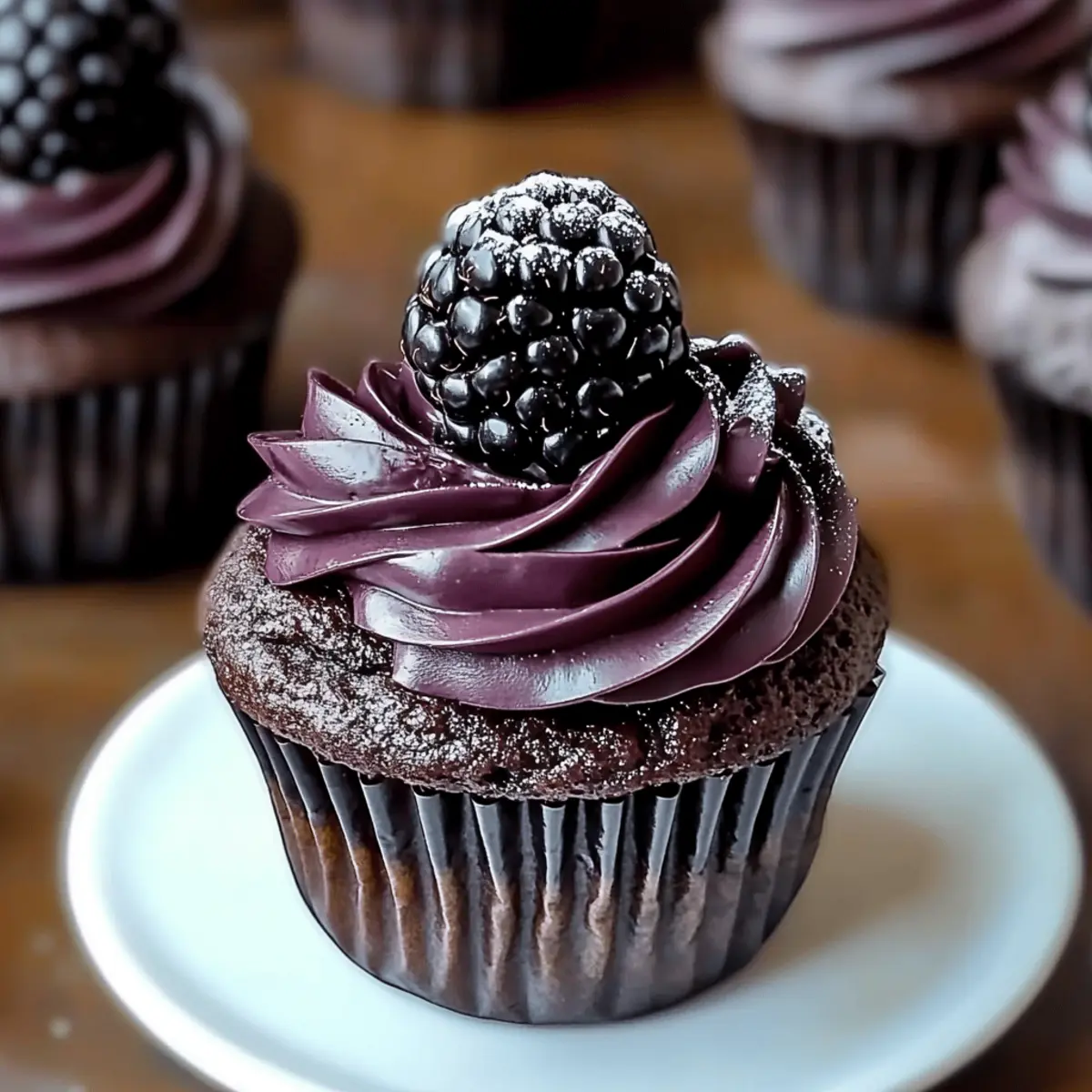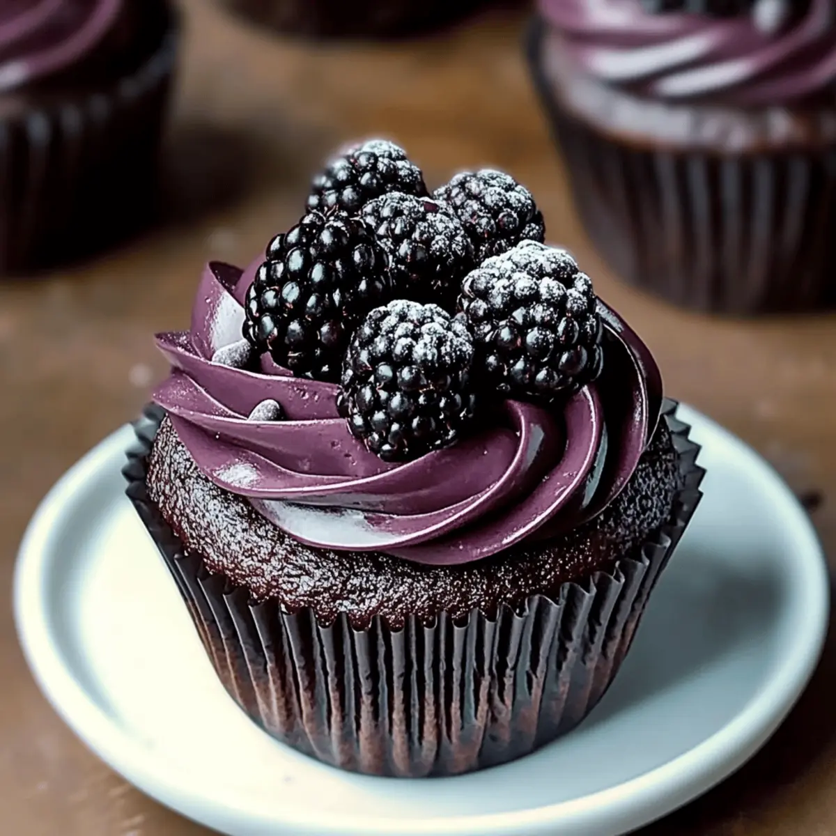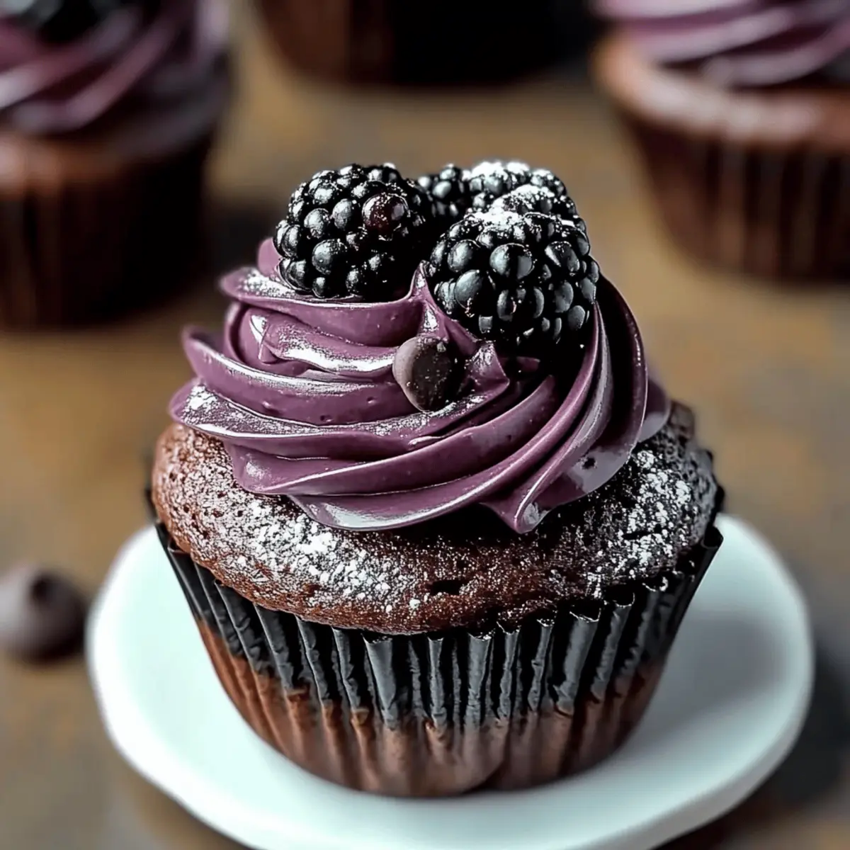 Jump to Recipe Print RecipeThere’s a certain magic in the air when you mix dark chocolate and fresh blackberries—a delightful storm of flavor that creates something truly irresistible. While weeknights can often lead to the familiar call of takeout, I find that making these Dark Chocolate Blackberry Cupcakes transforms even the most mundane days into something special. Not only do these cupcakes bring a stunning visual appeal to any gathering, but they’re also incredibly easy to whip up, making them perfect for both celebrations and quiet moments at home. You’ll relish their moist texture and the tantalizing burst of blackberry with each bite. Ready to elevate your dessert game and impress your friends or family? Let’s dive into this delectable recipe! Why are Dark Chocolate Blackberry Cupcakes special? Indulgent flavors collide: Dark chocolate meets tart blackberries for a blissful balance. Easier than you think: With simple ingredients and straightforward steps, you’ll feel like a pro chef in no time. Perfect for any occasion: Whether it’s a birthday party or a quiet night in, these cupcakes fit right in. Visually stunning: The beautiful deep colors make these cupcakes a feast for the eyes as well as the palate. Pair with a dollop of freshly whipped cream or a scoop of vanilla ice cream for an unforgettable dessert experience! 🌟 If you adore chocolate in your treats, check out our Yogurt Chocolate Chip cookies or try a lightening pick-me-up with a Chocolate Banana Protein smoothie. Dark Chocolate Blackberry Cupcakes Ingredients For the Cupcakes • All-Purpose Flour – Provides structure; substitute with gluten-free flour for a gluten-free option. • Unsweetened Cocoa Powder – Adds rich chocolate flavor; stick with this for best results. • Granulated Sugar – Sweetens the batter; consider coconut sugar for a slightly healthier twist. • Baking Powder – Helps the cupcakes rise; always check for freshness for optimal results. • Baking Soda – Works with the acidity of buttermilk for leavening; do not replace with baking powder. • Salt – Enhances the flavor; optional but recommended to balance sweetness. • Unsalted Butter – Adds richness and moisture; salted butter can be used if unsalted is unavailable. • Eggs – Provides moisture and structure; for egg-free, substitute with flax eggs (1 egg = 1 tbsp flaxseed meal + 2.5 tbsp water). • Vanilla Extract – Adds depth of flavor; pure vanilla is preferred for the best taste. • Buttermilk – Balances moisture and acidity; can be replaced with sour cream or milk plus a splash of vinegar. • Fresh Blackberries – Provide a tart contrast to chocolate; raspberries can be substituted in a pinch. • Dark Chocolate Chips – Enhance richness and provide texture; semi-sweet chocolate is a suitable alternative. Embrace the indulgence of Dark Chocolate Blackberry Cupcakes, and let each bite transport you to dessert paradise! 🍫🫐 Step‑by‑Step Instructions for Dark Chocolate Blackberry Cupcakes Step 1: Preheat the Oven Begin by preheating your oven to 350°F (175°C). While the oven warms up, prepare a cupcake pan by lining it with paper liners to ensure easy removal of your decadent Dark Chocolate Blackberry Cupcakes later on. This initial step is crucial for achieving the perfect bake, so set a timer and get ready! Step 2: Combine Dry Ingredients In a large mixing bowl, whisk together the all-purpose flour, unsweetened cocoa powder, granulated sugar, baking powder, baking soda, and salt. Mix these dry ingredients until they are well combined and free of lumps. This step enhances the flavor of your cupcakes, so take a moment to appreciate the rich aroma of the chocolate as you work. Step 3: Cream Butter and Sugar In another bowl, use an electric mixer to cream together the softened unsalted butter and granulated sugar. Beat the mixture on medium speed until it becomes light and fluffy, usually about 3 to 5 minutes. This step adds air to the batter, making your Dark Chocolate Blackberry Cupcakes light and airy, so keep an eye on the texture! Step 4: Add Eggs and Vanilla Next, add the eggs one at a time into the creamed butter mixture, ensuring to mix thoroughly after each addition. Stir in the vanilla extract until fully incorporated. This step is essential for creating a moist batter that complements the rich chocolate and tart blackberries, so enjoy the inviting aroma that fills your kitchen. Step 5: Mix Wet and Dry Ingredients Gradually add the dry ingredient mixture to the wet ingredients, alternating with the buttermilk. Start and end with the dry ingredients, mixing until just combined and smooth. Be careful not to overmix, as this can lead to denser cupcakes. The batter should be thick and glossy, signaling that it’s ready for the next step. Step 6: Fold in Blackberries and Chocolate Chips Gently fold in the fresh blackberries and dark chocolate chips using a spatula. Take care not to smash the blackberries as you mix; you want those beautiful bursts of flavor throughout your Dark Chocolate Blackberry Cupcakes. This folding technique keeps the batter fluffy, ensuring delightful texture in every bite. Step 7: Fill the Cupcake Liners Using a scoop or a spoon, fill each cupcake liner about two-thirds full with the batter. This allows room for the cupcakes to rise beautifully as they bake. Position the filled pan in the preheated oven and close the door gently, so you don’t let out any precious heat required for the perfect bake. Step 8: Bake to Perfection Bake the cupcakes for 18-20 minutes, or until a toothpick inserted into the center comes out clean with just a few moist crumbs. Keep an eye on them towards the end of the baking time to avoid overbaking. The top of your Dark Chocolate Blackberry Cupcakes should appear set and spring back when lightly pressed. Step 9: Cool Before Frosting Once baked, remove the cupcake pan from the oven and let the cupcakes cool in the pan for about 5 min
