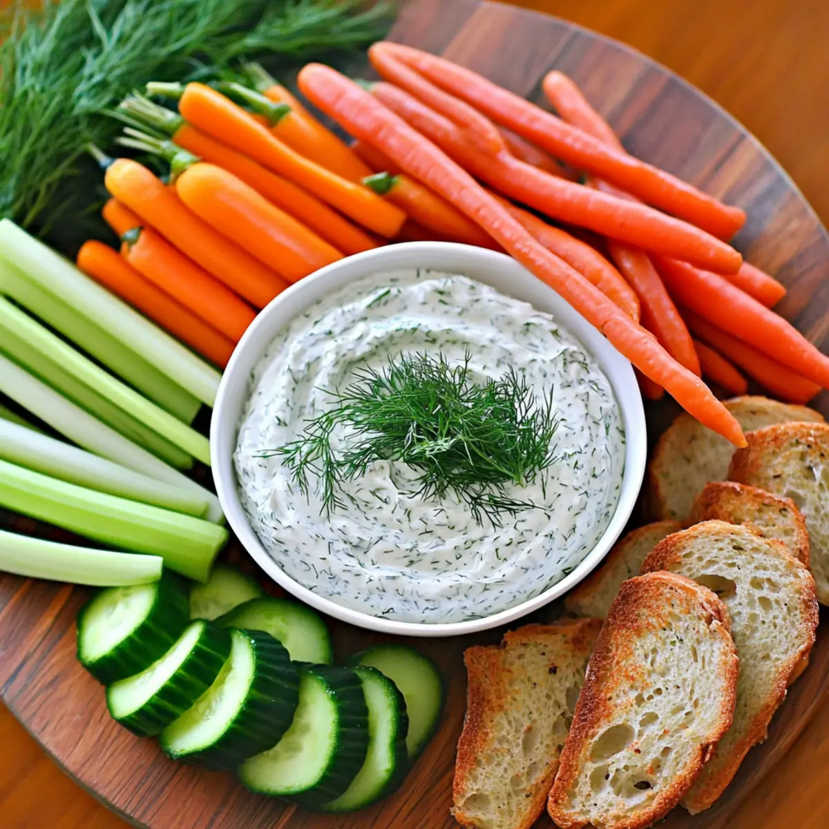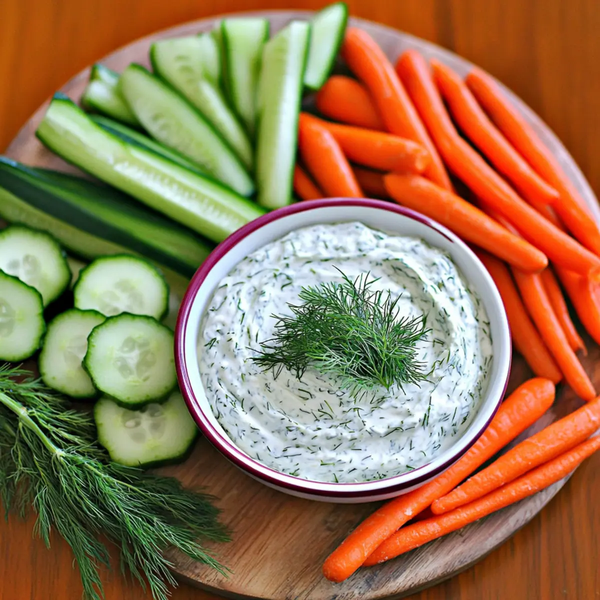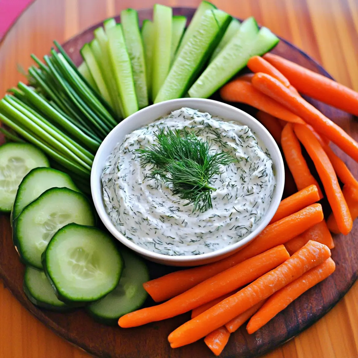 Jump to Recipe Print RecipeAs I stood in my kitchen, the subtle scent of fresh dill brought me back to sunny summer picnics, where laughter danced through the air and bites of crisp veggies dipped in creamy goodness delighted everyone. That’s when I decided to whip up my Quick and Easy Dill Dip, a recipe that captures the essence of those gatherings in just five minutes. This dip isn’t just quick to prepare; it’s a delightful addition to any party spread, effortlessly pairing with vibrant fresh vegetables and hearty rye bread. Whether you’re planning a casual get-together or simply need a refreshing snack to enjoy on your own, this dip will surely impress. Ready to dive into a dip that will elevate your summer gatherings? Let’s get started! Why is this Dill Dip a Must-Try? Instant Delight: This Quick and Easy Dill Dip comes together in just five minutes, making it perfect for last-minute gatherings or spontaneous snacking. Creamy Goodness: With a blend of mayonnaise and sour cream, every bite is rich and satisfying. Fresh Flavors: The bold taste of fresh dill elevates this dip, bringing a touch of summer right to your table. Perfect Pairing: Serve it alongside colorful fresh vegetables or chunks of rye bread for an enticing appetizer that everyone will love. Make-Ahead Convenient: Prepare it in advance, allowing the flavors to meld overnight, ensuring you’re stress-free when entertaining. Elevate your next gathering with this irresistible dip, or try it with other tasty options like our Grilled Cod Roasted for a well-rounded meal! Dill Dip Ingredients • For the Dip Base Finely Chopped Onion – Adds sharpness and depth; green onions work well for a milder flavor. Garlic (minced) – Provides a robust aroma and taste to balance the creaminess; fresh garlic is best for flavor. Mayonnaise – Serves as the creamy base; swap with Greek yogurt for a healthier alternative. Sour Cream – Contributes tanginess and richness; you can use low-fat sour cream for a lighter option. • For the Seasoning Seasoned Salt – Enhances overall flavor; adjust to taste, or use regular salt with a pinch of garlic powder if necessary. Chopped Fresh Dill Weed – The key flavor component that brings freshness; for a backup, use 1.5 tablespoons of dried dill. • For Serving Assorted Veggies – Choose a colorful mix for visual appeal, perfect for dipping. Rye Bread Chunks – Ideal for dipping; hollowed-out rye bread enhances both taste and presentation. Enjoy creating your Dill Dip that not only tastes delicious but also adds a delightful touch to your summer gatherings! Step‑by‑Step Instructions for Dill Dip Step 1: Combine the Base Ingredients In a medium mixing bowl, combine finely chopped onion, minced garlic, mayonnaise, and sour cream. Stir gently with a spatula until the mixture is well blended, resulting in a creamy and smooth base. This should take about 1-2 minutes. Ensure there are no lumps, and the aromas of garlic and onion fill the air, creating a flavorful foundation for your Dill Dip. Step 2: Add the Seasonings Next, sprinkle in seasoned salt and chopped fresh dill weed into the mixture. Using your spatula, fold them in carefully, allowing the vibrant flavors to meld without overmixing. This step should take around 1 minute. Watch as the green specks of dill brighten the dip, enhancing both its appearance and flavor profile. Step 3: Chill for Flavor Development Cover the bowl with plastic wrap or transfer the dip to an airtight container. Place it in the refrigerator to chill for at least 2 hours, though overnight is preferable. This resting period allows the flavors of your Dill Dip to develop fully, creating a refreshing and harmonious taste. The dip should be thick and creamy when you check back, ready to impress your guests. Step 4: Prepare for Serving While the dip chills, prepare an assortment of fresh vegetables such as carrot sticks, celery, and bell pepper wedges. Cut rye bread into chunks or hollow out some pieces for dipping. This colorful spread will not only complement your Dill Dip but also create an inviting presentation that catches the eye of your guests. Step 5: Serve and Enjoy Remove the chilled Dill Dip from the refrigerator just before serving. Give it a quick stir for a smooth consistency, and transfer it to a serving bowl. Arrange the fresh vegetables and rye bread around the dip, creating a beautiful platter. Watch as guests gather around, eager to enjoy this delightful treat that adds a burst of flavor to your summer gathering. Make Ahead Options These Quick and Easy Dill Dip are ideal for busy home cooks looking to save time during meal prep! You can prepare the entire dip up to 24 hours in advance, allowing the flavors to meld beautifully. Simply mix together the chopped onion, minced garlic, mayonnaise, sour cream, seasoned salt, and fresh dill, then store it in an airtight container in the refrigerator. For optimal taste, make sure to let it chill for at least 2 hours before serving, or overnight for maximum flavor enhancement. When you’re ready to enjoy, just give it a quick stir to restore its creamy consistency. This makes entertaining effortless, as you’ll have a delicious appetizer ready to go at a moment’s notice! How to Store and Freeze Dill Dip Fridge: Keep the Dill Dip in an airtight container for up to 4 days. This ensures it stays fresh and flavorful for your next snacking occasion. Freezer: While not typically recommended, you can freeze the dip for up to 2 months. Store it in a freezer-safe container, though the texture may change upon thawing. Reheating: If frozen, thaw the dip in the refrigerator overnight before serving. Stir it well before enjoying, as freezing may alter the consistency. Make-Ahead Tips: This dip can be made ahead of time, allowing flavors to meld beautifully. Just stir it well before serving! Dill Dip Variations & Substitutions Feel free to get creative with this Dill Dip recipe and personalize it to match y