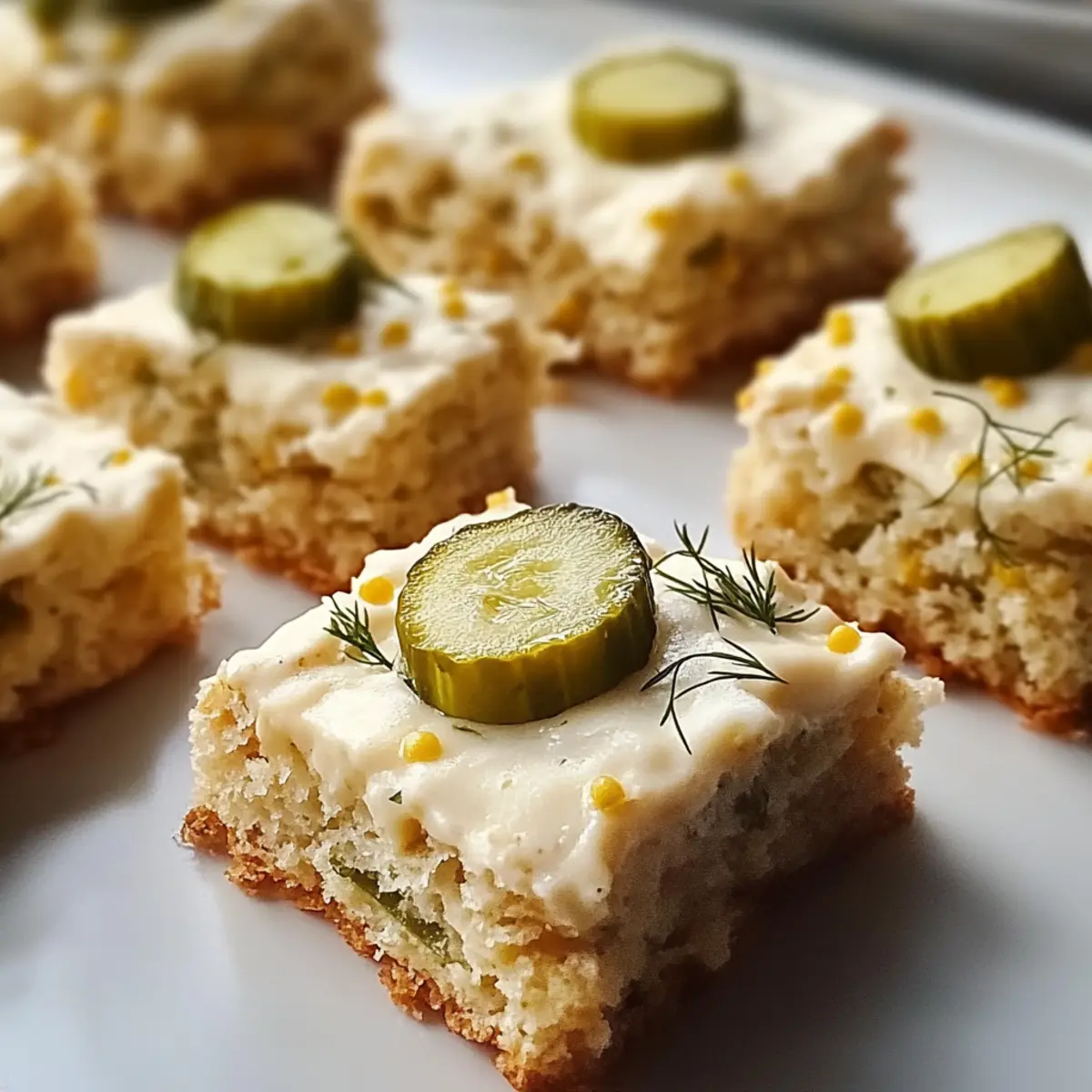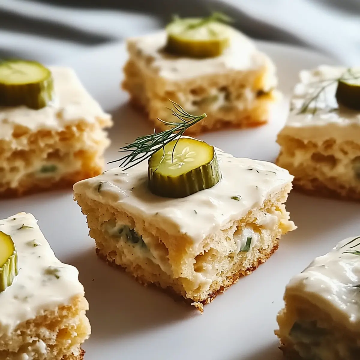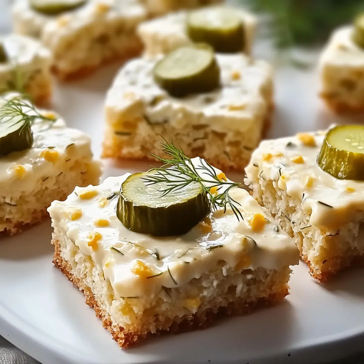 Jump to Recipe Print RecipeAs I stood in my kitchen, the familiar scent of something unexpected filled the air—warm, cheesy biscuits infused with the tang of dill pickles. These Dill Pickle Cheddar Biscuits took me by surprise, blending two beloved flavors into one delightful treat. With just 15-20 minutes of prep time, they’re perfect for anyone craving homemade goodness in a hurry. These biscuits aren’t just quick to make; they’re also a guaranteed crowd-pleaser, ideal for brunch, snacks, or an impromptu gathering with friends. Picture yourself serving them fresh from the oven, their crispy exteriors giving way to fluffy insides—you won’t be able to resist! Are you ready to discover the secret to these scrumptious bites? Why are these biscuits a must-try? Uniquely Flavorful: These Dill Pickle Cheddar Biscuits combine unexpected flavors that will have everyone guessing. Quick and Easy: Ready in just 15-20 minutes, they are perfect for a last-minute snack or brunch. Customizable Options: With gluten-free and vegan adaptations available, everyone can enjoy them. Perfectly Textured: Crispy outside, fluffy inside—each bite is a delight! Crowd-Pleaser: Ideal for gatherings or cozy nights in, serve them with zesty coleslaw or a warm tomato soup for a savory twist. Don’t miss out on bringing a smile to your guests—these biscuits are the way to go! Best Pickle Cake Bites Ingredients • Get ready to whip up something extraordinary! All-Purpose Flour – Forms the base of your biscuits; for a gluten-free option, swap with a 1:1 gluten-free flour blend. Baking Soda & Baking Powder – These leavening agents ensure your biscuits rise beautifully, creating that perfect fluffy texture. Garlic Powder – Adds a wonderful depth of flavor that complements the tang of dill pickles. Cayenne Pepper – A pinch brings a subtle heat; feel free to adjust based on your spice preference! Black Pepper – Offers a mild spiciness that enhances the overall flavor profile. Buttermilk – Creates a moist, tender biscuit; use a mix of plant milk and vinegar for a vegan alternative. Pickle Juice – Infuses the biscuits with tangy goodness, making them truly delightful. Melted Unsalted Butter – Brings richness to every bite; coconut oil works well as a vegan substitute. Large Egg – Acts as a binding agent, ensuring all ingredients stick together nicely. Chopped Dill Pickles – The star of the show! Fresh, crisp pickles deliver that signature tang you’ll love. Shredded Sharp Cheddar Cheese – Provides a creamy, savory texture that pairs perfectly with the pickles; feel free to try alternative cheeses too! Chopped Green Onions & Fresh Dill – Enhances the freshness and brightens up the flavor, making each biscuit more scrumptious! Get ready to savor the fantastic taste of these Dill Pickle Cheddar Biscuits! Step‑by‑Step Instructions for Best Pickle Cake Bites Step 1: Preheat Your Oven Start by preheating your oven to 400°F (200°C). This ensures your oven is hot enough to create that delightful golden crust on your Dill Pickle Cheddar Biscuits. While the oven heats up, gather all your ingredients and get ready to mix the dry components for that perfect biscuit dough. Step 2: Mix Dry Ingredients In a large mixing bowl, whisk together the all-purpose flour, baking soda, baking powder, garlic powder, cayenne pepper, and black pepper. This step is crucial for evenly distributing the leavening agents and spices. After a couple of minutes of whisking, you should see a well-blended mixture, ready to support the rise and flavor of your biscuits. Step 3: Combine Wet Ingredients In a separate bowl, mix the buttermilk, pickle juice, melted unsalted butter, and large egg until well incorporated. The combination of these wet ingredients ensures moisture and binds everything together. It should have a smooth consistency and an inviting aroma, perfectly complementing your biscuit adventure! Step 4: Create the Biscuit Dough Gently fold the wet mixture into the dry ingredients, stirring until just combined. Be careful not to over-mix; a few lumps are perfectly fine. This is where your Best Pickle Cake Bites start to take shape, so keep an eye out for a cohesive batter that still looks slightly rustic in appearance. Step 5: Fold in Flavorful Add-ins Carefully fold in the chopped dill pickles, shredded sharp cheddar cheese, chopped green onions, and fresh dill. This step is vital for ensuring every bite of your Dill Pickle Cheddar Biscuits is packed with flavor. You’ll notice the colors and textures come together beautifully in your dough, making it even more enticing. Step 6: Spoon the Dough Using a spoon or a cookie scoop, drop generous dollops of the biscuit dough onto a lined baking sheet, ensuring to leave space between each spoonful. Aim for about 2 inches apart for even baking. The dough should be slightly mounded. Take a moment to admire your creation before placing them in the oven! Step 7: Bake to Perfection Slide the baking sheet into your preheated oven and bake for 15-20 minutes, or until the biscuits have risen tall and are golden brown on the outside. You’ll know they’re ready when they emit a warm, inviting aroma and the tops feel firm yet springy to the touch. Don’t forget to enjoy the delightful wait as they bake! Best Pickle Cake Bites Variations Feel free to unleash your creativity and customize these delightful biscuits to match your taste and dietary needs! Gluten-Free: Swap in a 1:1 gluten-free flour blend for a biscuit that’s equally fluffy and tasty. Enjoy every crumb without worry! Vegan Delight: Replace buttermilk with plant milk mixed with vinegar, and swap melted butter with coconut oil—creating a buttery masterpiece that everyone can enjoy. Spicy Kick: Add finely diced jalapeños or a dash of hot sauce to the dough for those who appreciate a little heat in their baking adventure. Cheese Alternatives: Experiment with different cheeses like pepper jack or goat cheese