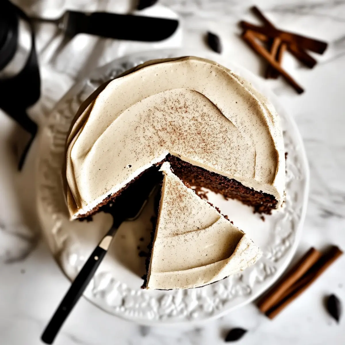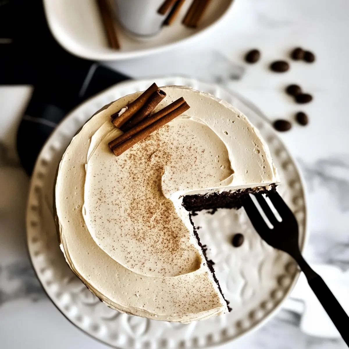 Jump to Recipe Print RecipeThe first sip of a dirty chai latte is like a warm embrace on a chilly morning, right? Now, imagine translating that cozy comfort into a cake—welcome to the world of Dirty Chai Latte Cake! This fluffy layer cake masterfully combines the luscious flavors of chai spice and rich espresso, topped with a velvety vanilla bean buttercream that will have everyone coming back for seconds. Not only is it an absolute crowd-pleaser, but it also makes for an impressive breakfast treat or decadent dessert. With minimal prep time and a simple list of ingredients, crafting this delightful cake will elevate your baking game to new heights. Curiosity piqued? Let’s dive into this exciting recipe that will revolutionize your dessert table! Why is this cake a must-try? Breathtaking Flavors: The perfect blend of chai spices and espresso creates a flavor explosion that coffee lovers won’t resist—it’s like your favorite latte in cake form! Easy to Make: With just a few straightforward steps, you’ll whip up this impressive dessert in no time. It’s perfect for bakers of all skill levels! Versatile & Fun: Feel free to adjust the spice levels or toppings to match your preferences; add nuts, chocolate chips, or whatever speaks to you! Impressive Presentation: Layers of fluffy cake crowned with creamy vanilla bean buttercream will wow your guests—great for gatherings or family celebrations. Perfect Pairing: Serve it alongside a cup of hot chai or coffee, enhancing that cozy vibe everyone loves! For other delightful cheesecake inspirations, check out Bake Oreo Cheesecake and Bake Chocolate Cheesecake. Make-Ahead Convenience: With make-ahead tips, you can prepare the cake layers in advance, making it a standout choice for any occasion. Dirty Chai Latte Cake Ingredients • Everything you need for a delightful treat! For the Cake Flour – The cake’s foundation; spoon and level for accuracy. Baking Powder – A must for leavening; ensure it’s fresh for the perfect rise. Salt – Enhances flavor; fine sea salt is recommended for the best taste. Chai Spice Mix – Adds warmth and spice; adjust to taste (aim for about 2.5–3 tsp). Butter – Provides richness and moisture; European style is preferred for lower moisture content. Sugar/Brown Sugar – Sweetens and maintains moisture; mixed ratios yield the best texture. Eggs – Key for structure; ensure freshness and room temperature. Oil – Keeps the cake moist; only a small amount is needed. Vanilla Extract – Boosts flavor immensely; opt for pure extract if available. Milk – Adds hydration; organic whole milk enhances flavor. Espresso Powder – Infuses robust coffee flavor; can be swapped with strong brewed coffee. For the Frosting Powdered Sugar – Essential for frosting; sift to avoid clumps, especially in humidity. Vanilla Bean Paste – The star of the frosting; enhances flavor and creaminess. Heavy Whipping Cream – Creates a luscious, fluffy texture in your frosting. Enjoy creating your stunning Dirty Chai Latte Cake! Step‑by‑Step Instructions for Dirty Chai Latte Cake Step 1: Prepare Espresso Milk In a small bowl or measuring cup, mix 1 cup of milk with 2 tablespoons of espresso powder. Stir well to combine, ensuring the espresso powder dissolves fully. Let this mixture sit for about 1 hour at room temperature to deepen the flavors, creating a rich espresso milk that will enhance your Dirty Chai Latte Cake. Step 2: Make Chai Spice Mix In a separate small bowl, prepare your chai spice mix by combining ground cardamom, ginger, cinnamon, and a pinch of nutmeg. Adjust the spice levels to your preference, aiming for about 2.5 to 3 teaspoons total. This flavorful blend will be the heart of your Dirty Chai Latte Cake, contributing warmth and a cozy aroma during baking. Step 3: Combine Dry Ingredients Sift together 2 cups of flour, 1 tablespoon of baking powder, and 1 teaspoon of salt in a medium mixing bowl. Sifting helps to aerate the flour and ensures an even distribution of leavening agent, preventing any clumps. Set this mixture aside, as you’ll be incorporating it into the wet ingredients shortly. Step 4: Cream Butter & Sugar In a large mixing bowl, cream together 1 cup of softened butter and 1 cup of granulated sugar with an electric mixer on medium speed. Mix until the mixture is light and fluffy, which should take about 4-5 minutes. This step is crucial for creating a tender texture in your Dirty Chai Latte Cake. Step 5: Incorporate Eggs Add 4 large eggs to the creamed butter and sugar, one at a time, mixing well after each addition. Beat until fully incorporated and the mixture is smooth, about 2 minutes total. This process adds structure to the cake, ensuring it rises beautifully during baking. Step 6: Combine Ingredients Gradually add the dry ingredient mixture to the creamed mixture in three increments, alternating with the prepared espresso milk. Begin and end with the flour mixture, mixing until just combined after each addition. Be careful not to overmix; a few small lumps are acceptable for a soft and tender cake. Step 7: Bake the Cake Preheat your oven to 350°F (175°C) and grease and line two 9-inch round cake pans with parchment paper. Divide the batter evenly between the pans and smooth the tops with a spatula. Bake in the preheated oven for 25-30 minutes, or until a toothpick inserted in the center comes out clean. Allow the cakes to cool in the pans for about 10 minutes. Step 8: Make Frosting In a large mixing bowl, whip 1 cup of softened butter using an electric mixer until smooth and creamy. Gradually add 4 cups of sifted powdered sugar, 1/4 cup of heavy whipping cream, and 1 tablespoon of vanilla bean paste. Beat until the frosting is light and fluffy, about 4-5 minutes. This creamy frosting is the perfect topping for your Dirty Chai Latte Cake. Step 9: Frost the Cake Once the cake layers are completely cooled, carefully turn them out onto a wire rack. Place one layer on a serving plat