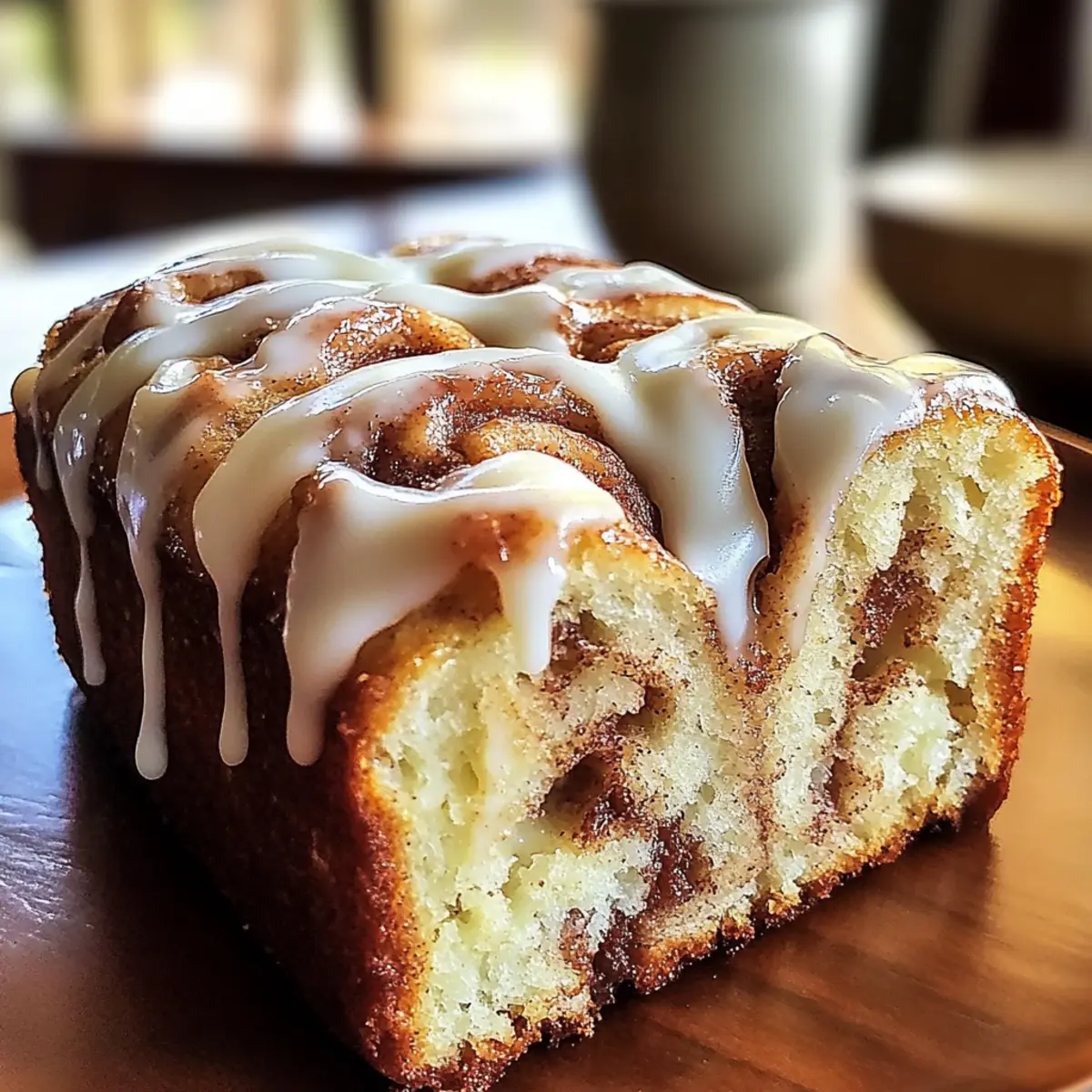 Jump to Recipe Print RecipeWhether I’m cozied up on a rainy afternoon or celebrating a special moment, the scent of freshly baked Dollywood Cinnamon Bread fills my home with warmth and nostalgia. This delightful recipe brings the theme park’s magic right to my kitchen, featuring luscious layers of cinnamon-sugar and a velvety vanilla icing that feels like a hug in every slice. Not only is it an easy-to-make loaf with a soft, buttery texture, but it’s also a versatile crowd-pleaser that can grace breakfast tables or serve as an indulgent dessert. Imagine the joy of sharing this sweet treat with family and friends, making it a seasonally perfect addition to cozy gatherings. Curious about how to create this enchanting bread that captures the essence of childhood memories? Let’s dive in! Why is Dollywood Cinnamon Bread so special? Amazingly Easy: This recipe offers a straightforward approach that even novice bakers can master without fuss. Heavenly Aroma: The combination of cinnamon and sugar fills your home with a delectable smell that lingers long after the bread is out of the oven. Customizable: Make it your own by adding crunchy nuts or fruity surprises, perfect for delighting everyone’s palate! Perfect for Sharing: Whether it’s breakfast or dessert, this bread is an instant hit at any get-together, sure to impress family and friends. Nostalgic Feel: Bring the heartwarming essence of Dollywood home with each slice, making memories that evoke smiles all around. Quick to Bake: With minimal prep time, you can enjoy this sweet delight in about an hour, leaving you plenty of time to savor your creation. For more sweet treats, check out my Rustic Rhubarb Cinnamon or Cinnamon Sugar Air recipes! Dollywood Cinnamon Bread Ingredients • Get ready to savor each layer! For the Bread All-Purpose Flour – Structure for the bread; you can substitute with whole wheat flour for a denser texture. Granulated Sugar – Adds sweetness and moisture; feel free to use coconut sugar for a lower glycemic option. Baking Powder – A vital leavening agent that helps the bread rise; avoid substituting unless using baking soda with an acid like buttermilk. Salt – Enhances the flavor; no substitute needed. Milk – Contributes moisture and richness to the loaf; almond milk works as a great dairy-free alternative. Melted Butter – Provides mouthwatering flavor and tenderness; swap it with coconut oil for a dairy-free version. Egg – Binds the ingredients and adds moisture; a flax egg is perfect for a vegan option. Vanilla Extract – Deepens the flavor profile; no substitute necessary. Brown Sugar – Offers sweetness and moisture with a richer flavor; light brown sugar or coconut sugar can be used instead. Ground Cinnamon – The star spice of this recipe; it’s best not to substitute. For the Icing Powdered Sugar – Creates sweetness for the icing along with a smooth texture; no substitutes needed. Milk (for icing) – Achieves the desired icing consistency; cream is a luxurious substitute. Vanilla Extract (for icing) – Adds that signature flavor; no substitute needed. Let’s make this delightful Dollywood Cinnamon Bread! Step‑by‑Step Instructions for Dollywood Cinnamon Bread Step 1: Preheat the Oven Begin by preheating your oven to 350°F (175°C) and greasing a standard loaf pan with butter or cooking spray. This ensures your Dollywood Cinnamon Bread bakes evenly and releases easily once done. As the oven heats up, gather your ingredients so you can seamlessly transition to the mixing process. Step 2: Combine Dry Ingredients In a large mixing bowl, whisk together 3 cups of all-purpose flour, 1 cup of granulated sugar, 1 tablespoon of baking powder, and 1 teaspoon of salt. This step is crucial for distributing the leavening agent and ensuring an even rise. Aim for a well-mixed dry mixture with a light, fluffy texture, which sets the foundation for your sweet, moist bread. Step 3: Mix Wet Ingredients In a separate bowl, mix together 1 cup of milk, ½ cup of melted butter, 1 large egg, and 1 teaspoon of vanilla extract. Stir until blended, allowing the butter to cool slightly while preventing it from cooking the egg. This creamy, flavorful blend will add moisture and richness to your Dollywood Cinnamon Bread, so be sure to mix well. Step 4: Combine Wet and Dry Mixtures Fold the wet ingredients into the dry mixture gently until just combined. Be careful not to overmix; a few lumps are perfectly fine. This step is vital for keeping the bread tender, as a heavy hand could lead to a dense texture. Your batter should be thick, soft, and ready for its delicious cinnamon layer. Step 5: Prepare the Cinnamon Filling In a small bowl, mix together ½ cup of melted butter, ¾ cup of brown sugar, and 2 tablespoons of ground cinnamon. Stir until well combined to form a rich, gooey filling. This cinnamon mixture will create delightful swirls throughout your Dollywood Cinnamon Bread, enhancing both flavor and visual appeal in each slice. Step 6: Layer the Batter and Filling Pour half of the batter into your greased loaf pan, spreading it evenly. Next, sprinkle half of the cinnamon filling over the batter. Carefully pour the remaining batter on top, followed by the rest of the filling. This layering technique ensures every slice is bursting with that signature cinnamon goodness. Step 7: Swirl for Design Using a knife, gently swirl the batter and filling to create a marbled effect. Insert the knife into the batter and make figure-eight motions to blend slightly without mixing completely. This step adds to the aesthetic appeal of your Dollywood Cinnamon Bread, promising a delightful surprise in each slice. Step 8: Bake the Bread Bake your prepared loaf in the preheated oven for 40-45 minutes. Keep an eye on it during the last few minutes to catch the perfect moment; the bread is done when a toothpick inserted into the center comes out clean. A golden-brown crust will also form, creating an enticing visual cue.