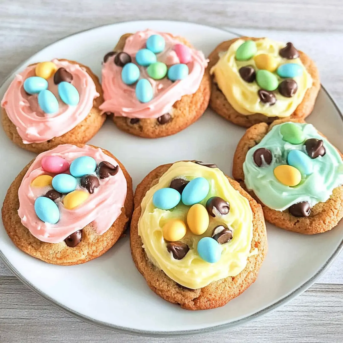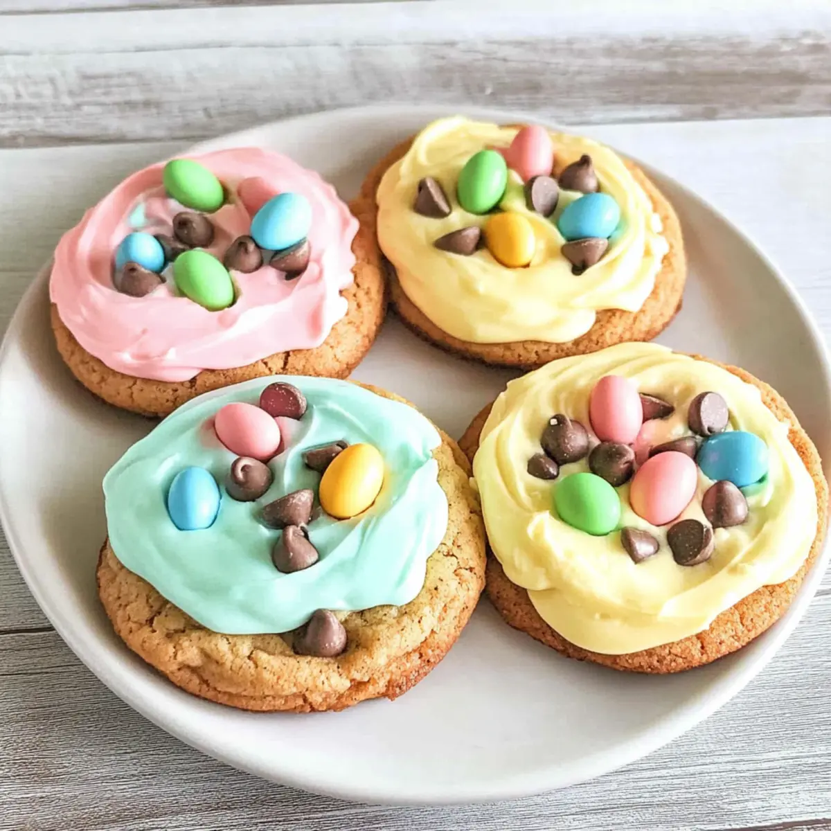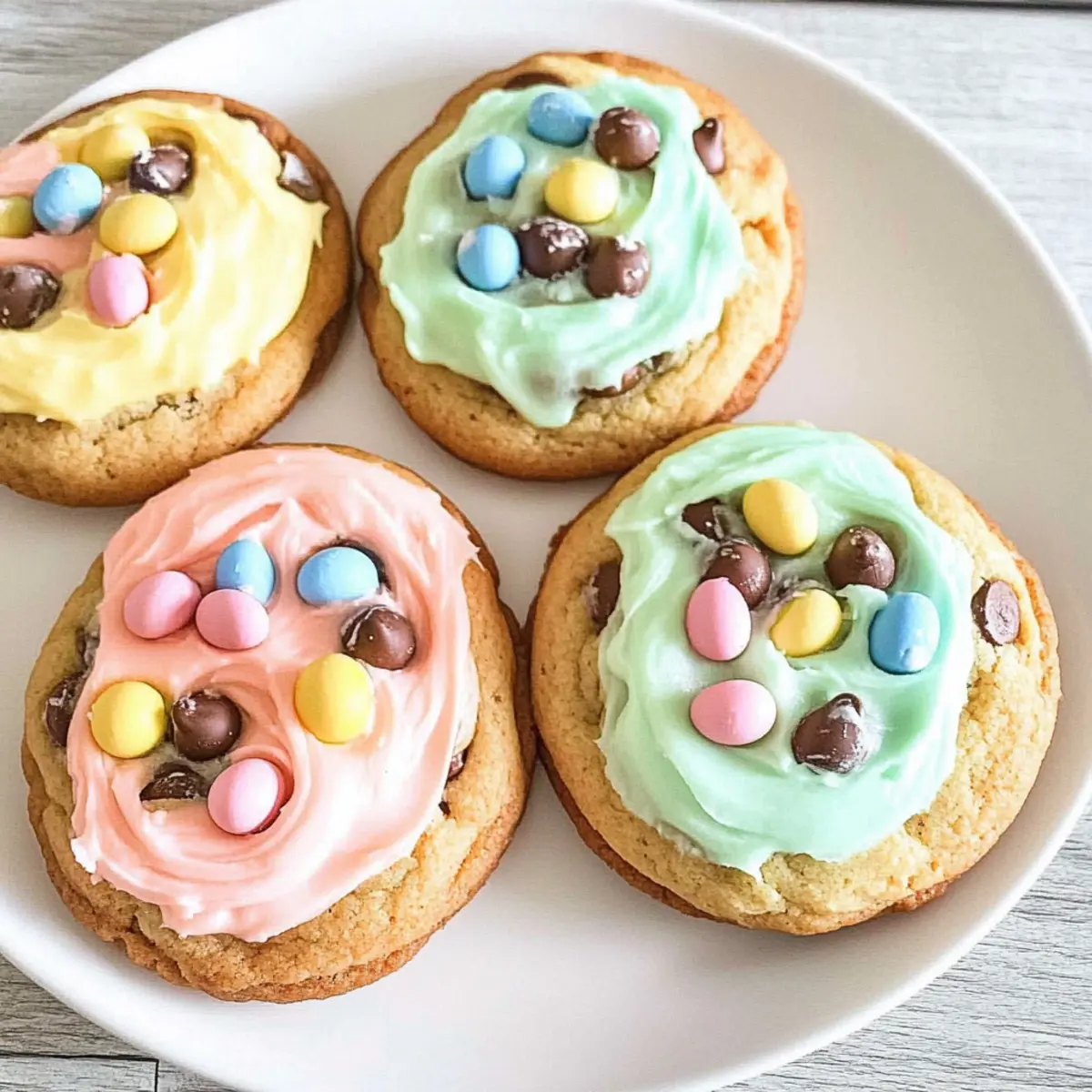 Jump to Recipe Print RecipeThe cheerful chime of church bells rings in the air, signaling that Easter is just around the corner! With all the festivities, there’s nothing quite like the comforting aroma of freshly baked treats to bring family and friends together. Enter my delightful Easter Chocolate Chip Cookies with Cadbury Mini Eggs—an innovative twist on a classic favorite that’s destined to steal the spotlight. These cookies offer a perfect blend of soft, chewy goodness paired with the playful crunch of Mini Eggs, making them an instant crowd-pleaser. Not only are they quick to whip up, but they also add a touch of color and charm to your holiday dessert table. Ready to bring some joy to your Easter celebrations? Let’s dive in and create a batch that will leave everyone asking for seconds! Why Are These Cookies So Special? Delightful Flavors: The combination of soft, chewy cookie dough with chunks of Cadbury Mini Eggs creates a flavor explosion that’s irresistible during Easter. Quick & Easy: With just a few straightforward steps, you can have these festive treats ready in no time. Festive Touch: The colorful Mini Eggs not only add fun but also make for a stunning presentation, perfect for gatherings. Versatile Options: Feel free to customize these cookies with different chocolate types or toppings; the possibilities are endless! If you’re also looking for other delicious treats, try pairing them with Cinnamon Sugar Chips for an extra crunch! Crowd Favorite: These cookies are guaranteed to be the star of your dessert table, making them a hit with both kids and adults. Enjoy a delightful sweet treat that not only tastes great but looks amazing too! Easter Chocolate Chip Cookie Ingredients • Delight in the simplicity of these delicious treats with the following ingredients! For the Cookie Dough Flour – essential for structure; substitute with whole wheat for a denser cookie. Baking Soda – keeps the cookies fluffy; ensure it’s fresh for the best rise. Unsalted Butter – provides richness; remember to use it at room temperature for easy mixing. Brown Sugar – adds moisture and a chewy texture; swap with coconut sugar for a less sweet option. White Sugar – enhances sweetness and crisp edges; adjust according to your taste preferences. Egg – binds the ingredients together; for a vegan option, use a flax egg or applesauce. Vanilla Extract – elevates flavor; opt for pure vanilla for the best taste. Chocolate Chips – semi-sweet is classic; feel free to mix in dark or white chocolate for a twist. For the Frosting Vanilla Frosting – a sweet topping for decoration; store-bought or homemade, your choice! Food Coloring – add a pop of color to your frosting; consider using natural dyes for a healthier option. For the Topping Cadbury Mini Eggs – the festive star of this recipe, adding flavor and crunch; a must for your Easter chocolate chip cookies! Step‑by‑Step Instructions for Easter Chocolate Chip Cookies Step 1: Cream Butter and Sugars In a medium mixing bowl, combine 1 cup of room temperature unsalted butter, 3/4 cup of brown sugar, and 1/2 cup of white sugar. Using an electric mixer, cream together the mixture on medium speed for about 2-3 minutes until it becomes light and fluffy, showcasing a pale color that indicates proper mixing. Step 2: Add Wet Ingredients Next, add one large egg and 1 teaspoon of pure vanilla extract to your butter-sugar mixture. Mix on low speed until seamlessly blended, ensuring the batter is smooth and well-combined. This will enhance the flavor of your Easter Chocolate Chip Cookies, making them irresistible. Step 3: Combine Dry Ingredients Gradually sift in 2 1/4 cups of all-purpose flour and 1 teaspoon of baking soda into the wet ingredients. Mix on low speed until a soft dough forms, about 1-2 minutes, ensuring no dry flour remains. The dough should come together nicely, showing a cohesive texture that hints at the delicious cookies to come. Step 4: Fold in Chocolate Chips Using a spatula or wooden spoon, gently fold in 1 cup of semi-sweet chocolate chips until evenly distributed throughout the dough. Avoid over-mixing; you want to retain the lightness of the dough. This step will infuse each cookie with melty chocolate goodness that perfectly complements the festive Cadbury Mini Eggs. Step 5: Scoop Dough Using a cookie scoop or tablespoon, drop generous balls of dough onto a parchment-lined baking sheet, leaving approximately 2 inches of space between each scoop. Arrange about 12 cookies per sheet to allow room for spreading while baking, pairing visual appeal with even cooking. Step 6: Bake Preheat your oven to 350°F (175°C), and once heated, place your baking sheet in the center rack. Bake for 11-12 minutes or until the edges are golden brown and the centers look slightly soft. Keep an eye on them; removing them just before they fully set will ensure that delightful chewy texture. Step 7: Cool and Frost Transfer the baked cookies to a wire rack and allow them to cool for 5-10 minutes prior to handling. Once they have cooled completely, prepare your frosting (store-bought or homemade), ensuring it’s ready to adorn your Easter Chocolate Chip Cookies with a delicious layer of sweetness. Step 8: Decorate Frost each cooled cookie generously with vanilla frosting, allowing it to be as swirly or smooth as you like. For the final touch, sprinkle chopped Cadbury Mini Eggs on top, creating a festive coloring and extra flavor that will visually and tastefully elevate your Easter treats. Storage Tips for Easter Chocolate Chip Cookies Room Temperature: Store your Easter Chocolate Chip Cookies in an airtight container at room temperature for up to one week. This keeps them soft and chewy, ready to delight whenever a sweet craving strikes. Fridge: If you prefer your cookies a bit firmer, refrigerate them in an airtight container for up to two weeks. Just remember to let them come back to room temperature before enjoying for the bes