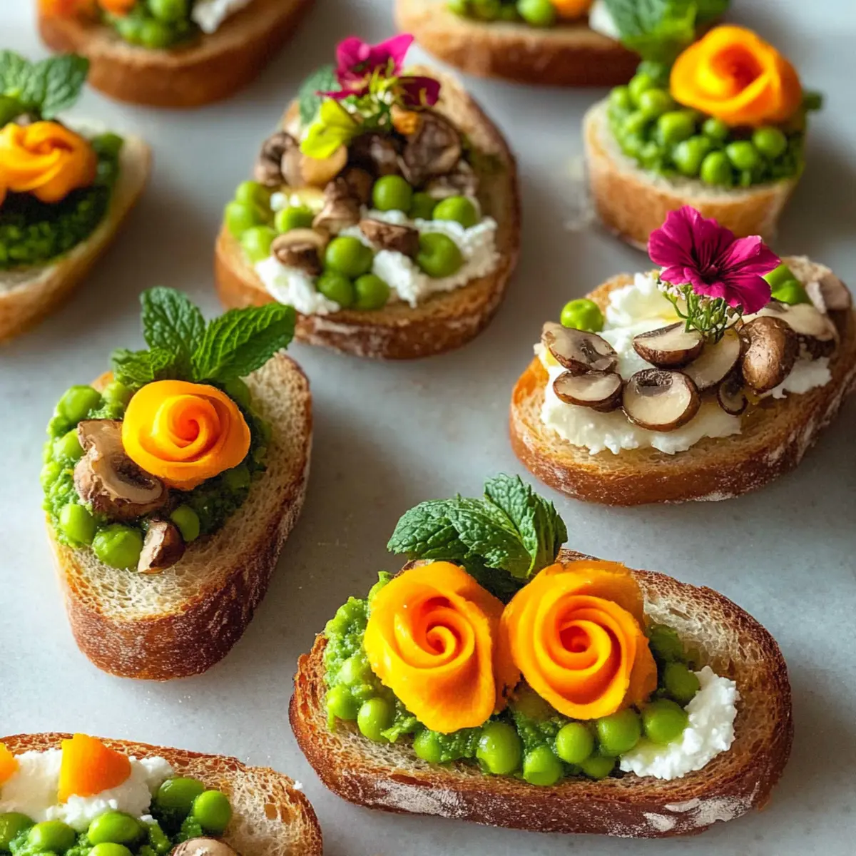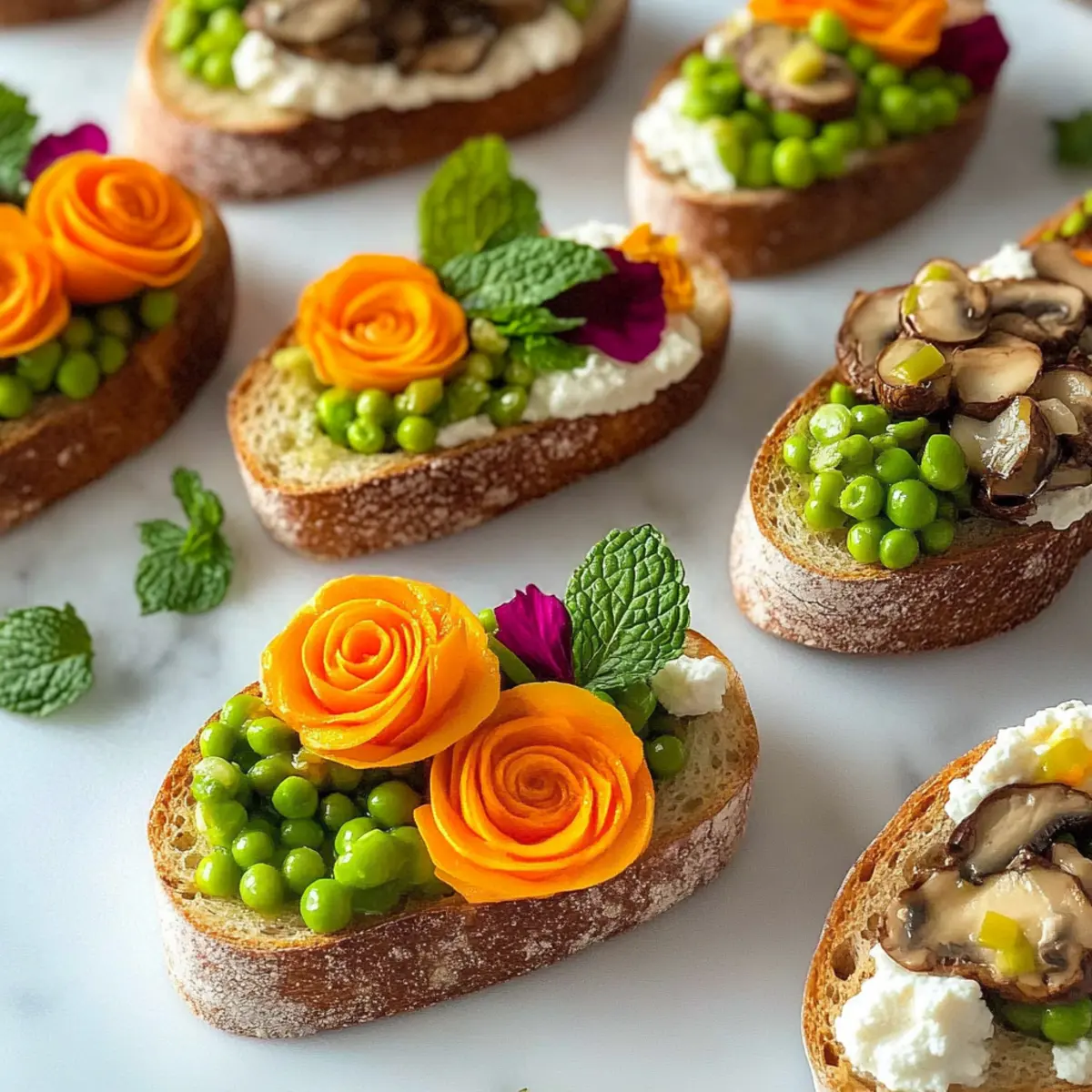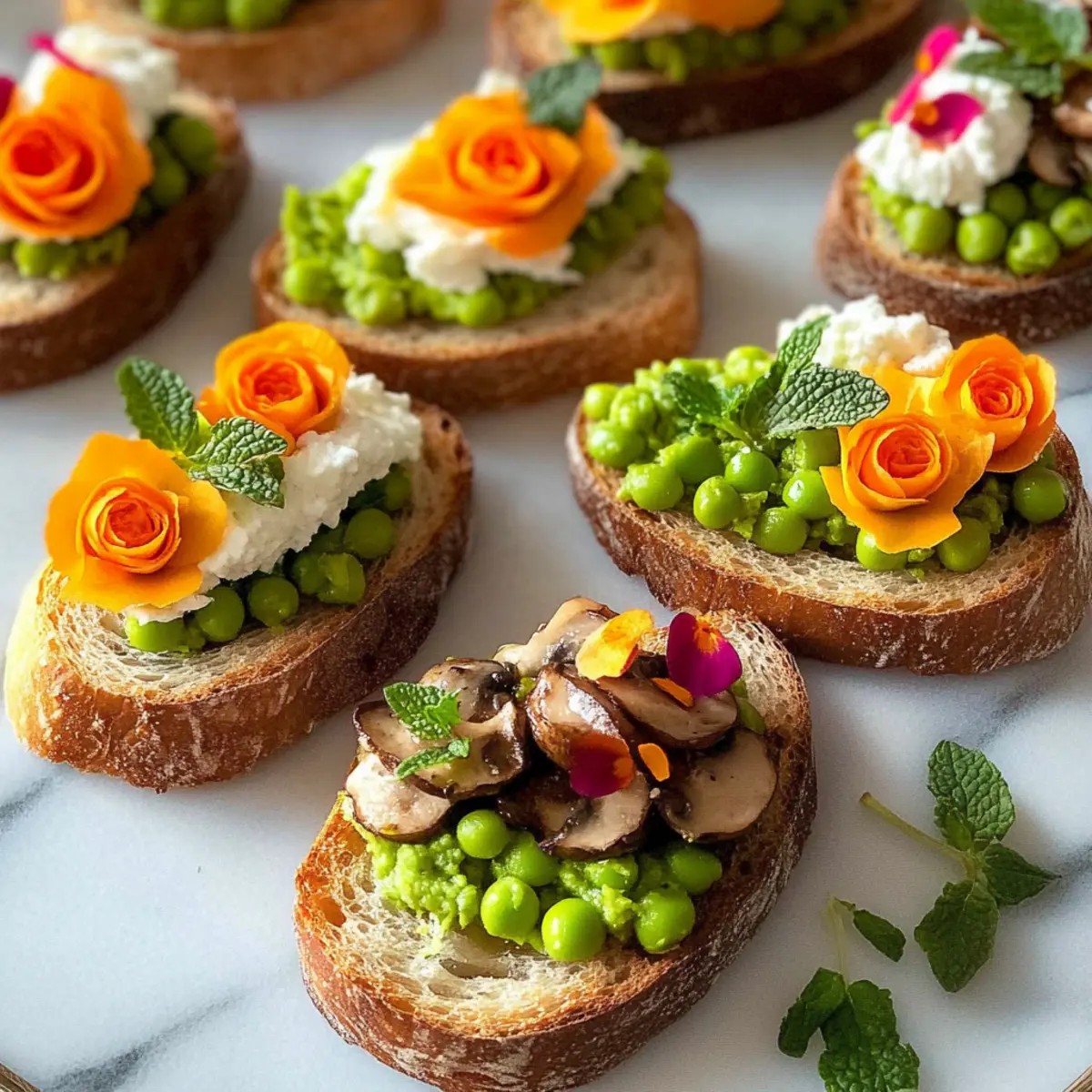 As the first blossoms of spring start to unfurl, I can’t help but feel inspired in the kitchen. This season, I’ve been celebrating with colorful Easter crostini that showcase the vibrant flavors and refreshing ingredients of the warmer months. From the zesty spring pea with mint and creamy goat cheese to the rich and satisfying mushroom pâté topped with whimsical carrot roses, there’s a little something for everyone in these three variations. These Easter crostini not only look stunning on any table but are also incredibly quick to assemble, perfect for spontaneous gatherings with family and friends. Plus, with vegetarian and vegan options available, everyone can join in on the fun. So, ready to dive into this delicious adventure that captures the spirit of spring? Let’s get cooking!