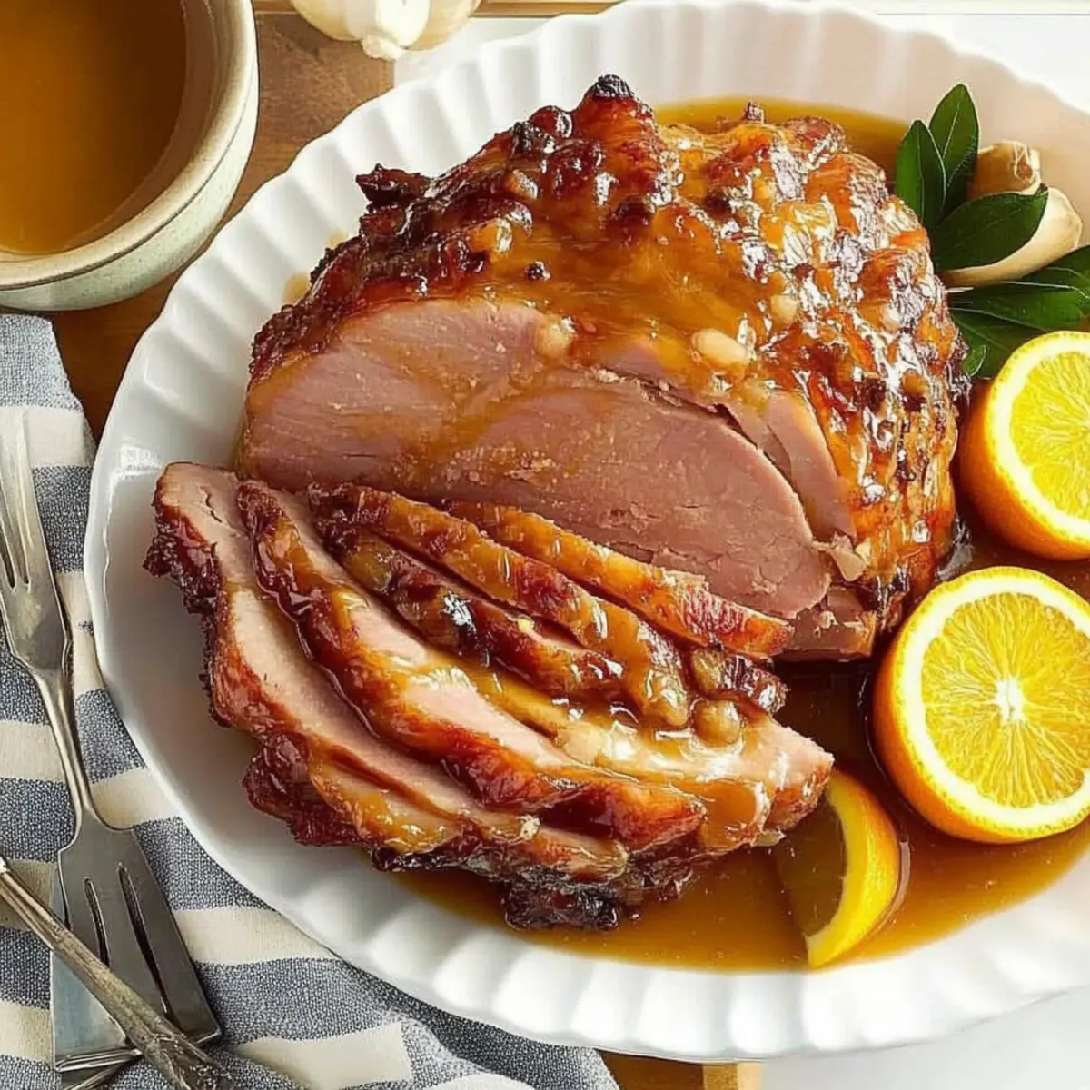 Jump to Recipe Print RecipeAs the aroma of caramelized sweetness fills the air, your kitchen transforms into the heart of holiday cheer. This Glazed Easter Ham, with its perfect marriage of brown sugar, tangy orange marmalade, and zesty Dijon mustard, is more than just a meal; it’s a centerpiece that brings loved ones together. Crafted from a fully cooked bone-in ham, this recipe is a breeze for even the newest home chefs while still impressing the culinary veterans at your gathering. It’s gluten-free and comes with the irresistible perk of being freezer-friendly, ensuring you can savor this delightful dish long after the celebrations end. Who wouldn’t want their holiday feast to be memorable? Let’s dive into the details and bring a dash of joy to your Easter table! What makes this ham recipe unforgettable? Simplicity: Preparing this Glazed Easter Ham is a walk in the park! Even if you’re a novice cook, you’ll impress everyone with minimal effort. Irresistible Glaze: The combination of brown sugar and orange marmalade creates a caramelized sweetness that perfectly balances the savory ham. Perfect Centerpiece: This dish is more than just a meal; it’s a show-stopper! Your family and friends will gravitate towards this vibrant centerpiece on the table. Versatile: Enjoy it during the holidays or any family gathering! Its delicious flavors also make it perfect for leftovers; try it in a sandwich or paired with baked mac and cheese, for example. Time-saving: With a fully cooked ham, you save time while still delivering tender, juicy goodness. Prepare ahead, and simply warm it up, allowing for a stress-free celebration! Easter Ham Ingredients • Celebrate the holiday with these essential components! For the Glaze Brown Sugar – A classic sweetener that caramelizes beautifully, enhancing the flavor of the ham. Orange Marmalade – Infuses the dish with citrusy brightness and moisture for that perfect glaze. Dijon Mustard – Adds a delightful tang, balancing the sweetness of the glaze and enhancing the overall flavor. For the Ham Fully Cooked Bone-in Ham (6 to 8 pounds) – The star of the show, providing a tender, juicy base for the glaze; remember that fresh or uncured hams aren’t suitable for this easy recipe. Whole Cloves – Optional yet aromatic, these cloves add depth of flavor and a hint of spice to the ham. Embrace the joy of creating this Easter Ham and share the love it brings to your holiday table! Step‑by‑Step Instructions for Glazed Easter Ham Step 1: Preheat the Oven Begin by preheating your oven to 325°F (165°C). This temperature is essential for ensuring your Glazed Easter Ham warms evenly and achieves a wonderfully caramelized exterior. Prepare a shallow roasting pan while you wait for the oven to reach the desired heat, ensuring everything is ready for the ham. Step 2: Prepare the Glaze In a mixing bowl, combine brown sugar, orange marmalade, and Dijon mustard. Stir until the ingredients form a smooth, cohesive glaze, brimming with flavors that will elevate your Easter Ham. Once well mixed, set the glaze aside, allowing the flavors to meld together while you prepare the ham for baking. Step 3: Score the Ham Carefully score the surface of your bone-in ham using a sharp knife, creating a diamond pattern. This not only enhances the presentation but also allows the glaze to seep into the meat, giving it that unforgettable flavor. Insert whole cloves into each intersection of the diamond pattern for added aroma and taste. Step 4: Bake the Ham Place the ham, cut side down, in your shallow roasting pan. Bake uncovered in the preheated oven for about 2 hours, or until the internal temperature reaches 130°F (54°C). You’ll know it’s almost ready when the surface begins to brown slightly, enticing everyone with its savory aroma. Step 5: Apply the Glaze Once the ham reaches 130°F, take it out of the oven and brush a generous layer of your prepared glaze over the surface. This step is crucial for that mouthwatering caramelization. Return the ham to the oven and continue baking for an additional 10–15 minutes, basting occasionally, until the internal temperature reaches 140°F (60°C). Step 6: Rest Before Carving After the ham has reached its final temperature, remove it from the oven and let it rest for 10-20 minutes. This resting period is vital, allowing the juices to redistribute within the meat, which keeps your Glazed Easter Ham juicy and tender when you carve it. Expert Tips for the Best Easter Ham Choose Quality Ham: Select a fully cooked bone-in ham for optimal flavor and tenderness; avoid uncooked or fresh hams, which need longer preparations. Perfect Glazing: Apply the glaze during the last stages of baking for a stunning caramelized finish. This ensures the glaze doesn’t burn or become overly sticky. Use a Thermometer: Invest in a probe thermometer to precisely monitor the ham’s internal temperature, aiming for 140°F to ensure perfect doneness without drying it out. Resting Time Matters: Allow your Easter Ham to rest for at least 10-20 minutes before carving to keep all those delicious juices locked in, resulting in moist, flavorful slices. Prevent Moisture Loss: If you’re using a spiral-cut ham, cover it with foil to retain moisture while baking. This keeps it juicy and prevents it from drying out. Experiment with Flavors: Don’t be afraid to adjust the glaze. Adding spices like cayenne or blending in crushed pineapple can elevate your Easter Ham to new heights! What to Serve with Glazed Easter Ham? As you anticipate the delightful aromas filling your kitchen, think about how to build a perfect meal around this centerpiece. Creamy Garlic Mashed Potatoes: These velvety potatoes soak up the delicious glaze, offering a comforting contrast to the sweet ham. Honey Glazed Carrots: Sweet and tender, these carrots bring a vibrant color and a touch of natural sweetness that harmonizes beautifully with the ham. Crisp Green Bean Almondine: Adding a