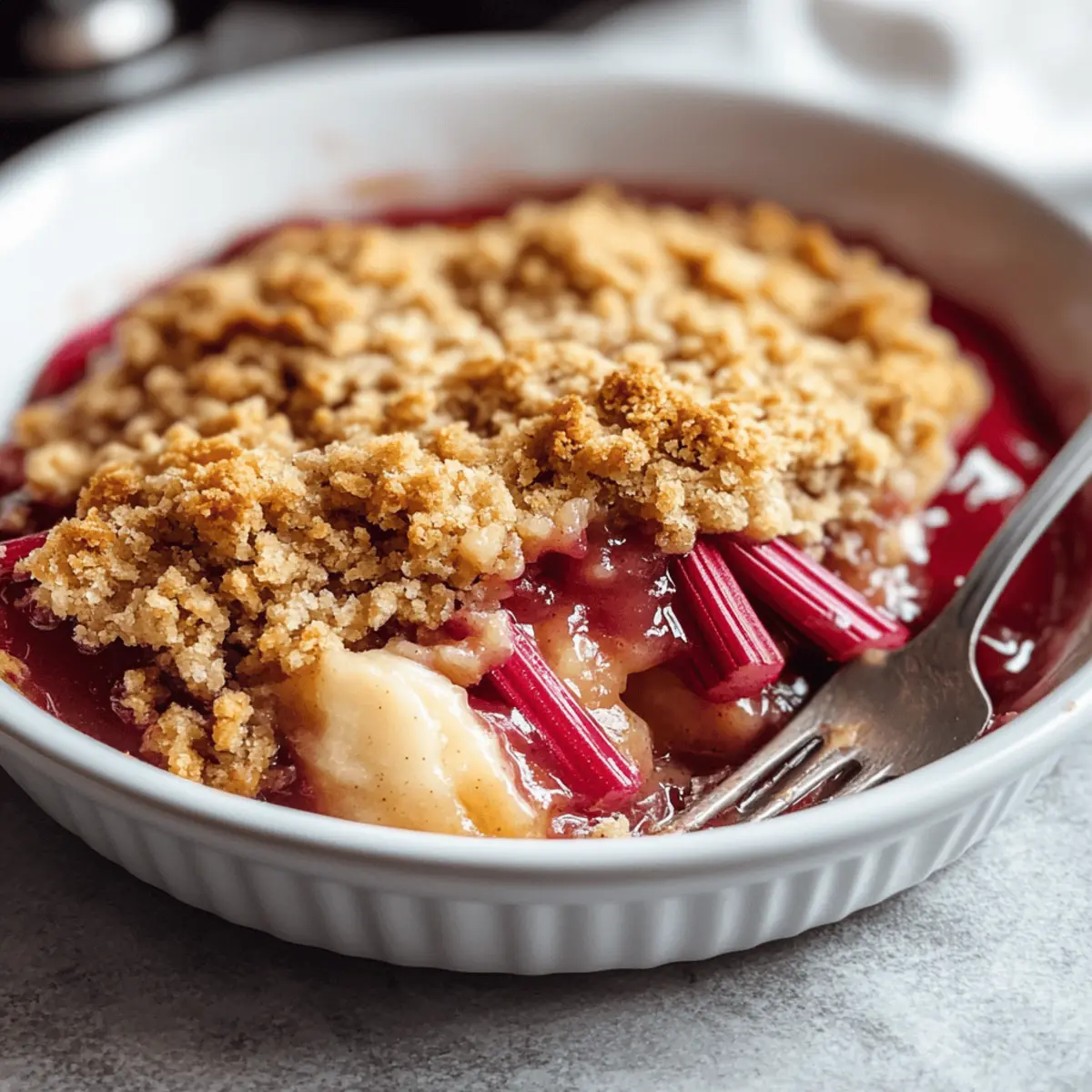 Jump to Recipe Print RecipeAs I rummaged through my pantry this morning, I stumbled upon a forgotten stash of fresh rhubarb, bright and inviting. It instantly sparked a craving for my go-to spring and summer dessert: Easy Rhubarb Crisp. This delightful dish combines the unique sweet-tart flavor of vibrant rhubarb with a buttery, crunchy topping that can charm anyone. Best of all, it’s incredibly simple to make with just a handful of pantry staples, making it perfect for both seasoned bakers and those new to the art of dessert. This crowd-pleaser is not only refreshing on a warm day, but it’s also delightful served warm with a scoop of ice cream or whipped cream. Curious to discover how to whip up this comforting treat? Let’s dive into the recipe! Why Is This Rhubarb Crisp a Must-Try? Simplicity at its finest: This recipe is designed for bakers of all skill levels, using only pantry staples. Bright, Refreshing Flavor: The sweet-tart notes of rhubarb shine through, making it an ideal dessert for spring and summer gatherings. Crispy, Buttery Topping: The oat and butter combination creates a delightful crunch that pairs beautifully with the tender fruit. Versatile Options: Feel free to mix in other fruits or substitute with gluten-free ingredients to tailor it to your needs. Crowd-Pleaser: Bake this for family dinners or potlucks, and watch as it quickly disappears! Don’t forget to try serving it with a scoop of vanilla ice cream for an extra layer of indulgence. If you enjoy tasty fruit desserts, you might also love our Rhubarb Puff Tart or Honeycrisp Apple Feta Salad. Easy Rhubarb Crisp Ingredients • Get ready to make this Easy Rhubarb Crisp with these simple ingredients! For the Filling Fresh Rhubarb – Provides the fruit base with a sweet-tart flavor; discard leaves as they are toxic. Sugar – Balances the tartness of the rhubarb for a sweeter profile; swap with a non-caloric sweetener for a lower-sugar alternative. All-Purpose Flour – Adds structure while keeping the filling moist; gluten-free flour works as a substitute. For the Topping Cold Butter – Creates that wonderfully crumbly texture; use margarine for a dairy-free version. Oats – Contributes to a crunchy texture in the topping; opt for gluten-free oats if necessary. Cinnamon – Infuses warmth and depth of flavor; replace with nutmeg for a lovely twist. Step‑by‑Step Instructions for Easy Rhubarb Crisp Step 1: Preheat the Oven Begin by preheating your oven to 375°F (190°C). This ensures that your Easy Rhubarb Crisp bakes evenly and achieves that perfect bubbling texture. While the oven warms up, you can prepare the filling, filling your kitchen with the anticipation of an irresistible dessert. Step 2: Prepare the Rhubarb Filling In a medium mixing bowl, combine your chopped fresh rhubarb with sugar and all-purpose flour. Toss everything together until the rhubarb is evenly coated, allowing the flavors to meld beautifully. Once mixed, transfer the vibrant mixture into a greased 8×8-inch baking dish, spreading it out evenly to create an inviting layer of tangy goodness. Step 3: Make the Topping In a separate bowl, mix rolled oats, flour, sugar, and cinnamon, creating a delightful blend of textures and flavors for the topping. Cut cold butter into the mixture using a pastry cutter or your fingers until it resembles coarse crumbs. This step is crucial for achieving the crispy crust on your Easy Rhubarb Crisp; sprinkle the crumbly topping over the rhubarb layer, ensuring every piece of fruit is well covered. Step 4: Bake the Crisp Place the baking dish in your preheated oven and bake uncovered for 35–40 minutes. As it bakes, keep an eye out for the edges bubbling and the topping turning a glorious golden brown. If you notice it’s browning too quickly, you can loosely cover it with foil for the last 10 minutes to maintain that beautiful crisp while avoiding over-baking. Step 5: Cool and Serve Once done, remove your Easy Rhubarb Crisp from the oven and let it cool for 15–20 minutes, allowing the juices to settle and the topping to firm up slightly. This resting period enhances the textures, making it the perfect time to prepare your favorite ice cream or whipped cream to serve alongside this delightful dessert! Expert Tips for Easy Rhubarb Crisp Fresh Selection: Choose firm, vibrant rhubarb stalks for the best flavor; avoid wilted or soft stalks as they may taste bland. Sweetness Balance: Adjust sugar levels based on the tartness of your rhubarb; taste before baking for the perfect sweet-tart mix in your Easy Rhubarb Crisp. Even Topping: Ensure the topping covers the rhubarb evenly; this prevents soggy spots and maintains that delightful crunchy texture. Cooling Time: Don’t skip the cooling period; it helps the filling set and enhances the overall texture and taste of your crisp. Leftover Storage: Keep leftovers in an airtight container in the fridge; reheat gently with foil to maintain that crispy topping. What to Serve with Easy Rhubarb Crisp Nothing pairs better with warmth and sweetness than a delightful medley of flavors and textures that enhance your dessert experience. Vanilla Ice Cream: Creamy vanilla complements the tartness of rhubarb, providing a cool contrast to the warm crisp. Whipped Cream: A fluffy dollop adds lightness, enhancing the dessert’s textures, while its sweetness melds beautifully with the tangy filling. Fresh Berries: Strawberries or blueberries add a burst of color and freshness, brightening each bite and introducing additional layers of flavor. Coconut Whipped Cream: For a dairy-free alternative, coconut whipped cream offers a tropical flair that harmonizes with the tartness of the rhubarb. Almond Milk: A glass of chilled almond milk is a refreshing, nutty beverage that resonates well with the crispy topping. Gingery Ginger Ale: The warmth of ginger from a fizzy drink can enliven the dessert, creating a lovely contrast to its rich flavors. Powdered Sugar Dusting: A sprinkl