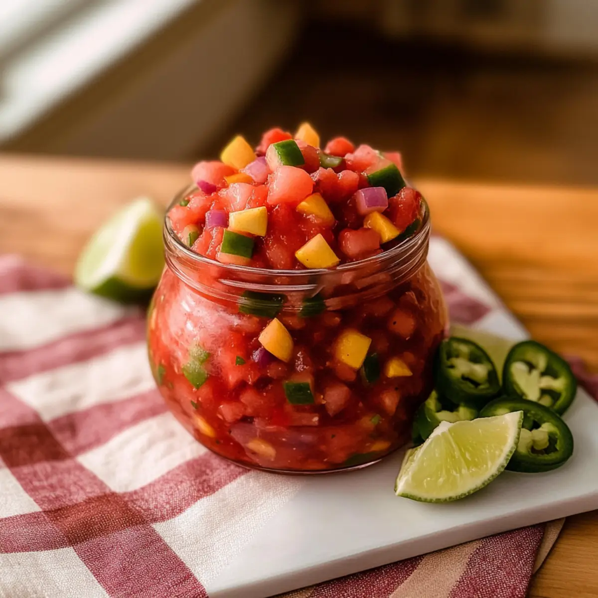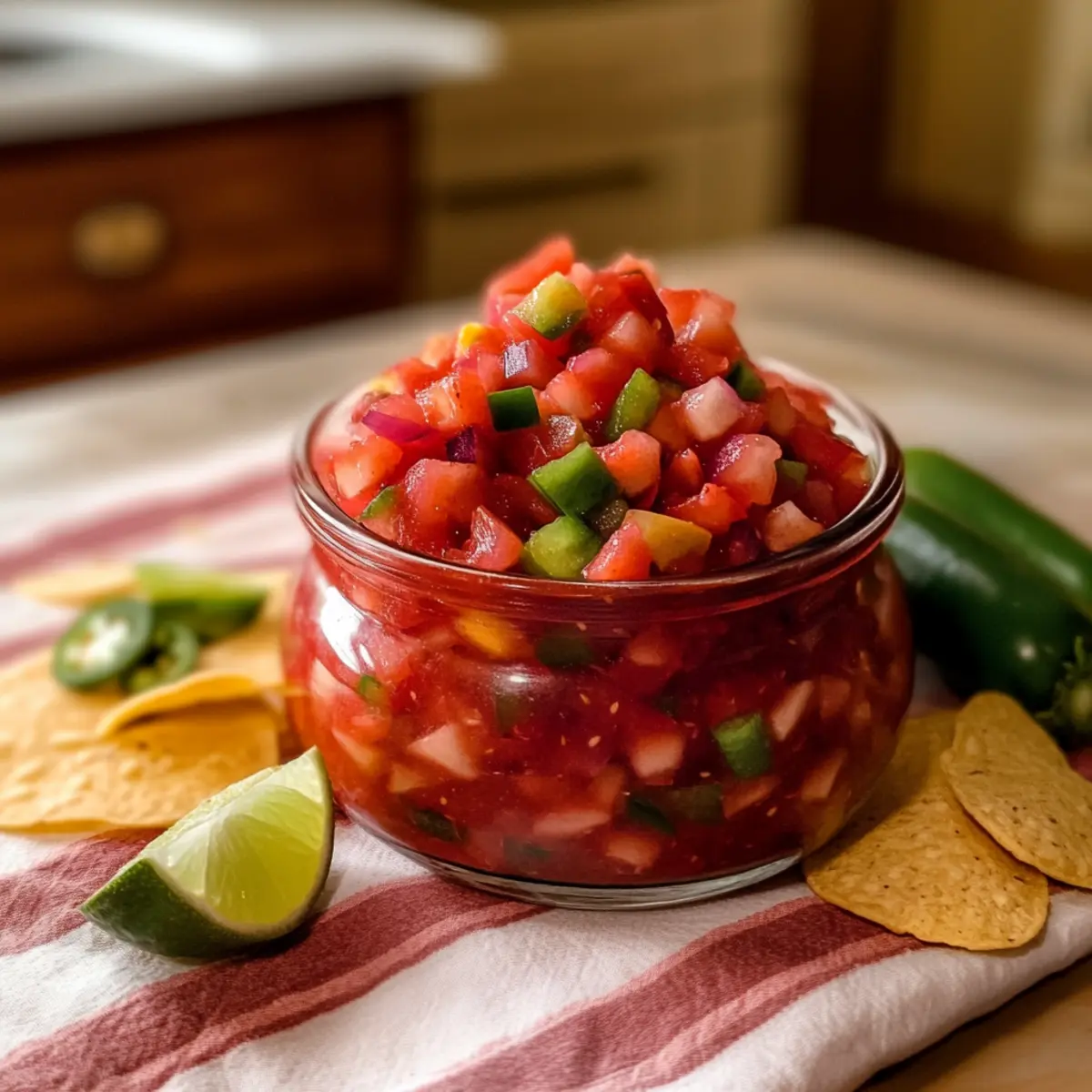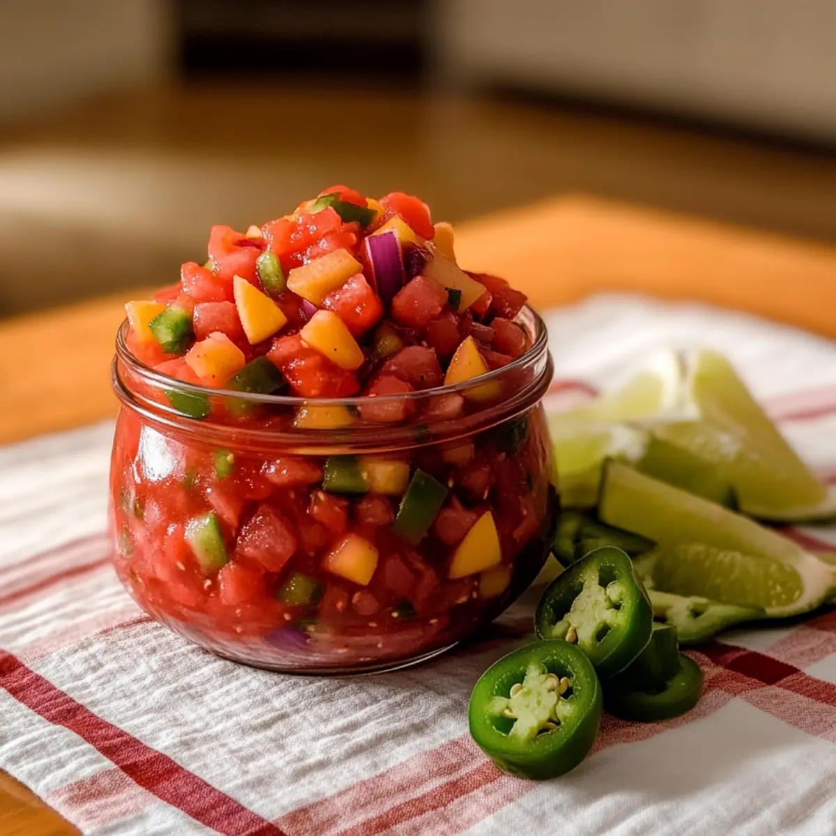 Jump to Recipe Print RecipeAs I tossed together the ingredients for this Easy Rhubarb Salsa, I was transported to sun-soaked summer days and backyard barbecues. The bright, tangy flavor of fresh rhubarb mingling with sweet fruits creates a refreshing dip that simply screams “party!” This dish is not just a delight for the taste buds; it’s a no-cook recipe that comes together in minutes, making it perfect for those busy afternoons when you crave something special without the fuss. Loaded with crunchy texture and zesty notes, this salsa is also a healthy, vegetarian option to elevate any meal. Whether you serve it alongside crispy tortilla chips or as a vibrant topping for grilled chicken, it’s sure to be a hit at your next gathering. Are you ready to savor this unique twist on salsa? Let’s dive into the delicious details! Why is Rhubarb Salsa a Must-Try? Uniqueness: This Easy Rhubarb Salsa adds a delightful twist to your typical salsa, combining tart rhubarb with fruity sweetness for a refreshing experience. No-Cook: Perfect for busy weeks, you can whip this up in no time—just chop, mix, and chill! Flavor Explosion: The blend of tart, sweet, spicy, and zesty notes creates a flavor profile that will tantalize your taste buds. Versatility: Enjoy it with tortilla chips, on tacos, or as a unique topping for grilled meats. It’s a versatile complement to any dish! Crowd-Pleaser: Impress your friends and family with this stunning and tasty salsa at your next gathering! If you love fresh flavors, check out this delicious Chicken Pasta Salad alongside your rhubarb creation. Easy Rhubarb Salsa Ingredients For the Salsa • Rhubarb – Provides tartness and a crisp texture; ensure only the stalks are used as the leaves are toxic. • Fruit (e.g., strawberries or mango) – Adds a sweet note to balance the rhubarb’s tangy flavor; feel free to substitute based on what’s in season. • Red onion – Contributes a sharp and savory depth; can swap for green onions if you prefer a milder taste. • Jalapeño – Provides that delightful heat; adjust the amount based on your spice tolerance, removing seeds for less kick. • Lime juice – Essential for brightness and acidity, balancing the flavors perfectly; lemon juice can be a good alternative. • Sweetener (e.g., honey or agave) – Enhances the overall sweetness, counteracting the tang of the rhubarb; adjust to suit your taste. • Salt – Elevates all the flavors of the salsa; a pinch more can enhance the taste if needed. Optional Add-ins • Cilantro or mint – Fresh herbs can enhance the salsa’s flavor profile; add just before serving for that burst of freshness. • Minced garlic – Introduces extra depth and aroma for those who love a garlicky twist; use sparingly to avoid overpowering the other flavors. This Easy Rhubarb Salsa recipe is not only fresh and tasty but also super versatile! Step‑by‑Step Instructions for Easy Rhubarb Salsa Recipe Step 1: Prepare the Rhubarb and Fruit Start by washing and trimming the rhubarb stalks, then chop them into small, uniform pieces, about ½ inch thick, for even mixing. If you’re using strawberries or mango for sweetness, dice those into similarly sized chunks. Gather a cutting board and a sharp knife to ensure smooth cutting, and set aside your chopped ingredients in a large mixing bowl. Step 2: Chop the Vegetables Next, finely chop the red onion and jalapeño. If you’re looking for a milder flavor, consider removing the seeds from the jalapeño before dicing. Aim for tiny pieces, as this will distribute their flavors throughout the Easy Rhubarb Salsa. Make sure your chopping board stays clean and organized to avoid any cross-contamination. Step 3: Combine the Ingredients In the large mixing bowl where you’ve placed your rhubarb and fruit, add the chopped onion and jalapeño. Squeeze in fresh lime juice and drizzle your chosen sweetener, like honey or agave syrup, over the mixture. Sprinkle a pinch of salt to elevate the flavors. Use a spatula to gently fold all the ingredients together, ensuring an even blend of colors and textures. Step 4: Let the Flavors Meld After mixing your Easy Rhubarb Salsa, let it sit at room temperature for about 10 minutes. This resting period allows the flavors to meld beautifully, enhancing the overall taste profile. You’ll notice the vibrant colors start to come together, creating a tempting presentation that’s perfect for serving. Step 5: Chill Before Serving For the best flavor experience, cover the bowl with plastic wrap and place it in the refrigerator for at least 30 minutes. Chilling helps the flavors develop and intensify, giving you a fresher taste when you serve it. Enjoy the anticipation as it cools down, knowing you’re about to enjoy a delightful summer salsa. Step 6: Adjust and Serve Once chilled, taste your Easy Rhubarb Salsa to check for balance. If it needs more sweetness, add a bit more sweetener, or if you desire a saltier kick, sprinkle in an additional pinch. Serve in a colorful bowl with tortilla chips for dipping, or use it as a zesty topping on tacos or grilled meats for a delightful twist! Expert Tips for Easy Rhubarb Salsa Proper Rhubarb Use: Always use only the stalks for this Easy Rhubarb Salsa, as the leaves are toxic and should be discarded. Flavor Balancing: Adjust sweetness and acidity based on the tartness of your rhubarb; taste as you go for the best result. Spice Control: Remove jalapeño seeds for a milder flavor; add more if you prefer a spicier salsa to suit your taste. Flavor Resting: Allow the salsa to sit for at least 10 minutes before serving to let the flavors meld beautifully. Chill for Freshness: Refrigerate for 30 minutes to enhance the overall flavor; this makes a world of difference in freshness. Storage Tips: Keep leftovers in a sealed container in the fridge for up to 3 days; flavors will intensify over time. Make Ahead Options These Easy Rhubarb Salsa preparations are perfect for meal prep