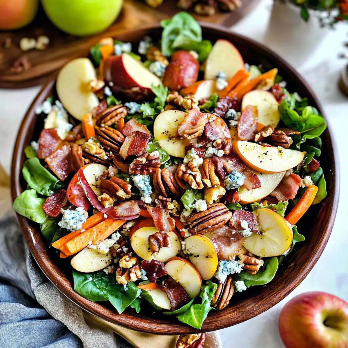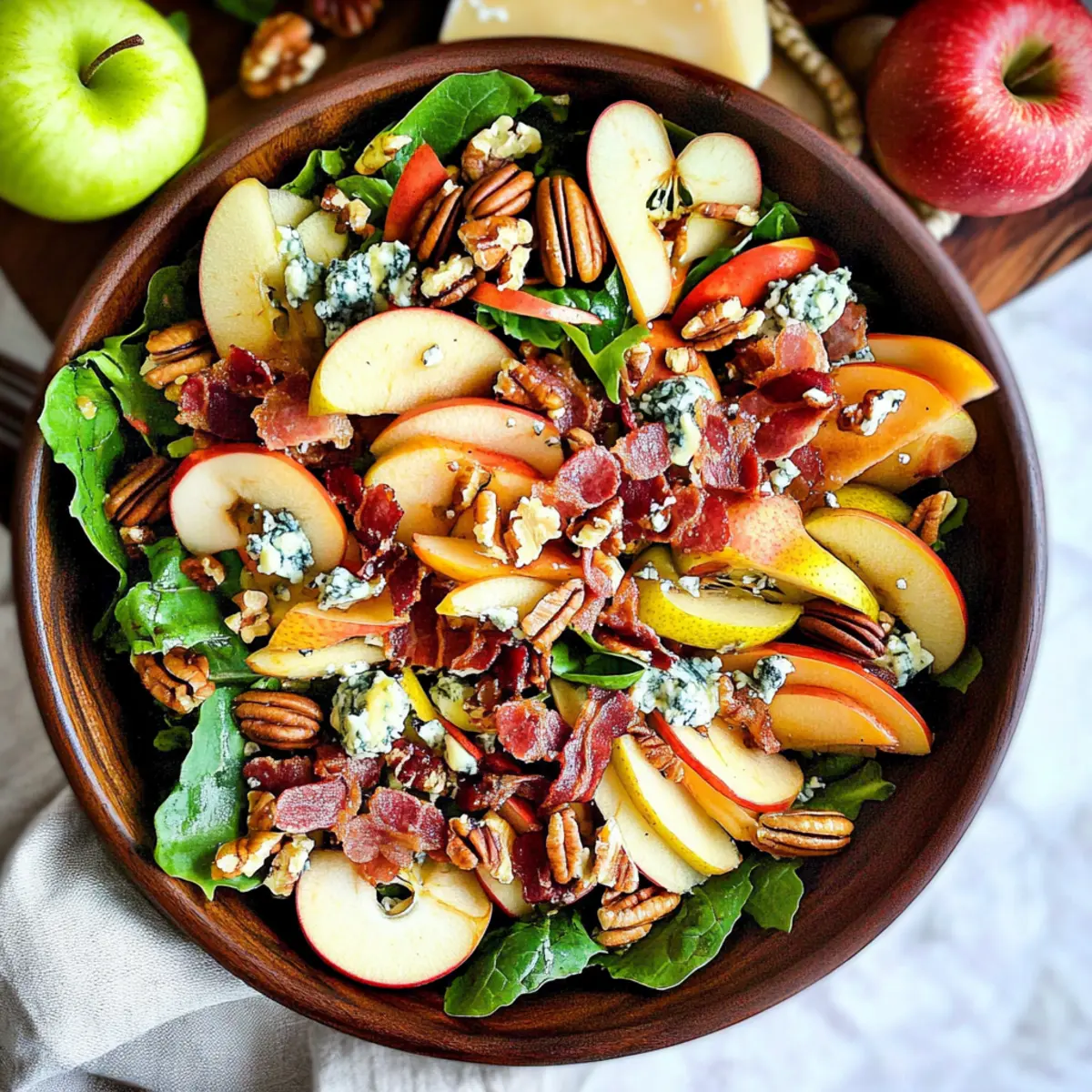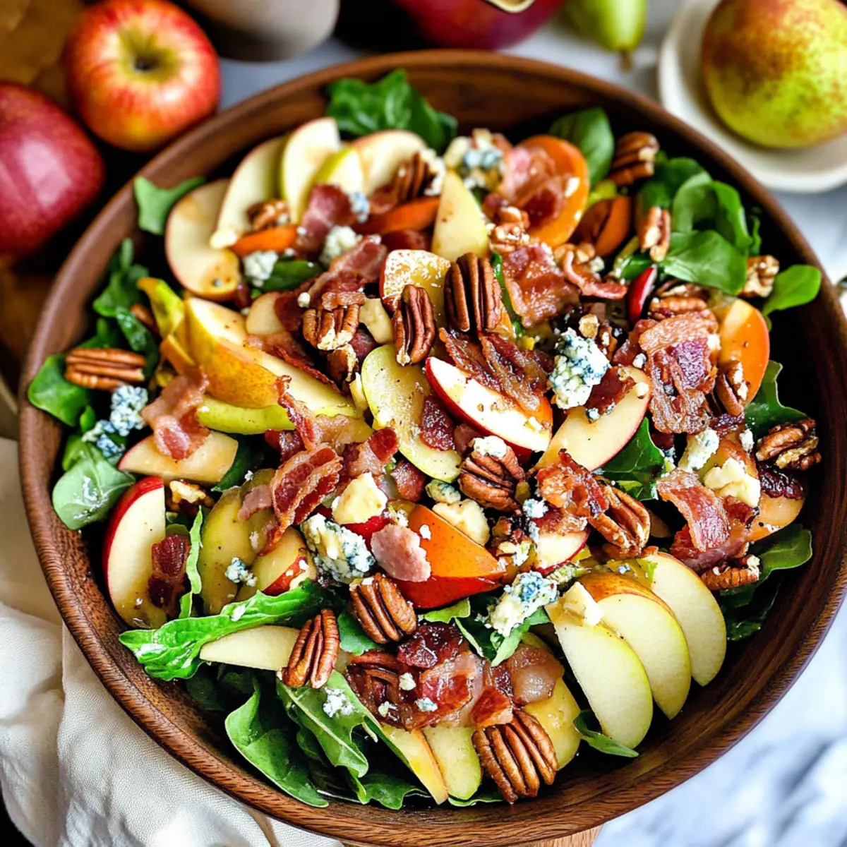 Jump to Recipe Print RecipeAs the golden leaves start to dance from the trees, I can’t help but sigh with joy at the thought of cozy evenings and warm meals. This Fall Harvest Salad with Warm Maple Bacon Vinaigrette celebrates the season with a delightful medley of crisp apples, juicy pears, and crunchy pecans, all tossed in a bed of vibrant greens. What I adore about this salad is its versatility; it can effortlessly be a stunning side dish at your holiday gatherings or a hearty, standalone meal when topped with grilled chicken. Plus, it’s gluten-free if you skip the croutons! Ready to infuse your plate with the flavor of fall? Let’s dive into this recipe and make mealtime memorable! Why Is Fall Harvest Salad Irresistible? Vibrant, Fresh Ingredients: This salad showcases the best of fall produce, featuring stunning colors and flavors that tantalize the taste buds. Warm, Savory Dressing: The warm maple bacon vinaigrette adds a delightful richness that brings everything together beautifully. Versatility for Any Occasion: Whether as a festive side or a fulfilling main dish, it fits seamlessly into any meal. Crowd-Pleasing Flavor: With a balance of sweet, savory, and creamy elements, it’s bound to impress family and friends alike, making it a must-try for gatherings. Gluten-Free Option: Easily adapt it for dietary needs by omitting croutons and sticking with wholesome ingredients; it’s a flavorful choice everyone can enjoy! Time-Saving Prep: Quick to toss together, you can whip this up any time you’re craving something fresh and satisfying, making it perfect for busy weeknights or last-minute entertaining. Whether you’re planning a holiday feast or just want something delicious, this salad is sure to hit the spot. If you’re also in the mood for something else seasonal, don’t miss our delicious Broccoli Crunch Salad for more vibrant flavors! Fall Harvest Salad Ingredients • Dive into the deliciousness with these fresh, seasonal ingredients that make this Fall Harvest Salad unforgettable! For the Salad Mixed Salad Greens – The crisp, fresh base to support all the medley of flavors. Honeycrisp Apple – Adds a perfect crunch and sweetness that sings of autumn. Ripe Pear – Juicy sweetness that beautifully balances the flavors, elevating each bite. Sliced Carrots – Their earthy flavor and vibrant color enhance the overall appeal. Toasted Pecans – Adds a delightful nutty richness and an extra layer of crunch. Thick Applewood Bacon – Provides the savory, smoky touch that ties the flavors together. Blue Cheese – Creamy and bold, it brings a luxurious taste that complements the salad. For the Vinaigrette Pure Maple Syrup – Naturally sweetens the dressing for a lovely, warm flavor. Dijon Mustard – Emulsifies the vinaigrette with a tangy kick that balances sweetness. Red Wine Vinegar – Its acidity cuts through the richness, enhancing the overall flavor. Kosher Salt and Black Pepper – Essential seasonings to elevate and enhance each ingredient. Small Shallot – Offers a subtle sharpness that adds depth to the dressing. With this colorful combination of ingredients, your Fall Harvest Salad is not just a dish; it’s a celebration of the season on a plate! Step‑by‑Step Instructions for Fall Harvest Salad Step 1: Cook the Bacon Begin by heating a skillet over medium heat. Add 4 slices of thick-cut applewood bacon and cook for about 8-10 minutes, flipping occasionally until they are crispy and golden brown. Once done, transfer the bacon to a paper towel-lined plate to drain excess grease, allowing it to cool while you prepare the rest of the Fall Harvest Salad. Step 2: Prepare the Vinaigrette In a mixing jar or bowl, combine 1/3 cup of pure maple syrup, 3 tablespoons of Dijon mustard, 2 tablespoons of red wine vinegar, 1/4 teaspoon of kosher salt, and 1/8 teaspoon of black pepper. Whisk together until smooth and well-blended, setting it aside for the moment. This will create a luscious warm maple bacon vinaigrette that complements the salad beautifully. Step 3: Assemble the Salad In a large mixing bowl, combine 10 ounces of mixed salad greens with sliced honeycrisp apple, a ripe pear, and sliced carrots. Add the crumbled crispy bacon and toasted pecans. Crumble in about 1/3 cup of blue cheese for that creamy richness. Gently toss together until all the ingredients are evenly mixed, showcasing the vibrant colors of your Fall Harvest Salad. Step 4: Sauté the Shallots Using the skillet with the remaining bacon fat, heat it over medium-low heat. Add diced shallots and sauté for around 2-3 minutes until they become fragrant and softened, stirring frequently to prevent burning. This step will enhance the flavor of your warm maple bacon vinaigrette, making it even more delicious as you prepare to bring everything together. Step 5: Simmer the Vinaigrette Pour the reserved maple dressing into the skillet with the sautéed shallots. Stir well and let it simmer on low heat for about 2-3 minutes until it thickens slightly. The warm vinaigrette will become fragrant and richly combined, ready to elevate your salad with its smoky sweetness. Step 6: Dress the Salad Drizzle the warm maple bacon vinaigrette over your beautifully assembled Fall Harvest Salad, ensuring an even coating of the dressing across all the ingredients. Toss gently to combine, making sure the vinaigrette envelops each component, and serve immediately. The colors and flavors will meld into a delightful autumn experience that you and your guests will relish. Expert Tips for Fall Harvest Salad Choose Quality Ingredients: Using fresh, high-quality ingredients makes a noticeable difference. Especially opt for good-quality maple syrup for the vinaigrette’s best flavor. Vegetarian Alternatives: For a delightful twist, consider using vegetarian bacon or smoked tempeh instead of bacon, providing a satisfying experience without meat. Keep It Crisp: To maintain the freshness of the salad, serve immediately after t