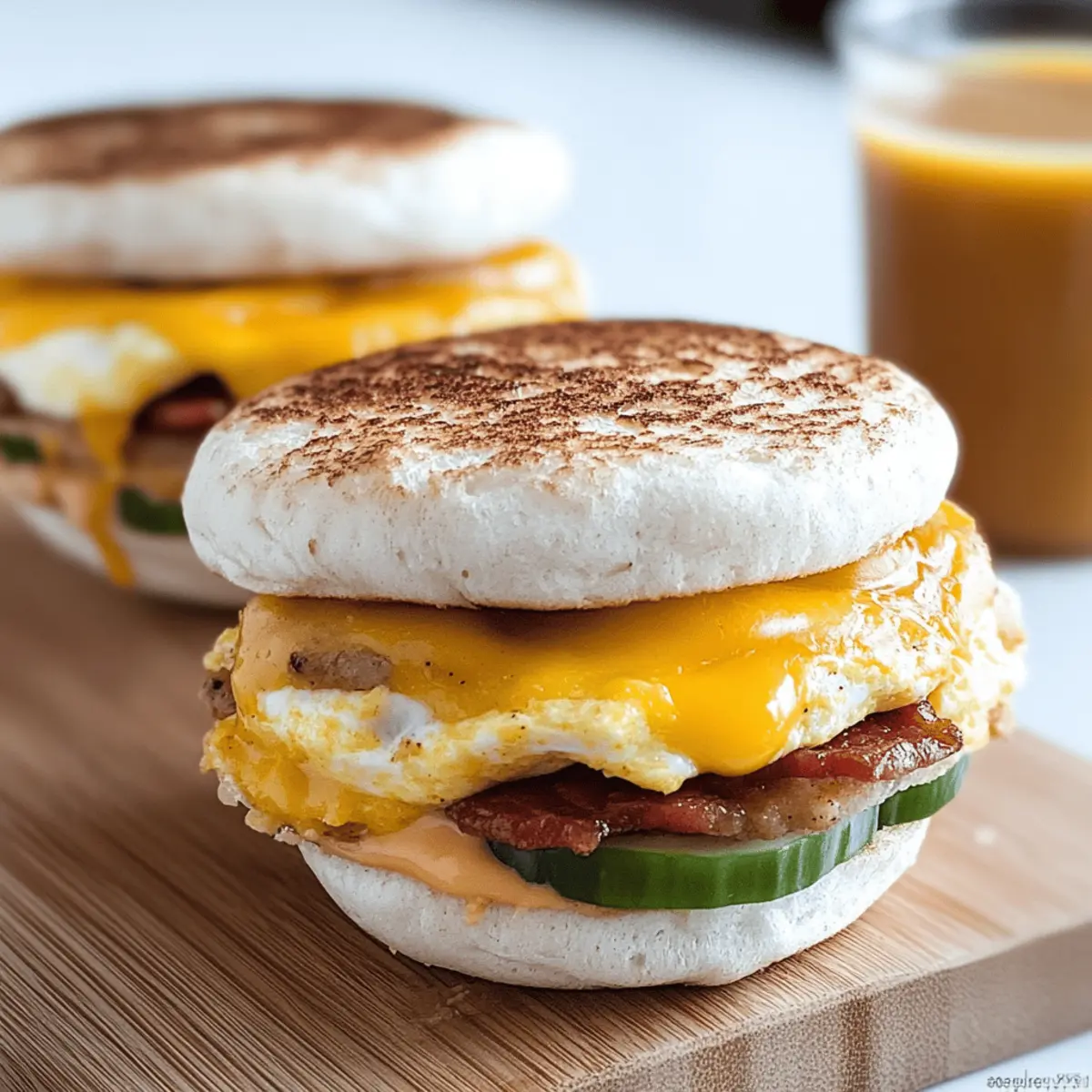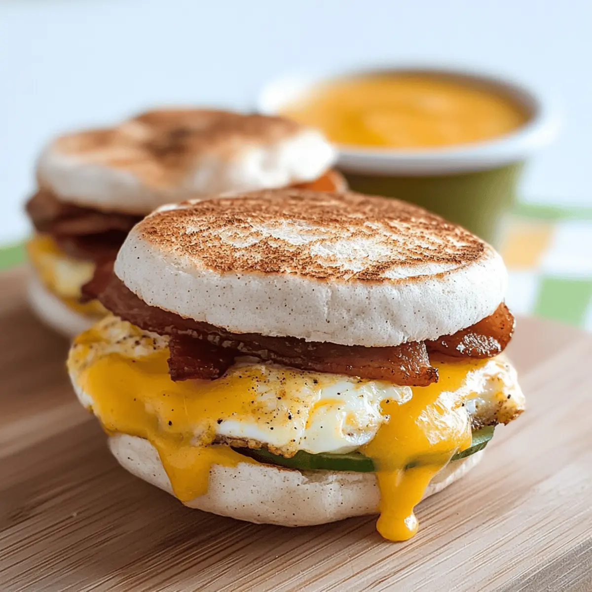 Jump to Recipe Print RecipeAs I rushed through my morning routine, I overheard a friend lamenting the same old cereal dilemma. It sparked a glorious realization: who says breakfast has to be boring? Enter Easy Freezer Breakfast Sandwiches with Bacon and Sausage. These delightful sandwiches are a fun twist on classic breakfast fare, perfect for busy mornings. With flavorsome layers of fluffy eggs, crispy bacon, savory sausage, and melty cheese tucked inside toasted English muffins, you’ll have a hearty breakfast ready in no time. The best part? You can whip up 12 of these freezer-friendly wonders in under an hour, ensuring that your family skips the drive-thru on hectic school days or road trips. Plus, they’re fully customizable to suit everyone’s tastes! Ready to transform your breakfast game? Why Choose Freezer Breakfast Sandwiches? Convenience at Its Finest: These Freezer Breakfast Sandwiches save you valuable morning time with quick reheating options. Customizable Goodness: Whether you love bacon, sausage, or prefer a veggie twist, these sandwiches cater to all palates. Make-Ahead Marvel: With 12 sandwiches prepped in under an hour, you’ll always have a satisfying breakfast ready to go. Wholesome Ingredients: Packed with protein and tasty add-ins, each bite is not only delicious but nutritious too. Family-Friendly Appeal: Even picky eaters can find their favorites, making breakfast a breeze for everyone! Consider pairing these with Skillet Breakfast Hash for a truly hearty morning spread. Freezer Breakfast Sandwiches Ingredients For the Egg Mixture • Eggs – These provide structure and protein; feel free to use whole eggs or egg whites for some variations. • Milk – Adds creaminess and tenderness; try almond or oat milk for a dairy-free alternative. • Salt and Pepper – Essential seasonings for flavor enhancement; adjust to your taste for the perfect bite. For the Meats • Bacon – Offers crispy, savory goodness; consider turkey bacon for a leaner option if desired. • Sausage Patties – Adds richness and protein; plant-based patties can be used for a vegetarian-friendly variant. For the Sandwich Base • English Muffins – The delightful base for each sandwich; swap for whole-grain or gluten-free muffins if needed. • Butter – Used to toast the muffins for a golden finish; substitute with olive oil or omit for a lighter option. Optional Add-ins • Sautéed Spinach – A nutritious option to boost flavor and health benefits. • Roasted Sweet Potato – Adds a hint of sweetness and is an excellent source of fiber. • Sliced Tomato – A fresh option that brings acidity and moisture. • Mashed Avocado – For creaminess and healthy fats, this can elevate your sandwich experience. Ready to create these Freezer Breakfast Sandwiches? Gather your ingredients, and let’s get cooking! Step‑by‑Step Instructions for Freezer Breakfast Sandwiches Step 1: Preheat and Prepare Begin by preheating your oven to 325°F (165°C). To streamline your cooking process, line a large sheet pan with parchment paper. This will not only prevent sticking but also make cleanup a breeze. While the oven warms up, gather all your ingredients to ensure you’re ready for action. Step 2: Bake the Bacon Arrange strips of bacon evenly on the prepared sheet pan. Bake in the preheated oven for about 15 minutes, or until the bacon is crispy and golden brown. Keep an eye on it as cooking times may vary based on thickness. Once done, carefully transfer the bacon to a plate lined with paper towels to drain the excess grease. Step 3: Cook the Sausage While the bacon is baking, heat a skillet over medium-high heat and add the sausage patties. Cook for 3-4 minutes on each side until they’re golden brown and cooked through. As you flip them, enjoy the aroma filling your kitchen! Once ready, remove the patties and let them rest on a plate. Step 4: Whisk the Eggs In a large mixing bowl, crack the eggs and add milk, salt, and pepper. Whisk everything together until well combined and slightly frothy. Pour the egg mixture into another parchment-lined baking sheet, spreading it evenly. Bake for 30 minutes or until the eggs are set and a light golden color appears on top. Step 5: Cool and Cut the Eggs After baking, allow the egg mixture to cool for a few minutes. Once it’s manageable, use a knife to cut it into 12 square portions. This will help you assemble your Freezer Breakfast Sandwiches more easily. Set the egg portions aside as you prepare the English muffins. Step 6: Toast the English Muffins Carefully split each English muffin in half. Lightly butter each side to enhance flavor and achieve a golden hue when toasted. Place the halves on a griddle or a pan over medium heat, toasting them until they turn golden brown and crispy, about 2-3 minutes per side. Step 7: Assemble the Sandwiches On each toasted muffin half, layer the following in order: a portion of the baked egg, followed by either the crispy bacon or sausage patty, and a slice of your favorite cheese. These layers are key to creating that savory Freezer Breakfast Sandwich you crave. Step 8: Wrap and Freeze Let the assembled sandwiches cool completely to prevent sogginess. Once cooled, wrap each sandwich individually in parchment or plastic wrap. Label each one and store them in a large freezer bag, making sure to remove as much air as possible to preserve freshness for up to 3 months. Step 9: Reheat for Breakfast When you’re ready to enjoy a Freezer Breakfast Sandwich, simply take one out of the freezer. Reheat in the microwave for about 1-2 minutes, or in an oven at 350°F (175°C) for approximately 15 minutes, until heated through. With this effortless method, a hearty breakfast is only moments away! Expert Tips for Freezer Breakfast Sandwiches Let Cool Completely: Allow the sandwiches to cool fully before wrapping to prevent condensation and sogginess during freezing. Choose Quality Ingredients: Opt for fresh eggs and high-qualit