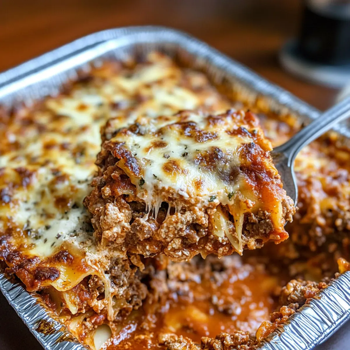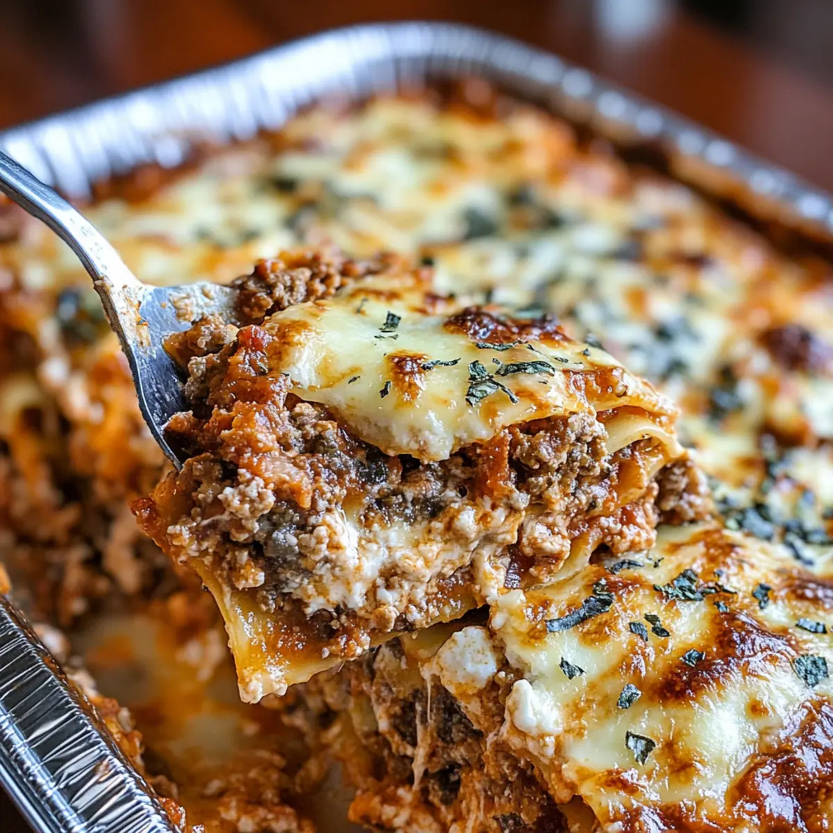 Jump to Recipe Print RecipeAs I stood in my kitchen, the comforting aroma of simmering marinara sauce wafted through the air, instantly transporting me to my grandmother’s house where lasagna nights were a cherished ritual. This Healthy Make-Ahead Freezer Lasagna recipe is a delightful nod to those cozy family gatherings, making it not only a hearty meal but also a lifesaver for busy weekdays. Perfectly layered with creamy ricotta, savory ground beef, and a medley of Italian cheeses, it’s designed to be freezer-friendly for meal prep aficionados. You’ll love how this dish allows you to savor the joy of homemade comfort food while effortlessly providing delicious, wholesome dinners for your family. Are you ready to elevate your meal prep game with this irresistible lasagna? Why is Freezer Lasagna a Game-Changer? Convenience: This Freezer Lasagna recipe makes meal prep a breeze, ensuring you have a homemade dinner ready to go whenever life gets hectic. Flavorful Layers: Each bite bursts with savory meat sauce and creamy ricotta, creating a comforting dish that rivals your favorite Italian restaurant. Nutrient-Packed: With fresh ingredients like veggies and lean protein, you’re providing your family with a wholesome meal that’s both tasty and healthy. Crowd-Pleaser: Perfect for gatherings, this lasagna not only feeds a crowd but also allows you to enjoy the company without the stress of cooking on the spot. Versatile Options: Customize your lasagna easily by substituting ingredients for different dietary needs, making it suitable for everyone at the table. Storage Savvy: Freeze individual portions, just like Pasta Salad Discover, ensuring delicious, easy meals are always within reach. Freezer Lasagna Recipe Ingredients • Get ready to gather these tasty components for your delicious Freezer Lasagna! For the Lasagna Lasagna Noodles – Use 18 uncooked lasagna noodles (regular or oven-ready); soaking them in boiling water for 4 minutes helps achieve flexibility. Ground Beef – Use 2 pounds of 85% lean beef for a balance of flavor and richness. Onions – Use 2 diced onions of any kind; they add sweetness and depth to your sauce. Garlic – Use 3 cloves minced; if you’re short on fresh garlic, garlic powder works as a quick substitute. Carrot – Use 1 grated carrot for added sweetness and nutrients; finely chopped zucchini makes a great substitute if desired. Celery – Use 1 sliced celery stalk for a crunchy texture; it’s optional but enhances flavor. Canned Mushrooms – Use 13 oz drained to contribute a savory umami element; fresh mushrooms can work beautifully too. Pasta Sauce – Use 48 oz of your favorite store-bought or homemade marinara; it serves as the flavorful sauce base. For the Cheese Filling Ricotta Cheese – Use 30 oz (two containers) for that creamy texture; cottage cheese can be a lower-fat substitute. Egg – Use 1 large egg to bind the ricotta filling; feel free to omit if you want it egg-free. Parmesan Cheese – Use 2/3 cup finely grated for a depth of flavor; fresh is best for optimal taste. Dried Parsley – Use 1/2 cup for a pop of color and subtle herbal flavor; fresh parsley can also be substituted. Shredded Mozzarella – Use 16 oz for the dish’s topping; ensure high quality and shredding it yourself avoids additives. Additional Parmesan – Use 8 oz shredded for the final topping to boost flavor. For Seasoning Salt – Use 2 tsp to enhance the flavors; this is a key ingredient. Black Pepper – Use 1 tsp for a hint of heat; adjust according to your taste preferences. Dried Oregano – Use 1 tsp to bring that Italian flavor to life; it’s a staple in many lasagna recipes. Step‑by‑Step Instructions for Freezer Lasagna Recipe Step 1: Prepare Meat Sauce In a large skillet over medium heat, brown 2 pounds of ground beef until well-cooked, approximately 7–10 minutes. Add the diced onions, grated carrot, and sliced celery, cooking until the onions become translucent, about 5 minutes. Stir in the drained canned mushrooms, pasta sauce, salt, black pepper, and oregano. Let your savory meat sauce simmer for 10 minutes, then set aside to cool slightly. Step 2: Prep Lasagna Noodles For a perfect layer in your Freezer Lasagna, soak 9 dried lasagna noodles in boiling water for about 4 minutes. This helps soften them, making them flexible for assembly. Drain the noodles carefully and hang them on a rack or a few sheets of parchment paper to prevent sticking, while you prepare the ricotta filling. Step 3: Make Ricotta Filling In a mixing bowl, combine 30 oz of ricotta cheese, 1 large egg, 2/3 cup of grated Parmesan cheese, and 1/2 cup of dried parsley. Mix everything together until smooth and creamy, ensuring a well-blended texture. This delicious ricotta filling will add richness to your layers in the Freezer Lasagna. Step 4: Assemble Lasagna In a disposable pan or a baking dish, start layering your Freezer Lasagna. Begin with a generous layer of meat sauce, followed by 3 noodles. Spread half of the ricotta filling over the noodles, then sprinkle with 4 oz of shredded mozzarella. Repeat the layers: meat sauce, noodles, ricotta filling, and mozzarella, finishing with a final layer of meat sauce and 8 oz of mozzarella on top. Step 5: Wrap and Freeze Once assembled, cover the lasagna tightly with heavy-duty foil to protect it from freezer burn. Don’t forget to label the pan with the date and name of the dish. Your Freezer Lasagna can be stored in the freezer for up to 3 months, ready to provide quick and comforting meals. Step 6: Bake When ready to enjoy, remove your lasagna from the freezer and let it thaw in the refrigerator for several hours or overnight. Preheat your oven to 350°F and bake the lasagna uncovered for about 1 hour, or until bubbly and golden on top. A beautifully cooked Freezer Lasagna will be hot throughout with melted cheese on top, ready to be served and enjoyed! How to Store and Freeze Freezer Lasagna Fridge: Store your uncooked Fre