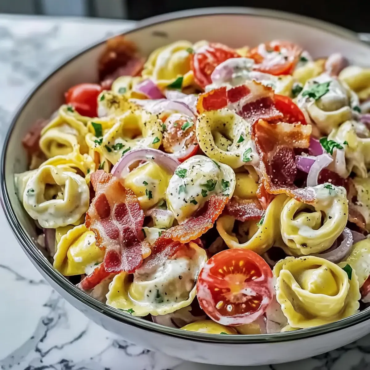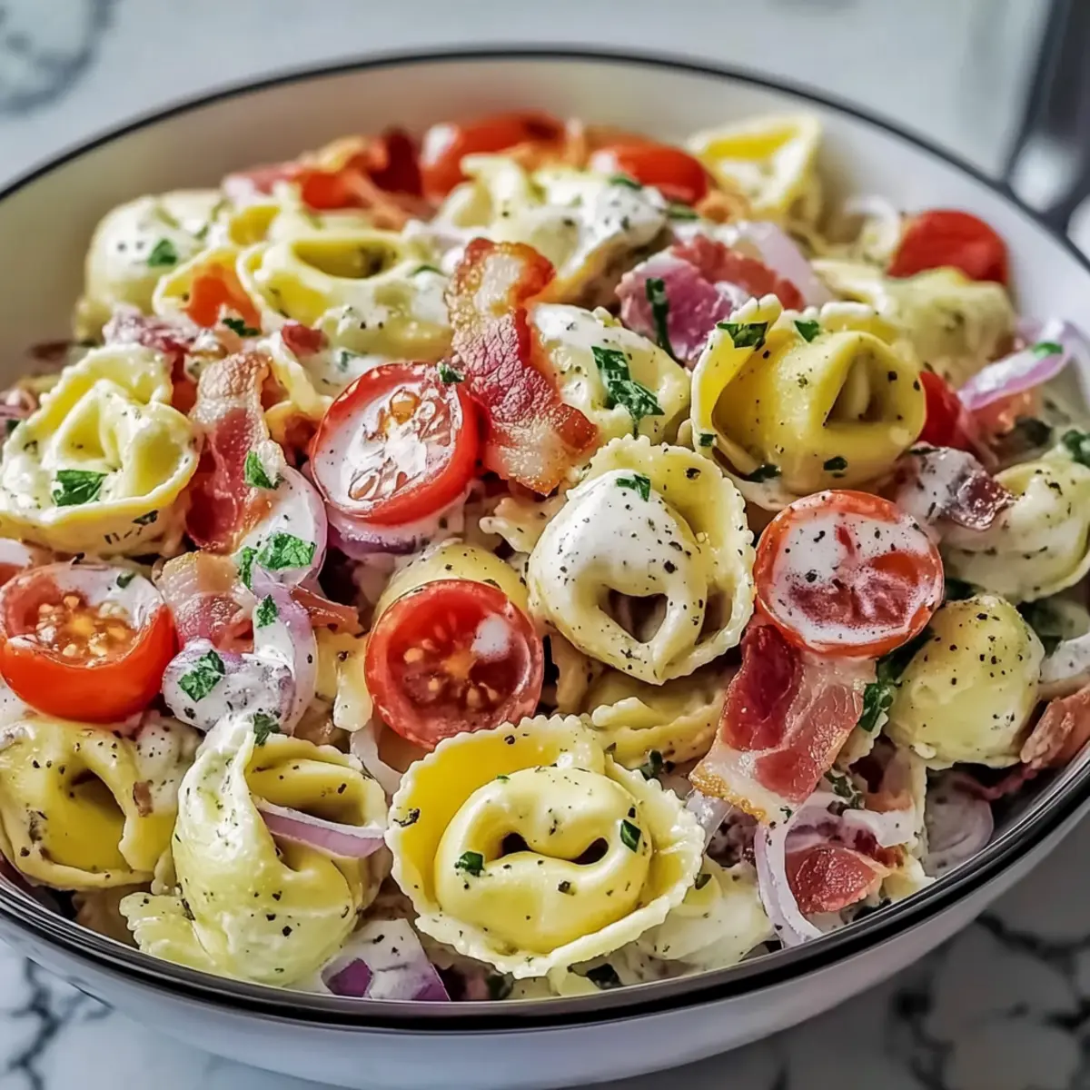 Jump to Recipe Print RecipeAs summer approaches, I find myself craving bright and zesty flavors that remind me of sun-filled picnics and cherished gatherings. This is where my Fresh Grinder Tortellini Salad comes into play—a delightful twist on your favorite Italian sub. With its comforting blend of cheesy tortellini, crispy bacon, and tangy pepperoncini, this salad isn’t just a dish; it’s a celebration of summer. Not only is it a make-ahead marvel that lets the ingredients harmonize (perfect for you busy home chefs), but it also doubles as a crowd-pleaser that’s sure to steal the show at your next potluck. Ready to impress your family and friends with a dish that’s both unbelievably easy to prepare and packed with nostalgic Italian flavors? Let’s dive into this delicious recipe together! Why is This Salad So Irresistible? Vibrant Flavors: The Fresh Grinder Tortellini Salad bursts with the lively tastes of summer, combining tangy pepperoncini and savory bacon for a delightful twist. Easy to Make: With just a few simple steps, this recipe welcomes even novice chefs into the kitchen. It’s perfect for those who crave homemade goodness without fuss. Make-Ahead Magic: Prepare it in advance—just let it chill in the fridge for at least two hours, allowing the flavors to meld beautifully, making it an ideal choice for potlucks or gatherings. Crowd-Pleasing Dish: This salad will surely be a hit at any summer event, appealing to both friends and family alike with its satisfying mix of textures and tastes. Pairs Perfectly: Serve alongside a refreshing Crunchy Broccoli Salad or warm crusty Italian bread to elevate your meal and impress guests. Fresh Grinder Tortellini Salad Ingredients For the Salad • Frozen Cheese Tortellini – Cook until al dente for the best texture; fresh tortellini could offer an even better bite. • Bacon – Cook until crispy for that savory, smoky crunch; chop into small pieces for even distribution throughout the salad. • Red Onion – Finely chop to provide a sharp flavor that complements the other ingredients nicely. • Pepperoncini Peppers – Slice for tangy heat and a satisfying crunch that enhances the overall taste. • Cherry Tomatoes – Halve for sweetness and juiciness that balances the salad perfectly. • Parmesan Cheese – Adds a creamy, salty flavor; feel free to substitute with a cheese blend for variety. For the Dressing • Mayonnaise – Forms the creamy base of the dressing; mix it with red wine vinegar for a well-rounded tang. • Red Wine Vinegar – Offers a nice acidity; consider white wine vinegar as an alternative if needed. • Oregano – Sprinkling this herb elevates the Italian flavor profile of your Fresh Grinder Tortellini Salad. • Italian Seasoning – Use to enhance the overall taste with familiar Italian spices. • Garlic Powder – Add a dash for flavor depth; you can adjust to your personal taste. • Red Pepper Flakes – Sprinkle for a kick of heat; customize the amount based on your heat preference. • Salt – Essential to enhance the salad’s flavor; don’t forget to add it in! Step‑by‑Step Instructions for Fresh Grinder Tortellini Salad Step 1: Cook the Bacon In a skillet over medium heat, cook the bacon strips until crispy, about 8-10 minutes, turning occasionally for even cooking. Once they are golden brown, transfer the bacon to a paper towel-lined plate to drain excess grease. Chop the cooled bacon into small pieces, ready to add that savory touch to your Fresh Grinder Tortellini Salad. Step 2: Prepare the Tortellini Bring a large pot of salted water to a rolling boil. Add the frozen cheese tortellini and cook according to package instructions until al dente, usually around 3-5 minutes. Drain the tortellini and rinse them with cold water to stop the cooking process. This step will ensure your Fresh Grinder Tortellini Salad maintains the perfect texture and stays cool. Step 3: Make the Dressing In a large mixing bowl, whisk together the mayonnaise and red wine vinegar until smooth. Add in the salt, oregano, Italian seasoning, garlic powder, and red pepper flakes, incorporating all the flavors thoroughly. This creamy dressing will tie all the ingredients together in your Fresh Grinder Tortellini Salad, adding richness and tanginess. Step 4: Combine the Ingredients To the bowl with the dressing, add the cooled tortellini, chopped bacon, sliced pepperoncini, finely chopped red onion, halved cherry tomatoes, and grated Parmesan cheese. Gently fold all the ingredients together using a spatula, ensuring everything is evenly coated with the delicious dressing for a burst of flavor in each bite. Step 5: Chill the Salad Cover the bowl with plastic wrap or a lid and refrigerate the Fresh Grinder Tortellini Salad for at least 2 hours. This chilling period allows the flavors to meld beautifully, creating a harmonious taste that’s perfect for potlucks or family gatherings. The anticipation will make every bite even more rewarding when served! Step 6: Serve and Enjoy Before serving, give the salad a gentle stir to rediscover that creamy dressing. Serve your Fresh Grinder Tortellini Salad in a large bowl or individual servings. This delightful dish pairs wonderfully with warm crusty bread or a crisp arugula salad, making it a perfect addition to your summer meal spread. Make Ahead Options These Fresh Grinder Tortellini Salad is a meal prep dream come true! You can cook the tortellini and bacon up to 24 hours in advance, letting you save precious time on busy days. Simply store them separately in airtight containers in the refrigerator. Additionally, you can prepare the tangy dressing a day ahead, which allows the flavors to deepen wonderfully. When you’re ready to enjoy this delicious salad, just combine all ingredients and let it chill for at least 2 hours before serving. For maintenance of freshness, keep some dressing aside to mix in before serving to prevent any dryness. This way, you’ll always have 