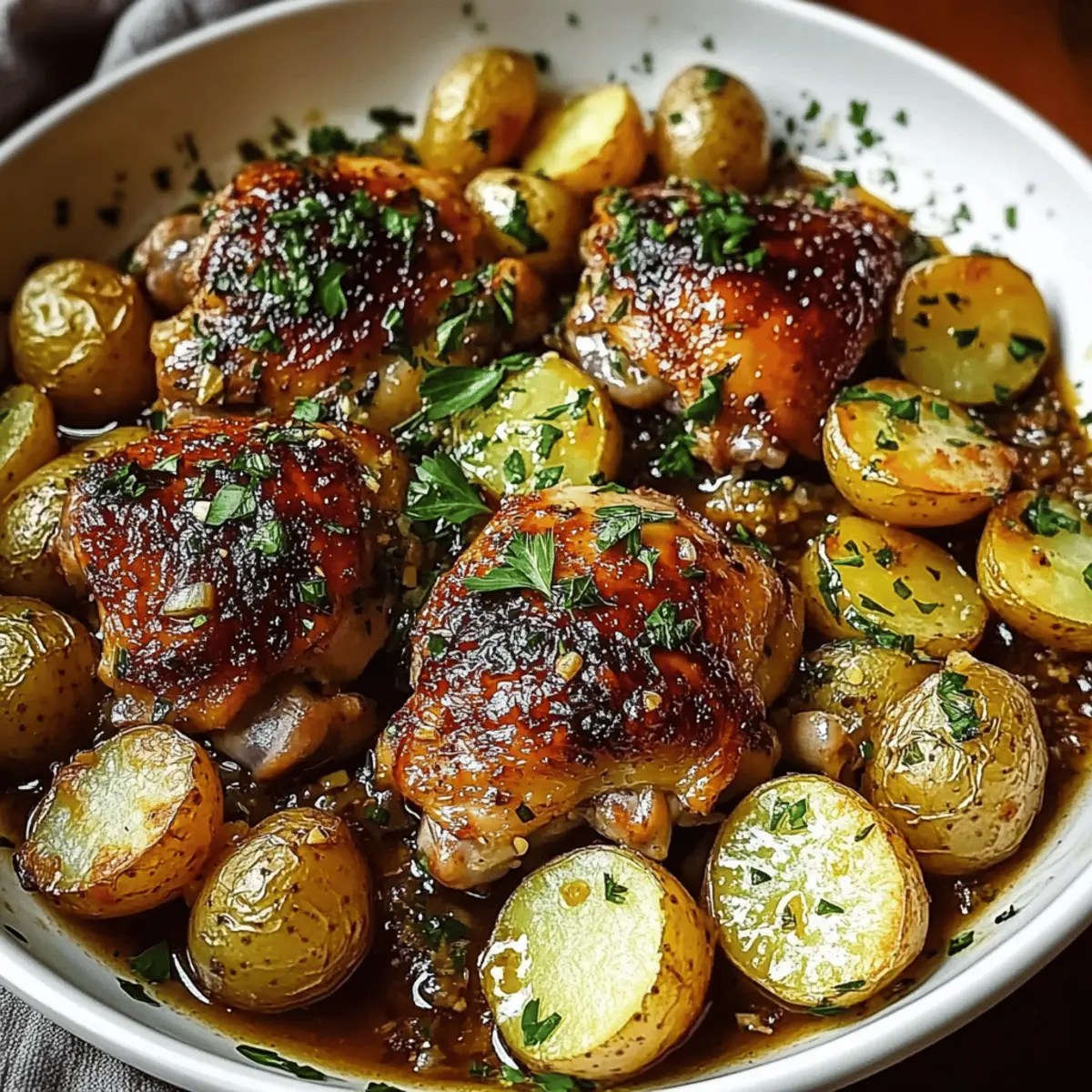 Garlic – Minced to add savory depth, infusing both chicken and potatoes. Tip: Use fresh garlic for the best flavor.