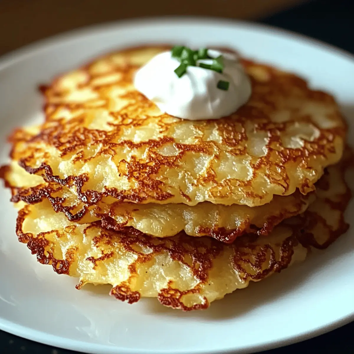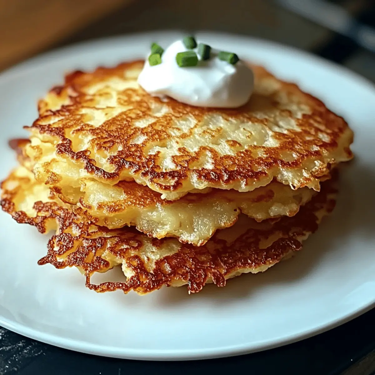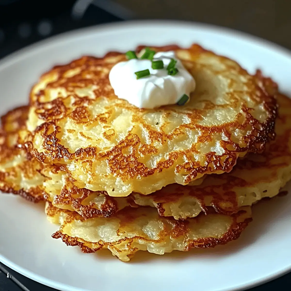 Jump to Recipe Print RecipeAs I stood in my kitchen, the familiar sound of sizzling oil filled the air, instantly transporting me to my grandmother’s cozy home in Bavaria. There, I was first introduced to the magic of German Potato Pancakes, or Kartoffelpuffer, a dish beloved for its crispy exterior and soft, tender center. This easy recipe has become my go-to comfort food, perfect for those busy mornings or as an indulgent side for dinner. With simple ingredients and a quick prep time, these golden-greats promise to be a crowd-pleaser for any meal. Ready to bring the nostalgia of homemade goodness to your table? Let’s dive into the delightful world of Kartoffelpuffer! Why Are These Pancakes So Irresistible? Crispy Delight: With a beautifully golden exterior, these German Potato Pancakes achieve the perfect crunch that’s hard to resist. Comforting Texture: The soft and fluffy center brings warmth and satisfaction, making it an ideal comfort food. Quick Preparation: You can whip up these delectable pancakes in no time, perfect for busy mornings. Versatile Serving: Enjoy them as a breakfast staple, a savory side dish, or even topped with sweet options like applesauce. If you love hearty, homemade meals, check out Cheesy Hamburger Potato for another comforting twist! German Potato Pancakes Ingredients • Discover the simple components that create these mouthwatering Kartoffelpuffer! For the Pancakes Russet Potatoes – The key to texture; peel and grate for the best results. Onion – Adds a subtle sweetness; shallots or green onions are great alternatives. Eggs – These bind the mixture together; swap for flax eggs for a vegan version. All-Purpose Flour – Essential for crispiness; gluten-free flour works as a substitute. Salt – Enhances the flavors; adjust according to your taste. Black Pepper – Adds complexity; increase for an extra kick. Vegetable Oil – Used for frying, creating that golden crust; olive or coconut oil can be substituted. These ingredients are the foundation for making crispy German Potato Pancakes that will surely delight your taste buds! Step‑by‑Step Instructions for Crispy German Potato Pancakes Step 1: Prepare the Potatoes Begin by peeling and grating 2 large russet potatoes using a box grater or food processor. Once grated, transfer the potatoes to a clean kitchen towel and twist tightly to squeeze out as much excess moisture as possible. This step is crucial for achieving the perfect crispy German Potato Pancakes, so aim for dry, fluffy potatoes ready for mixing. Step 2: Mix in the Onion Finely chop one medium onion and add it to the bowl with the grated potatoes. Mix thoroughly to combine the ingredients evenly. The onion will contribute a delicious sweetness and depth to the flavor of the potato mixture, making your Kartoffelpuffer even more irresistible. Step 3: Combine the Wet Ingredients In a separate bowl, crack 2 large eggs and beat them until well combined. Pour the beaten eggs into the potato and onion mixture. Follow with half a cup of all-purpose flour, and sprinkle in salt and black pepper to taste. Stir until everything is well incorporated; this will form a cohesive batter for your crispy German Potato Pancakes. Step 4: Heat the Skillet Place a large skillet over medium-high heat and add approximately ¼ inch of vegetable oil. Allow the oil to heat for about 3-4 minutes, or until it shimmers and small bubbles form around the edges. The right oil temperature ensures your Kartoffelpuffer will fry to a delightful golden brown and achieve that signature crispiness. Step 5: Fry the Pancakes Using a tablespoon or a measuring cup, scoop portions of the potato mixture and carefully drop them into the hot oil. Flatten each portion slightly with the back of the spoon to form pancakes about ½ inch thick. Fry for 3-4 minutes on each side, or until they are beautifully golden brown and crispy. Keep an eye on them to prevent burning! Step 6: Drain Excess Oil Once the pancakes are cooked, use a slotted spatula to transfer them to a plate lined with paper towels. This will help absorb any excess oil, ensuring your crispy German Potato Pancakes remain light and crunchy. Repeat the frying process with the remaining mixture, adjusting the heat as necessary to maintain an even frying temperature. Step 7: Serve Hot Serve your crispy German Potato Pancakes warm, with a variety of toppings such as sour cream, applesauce, or smoked salmon. The pancakes are best enjoyed immediately, while still warm and crispy, allowing you to experience the delightful contrast of textures in every bite. German Potato Pancakes Variations & Substitutions Customize your crispy Kartoffelpuffer to suit your palate and dietary needs with these delightful options! Sweet Potato: Substitute russet potatoes with sweet potatoes for a naturally sweeter flavor. Zucchini Twist: Add grated zucchini into the potato mixture for extra nutrition and a hint of moisture. Zucchini complements the potatoes wonderfully and adds a lovely green touch! Herbed Delight: Experiment with fresh herbs like parsley or chives for a touch of brightness and flavor. Just toss in a handful to the batter before frying. Vegan Option: Use flax eggs in place of regular eggs for a vegan-friendly version. Combine one tablespoon of flaxseed meal with three tablespoons of water to replace each egg. Cheesy Goodness: Mix in grated cheese like cheddar or gouda for a savory twist that melts beautifully inside the pancake. The gooey cheese adds delicious richness to each bite! Spicy Kick: Incorporate minced jalapeños or a dash of cayenne pepper for those who like a bit of heat. Adjust the quantity based on your spice tolerance for a perfect kick. Sweet & Savory: For a breakfast-inspired version, sprinkle cinnamon and sugar into the batter. These flavors harmonize beautifully with toppings like applesauce or maple syrup. Gluten-Free: Swap all-purpose flour with a gluten-free flour blend without compromising on taste. Make 
