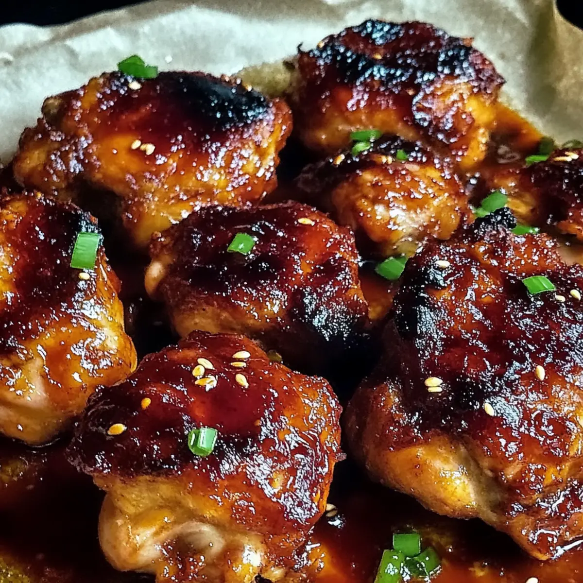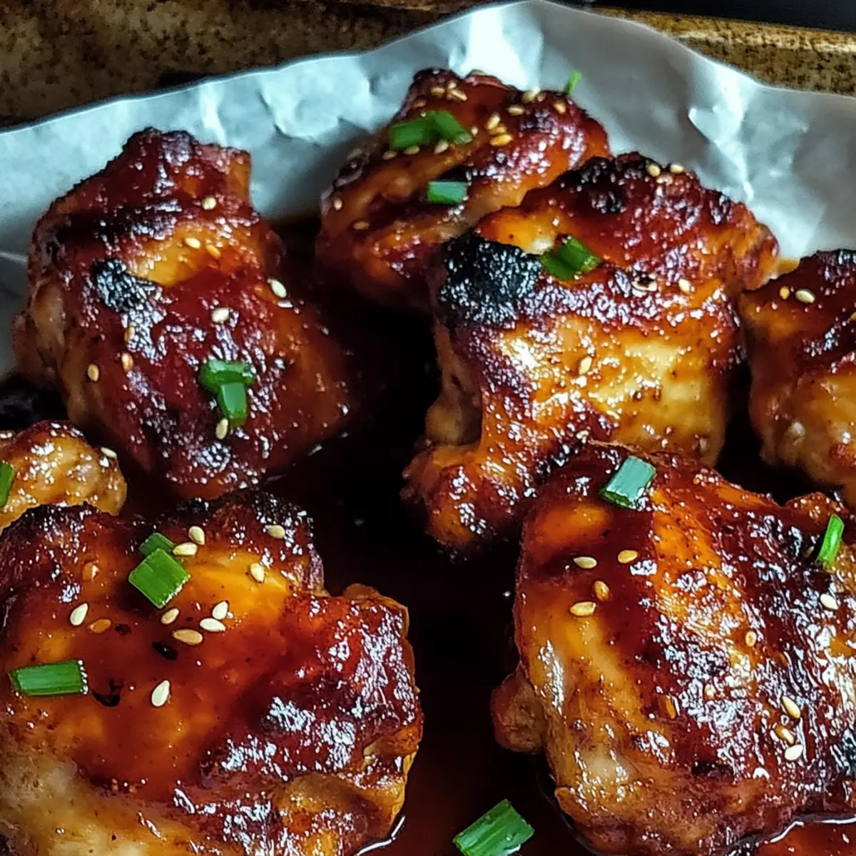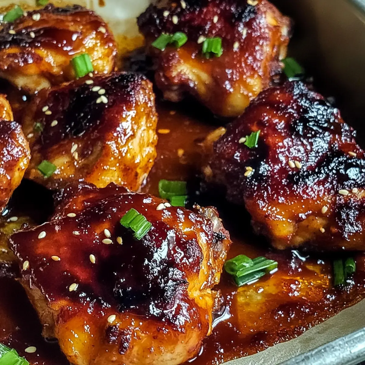 Jump to Recipe Print RecipeAs I stood by the stove, the tantalizing aroma of garlic and ginger escaped from the sizzling pan, wrapping me in a warm, fragrant embrace. This Gochujang Miso Chicken Thighs recipe is not just a meal; it’s a moment of pure bliss that can transform any weeknight into a culinary celebration. With tender, juicy chicken enveloped in a savory-sweet marinade, you’ll discover how easy it is to serve a dish that dazzles. Plus, the delightfully crispy skin adds a textural crunch that’s simply irresistible. Whether you’re hosting friends or indulging in a cozy dinner at home, this recipe is a guaranteed crowd-pleaser that lets you skip the takeout without sacrificing flavor. Ready to elevate your dinner game? Let’s dive into this mouthwatering journey together! Why do you need this recipe tonight? Bold flavors collide in this unforgettable dish, making each bite an explosion of taste! Ease of preparation means you can whip this up quickly—perfect for busy weeknights or entertaining guests. Versatile options allow you to customize by adding veggies like bell peppers alongside your chicken. Crispy skin gives it that satisfying crunch everyone craves, while the marinade provides a delicious umami kick. Impress your loved ones with this unique recipe that’s bound to be everyone’s new favorite, just like our Hawaiian Chicken Salad or Cheesy Chicken Enchiladas! Gochujang Miso Chicken Thighs Ingredients • Get ready to create something extraordinary with these key ingredients! For the Marinade Gochujang – This fermented Korean chili paste adds a delightful spice and umami depth to your dish. Miso Paste – Infuses a savory, fermented flavor that deepens the complexity of the marinade. Soy Sauce – Enhances saltiness and brings an extra layer of umami goodness to the mix. Honey/Maple Syrup – Balances the heat with sweetness; use maple syrup for a vegan-friendly option. Rice Vinegar – Brightens the marinade with acidity, enhancing the overall flavor. Sesame Oil – Adds a rich, nutty aroma that complements the other flavors beautifully. Garlic – Minced for a robust, pungent kick that elevates the essence of your marinade. Ginger – Grated to bring a warm, spicy freshness that enhances every bite. Salt and Pepper – Essential for adjusting seasoning to your personal taste. For the Chicken Chicken Thighs – Bone-in, skin-on thighs provide rich flavor and juiciness that can’t be beat. For Garnish Sesame Seeds – Sprinkled on top for a lovely crunch and visual appeal. Green Onions – Chopped fresh for a pop of color and a fresh, mild onion flavor. With these ingredients, you’re set to make Gochujang Miso Chicken Thighs that are not only easy to prepare but also bursting with bold, delightful flavors! Step‑by‑Step Instructions for Gochujang Miso Chicken Thighs Step 1: Marinade Preparation In a medium-sized bowl, whisk together the gochujang, miso paste, soy sauce, honey (or maple syrup), rice vinegar, sesame oil, minced garlic, and grated ginger. Mix until all ingredients are well combined, creating a thick, aromatic marinade that beautifully melds the flavors. This marinade will elevate the Gochujang Miso Chicken Thighs by adding a spicy and savory punch. Step 2: Chicken Marination Place the chicken thighs in a large zip-top bag or a shallow bowl. Pour the marinade over the chicken, ensuring every piece is thoroughly coated. Seal the bag or cover the bowl, then refrigerate for at least 30 minutes, preferably overnight. This step allows the chicken to absorb all those rich flavors, resulting in tender and juicy Gochujang Miso Chicken Thighs. Step 3: Preheat Oven About 10 minutes before you’re ready to bake, preheat your oven to 400°F (200°C). This ensures the oven reaches the ideal temperature for achieving crispy skin on your chicken thighs. A properly preheated oven is essential for evenly cooking the Gochujang Miso Chicken Thighs and creating that golden brown crust everyone loves. Step 4: Baking Dish Prep While the oven is preheating, lightly grease a baking dish with oil or cooking spray to prevent sticking. This simple step ensures your Gochujang Miso Chicken Thighs crisp up nicely and are easy to serve later. Prepare your dish so it’s ready to hold the flavorful chicken when the marination is complete. Step 5: Arrange Chicken After marinating, remove the chicken thighs from the refrigerator and transfer them to the prepared baking dish, arranging them skin-side up. Sprinkle salt and pepper over the top for added seasoning, and discard any leftover marinade. This is the time to set the stage for the ultimate Gochujang Miso Chicken Thighs experience with the skin facing up to maximize crispiness. Step 6: Baking Slide the baking dish into the preheated oven and bake for 25 to 30 minutes. The chicken is done when the internal temperature reaches 165°F (75°C) and the skin is beautifully crispy and golden brown. Keep an eye on the chicken as it cooks, as ovens can vary, and we want those Gochujang Miso Chicken Thighs to be perfect! Step 7: Broil for Crispiness Once baked, switch your oven to broil for an additional 2 to 3 minutes. Keep a close watch to prevent burning—this step intensifies the crispiness of the skin, making your Gochujang Miso Chicken Thighs even more irresistible. The broiler quickly caramelizes the surface, giving it that extra touch of perfection. Step 8: Garnish and Serve After broiling, remove the dish from the oven and allow the chicken to rest for a few minutes. This helps retain juiciness. Finally, garnish your Gochujang Miso Chicken Thighs with sesame seeds and chopped green onions for a fresh, vibrant finish. Serve with your favorite sides, and enjoy the delightful flavors you’ve created! Gochujang Miso Chicken Thighs Variations Feel free to unleash your culinary creativity and customize the recipe to suit your palate! Chicken Breasts: Swap chicken thighs for boneless, skinless breasts for a leaner option.