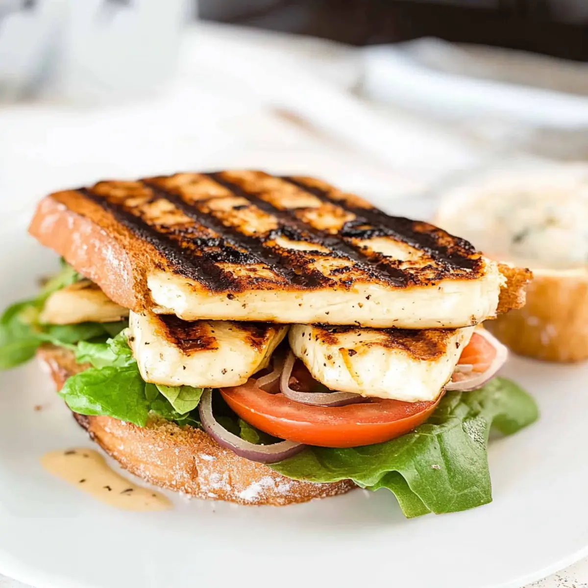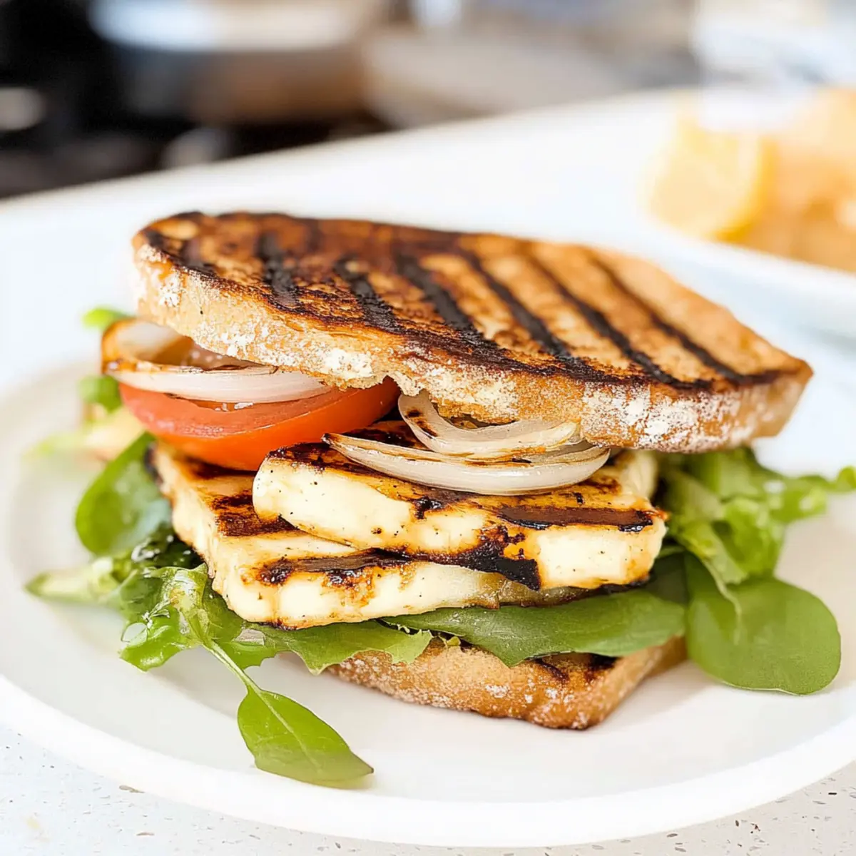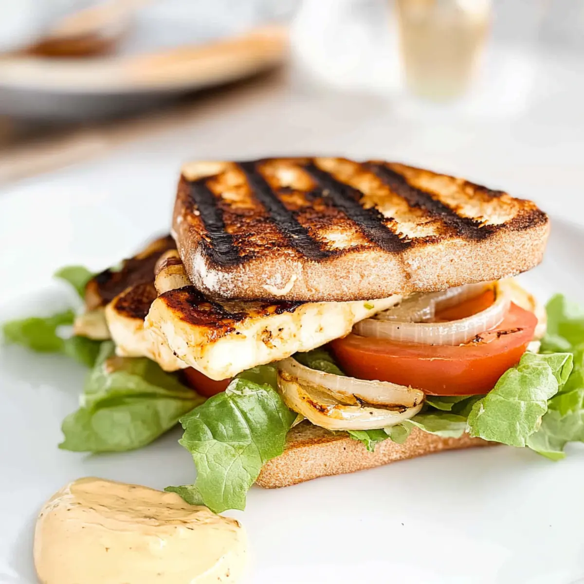 Jump to Recipe Print RecipeThe aroma of grilled halloumi wafted through my kitchen, instantly transforming my mood during a hectic week. This Grilled Halloumi Sandwich is not just a quick weeknight meal; it’s like a little culinary retreat that I can whip up in just 15 minutes. The creamy, slightly salty halloumi pairs beautifully with sweet grilled onions, crisp tomatoes, and fresh lettuce, all smeared with a tangy garlic mayo that elevates each bite. Whether you’re cooking for yourself or impressing friends, this vegetarian delight is a surefire crowd-pleaser that keeps you away from the fast-food drive-thru. Ready to discover how this simple recipe can change your dinner game? Let’s dive in! Why is Halloumi so Special? Unique Flavor: The grilled halloumi brings a creamy, slightly salty flavor that’s hard to resist. Quick Preparation: In just 15 minutes, you can have this delicious meal ready, perfect for any busy schedule. Crowd-Pleasing Dish: With its layers of grilled onions, tomatoes, and zesty garlic mayo, this sandwich is sure to impress both family and friends. Versatile Options: Feel free to modify with additions like avocado or roasted red peppers, or try it with different bread choices such as sourdough or pita. Hearty yet Healthy: As a vegetarian option, this recipe packs a protein punch without sacrificing taste, making it a satisfying choice for everyone. Check out Avocado Bacon Sandwich for more sandwich inspiration! Halloumi Sandwich Ingredients Get Ready for a Flavor Extravaganza! • Here’s everything you need to create a fantastic halloumi sandwich bursting with flavor and freshness. For the Sandwich Halloumi Cheese – Adds a creamy, salty flavor and unique texture. Cut into ½ inch thick slices for perfect grilling. Onion – Provides sweetness when grilled. Yellow, red, or sweet onions work beautifully—just slice into ¼ inch thick rounds. Bread – Forms the base and adds structure. Choose thick-cut crusty bread like sourdough or ciabatta for an elevated experience. Olive Oil – Enhances cooking and browning. Generously brush on halloumi and onions for that golden color. Tomato Slices – Freshness and juiciness for the sandwich. Opt for ripe tomatoes for the best flavor. Lettuce Leaves – Adds crunch and a fresh taste. Use crisp varieties like romaine or butter lettuce. For the Zesty Garlic Mayo Mayonnaise – Forms the base of this flavorful spread. Can easily be substituted with vegan mayo if desired. Garlic Powder – Adds depth to the mayo. For a bolder garlic kick, swap in ¼ tsp crushed fresh garlic. Lemon Juice – Provides acidity, brightening the flavor of the mayo. Freshly squeezed lemon juice is always best. Black Pepper – Seasoning to enhance all ingredients. Add to taste for that extra zing. Hot Sauce (optional) – Adds a kick to the mayo. Choose your favorite hot sauce for a personalized touch. Step‑by‑Step Instructions for Grilled Halloumi Sandwich with Tangy Garlic Mayo Step 1: Prepare the Garlic Mayo In a small bowl, combine mayonnaise, garlic powder, lemon juice, and a pinch of black pepper. Stir until smooth and well-blended, creating a zesty garlic mayo that enhances your Grilled Halloumi Sandwich. Set it aside to let the flavors meld while you prepare the rest of your ingredients—this step should take about 3 minutes. Step 2: Prep the Ingredients Slice your onion into ¼ inch thick rounds and pat the halloumi slices dry to ensure a good sear. Brush both sides of the halloumi and onion with olive oil, and sprinkle with black pepper for extra flavor. This step sets the stage for achieving the perfect golden-brown color on your grilled halloumi and onions, which takes about 5 minutes. Step 3: Grill the Halloumi and Onions Preheat a grill pan over medium-high heat for 3 minutes until it’s hot. Place the halloumi slices and onion rounds onto the pan. Grill each side for about 2-3 minutes until the halloumi is golden brown and the onions are softened, becoming sweet and fragrant. You can also toast your bread in the same pan for added flavor, making this step a harmonious 6-8 minute process. Step 4: Assemble the Sandwich Take the grilled bread slices and spread a generous amount of the tangy garlic mayo on one side of each slice. Layer the bottom slice with crisp lettuce leaves, followed by juicy tomato slices, grilled halloumi, and sweet onions. Top with the other slice of bread, mayo side down, and press gently to combine all the flavors into one satisfying Grilled Halloumi Sandwich. This assembly should only take about 3 minutes. Step 5: Serve Immediately Cut your sandwich in half for easy handling, and serve warm to enjoy the delightful contrast of textures. The crispy bread and creamy halloumi are at their best right after grilling. Enjoy your vibrant Grilled Halloumi Sandwich with sides like a fresh salad or sweet potato fries for a delightful meal that’s ready in under 15 minutes! Make Ahead Options These Grilled Halloumi Sandwiches are perfect for meal prep enthusiasts looking to save time during busy weeknights! You can grill the halloumi and onions up to 24 hours in advance and store them in an airtight container in the refrigerator. To maintain their quality, make sure to let them cool completely before refrigerating to prevent moisture buildup. You can also prepare the zesty garlic mayo ahead of time, keeping it chilled until you’re ready to assemble your sandwich. When you’re ready to serve, simply reheat the grilled components in a skillet for a few minutes, assemble with fresh lettuce and tomatoes, and enjoy a quick and delicious meal that’s just as flavorful as when freshly made! Storage Tips for Halloumi Sandwich Fridge: Store any leftover halloumi sandwich in an airtight container for up to 2 days. To keep the bread from getting soggy, consider separating the components before storage. Freezer: If you need to freeze components, wrap grilled halloumi slices and onions tightly in foil or freezer bags
